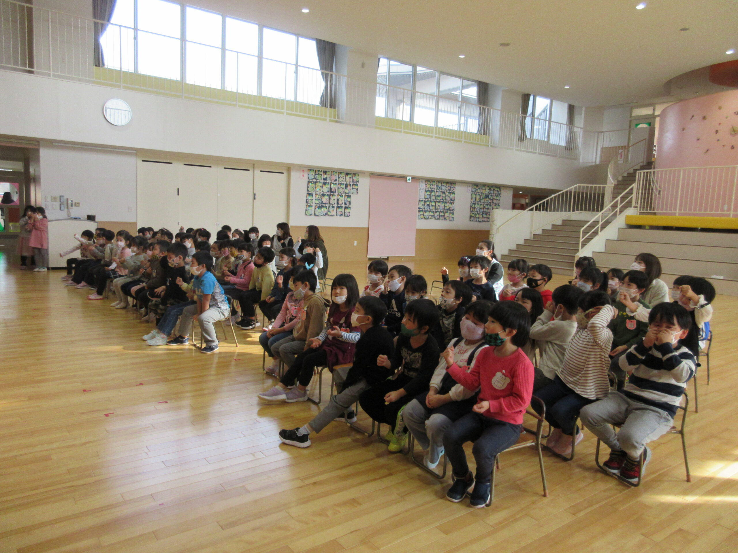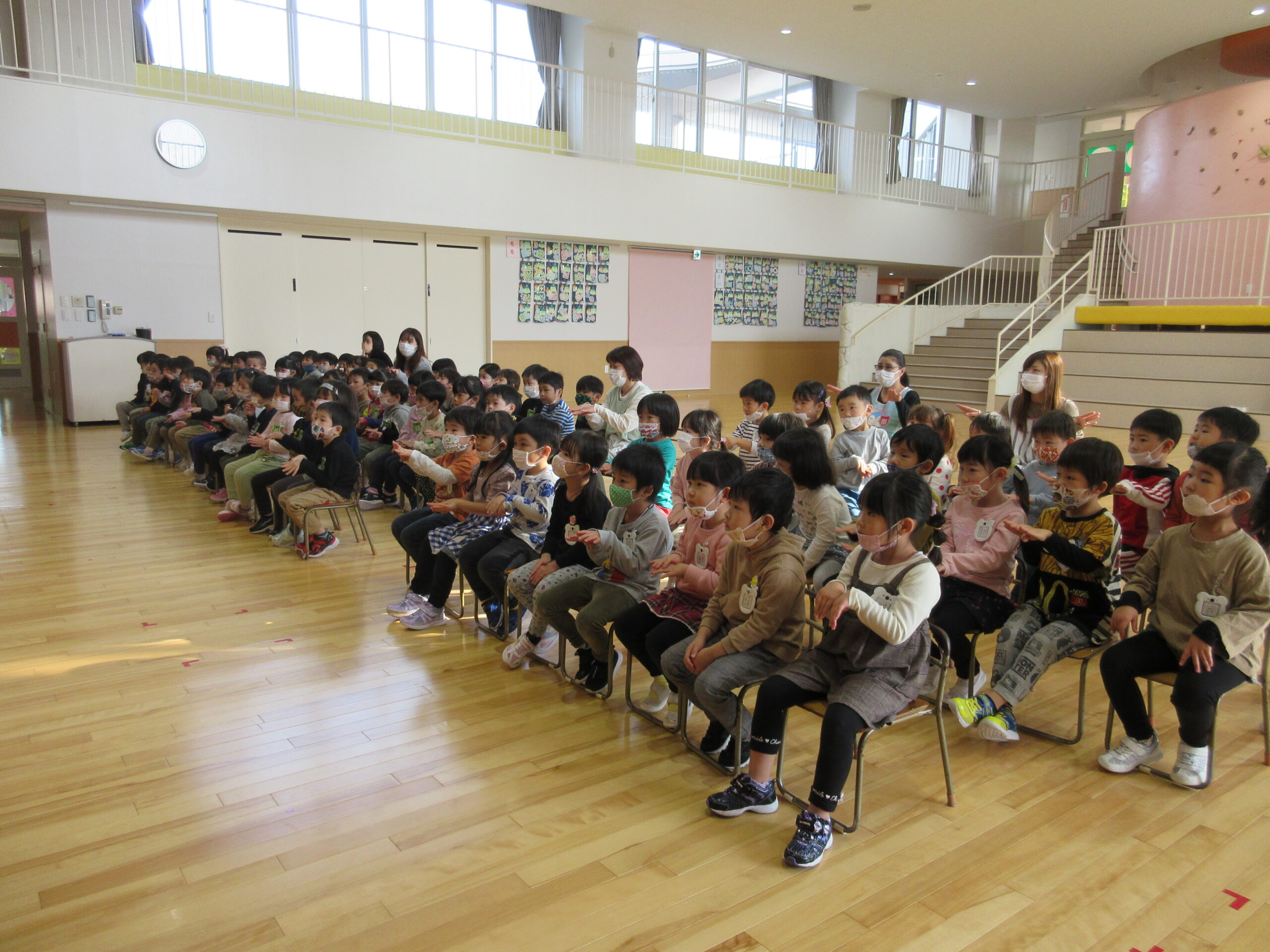 「新しい生活様式」に基づき行事の取り組みを行っておりますが、今日11月30日(火)は「手話講座」を3部に分けて学年毎に短時間で実施しました。中島幼稚園では20年以上も前から朝の会をはじめ数字や月の歌など手話で表現し、手話を「目で見る言葉」と身近に感じながら保育に取り組んでいます。毎年、室蘭市主催の手話講座で楽しく参加していますが、今年度も3名の方が来園し、挨拶やお天気、曜日や動物、食べ物など学年のレベルに応じた手話講座でみんなで楽しんで学ぶことができました。ご指導頂きまして有難うございました。