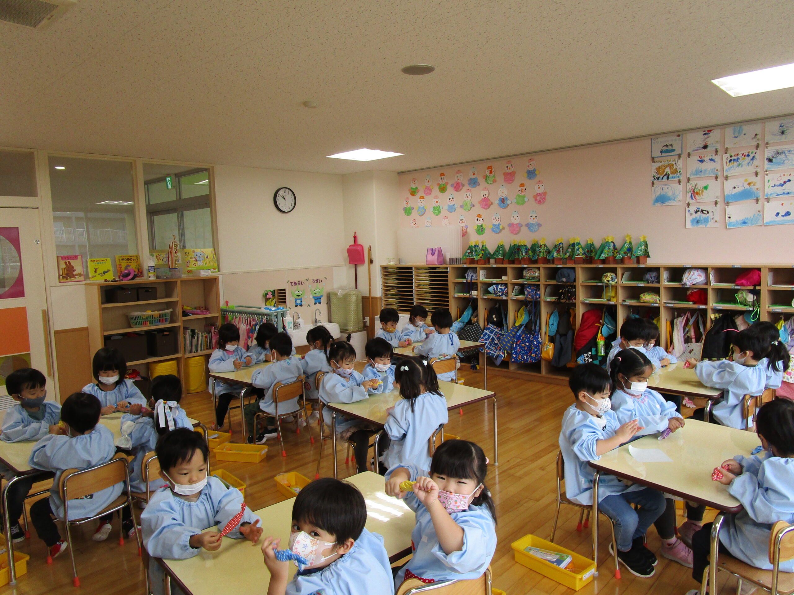 年少組さんも少しずつ文字や数字に興味をもってきたこととクリスマスまで楽しく過ごすためにアドベントカレンダー作りを行いました。12月1日より1人ずつ自分で作った作品を持ち帰ります。ご褒美にお菓子を1つあげてもらえると嬉しいです♪