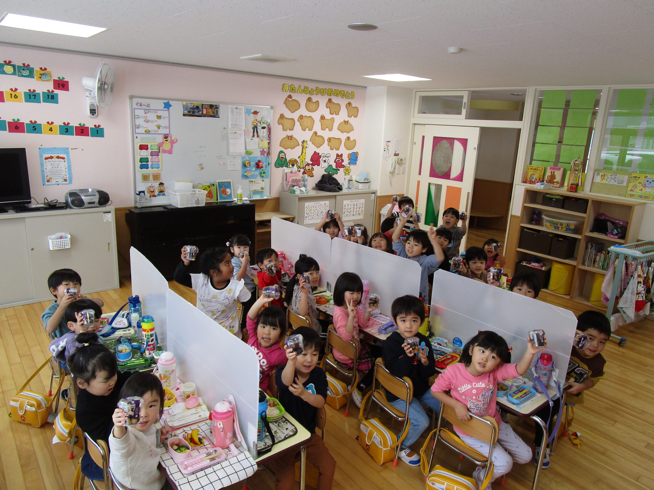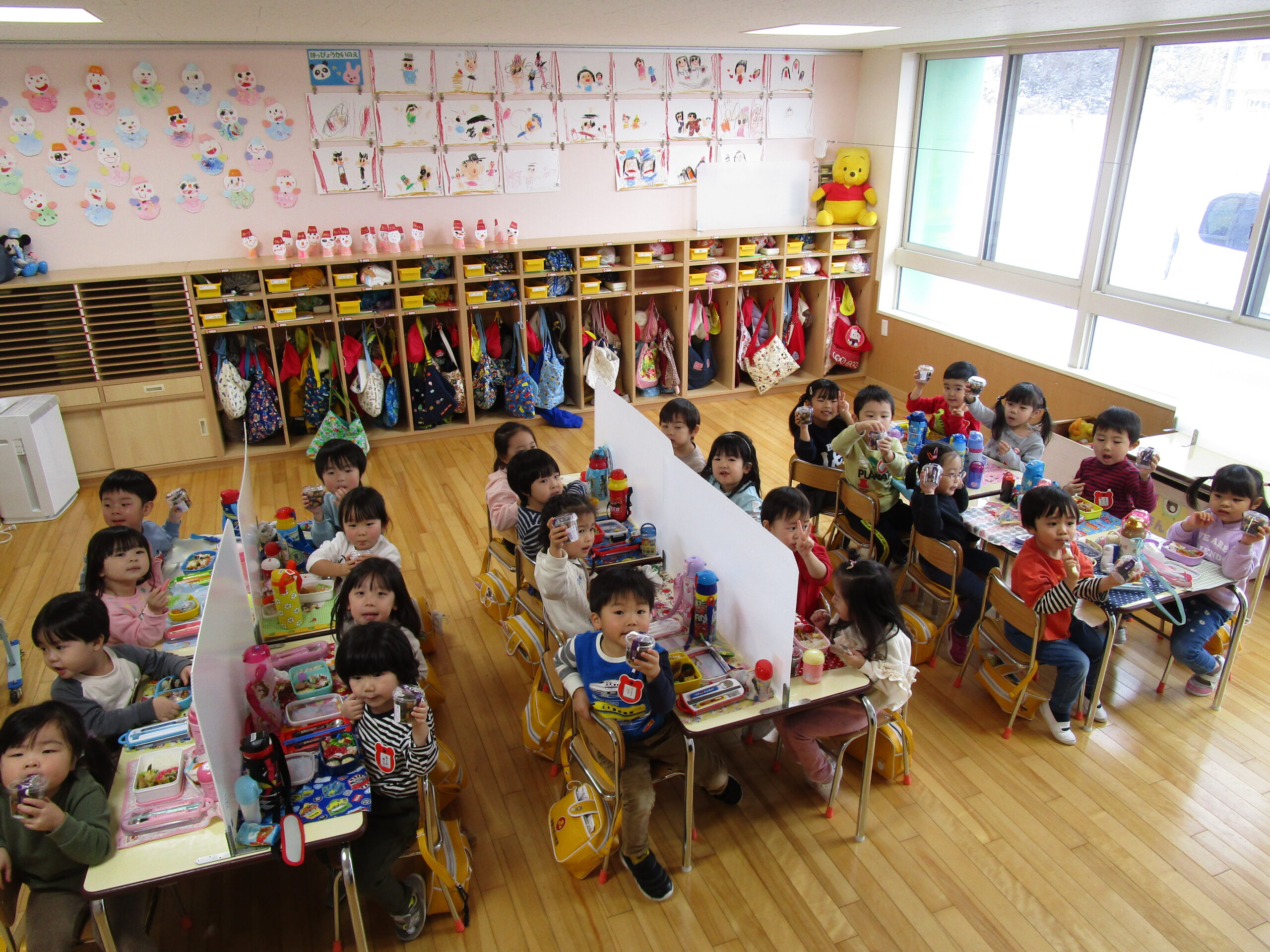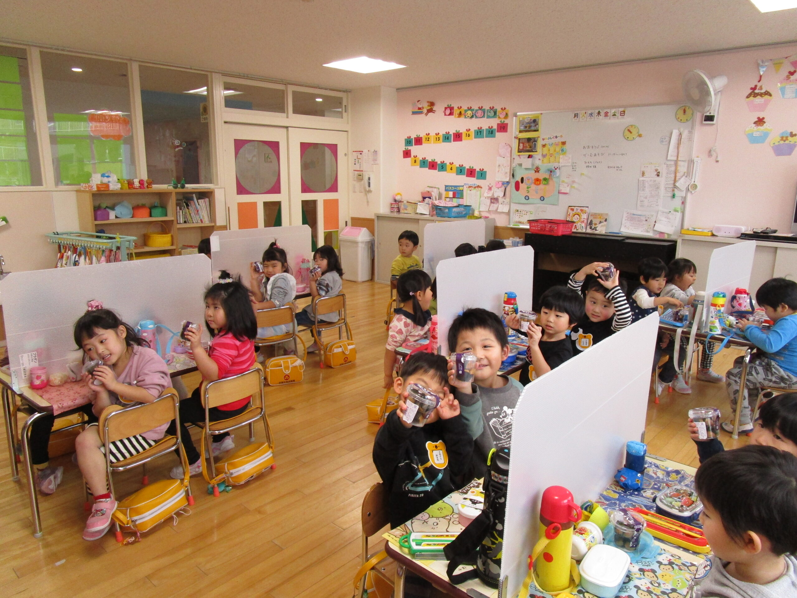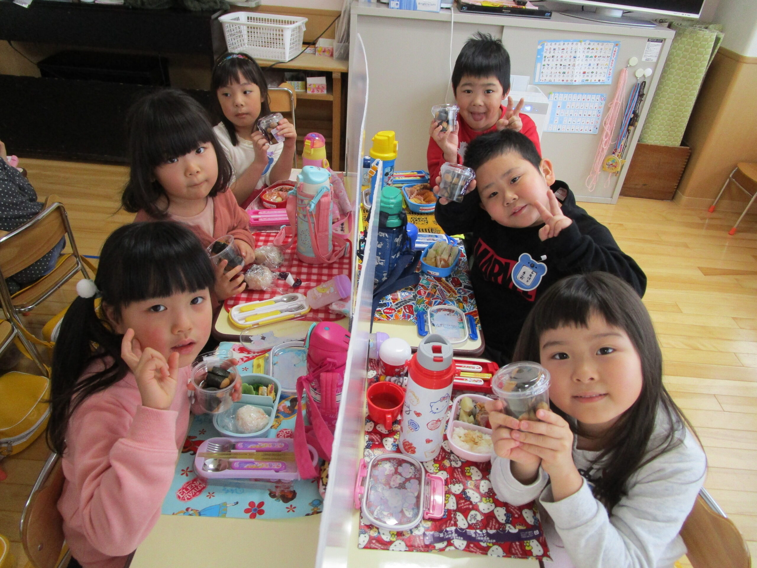 (96)令和3年度「お餅会食」 2021年12月17日 園内ブログ 今日12月17日(金)お餅会食をしました。コロナ禍の状況で一家一役制を取り止めたことにより、お餅つきを断念しましたので、シャトレーゼの磯辺餅を各お部屋で食べて、お餅つき会の気分を味わいました。モチモチのお餅を食べ、「おいしい」と笑顔が溢れていました。来年はお餅つき会ができることを願っています。 今日の病気欠席者は、風邪・咳症状4名、溶連菌1名、大事をとって1名です。 【年少】 【年中】 【年長】