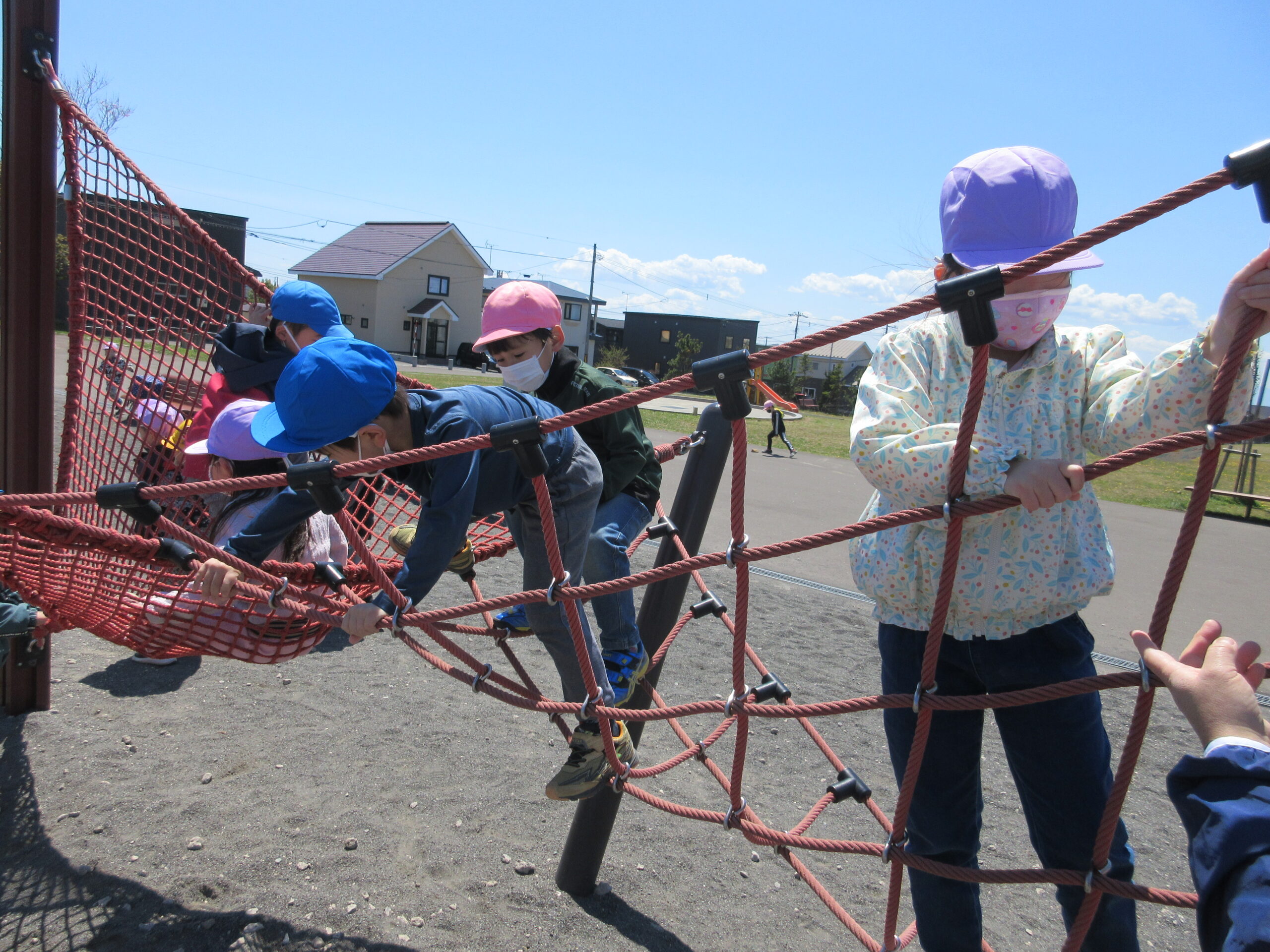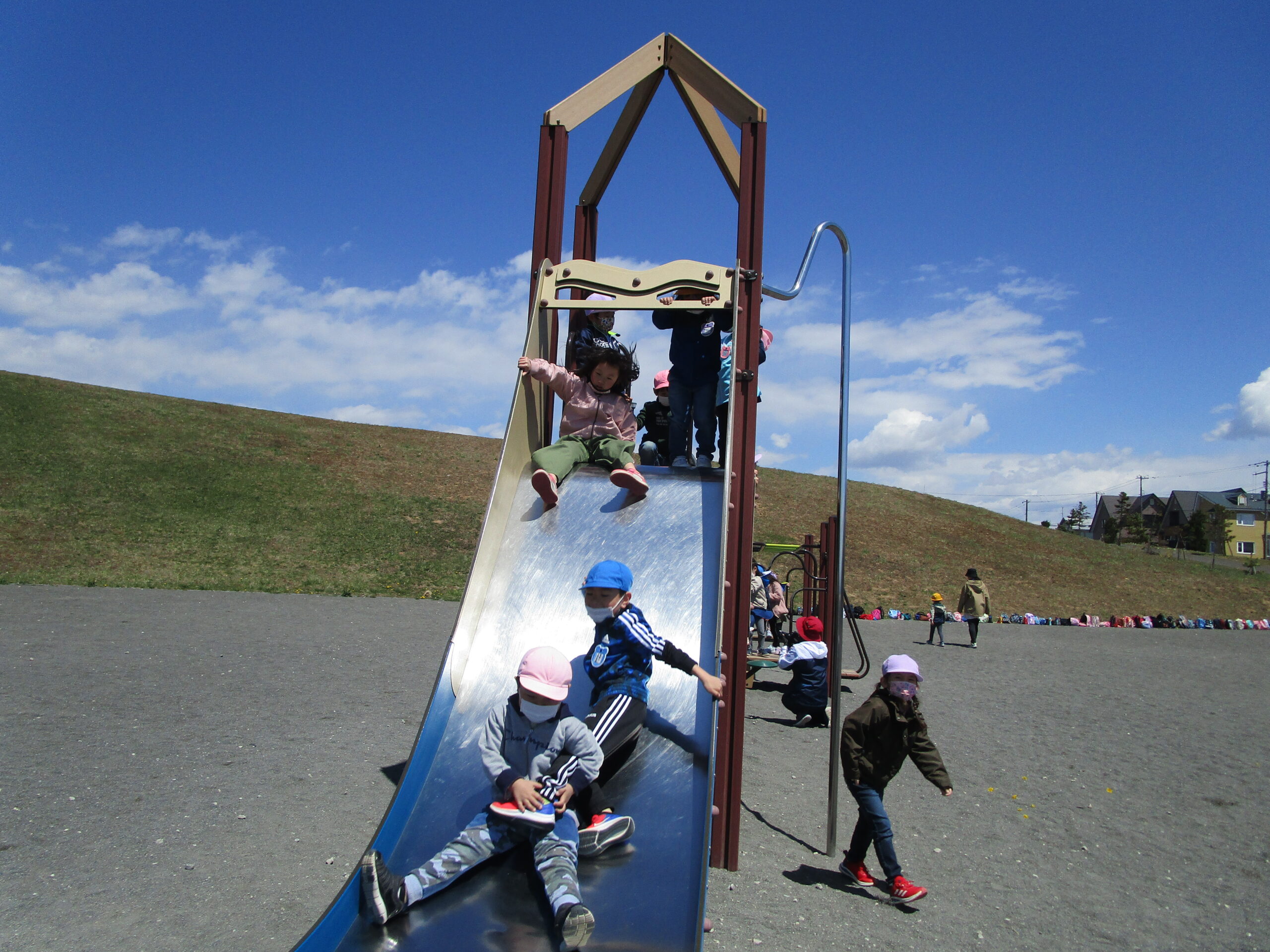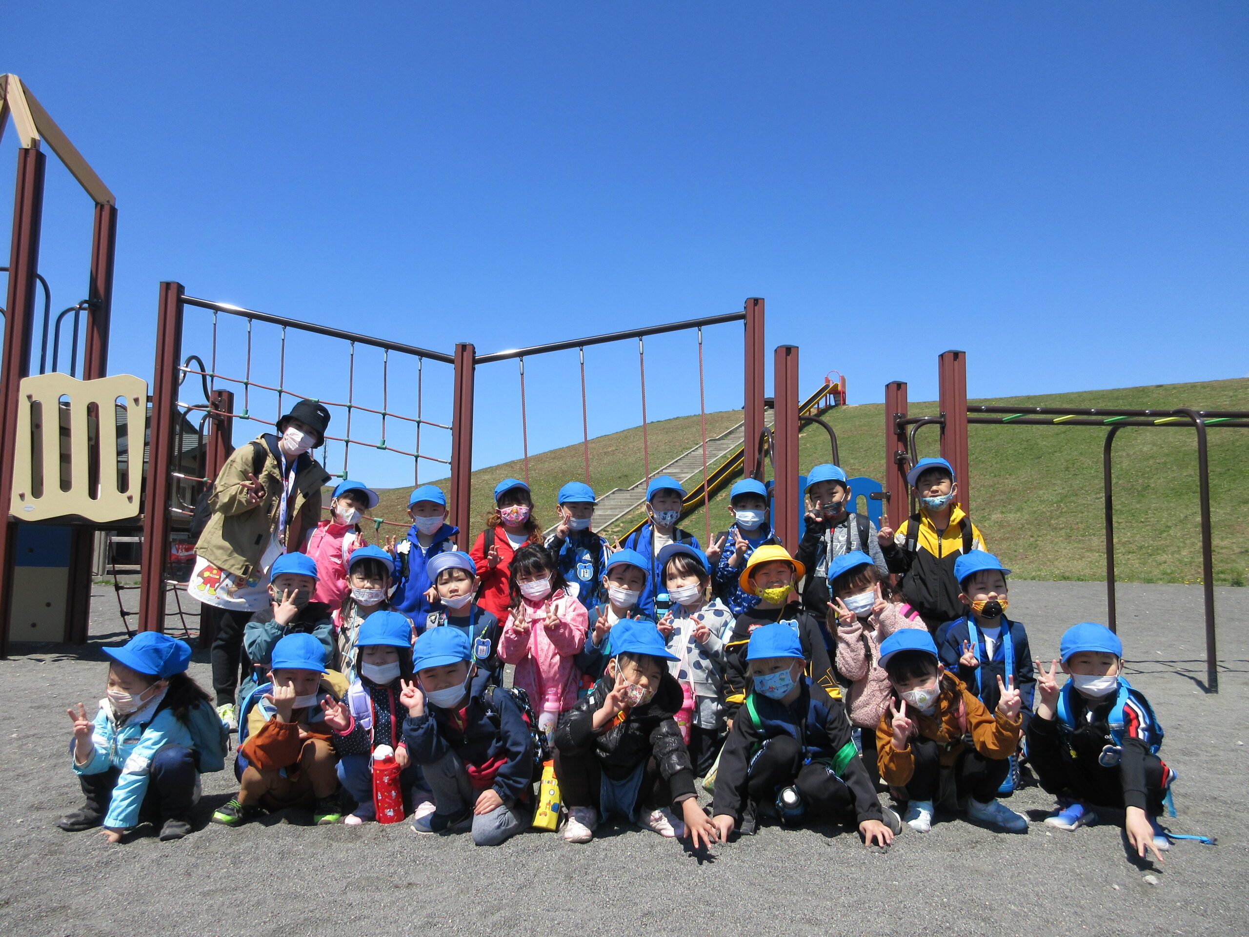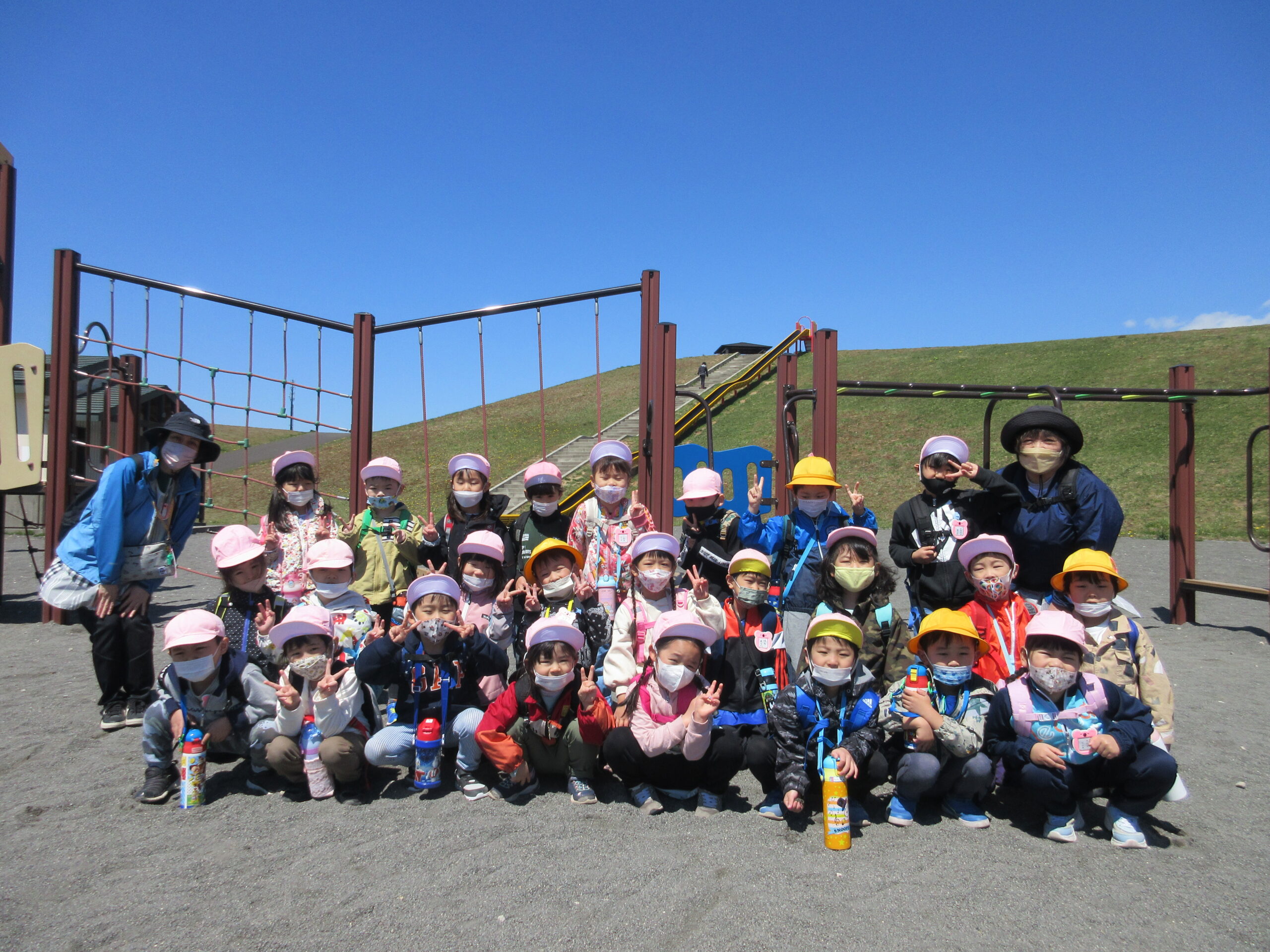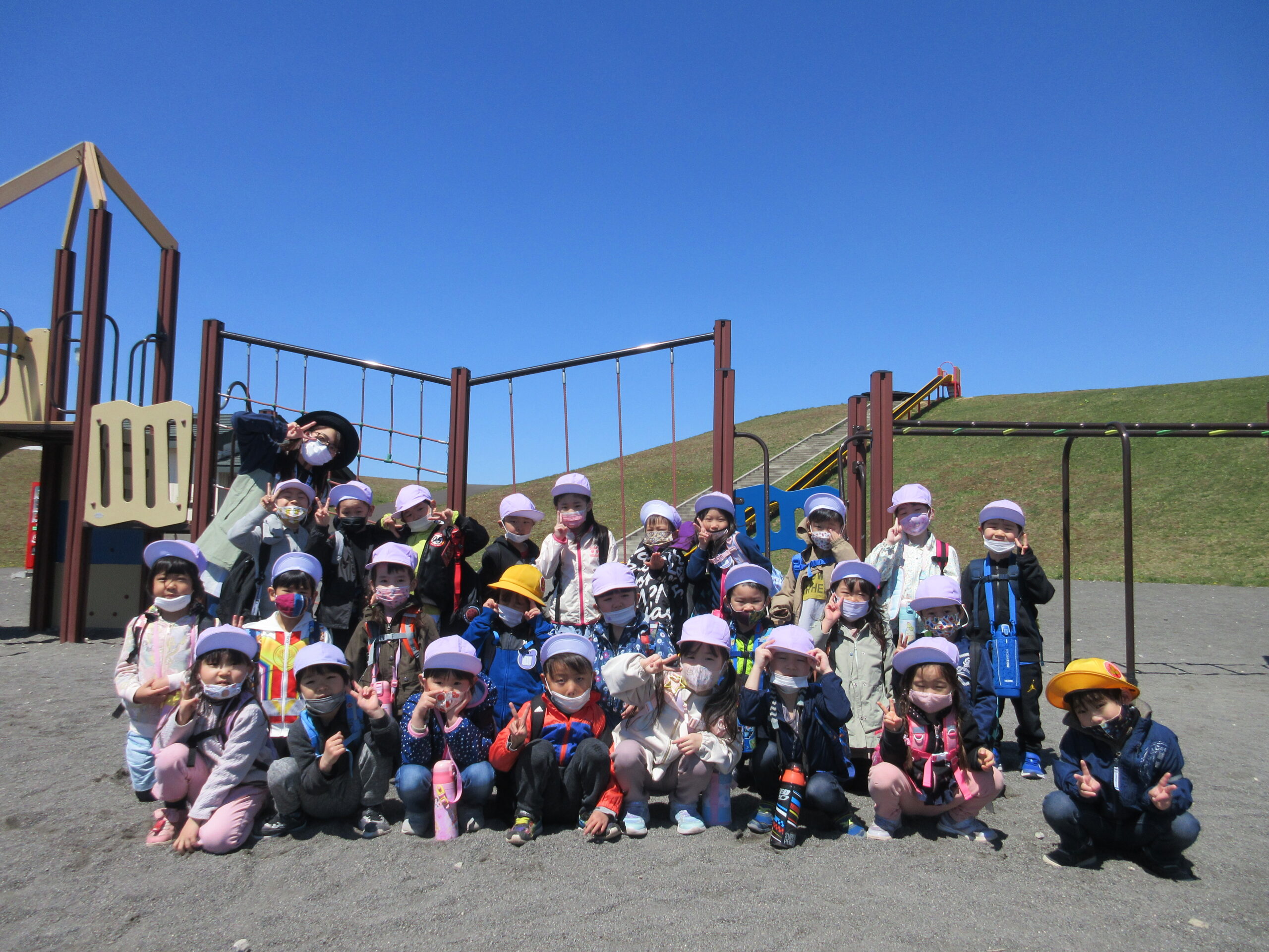 (11)令和4年度「年長学年南公園」 2022年5月9日 園内ブログ お天気にも恵まれ、年長組で八丁平南公園に出掛けました。戸外活動の約束事を守りながら遊ぶことができ、成長を感じました。公園で昼食を食べる予定でしたが、強風のため園に戻りホールで食べました。 今日の病気欠席者は、発熱1名、咳3名、風邪3名、体調不良2名、大事をとって1名です。