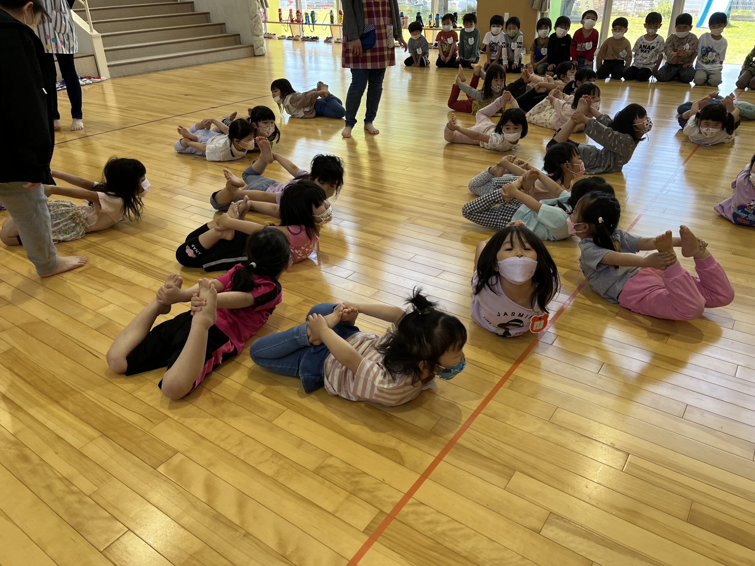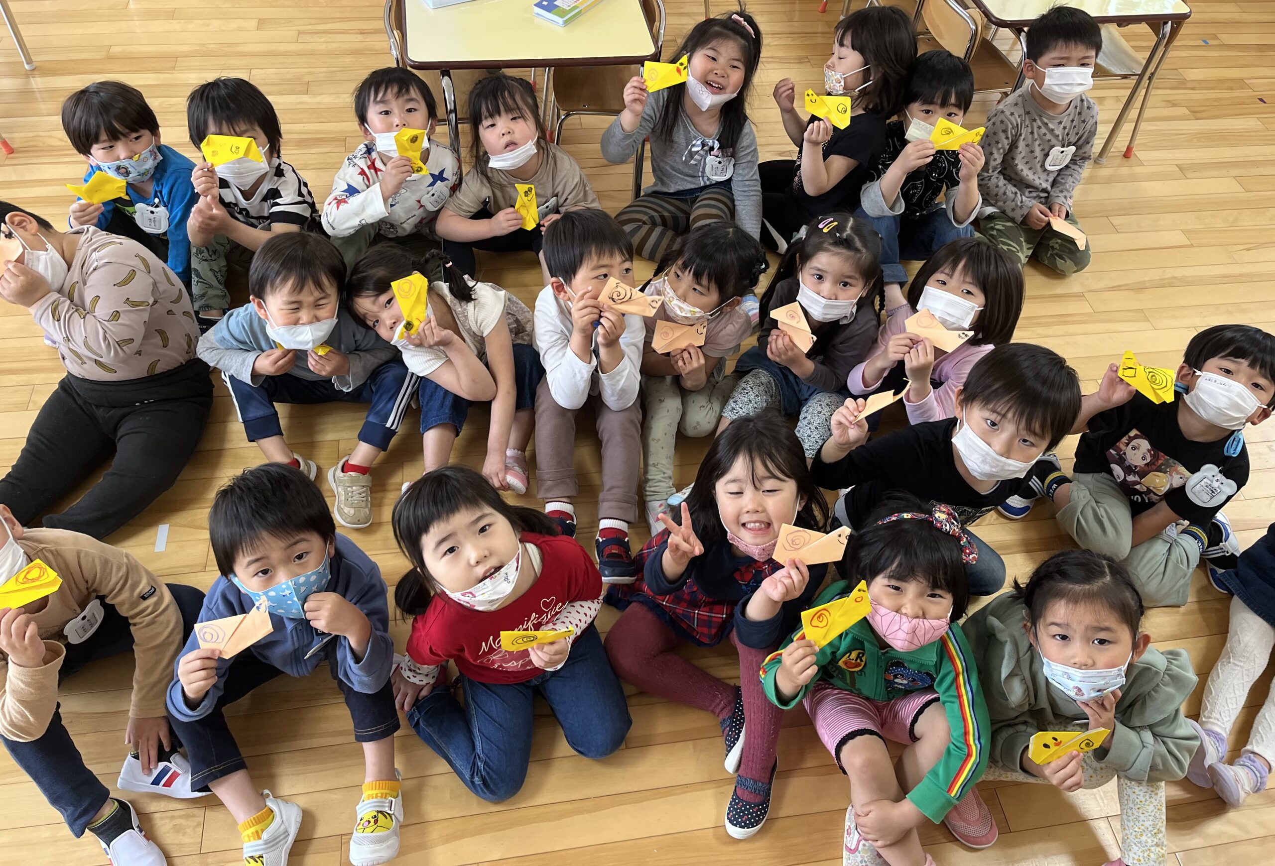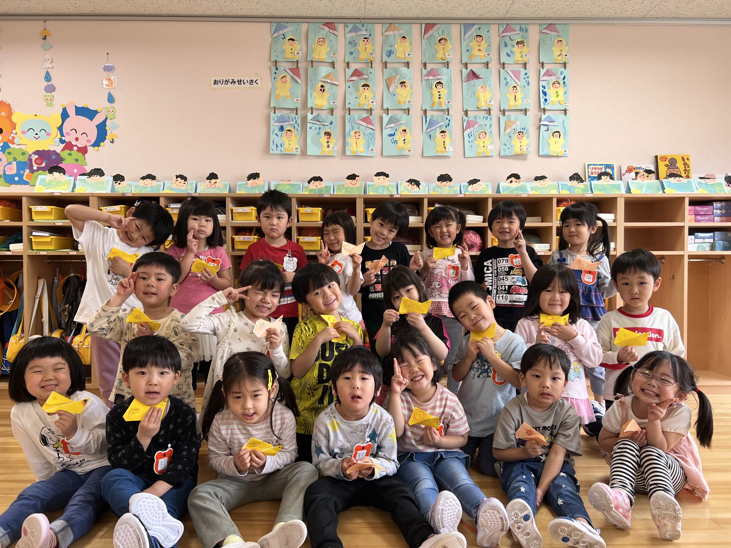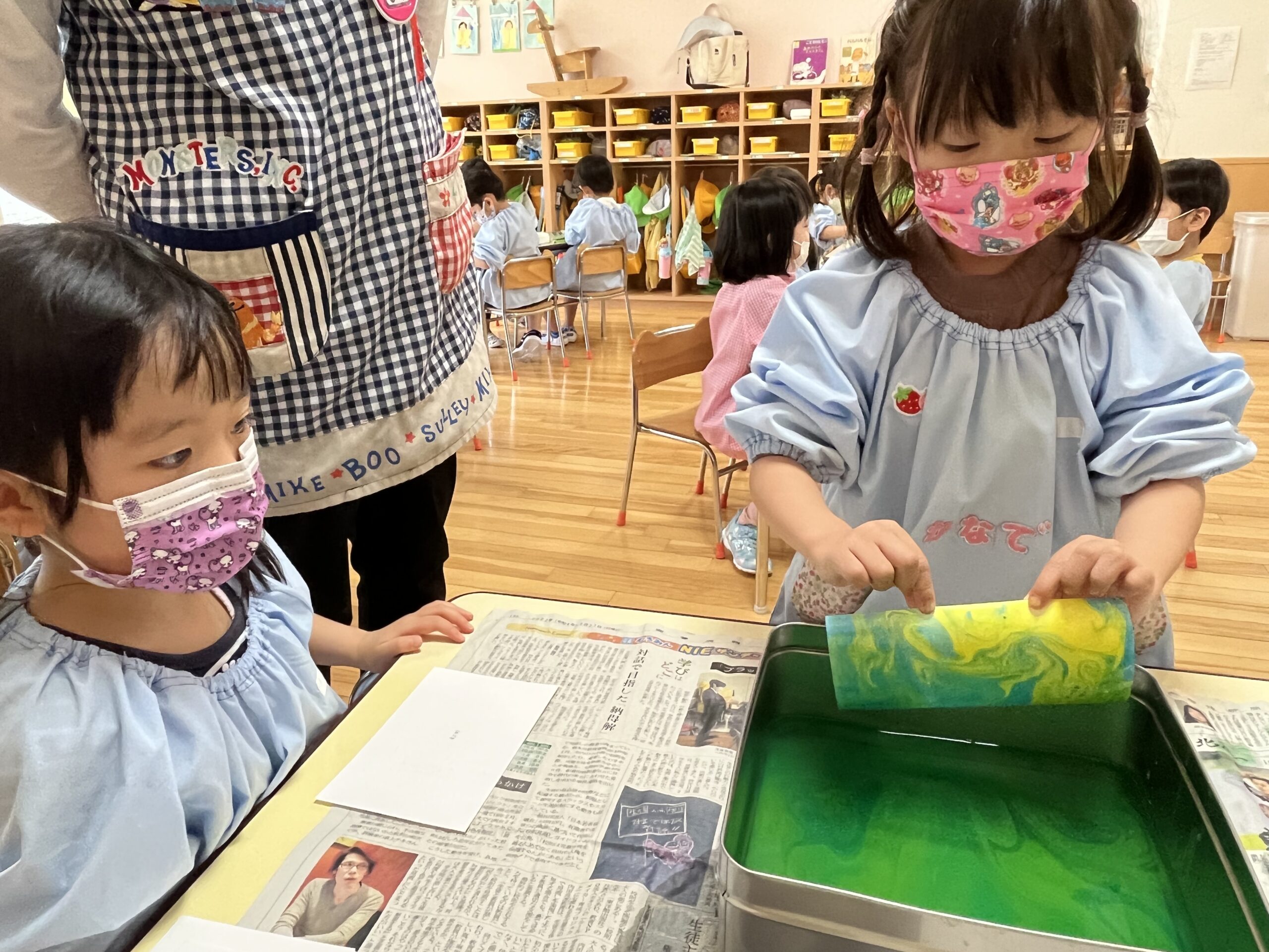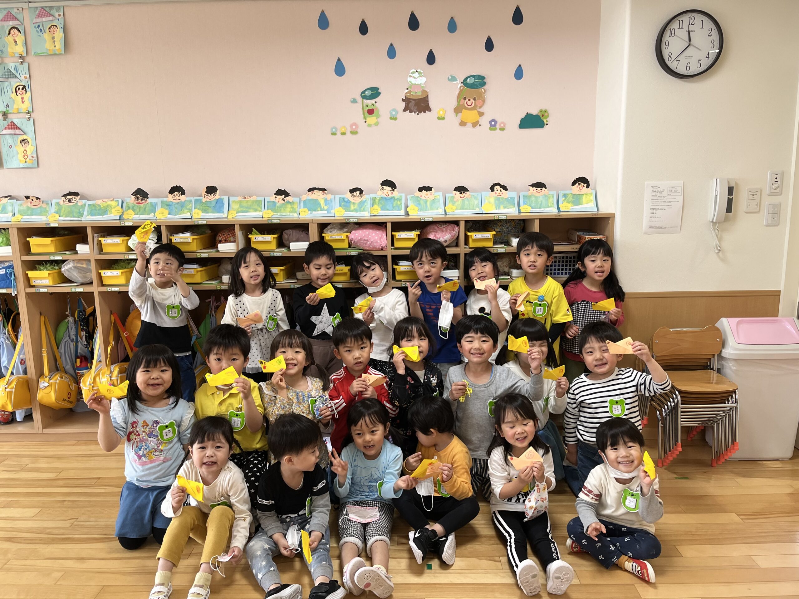 5月25、26日には マーブリングという技法を使った父の日製作を、27日にはお部屋で運動あそびを、30日にリズム体操をしました。製作では水の上に浮かぶ絵の具がマーブル模様になっていく様子を見て楽しみながら、感謝の気持ちを込めて作りました。運動あそびでは、身体の使い方や動きを学びながら意欲的に取り組むことができていました。また、今日は折り紙でかたつむりを作って持ち帰っています。運動会練習に励む日々ですが、様々な集団あそびや天気の良い日には外あそびを元気いっぱい楽しんでいますのでご家庭でもお話を聞いてみてくださいね。