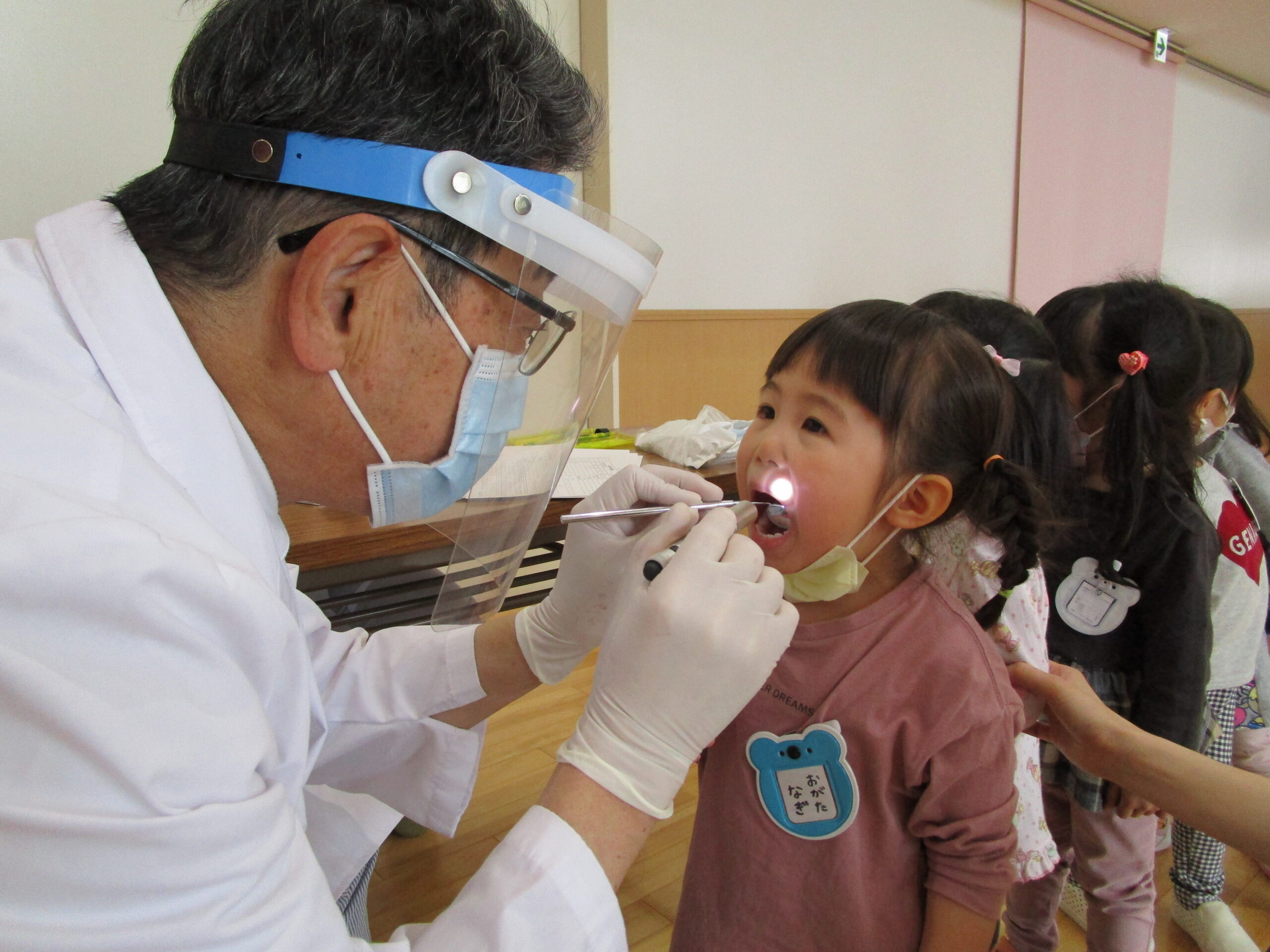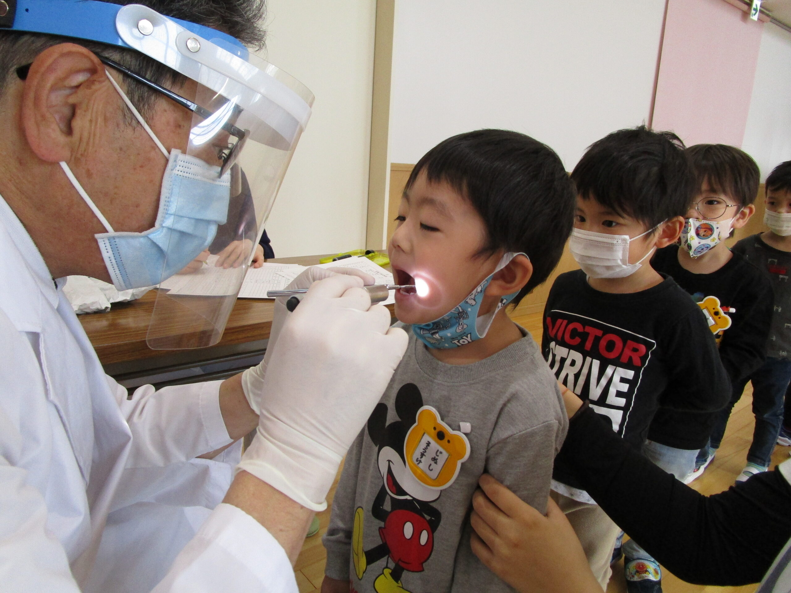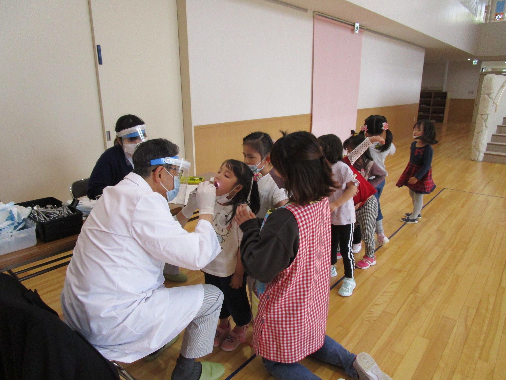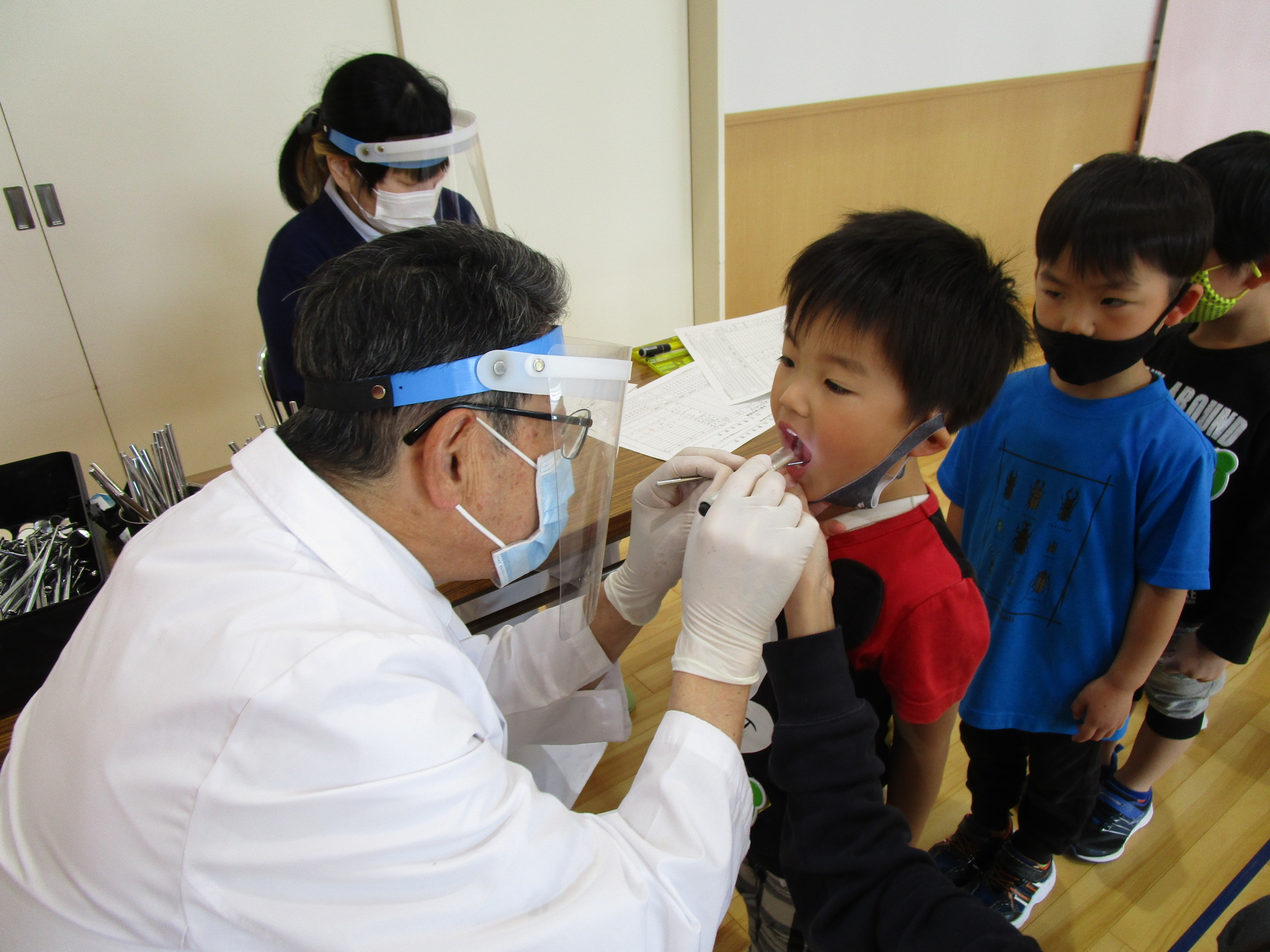 (21)令和4年度「歯科検診」 2022年6月7日 園内ブログ 6月7日(火)に歯科検診を行いました。全園児が歯医者さんに歯を診て頂きました。クラス毎に並んで、各自大きいお口を頑張って開けて、「おねがいします」「ありがとうございました」の挨拶も上手にでき、とてもスムーズに検診が行われました。これからも歯磨きを丁寧に行いましょう。診て頂いた柴田先生有難うございました。 今日の病気欠席者は、発熱1名、咳1名、鼻水2名、体調不良1名です。