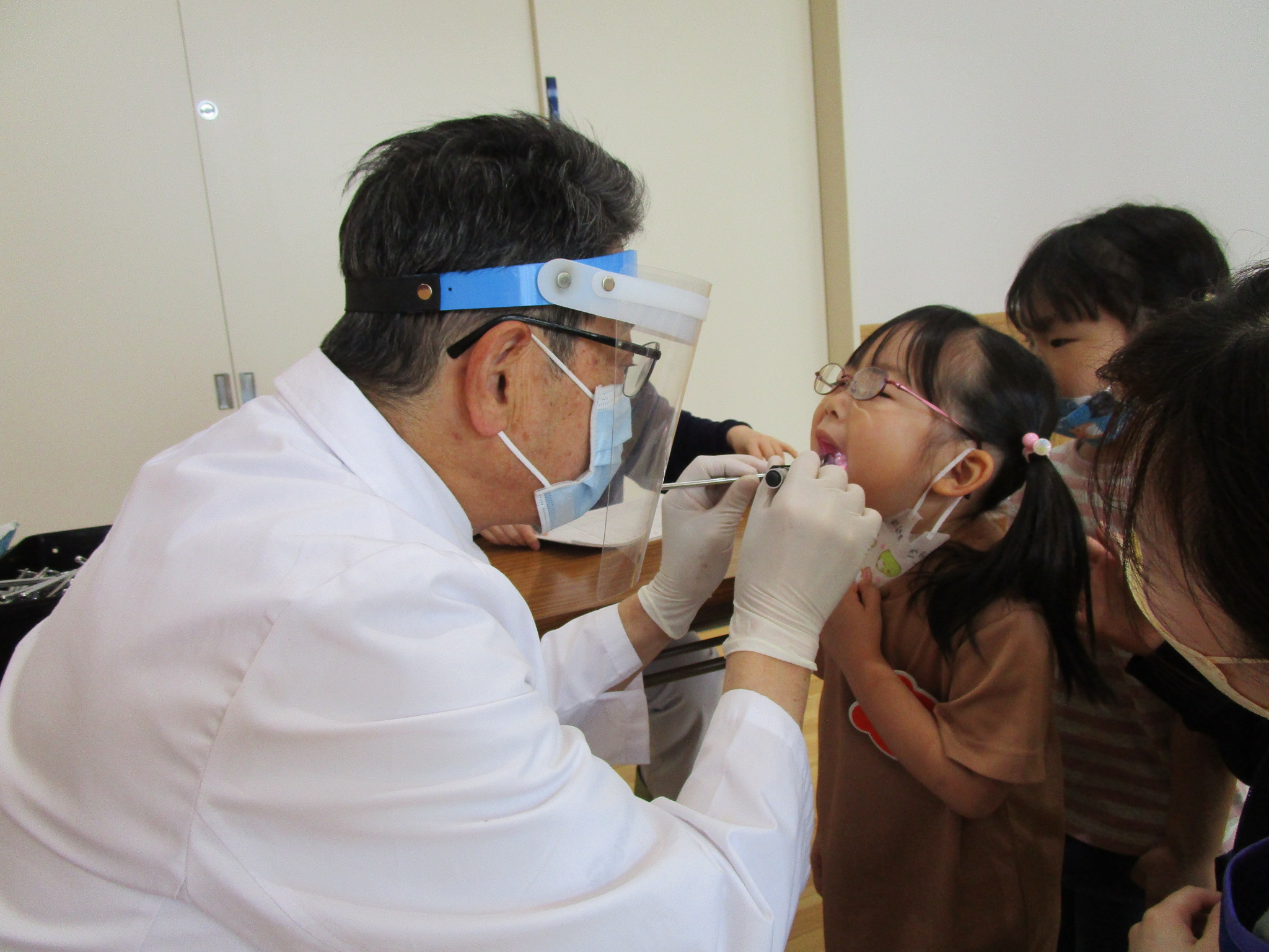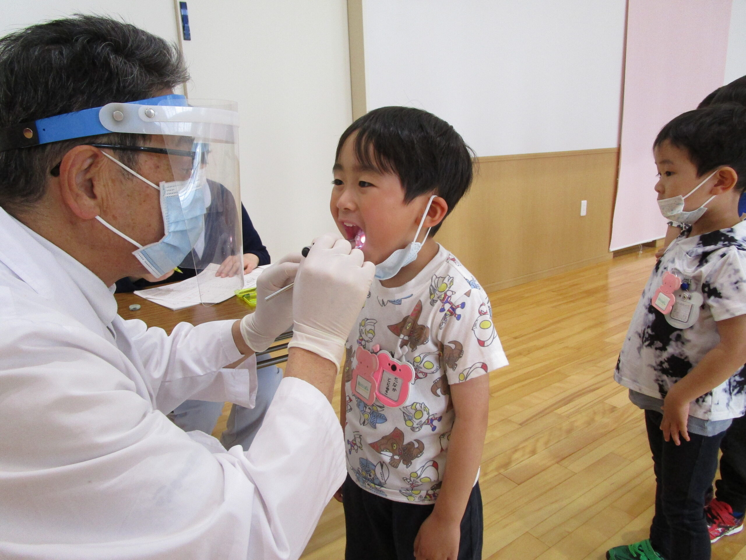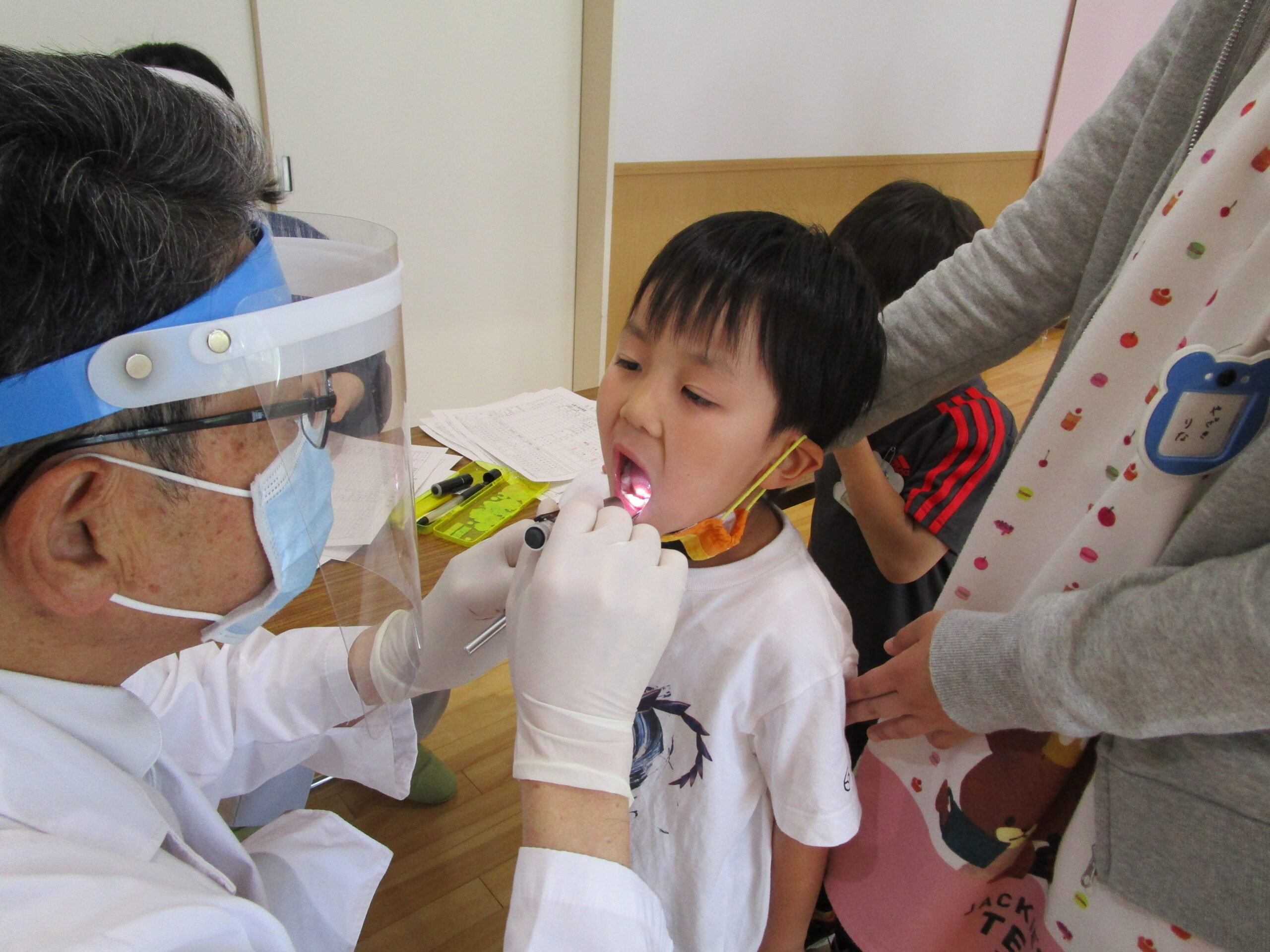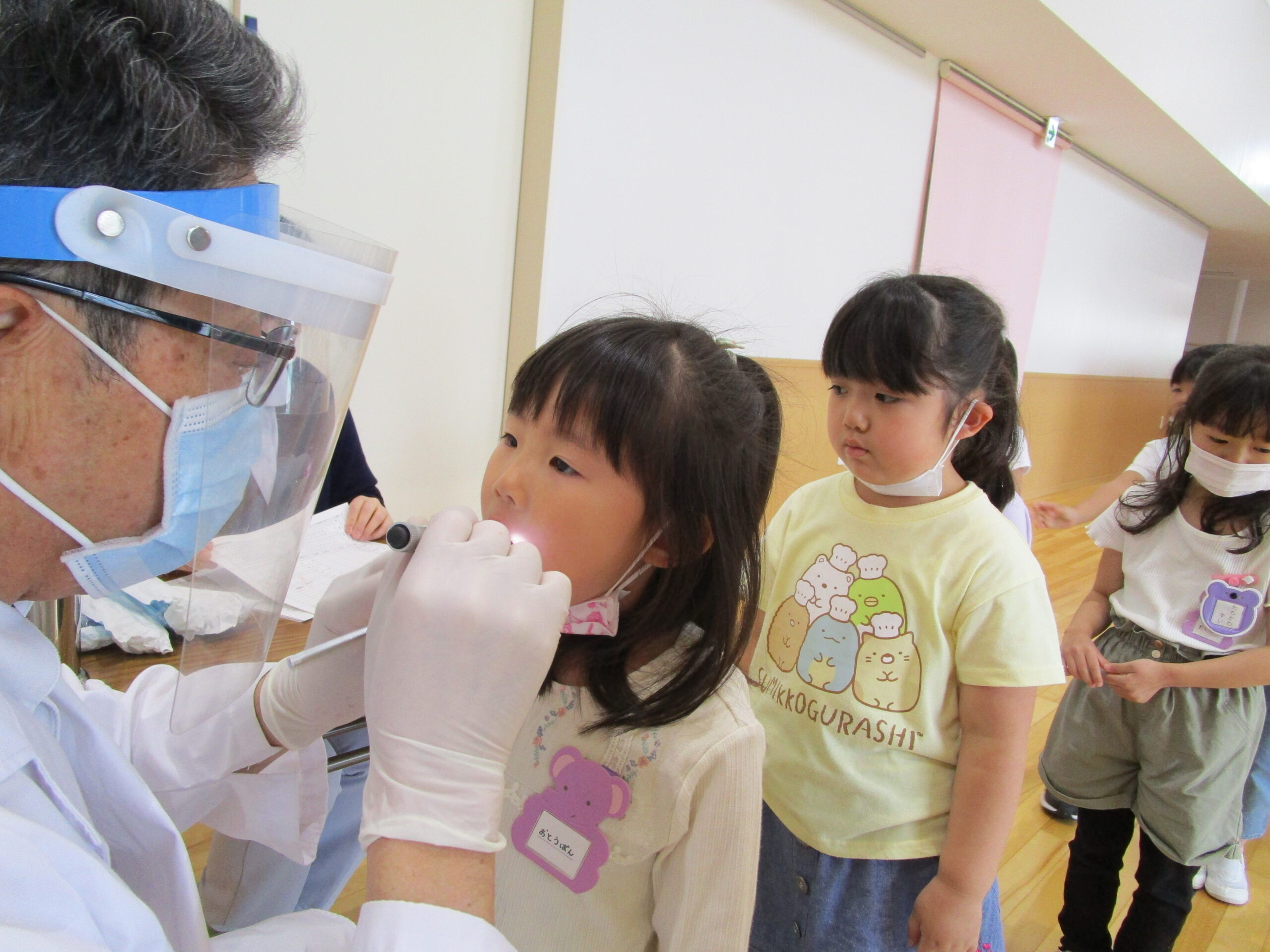 (21)令和4年度「歯科検診」 2022年6月7日 園内ブログ 6月7日(火)に歯科検診を行いました。全園児が歯医者さんに歯を診て頂きました。クラス毎に並んで、各自大きいお口を頑張って開けて、「おねがいします」「ありがとうございました」の挨拶も上手にでき、とてもスムーズに検診が行われました。これからも歯磨きを丁寧に行いましょう。診て頂いた柴田先生有難うございました。 今日の病気欠席者は、発熱1名、咳1名、鼻水2名、体調不良1名です。