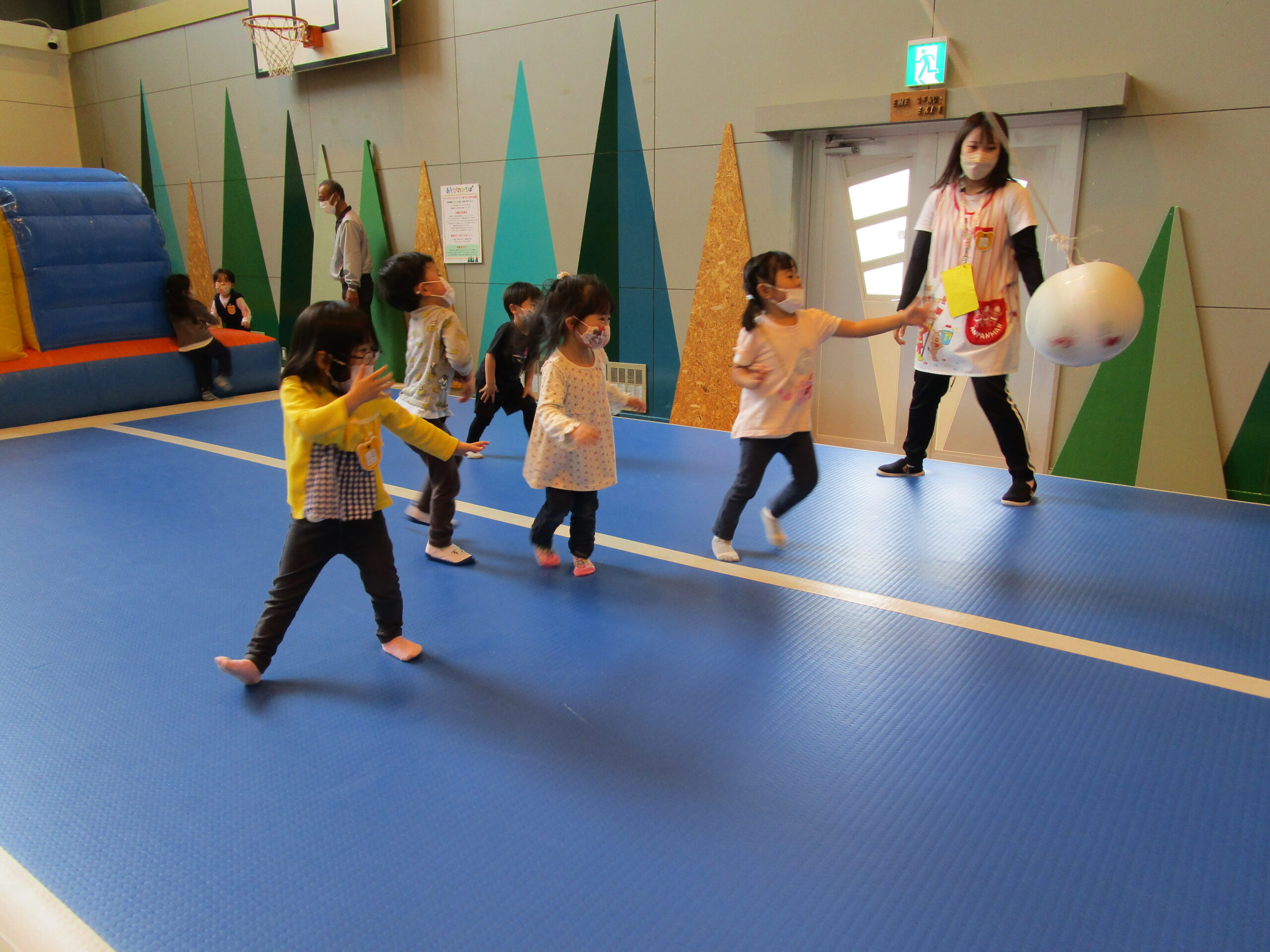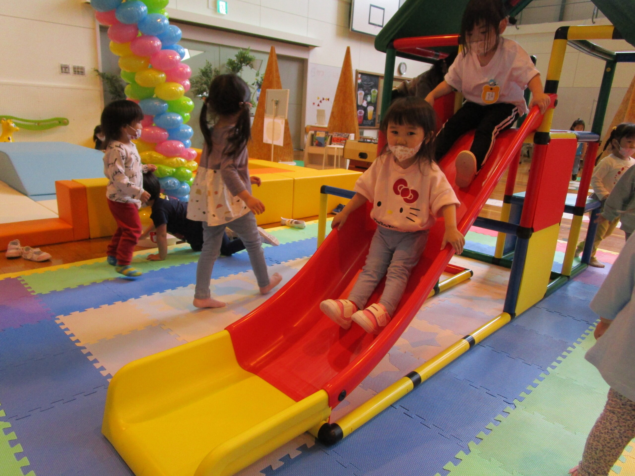 本日6月10日(金)年少学年のバス遠足を実施しました。10時に幼稚園バスでナチュの森まで直行。おにぎりと水筒を持参し少し長い距離ですが気持ちウキウキで出発しました。現地では「あそびのひろば」を貸切し中島幼稚園年少さんの楽園のようでありました。何から遊べばよいのか迷うお友達もいましたが順番を守ることを学びながら、体を一杯動かして沢山楽しんだ時間でした。お昼は手作りのおにぎりを食べて大満足!幼稚園までの帰りのバスでは疲れて眠ってしまうお友達もいましたね。初めて出会った遊具もあり色々な経験が出来た一日でした。