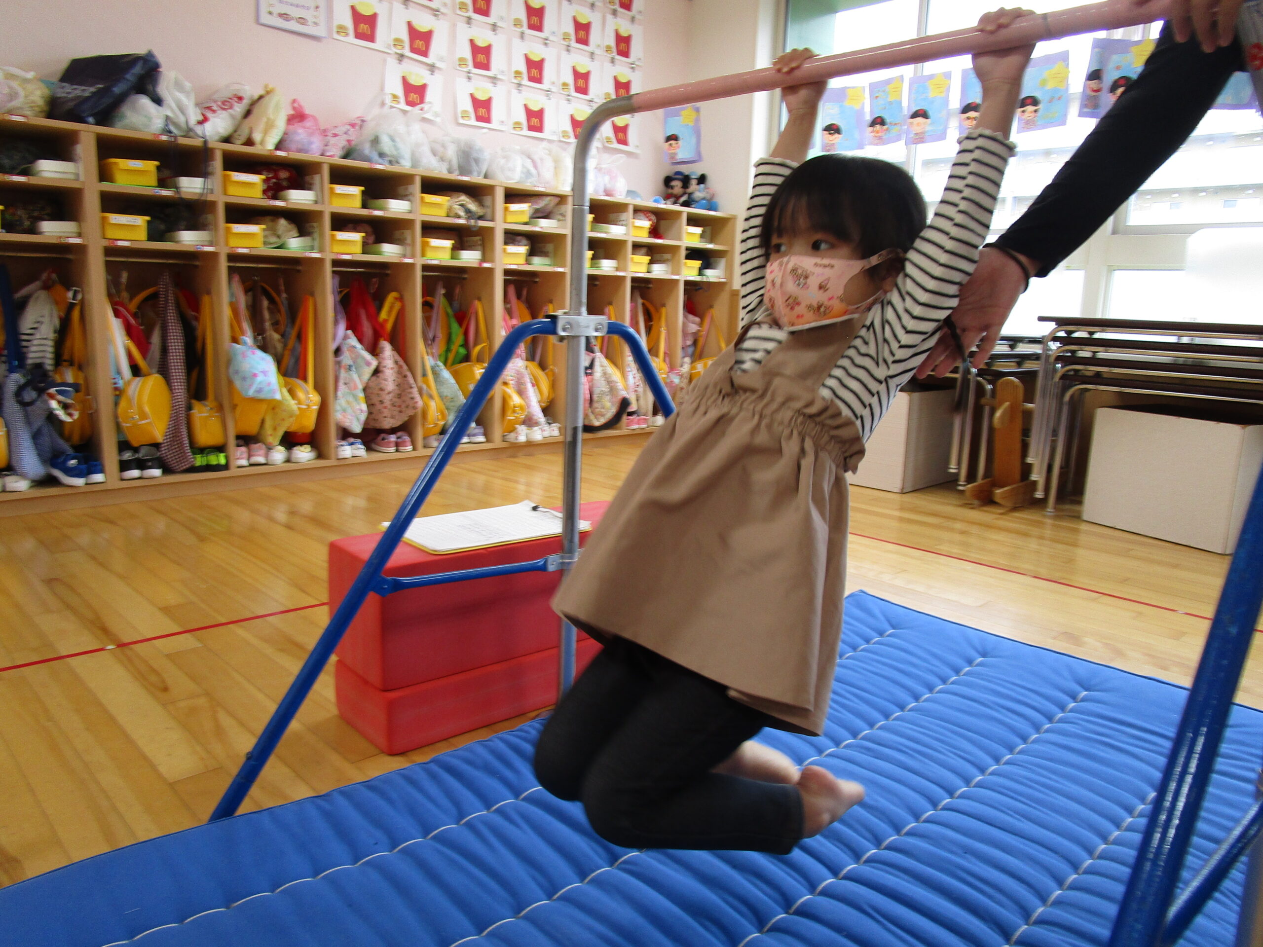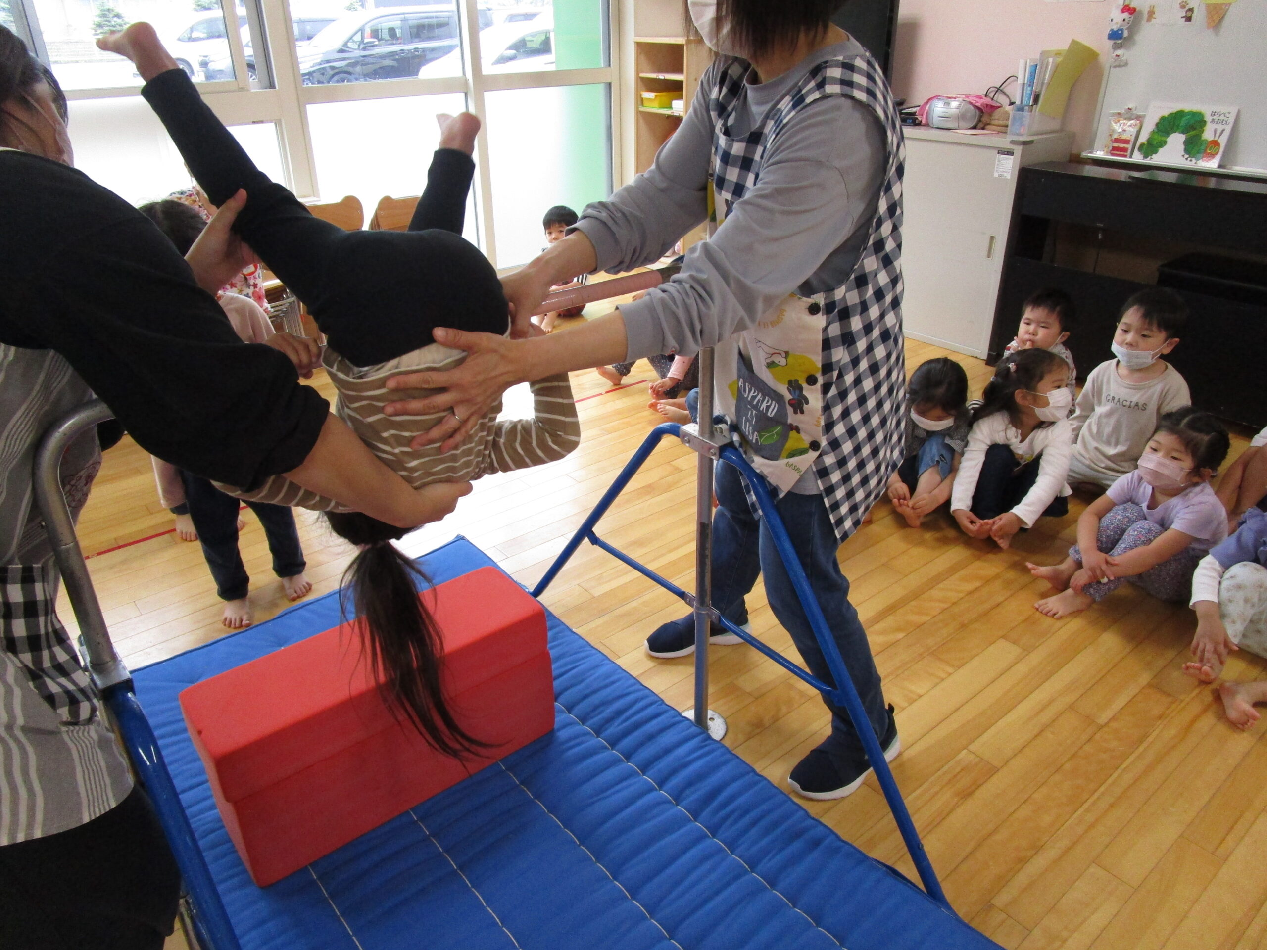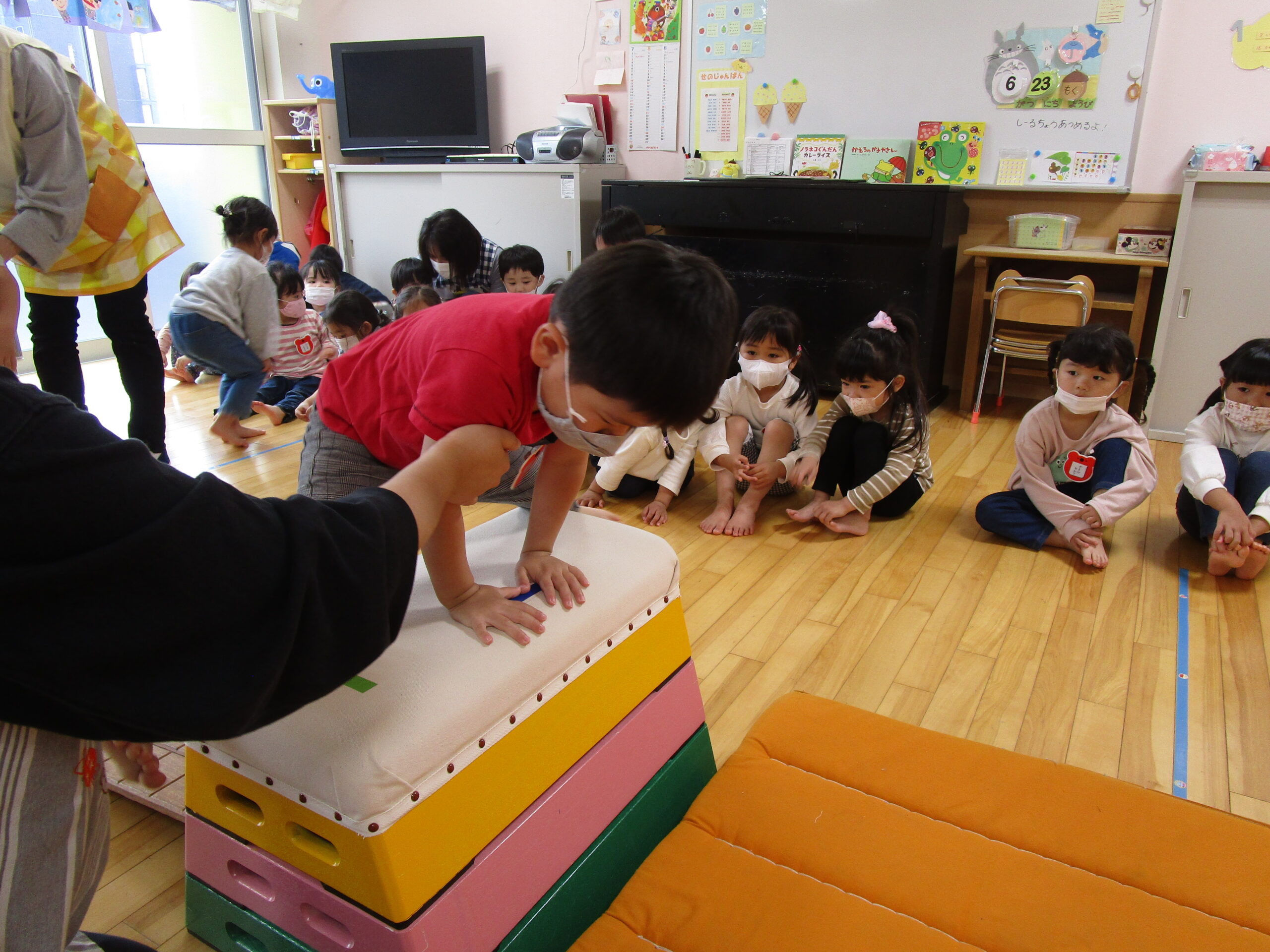 年少学年は、6月23日(木)にお部屋で運動遊び、24日(金)に折り紙製作を行いました。