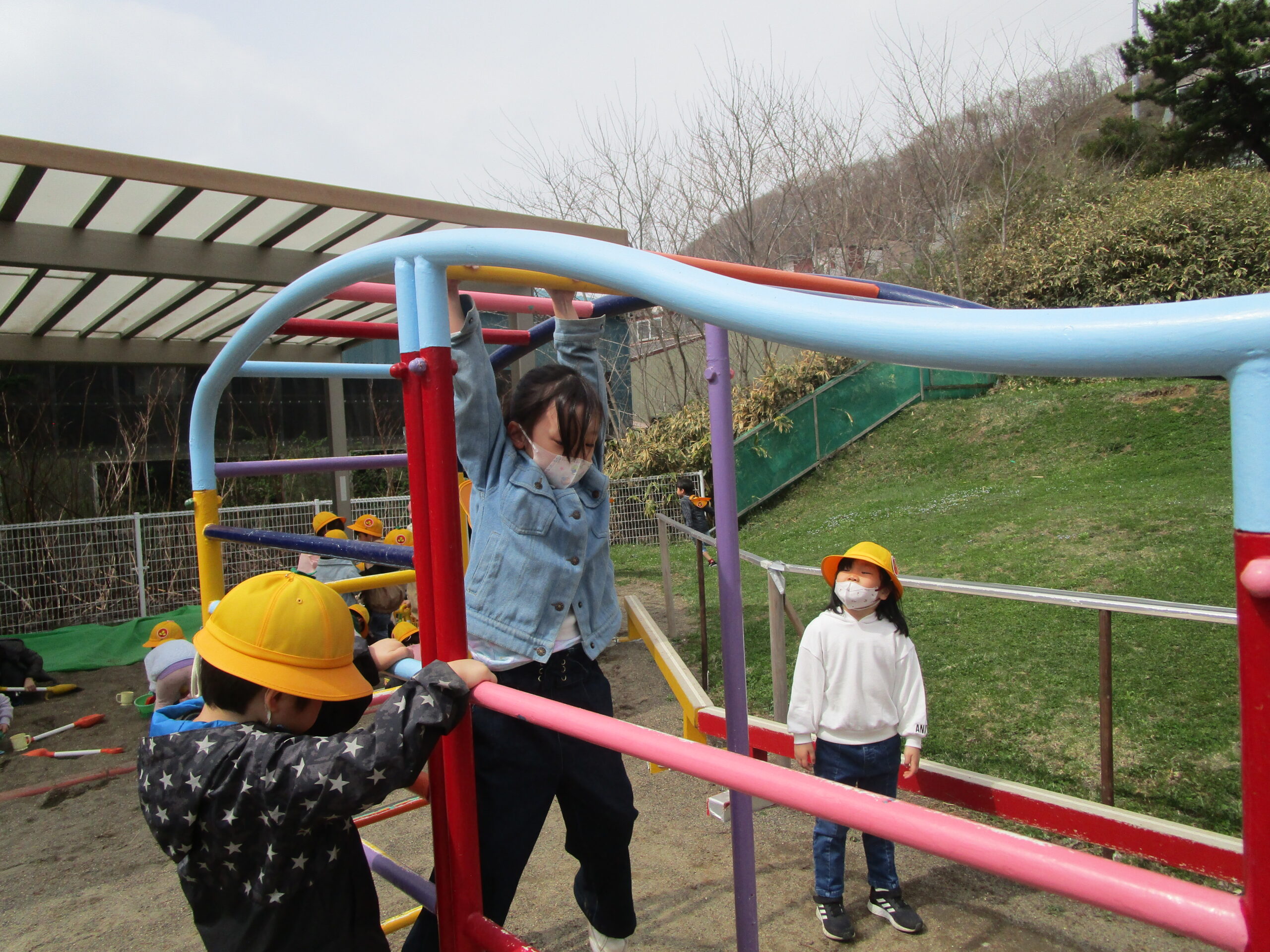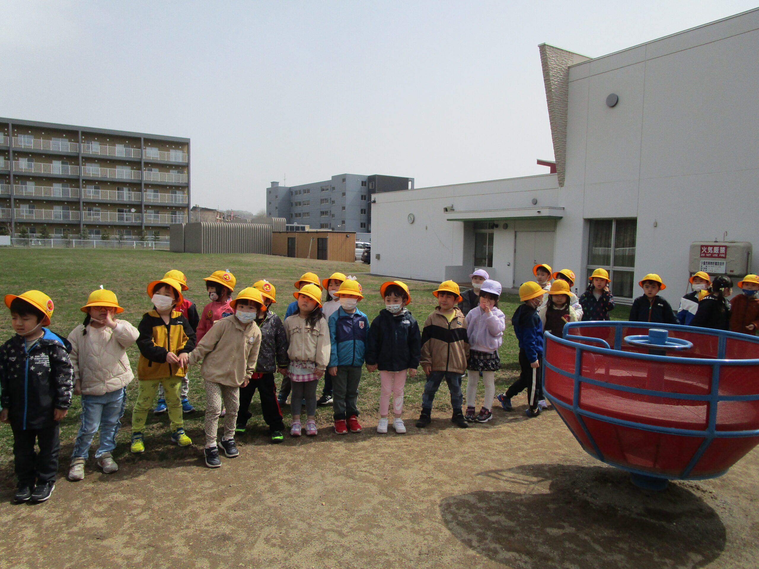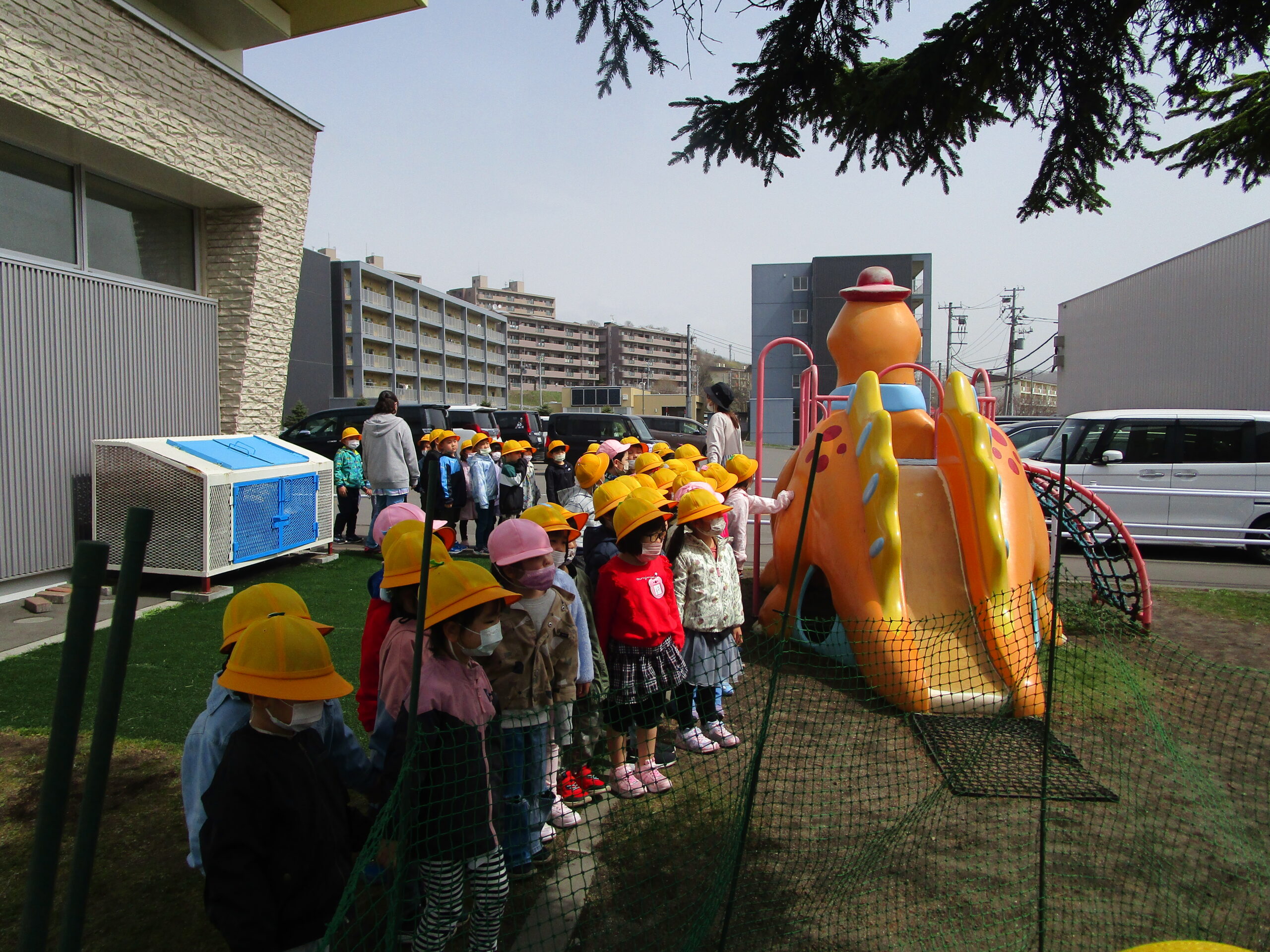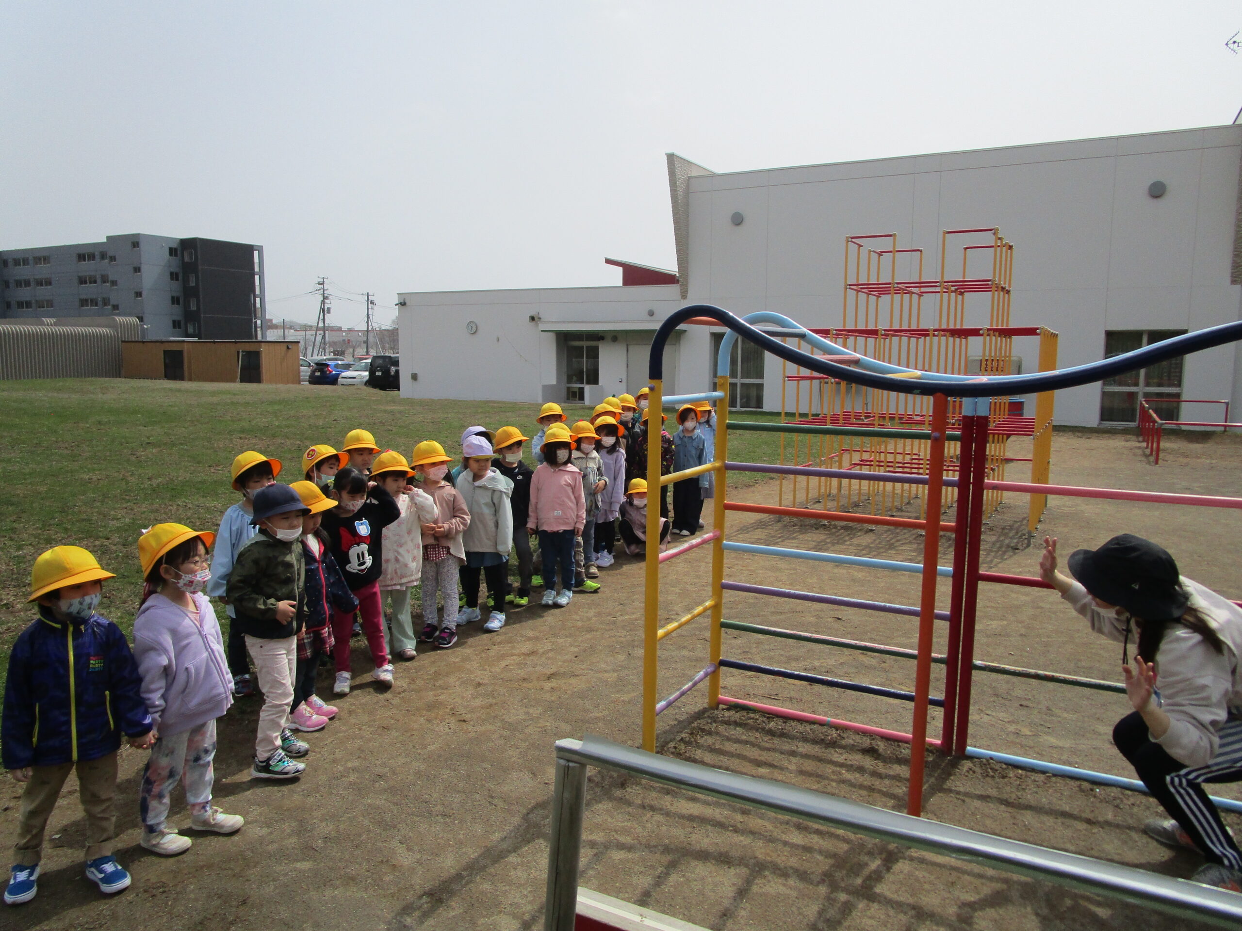 今日4月14日(金)年長学年は園外見学を行いました。4月12日には、園内見学を終え、今日はお外のお約束事や遊具のルールを子どもたちと確認しました。遊び方や注意事項を伝えていくと子どもたちからの反応も多くありみんなで再確認をすることができました。園外見学後には、みんなで元気一杯体を動かしてお外遊びを行いました。気温も高く上着を脱いで鬼ごっこやかけっこを楽しむ姿も見られました。今後も天候のいい日にはお外遊びに行きたいと思います♪