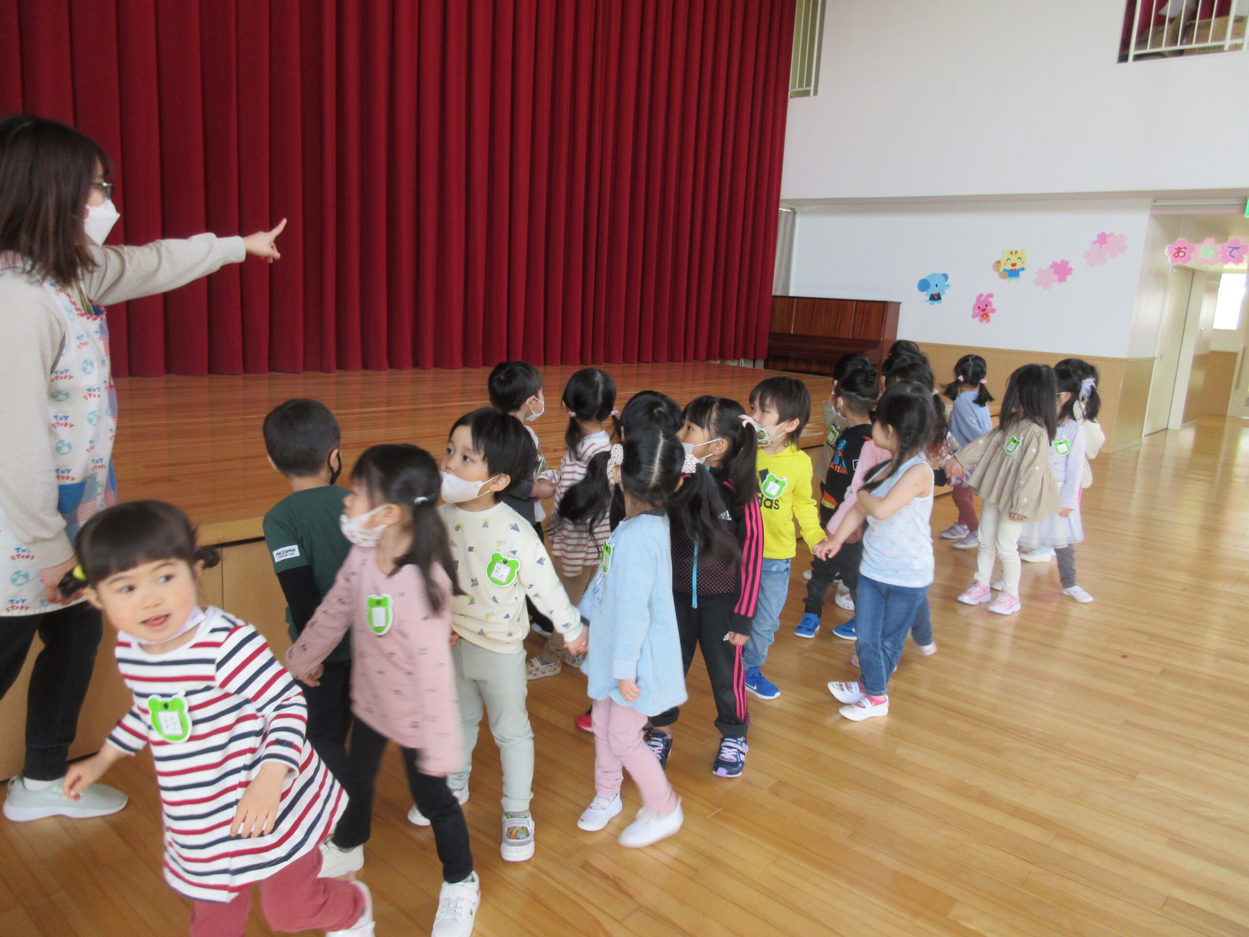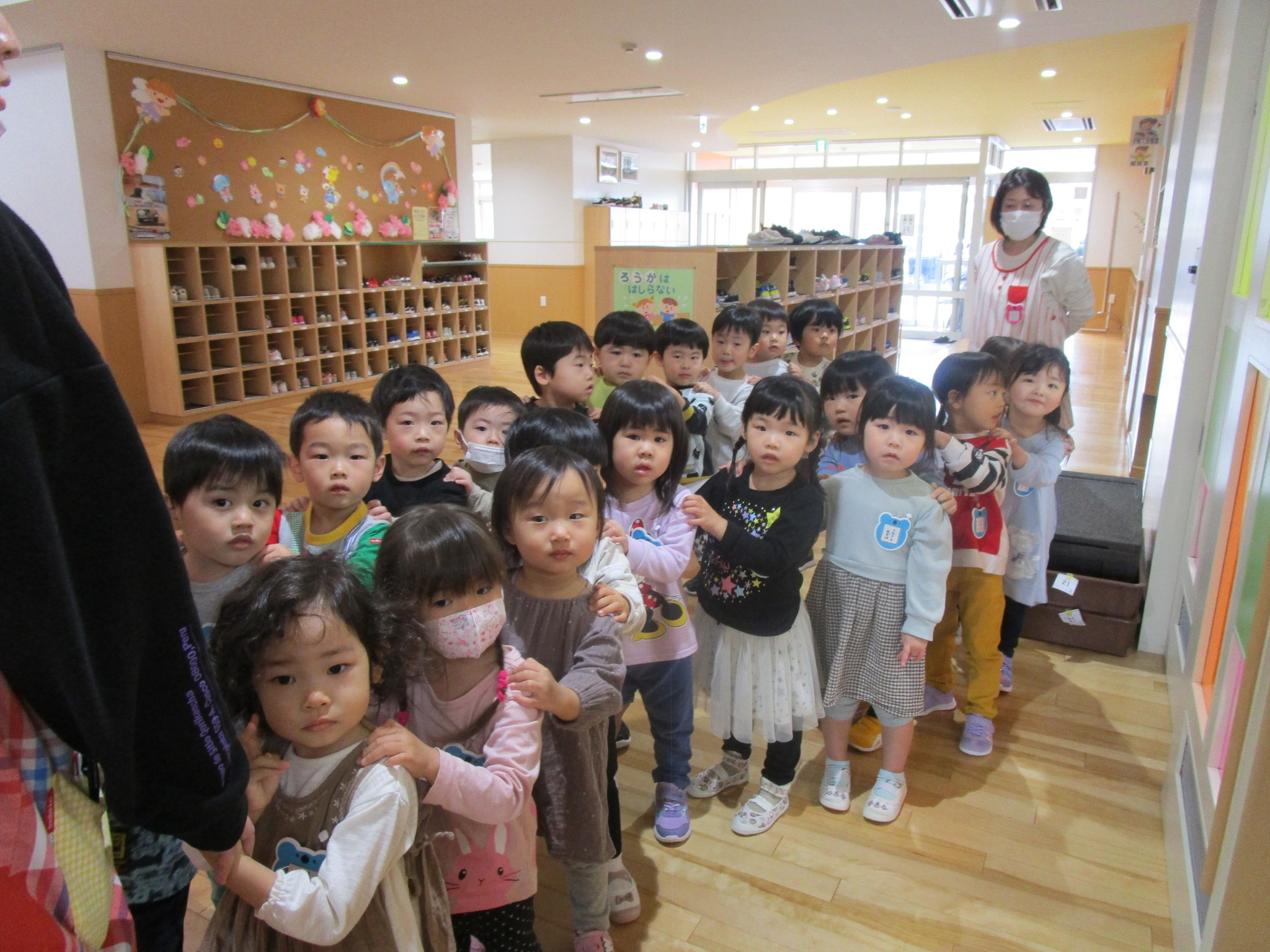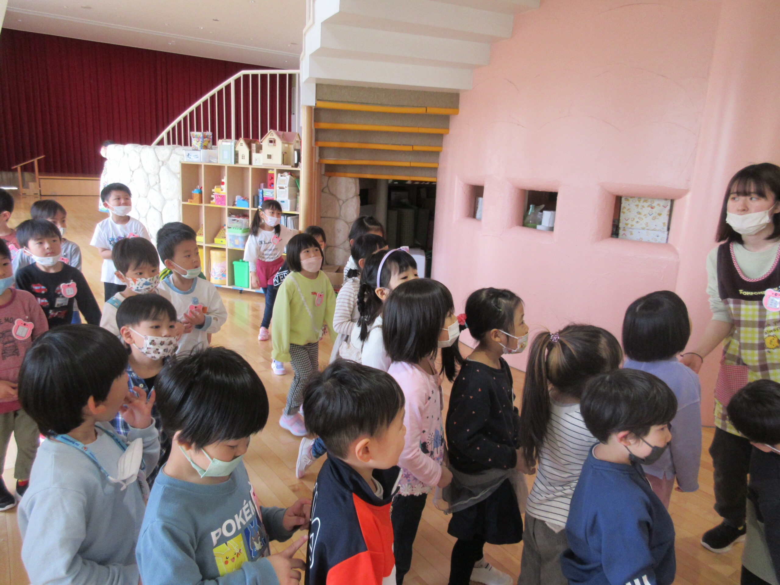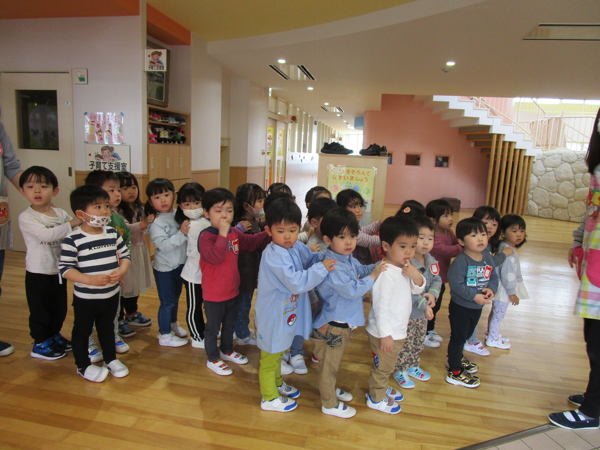 (5)令和5年度「園内見学」 2023年4月20日 園内ブログ 年長4月12日(水)年中4月13日(木)年少4月20日(木)各学年で園内見学を行いました。各お部屋のお約束事や新しくなった先生の場所やホールの玩具の使い方などを確認しました。上手に並んで歩くことができ楽しく幼稚園を探検することができました。 今日の病気欠席者は、風邪3名、発熱1名、咳1名、鼻水3名、腹痛・下痢1名、大事をとって3名です。 <年少> <年中> <年長> 🍙今週の給食🍙
