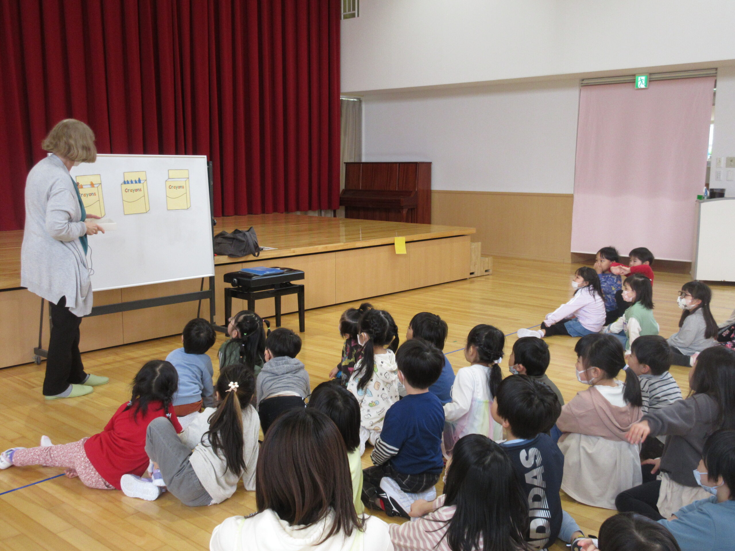 午後からは今年度初めての年長学年の英語学習に取り組みました。みんな楽しんで参加し、質問に答えたり一緒に歌ったりして心弾む時間を過ごしました。