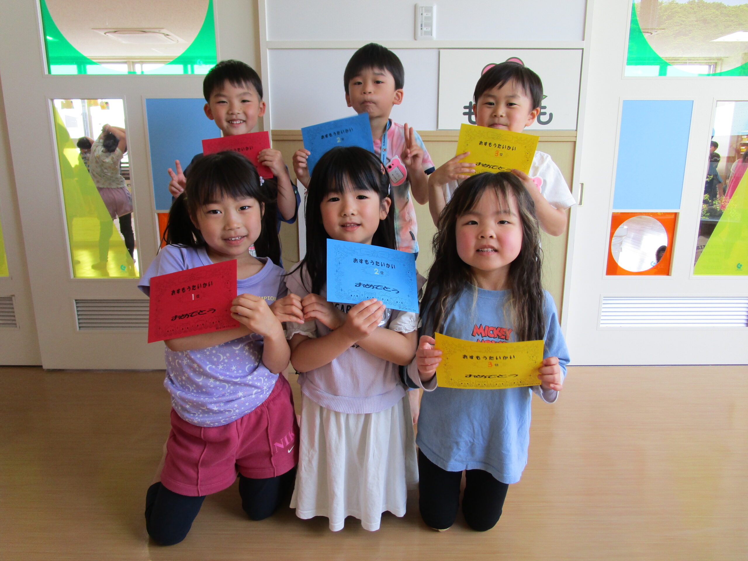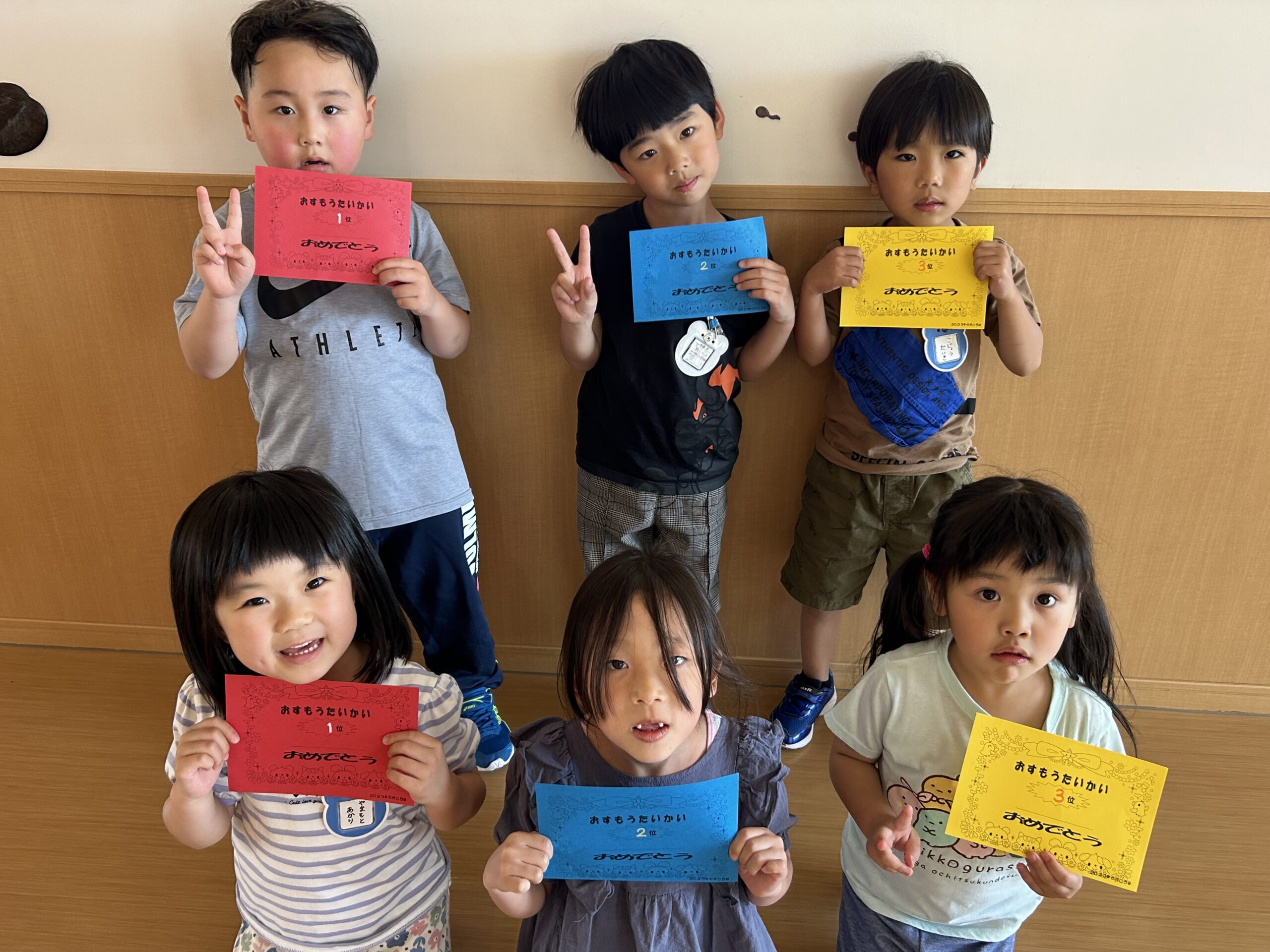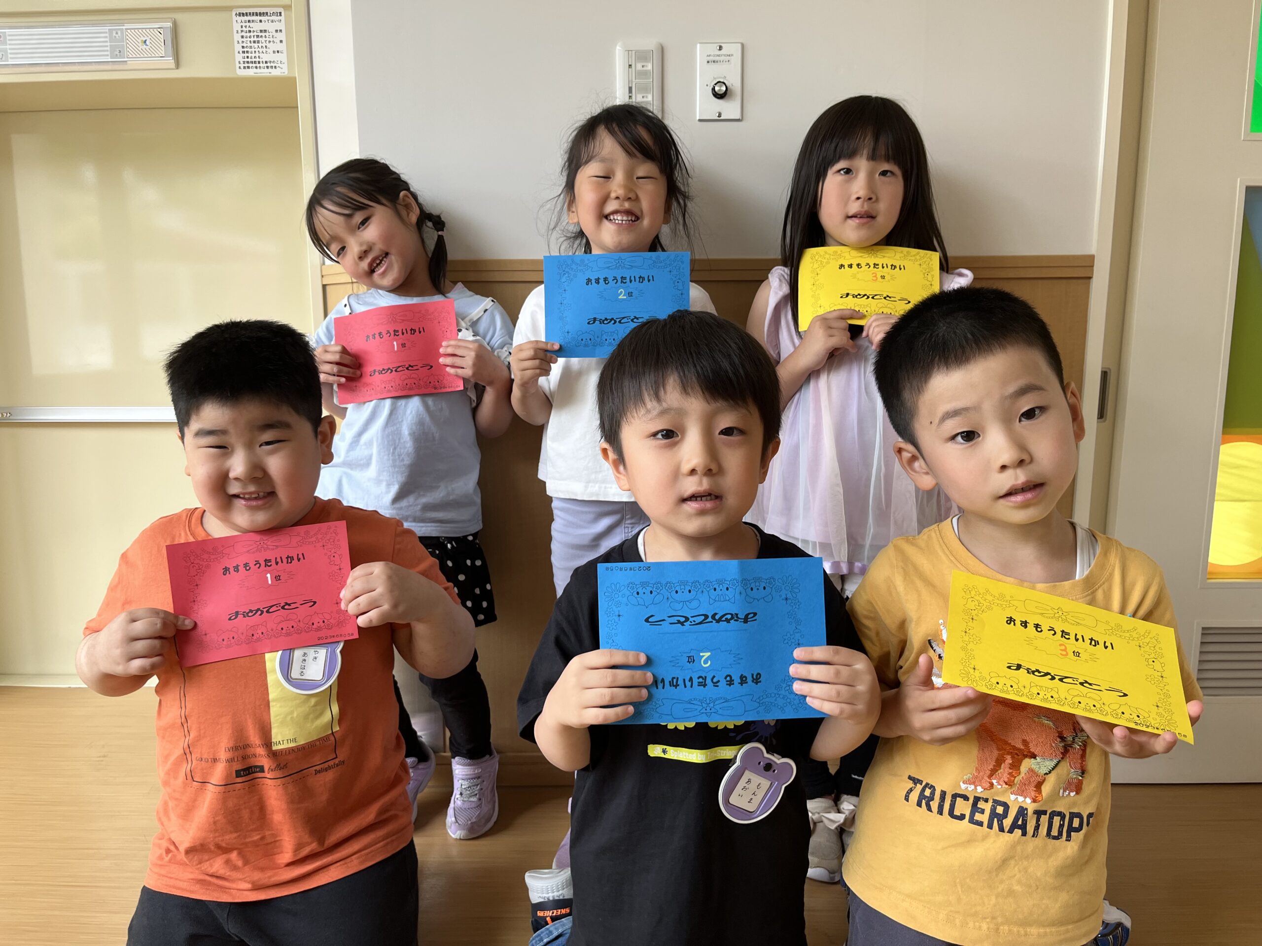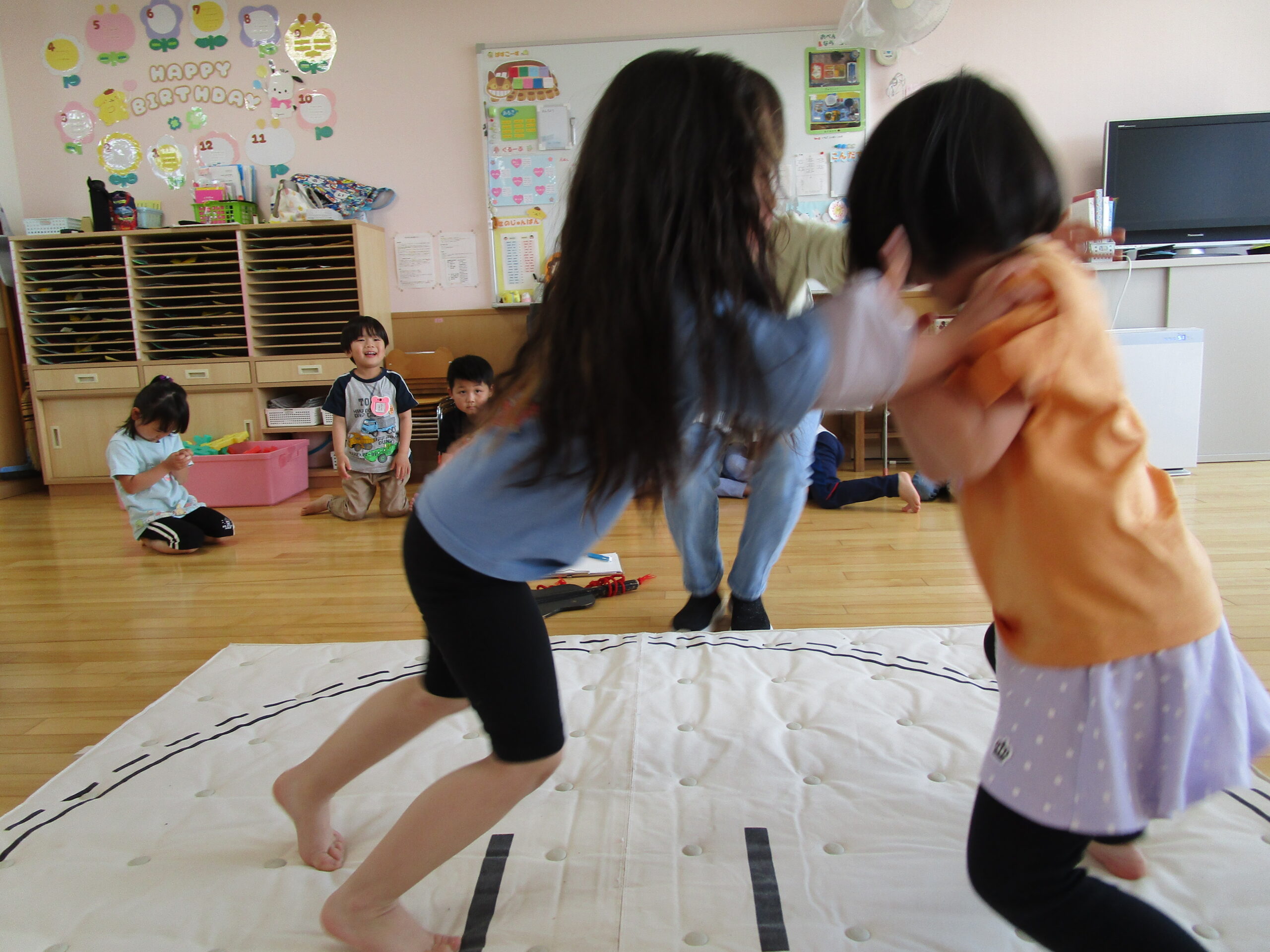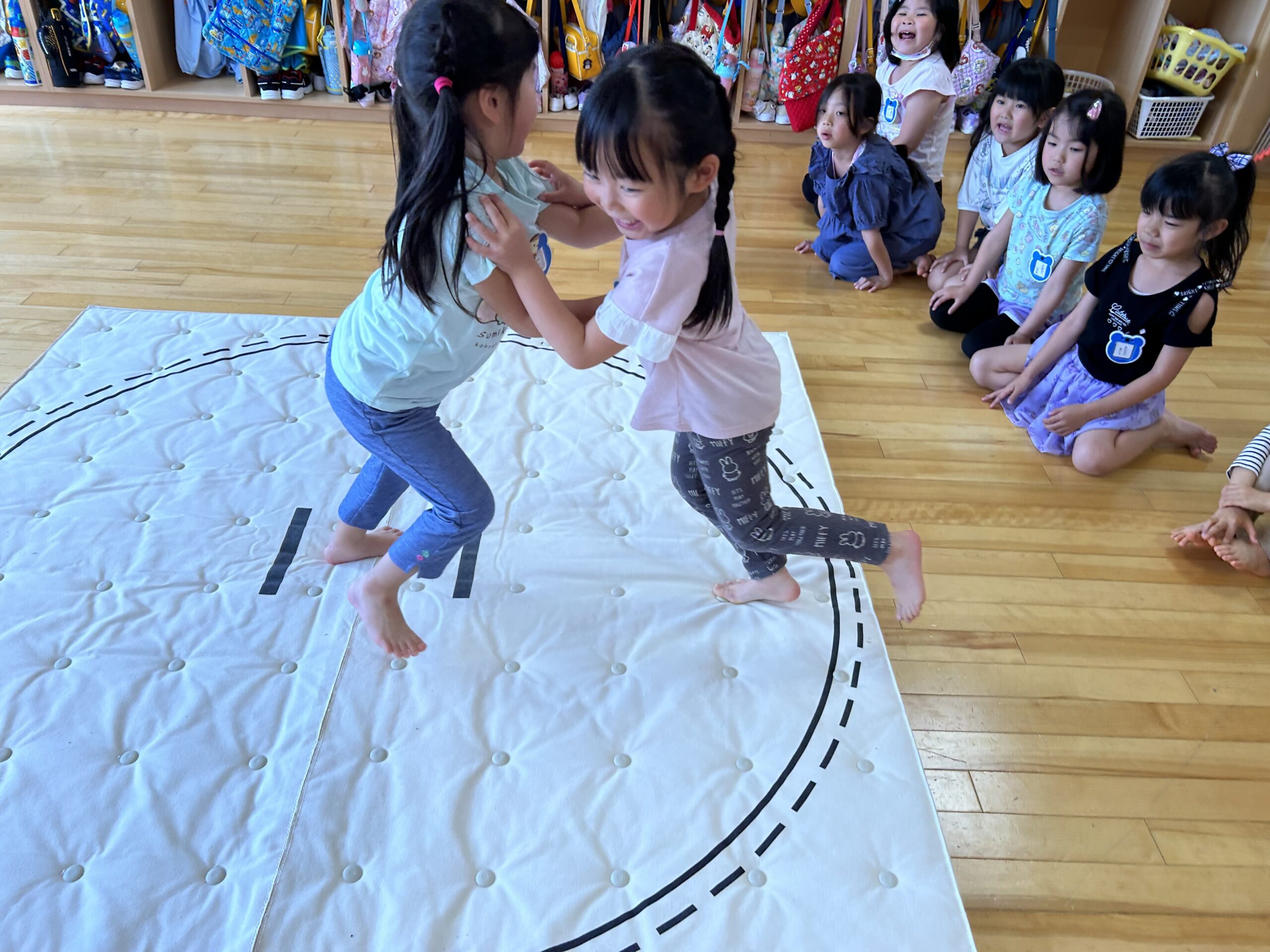 また、本日はお部屋でおすもう大会を行いました。年長さんになって初めてのおすもう大会のため、緊張しているお友達や意気込んでいるお友達がいました。負けてしまい悔し涙を流すお友達もいましたが、優しい言葉を掛けたりと励まし合う姿も多く見られていました。次回のおすもう大会に向けて、ご飯をいっぱい食べて力をつけ、良い結果を出せるように頑張ってほしいと思います。