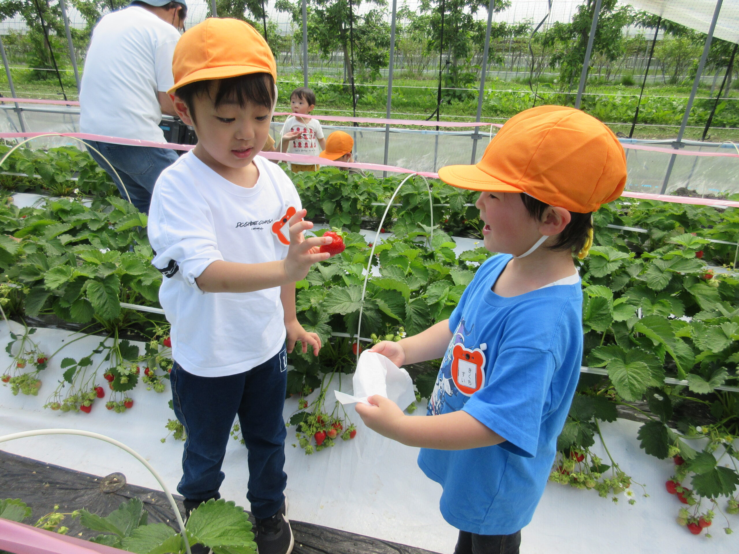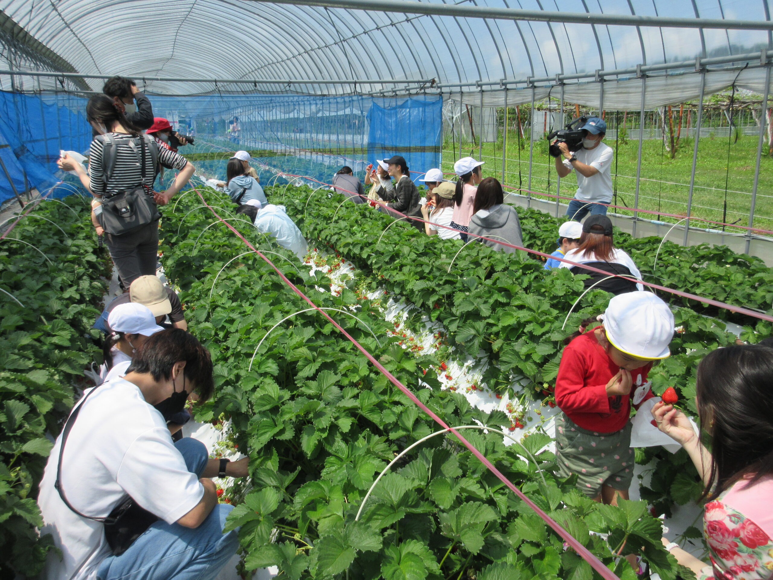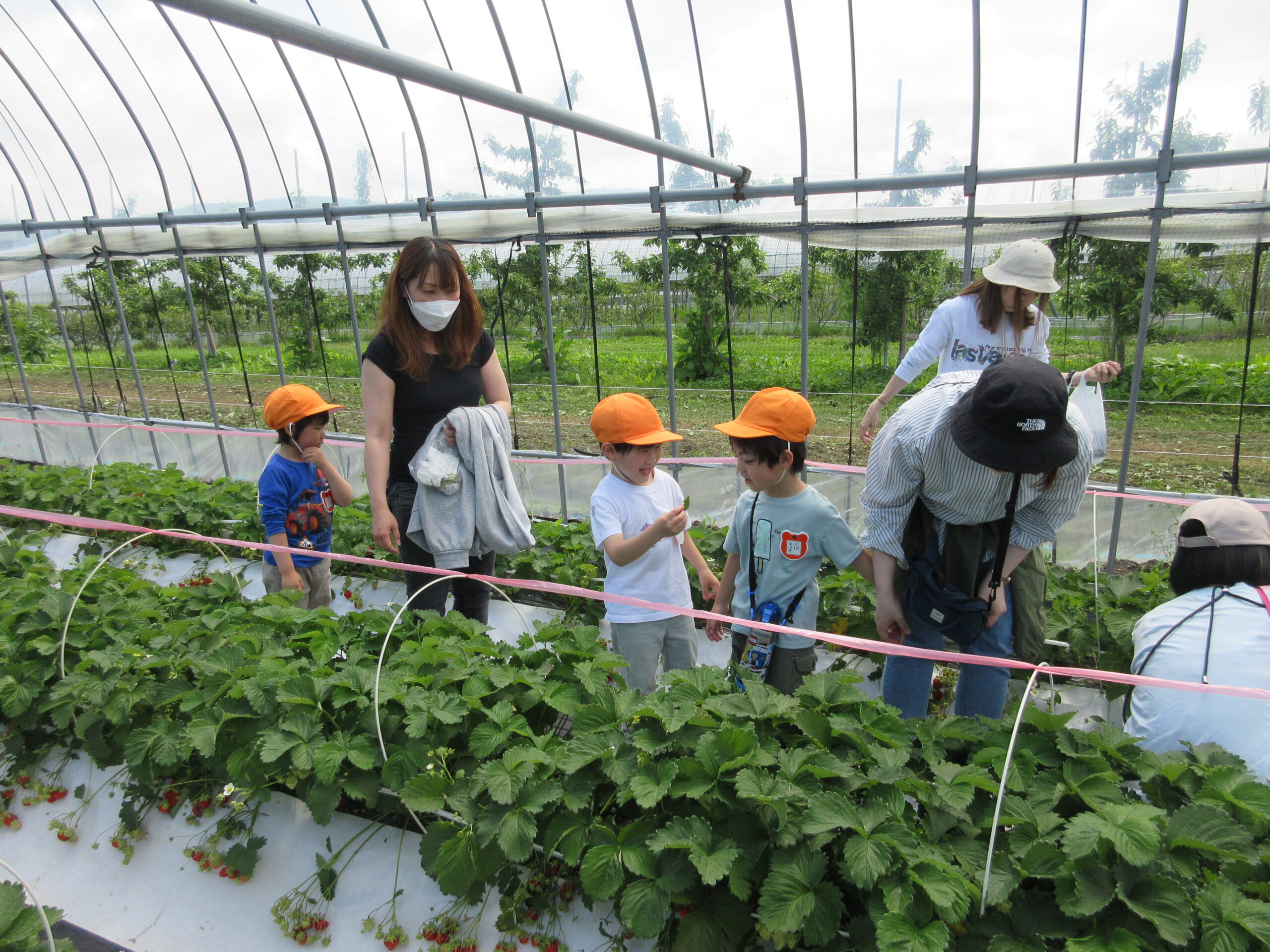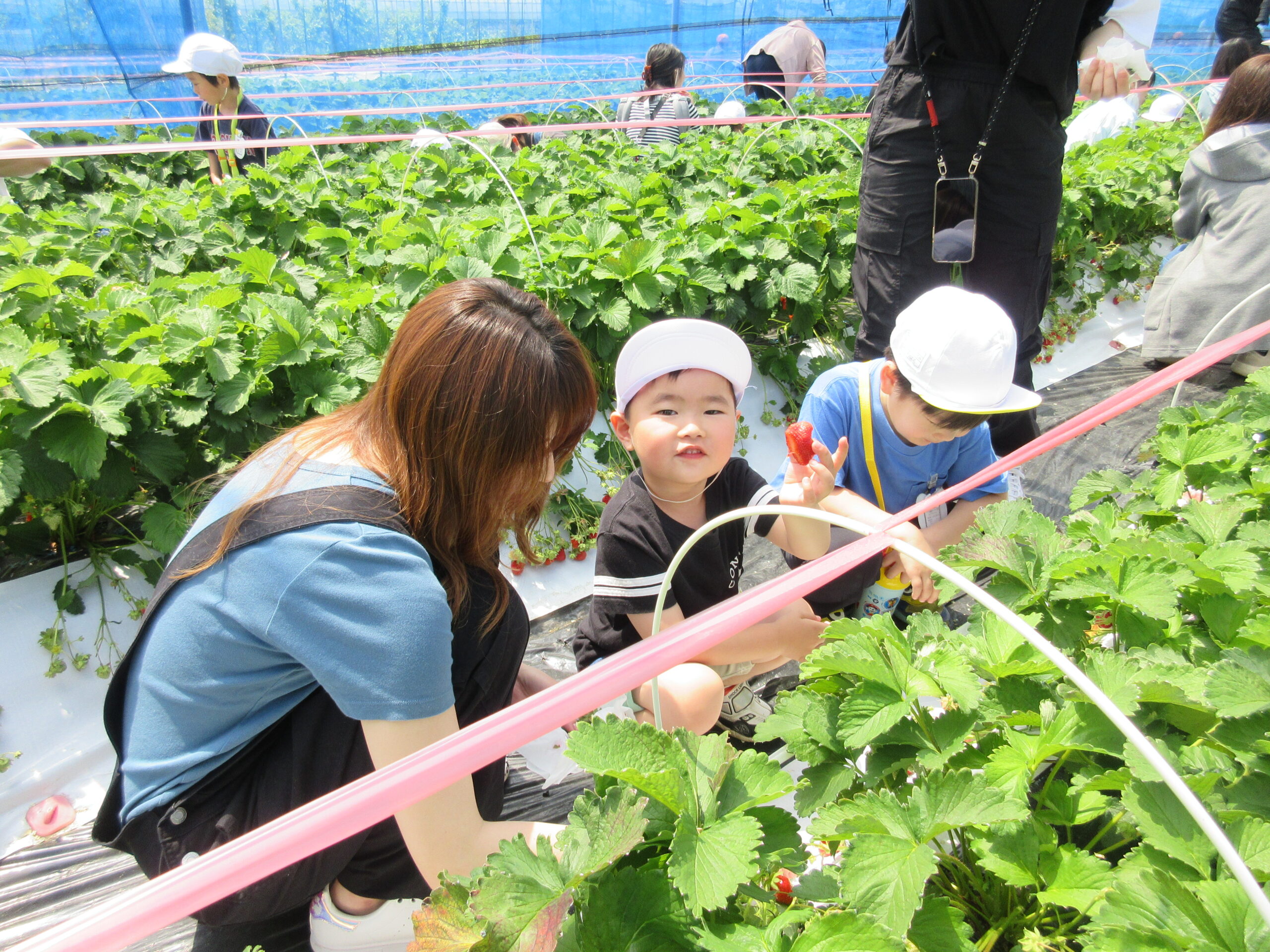 先週に続きまして本日6月14日(水)は年中学年の親子バス遠足に行って来ました。現地では晴天に恵まれ、子ども達は芝生を走り回り鬼ごっこをしているお友だちもいました。到着して親子で写真撮影をし、イチゴ狩りに出発。ハウスの中には大小真っ赤ないちごが沢山連なっており、ワクワク、ウキウキしながら個々で選びながら頂きました。行きのバスの中では年長さん同様、シルエットクイズや先生クイズをして楽しみました。大満足のいちご狩り🍓保護者の皆様ご協力ありがとうございました。