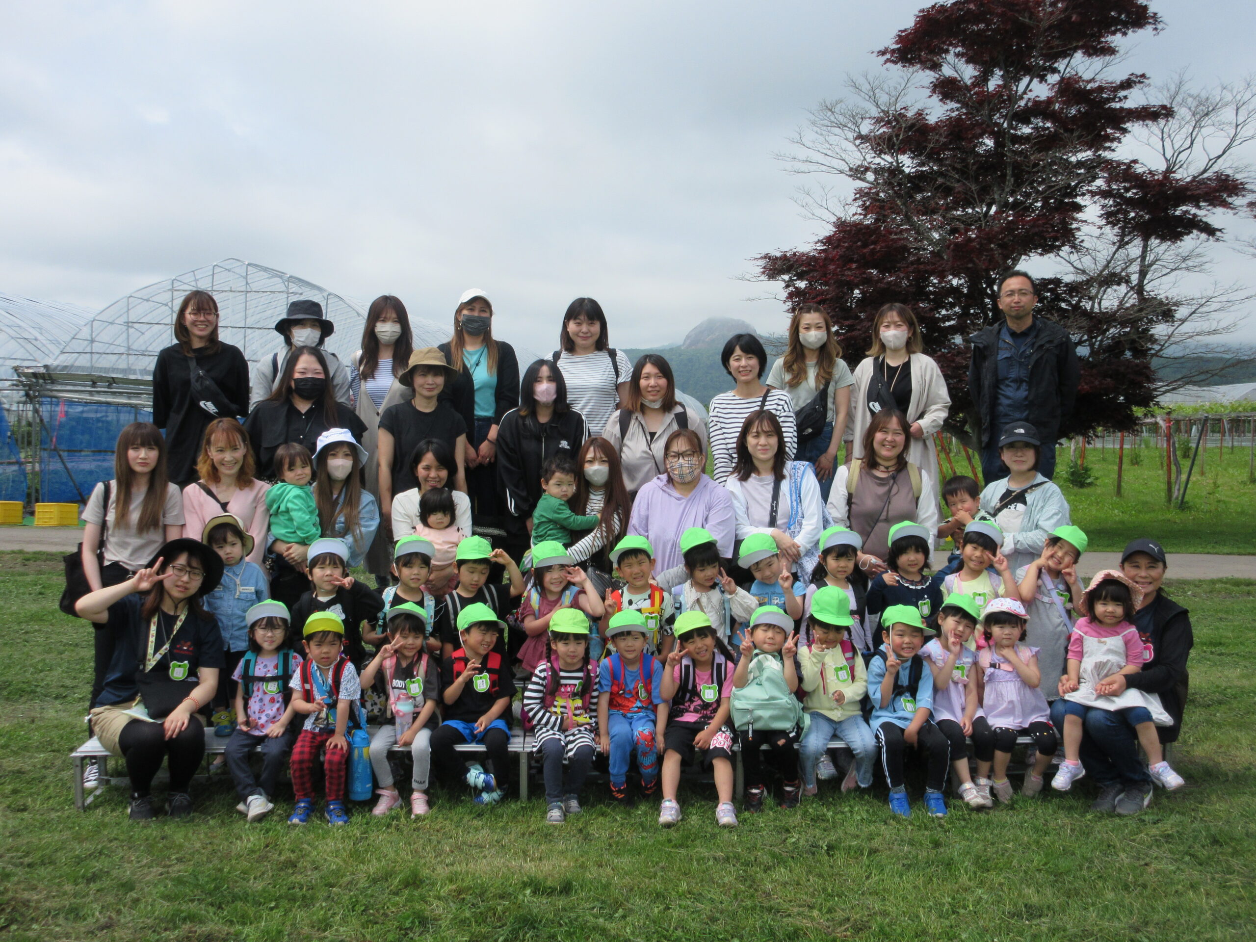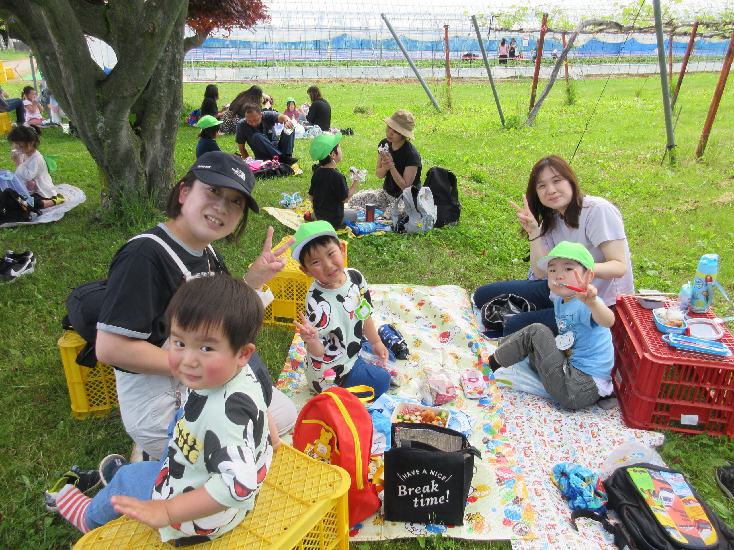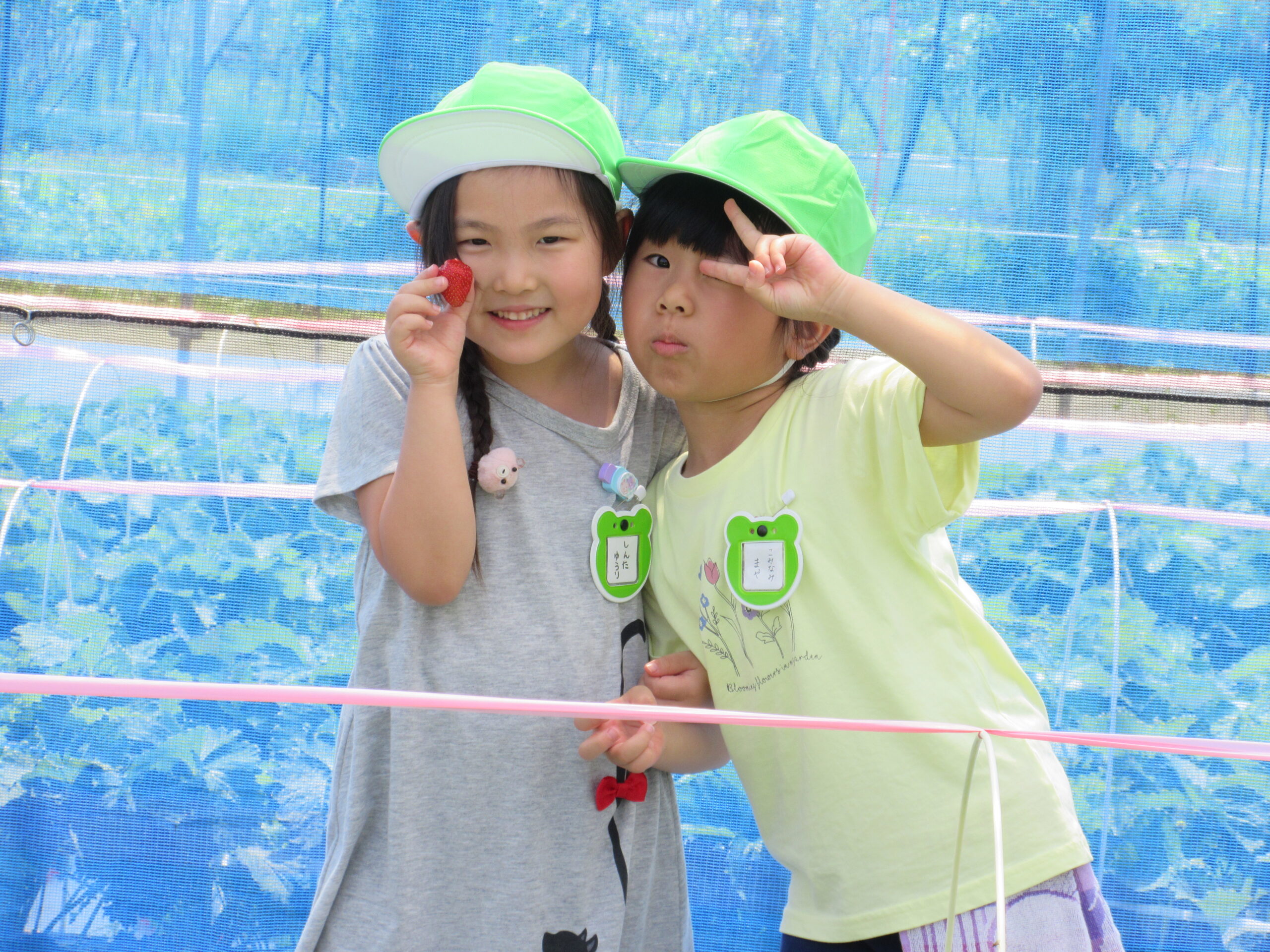 先週に続きまして本日6月14日(水)は年中学年の親子バス遠足に行って来ました。現地では晴天に恵まれ、子ども達は芝生を走り回り鬼ごっこをしているお友だちもいました。到着して親子で写真撮影をし、イチゴ狩りに出発。ハウスの中には大小真っ赤ないちごが沢山連なっており、ワクワク、ウキウキしながら個々で選びながら頂きました。行きのバスの中では年長さん同様、シルエットクイズや先生クイズをして楽しみました。大満足のいちご狩り🍓保護者の皆様ご協力ありがとうございました。