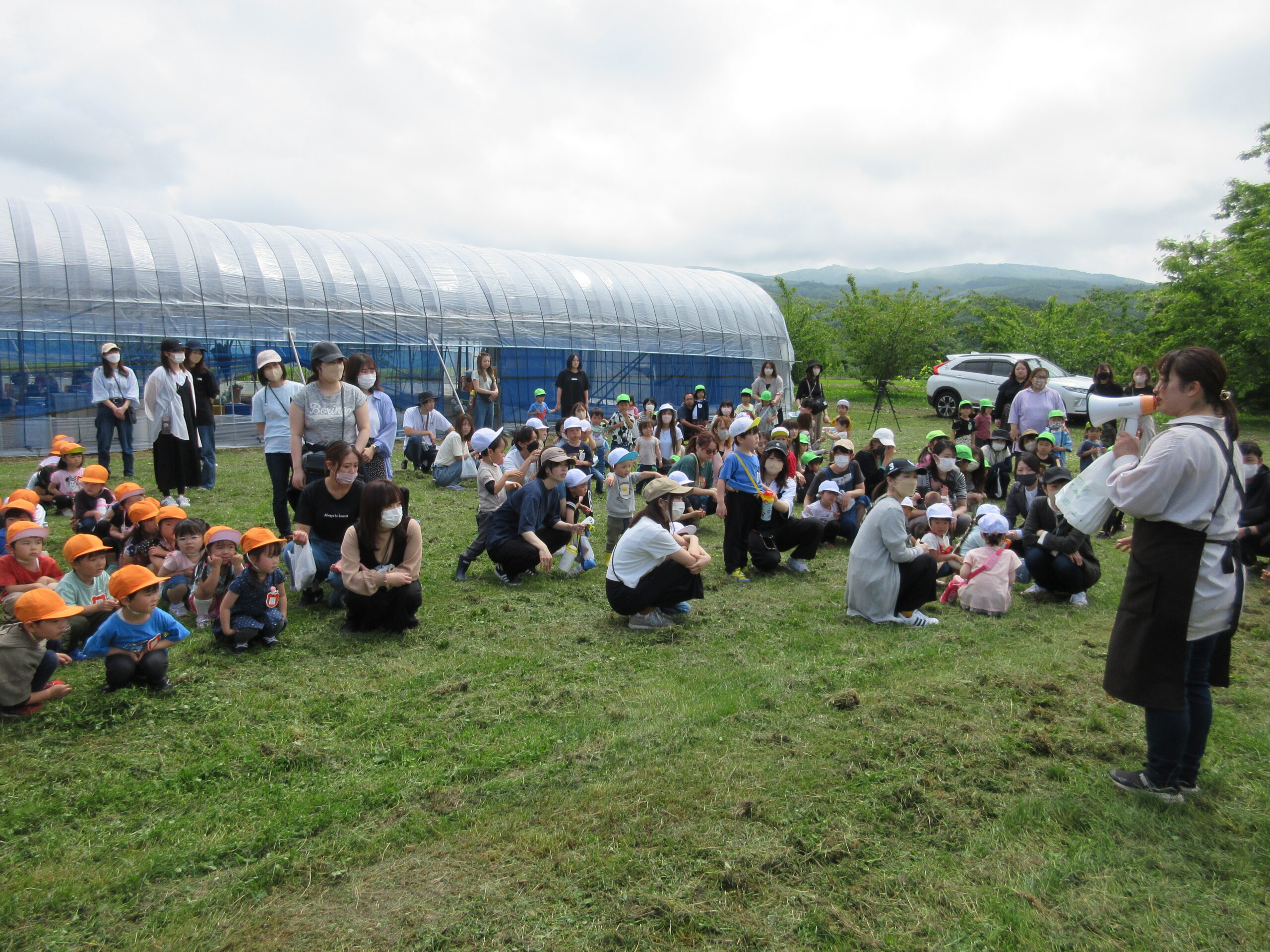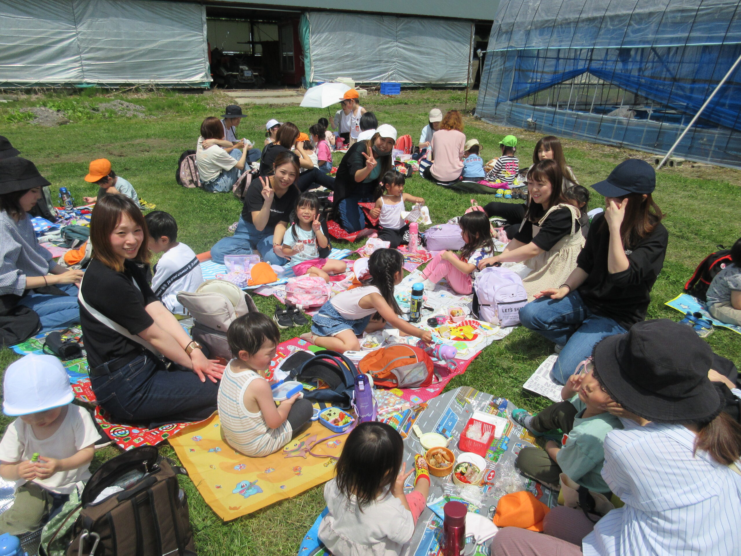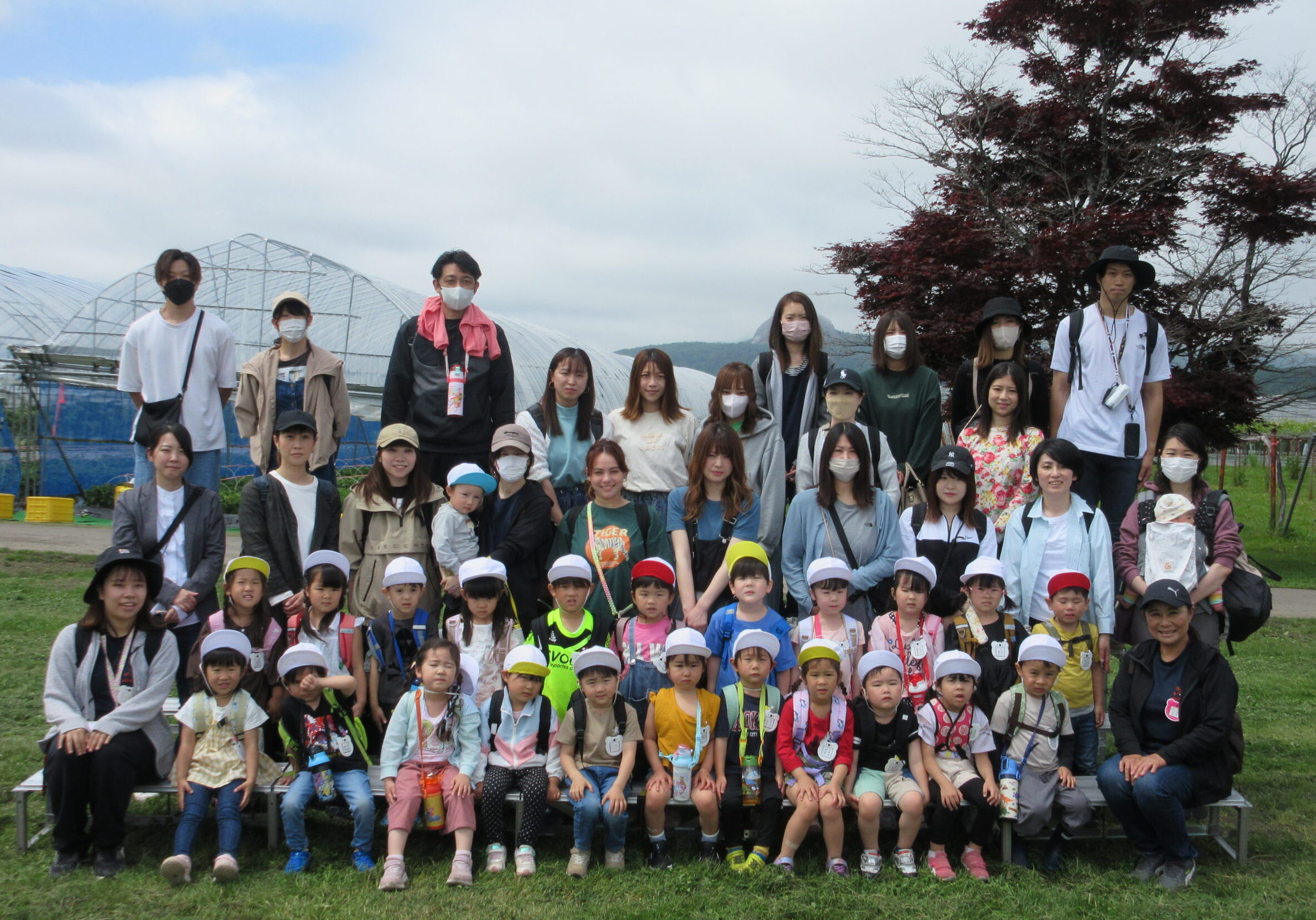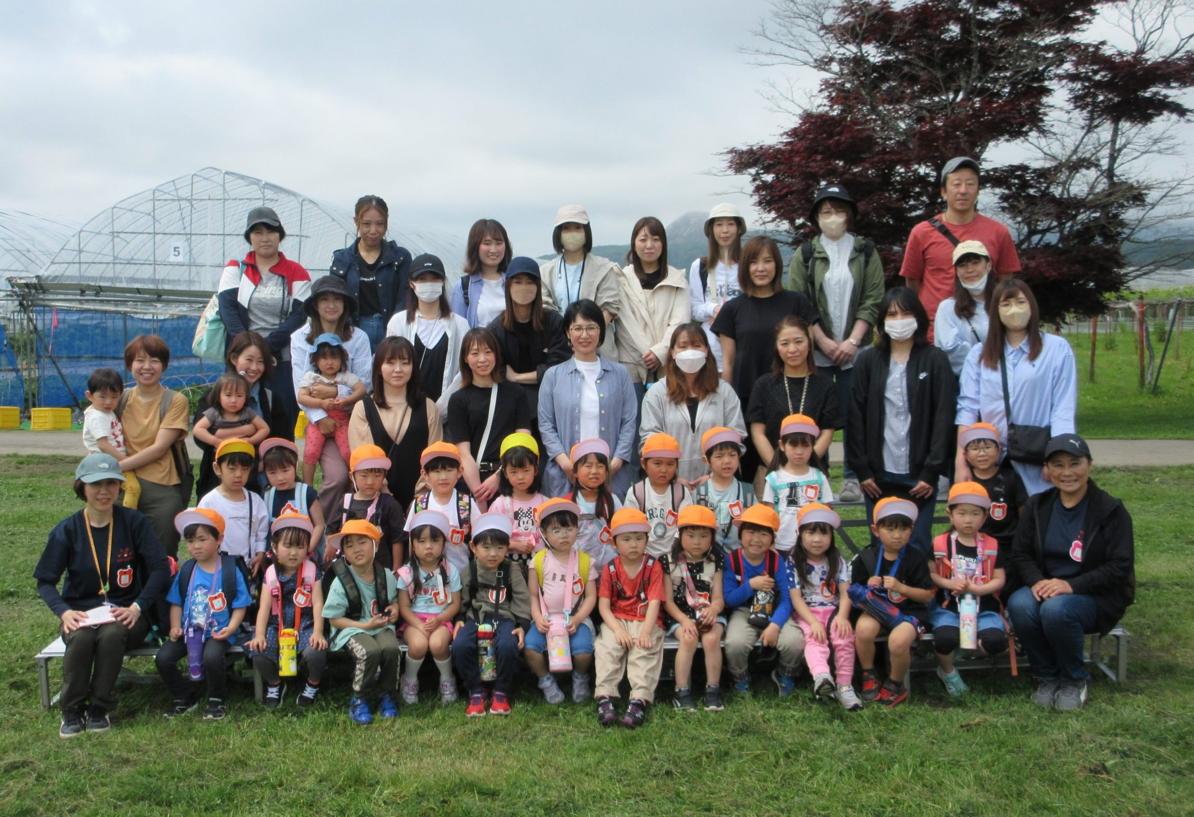 先週に続きまして本日6月14日(水)は年中学年の親子バス遠足に行って来ました。現地では晴天に恵まれ、子ども達は芝生を走り回り鬼ごっこをしているお友だちもいました。到着して親子で写真撮影をし、イチゴ狩りに出発。ハウスの中には大小真っ赤ないちごが沢山連なっており、ワクワク、ウキウキしながら個々で選びながら頂きました。行きのバスの中では年長さん同様、シルエットクイズや先生クイズをして楽しみました。大満足のいちご狩り🍓保護者の皆様ご協力ありがとうございました。