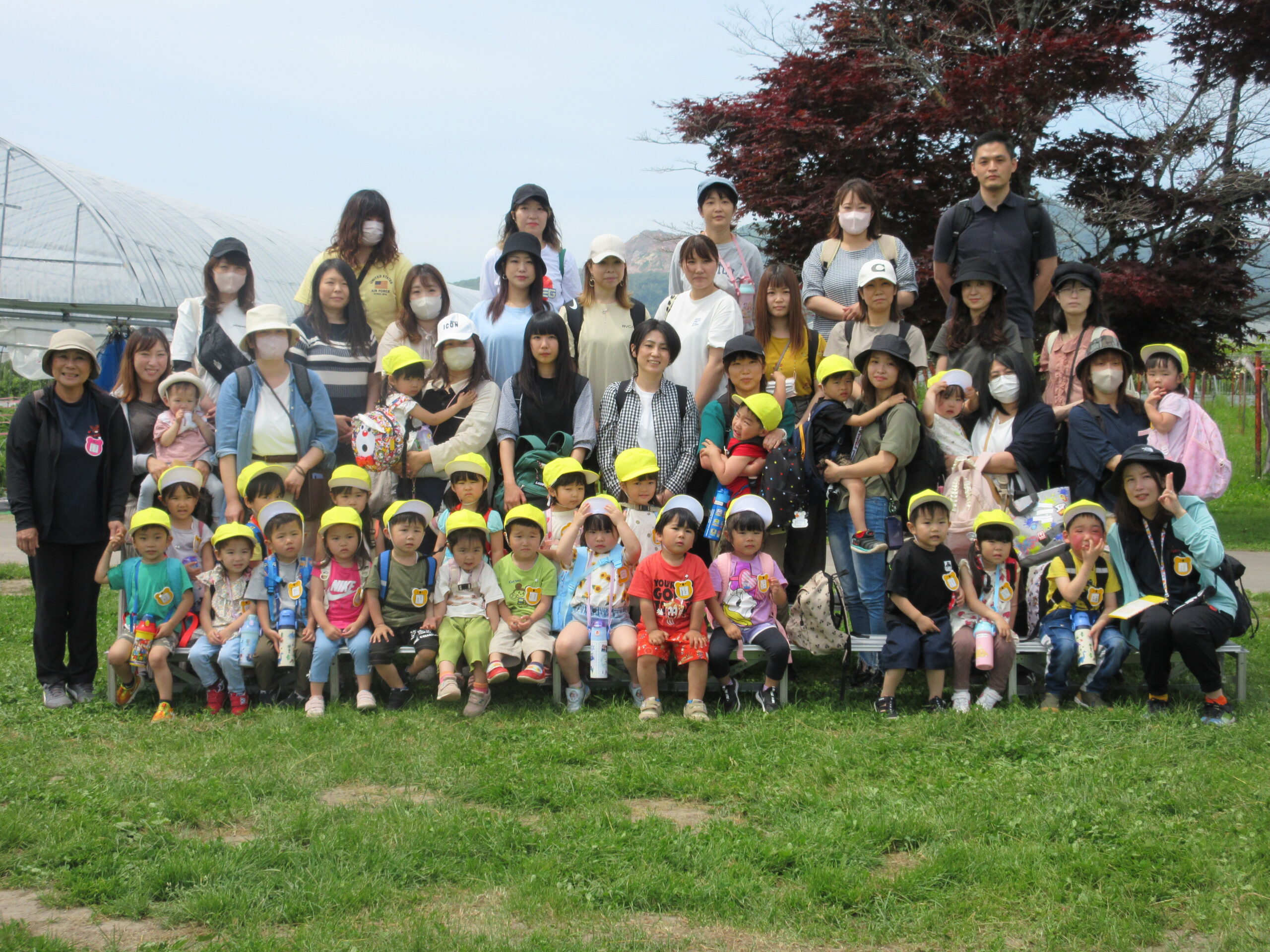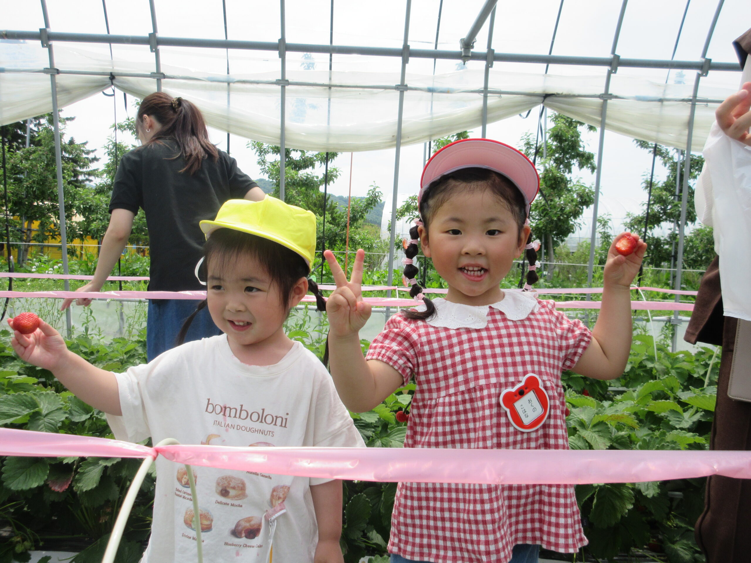 本日6月21日(水)天候にも恵まれ年少学年の親子バス遠足を実施しました。年長・年中学年と行事を終え、最終日はやっと年少学年が実施でき今まで待っていたルンルンな気持ちが伝わってきました。親子でバスに乗り込み一時間の道のりはクイズをして楽しみました。いちご狩りはそれ程、多く食べれないようでしたが、探し見る楽しさ、取ってあげる楽しさを味わっていたようです。天候に左右されずに実施出来たことを嬉しく思います。保護者の皆様ご協力ありがとうございました。そして浜田園の皆様、3週に渡り有難うございました。