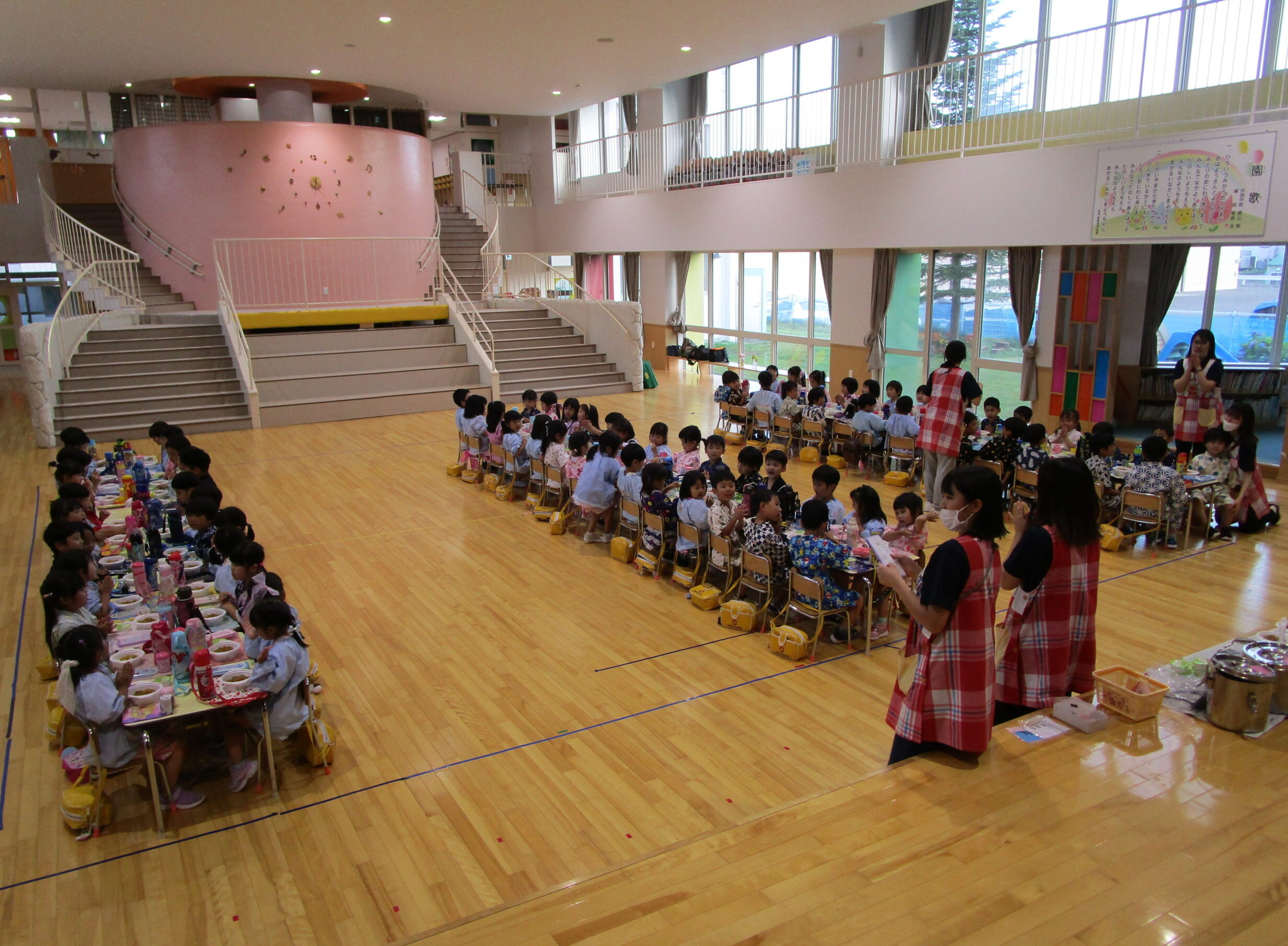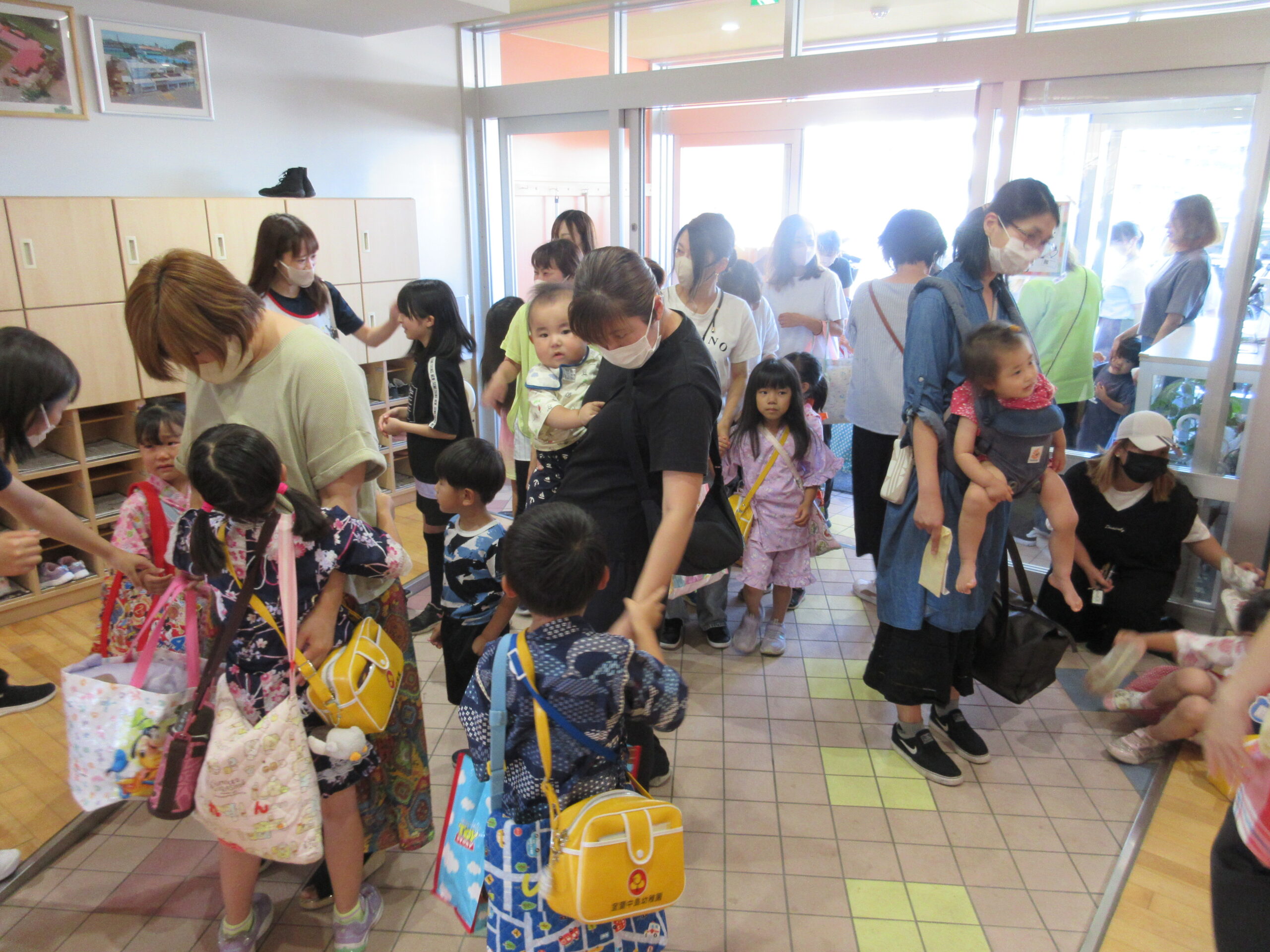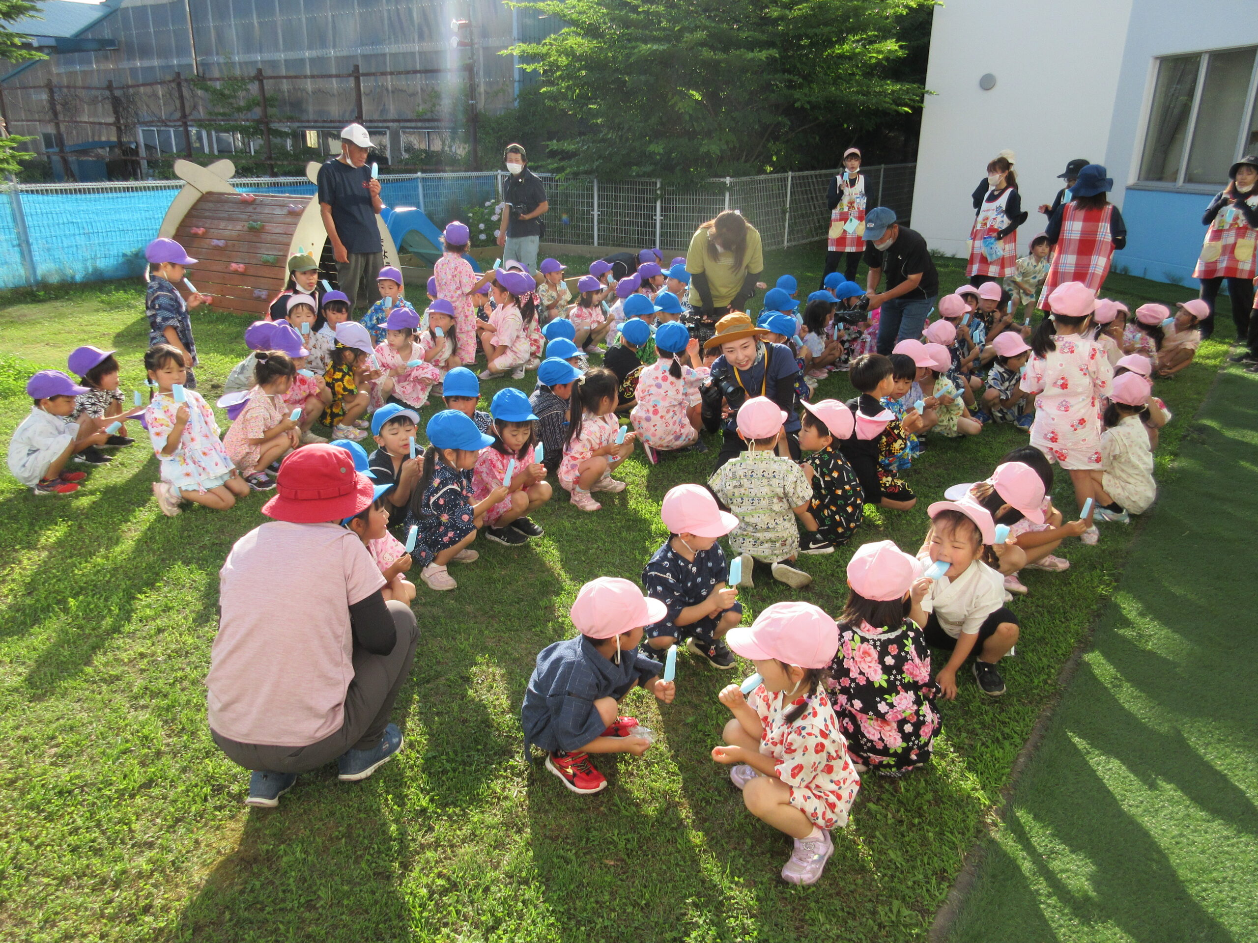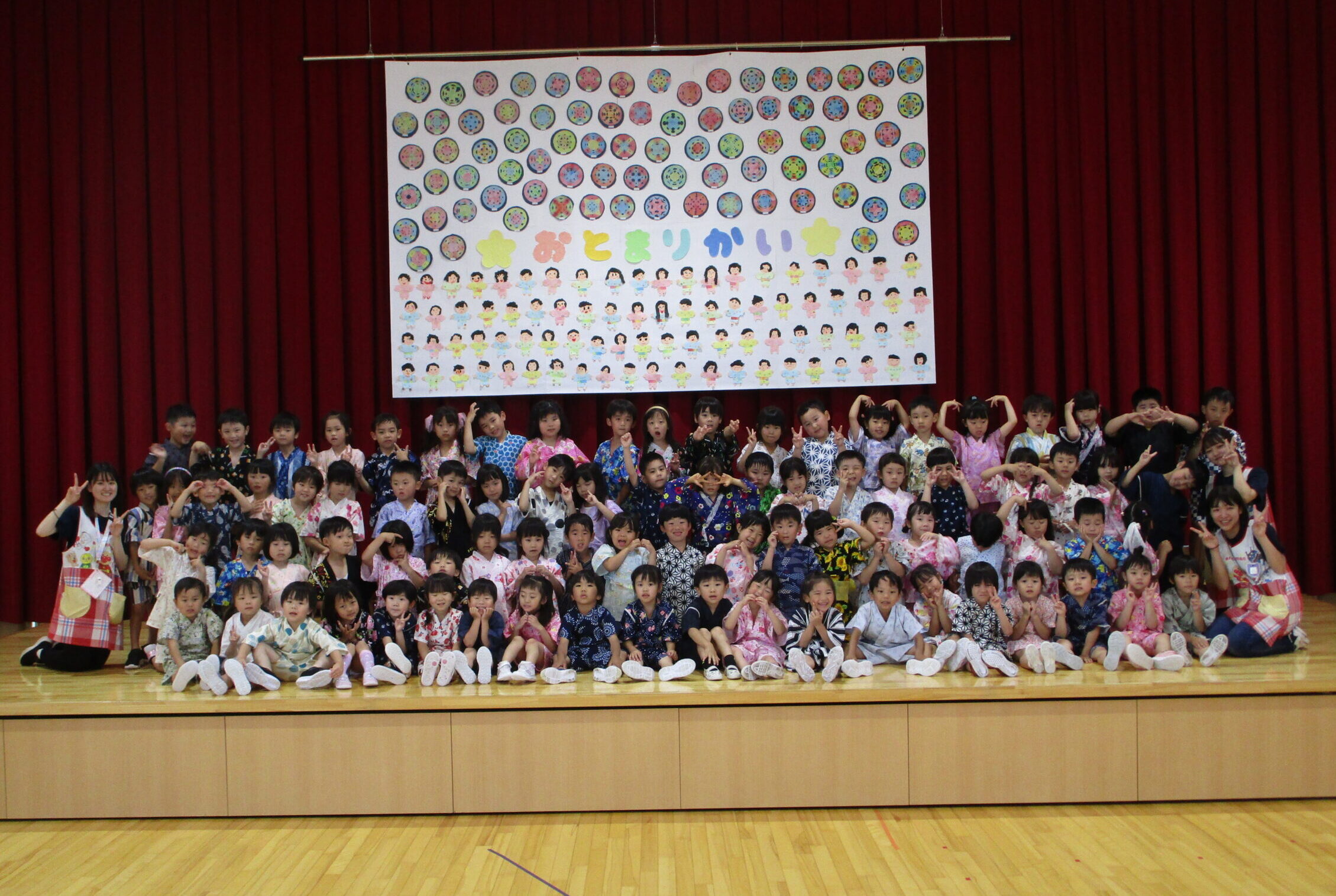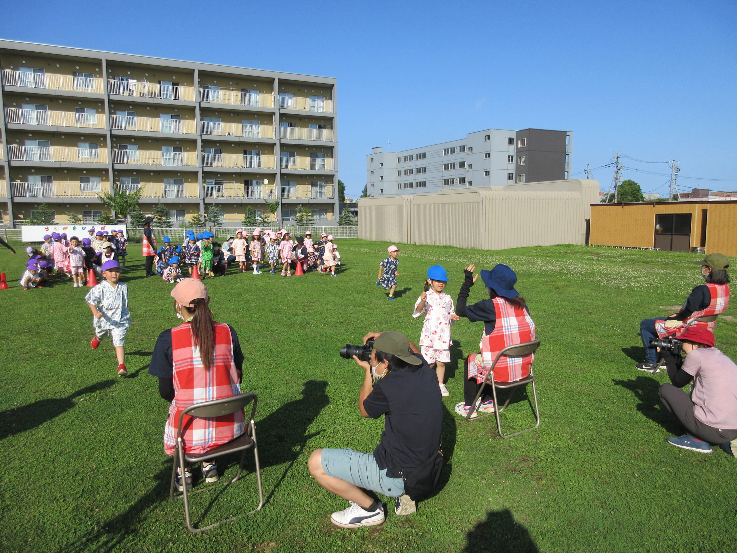 (48)令和5年度「年長学年 お泊まり会1日目」 2023年7月20日 園内ブログ 今年度より年長学年のお泊まり会を開始しました。1日目、7月20日は天候に恵まれ子ども達は楽しい時間を過ごすことができました。お泊まりセットを持参して夕方よりお家の方と登園し、園庭にてゲームやフォークダンスで体を目いっぱい動かしました。また昨年同様、室蘭百花繚蘭の方々が来園し「よさこい」で大盛り上がり!!子ども達は大喜びで「よさこい」に参加していました。夜は花火大会。夜空を見上げながら「うゎー!きれい!」と歓声が上がり、盛り沢山な内容に大満足。夕食のカレー美味しかったですね🍛