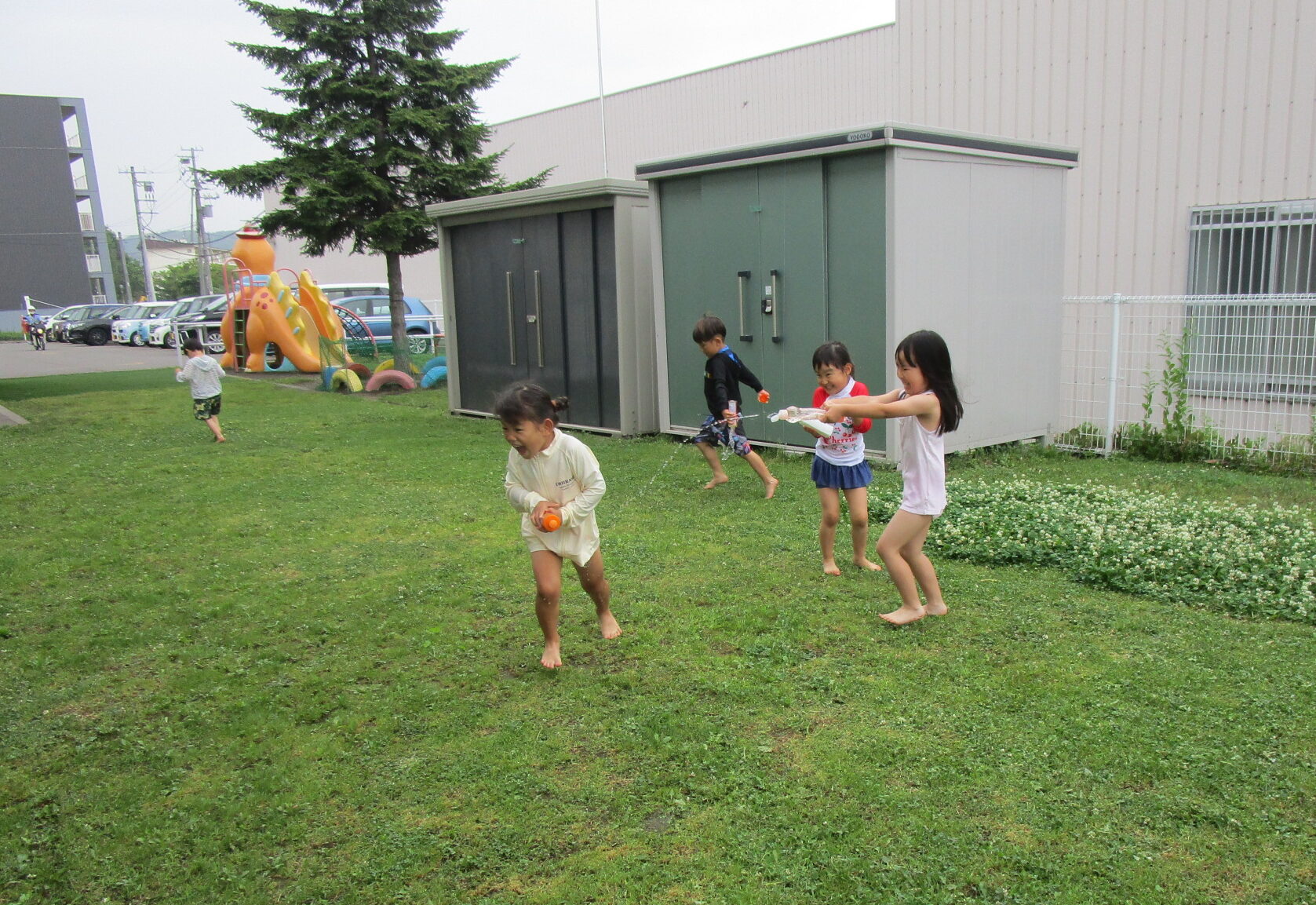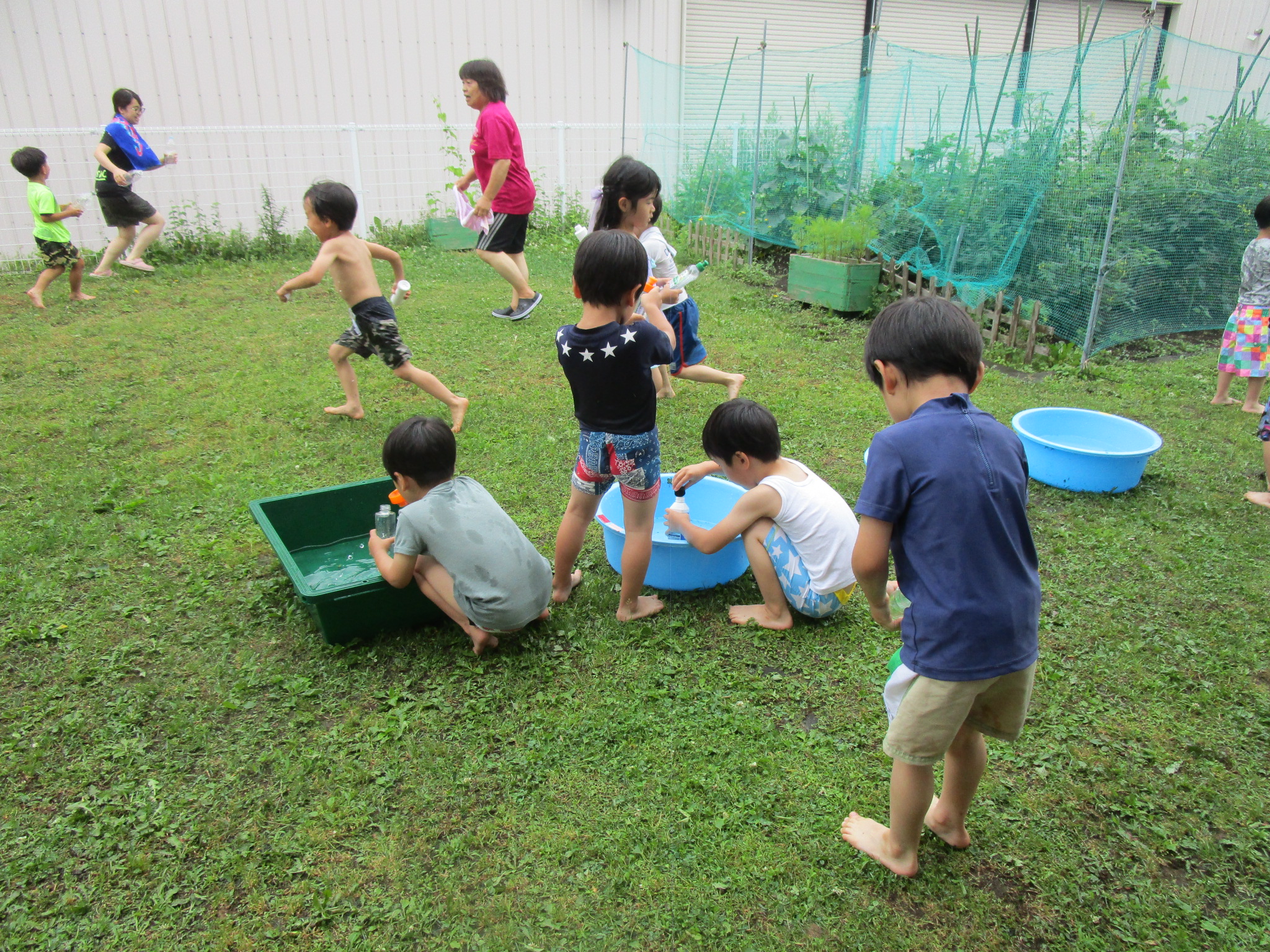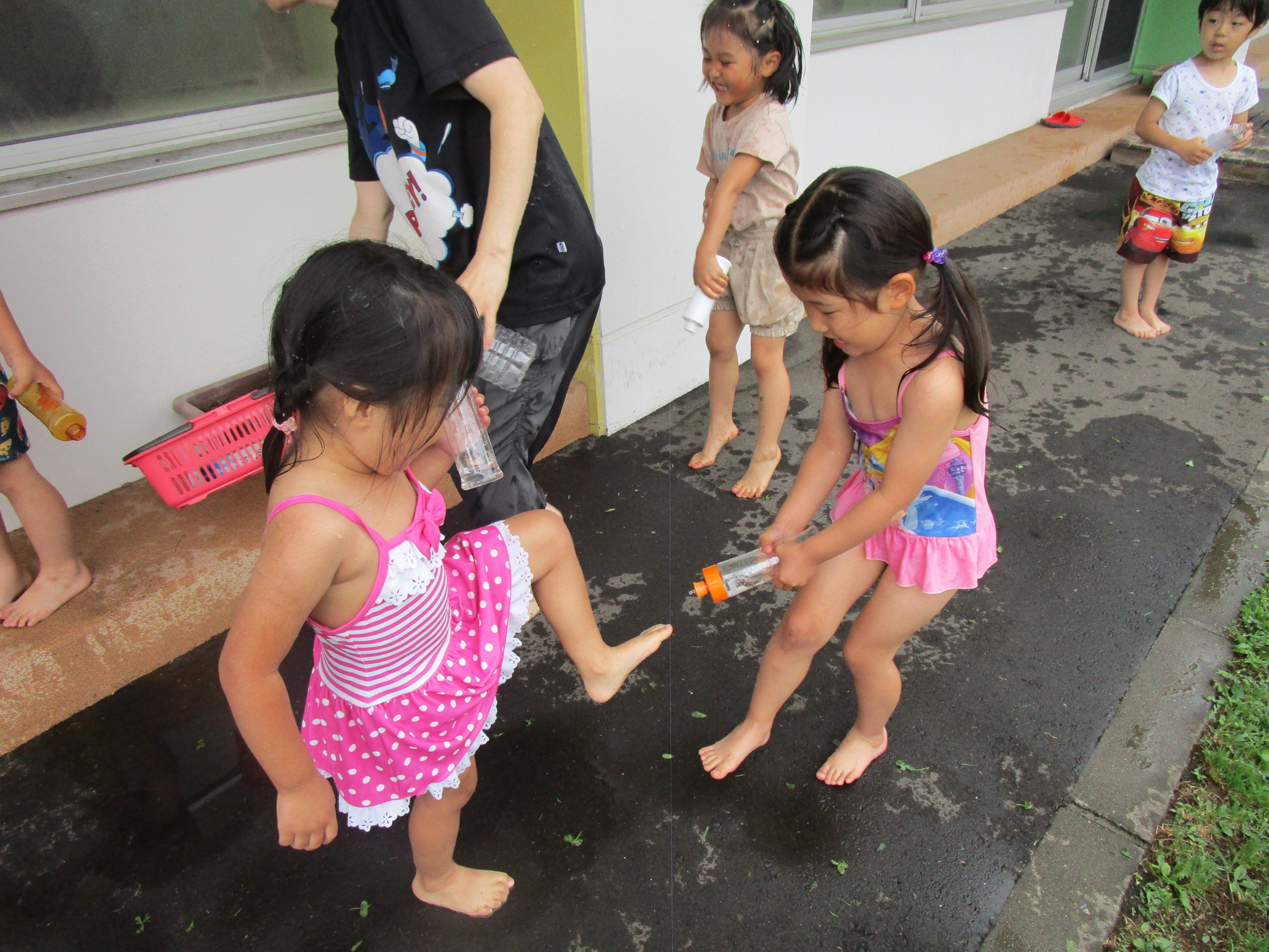 (41)令和5年度「年中学年 水遊び」 2023年7月12日 園内ブログ 気温も高めで、お部屋も蒸し暑く、雨が降る前に短い時間ではありましたが、本日7月12日(水)水遊びを行いました。水遊びのお着替えも上手になり、自分の物の身支度や片付けも身について、このような姿からも成長がみられます。その後はホールでボール遊びをして、たーっぷり体を動かしたので、給食もモリモリ食べるお友だちが多かったです。また、天候を見ながら水遊びを予定していますので、もし水遊びを控える場合はバス添乗や玄関の職員にお伝え下さい。