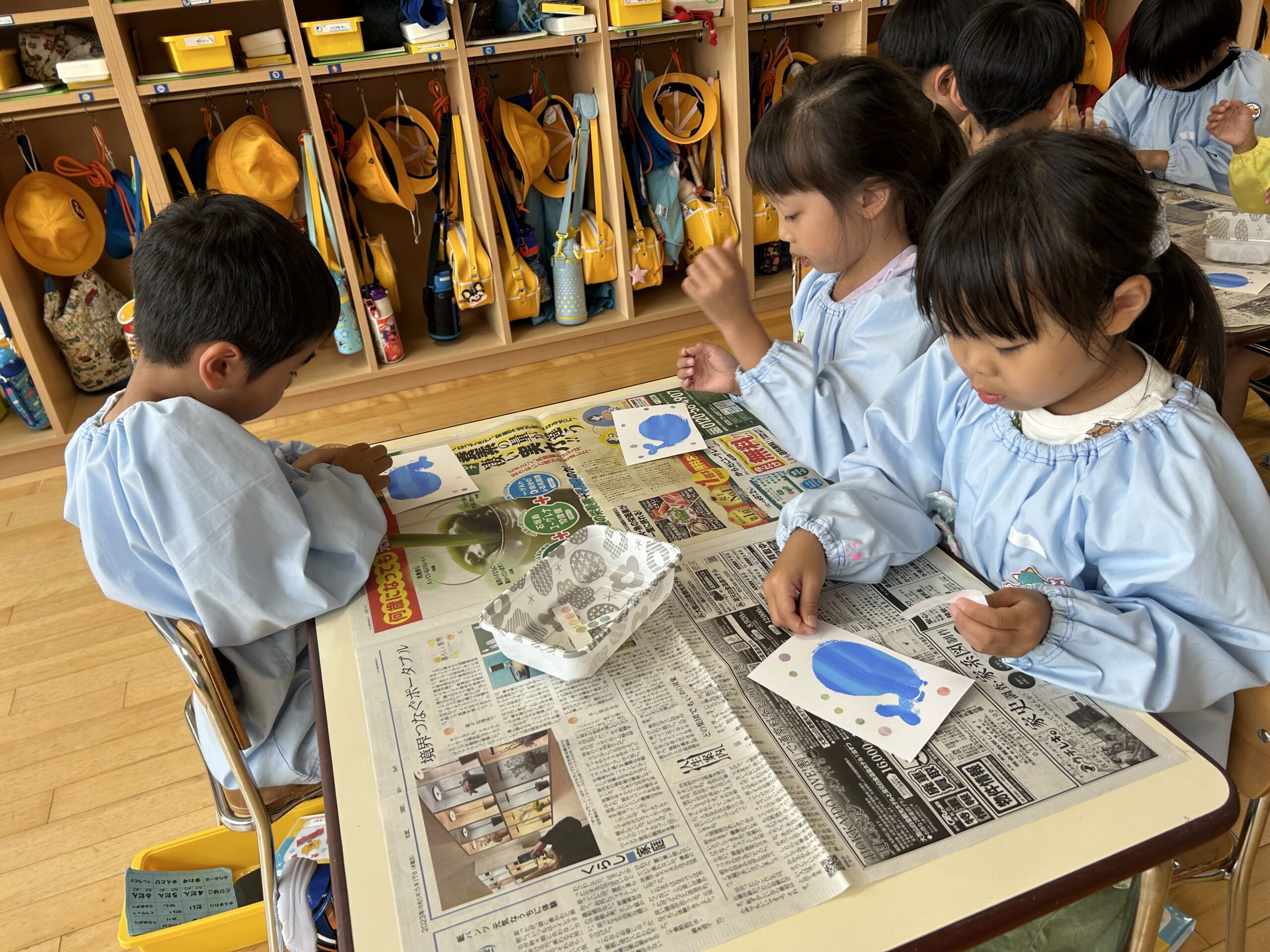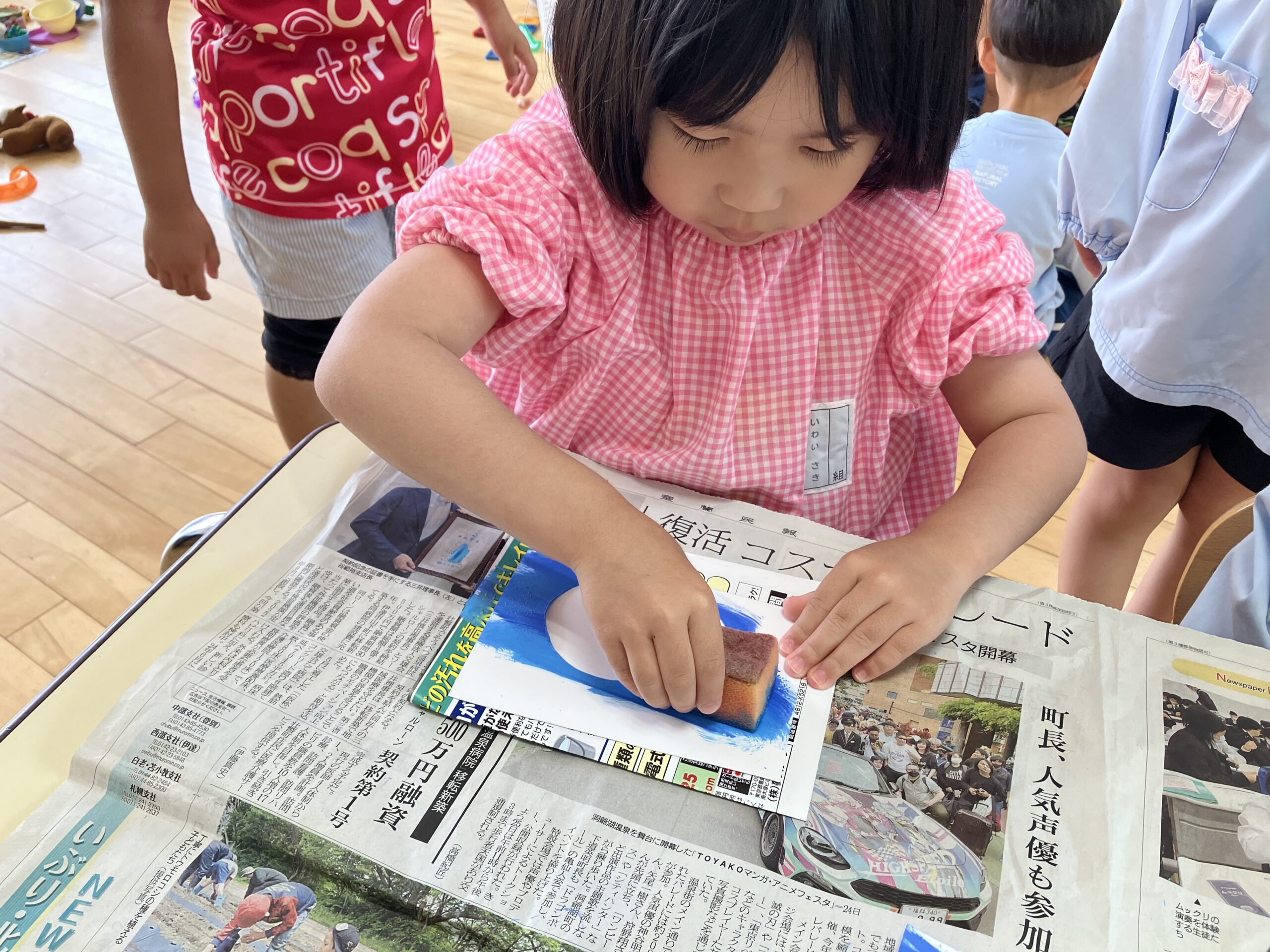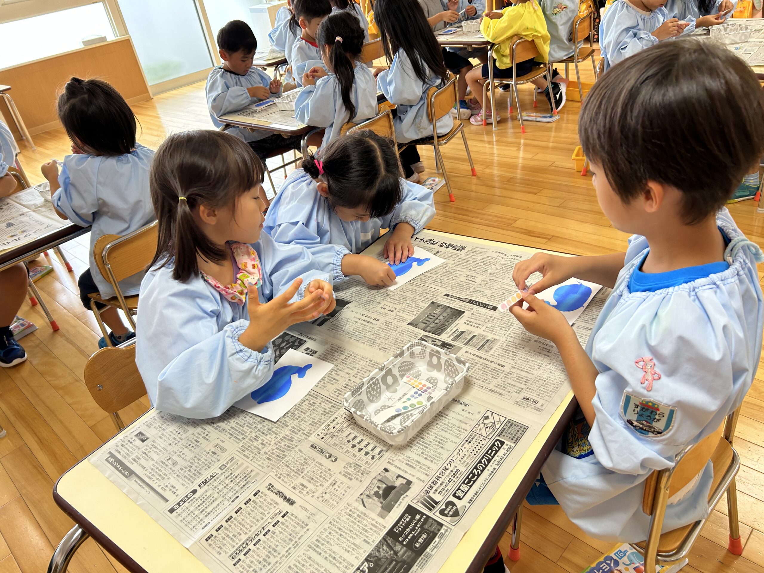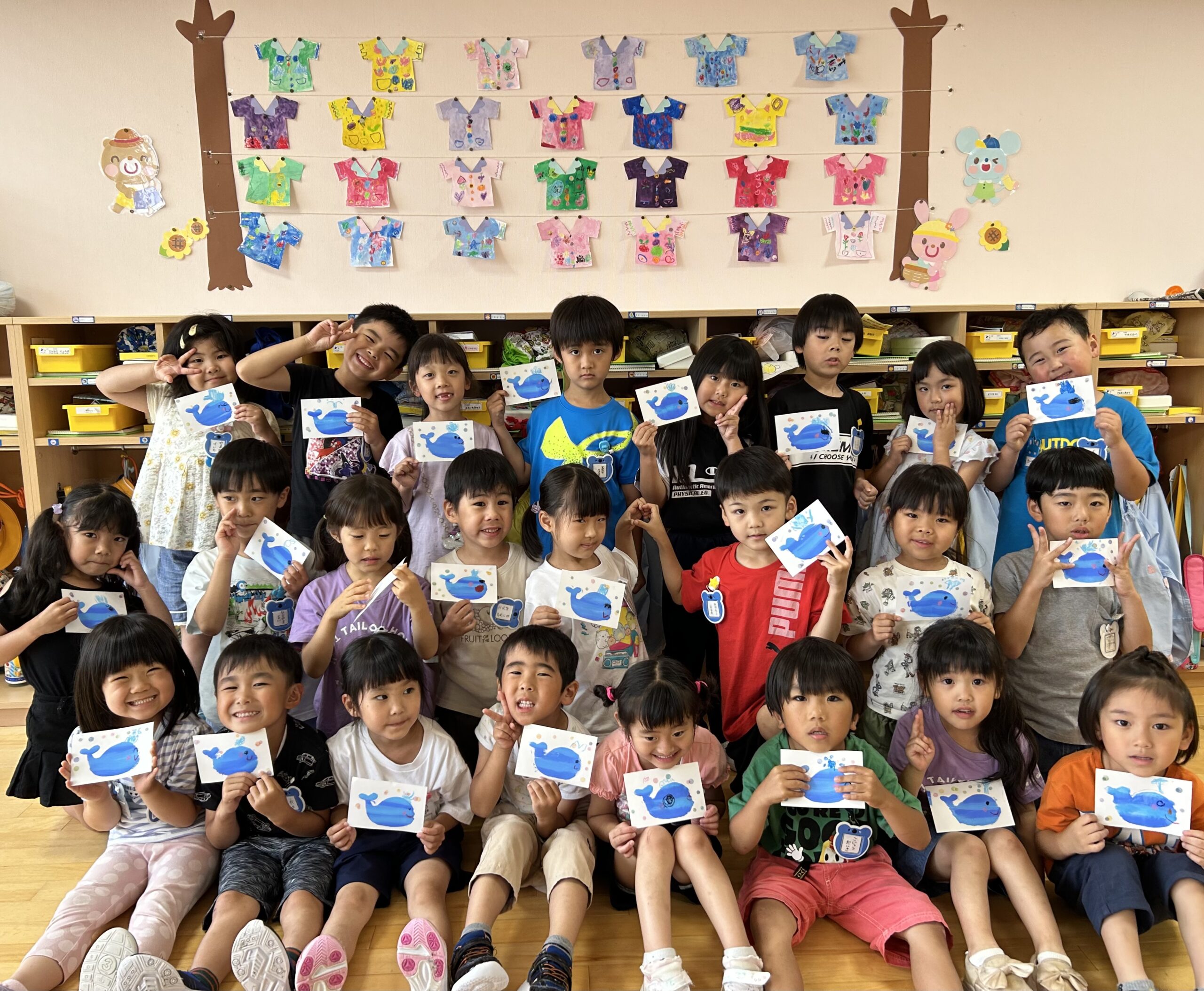 7月7日(金)7月12日(水)の2日間で、絵の具とスポンジを使ってはがき製作を行いました。グラデーションで綺麗なイルカが出来上がり子ども達も「きれい~」「かわいい」と製作を楽しむ姿が見られていました。本日、シール帳に挟めて持ち帰っています。切手を貼って投函できますので是非、ご活用ください♪