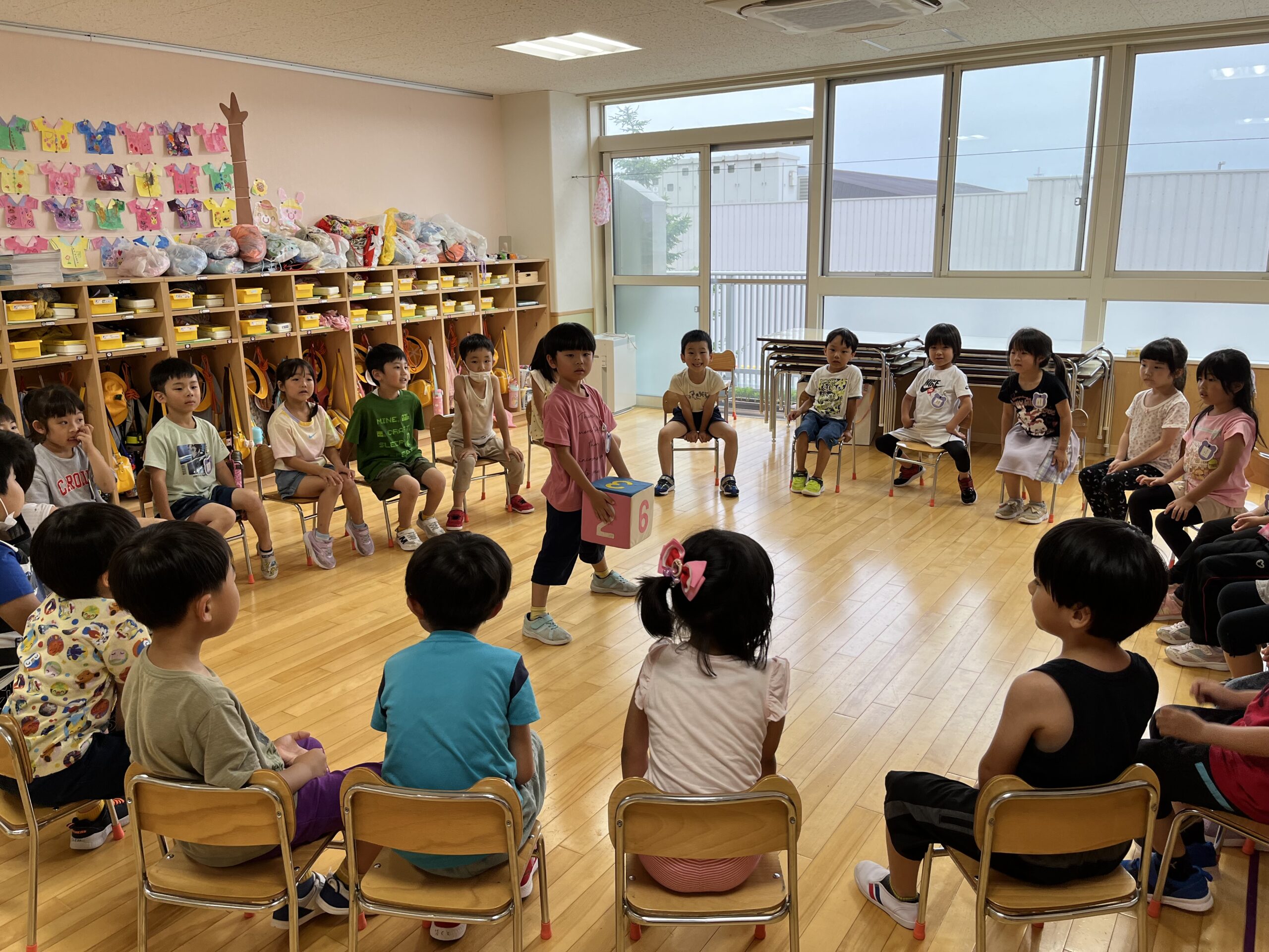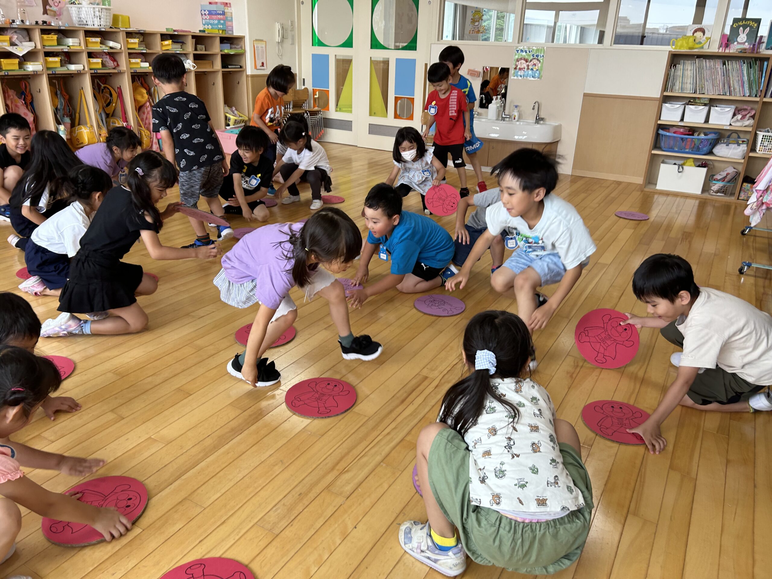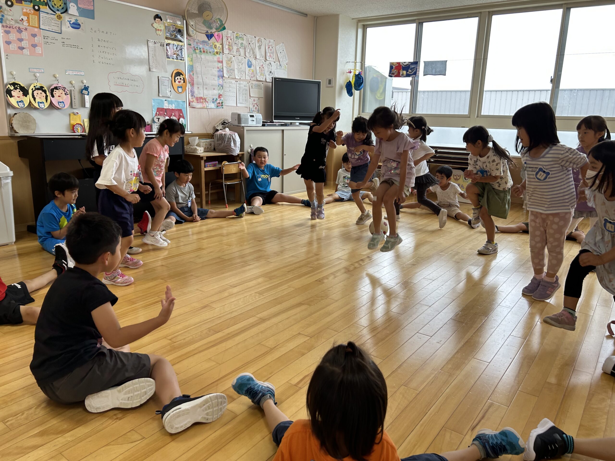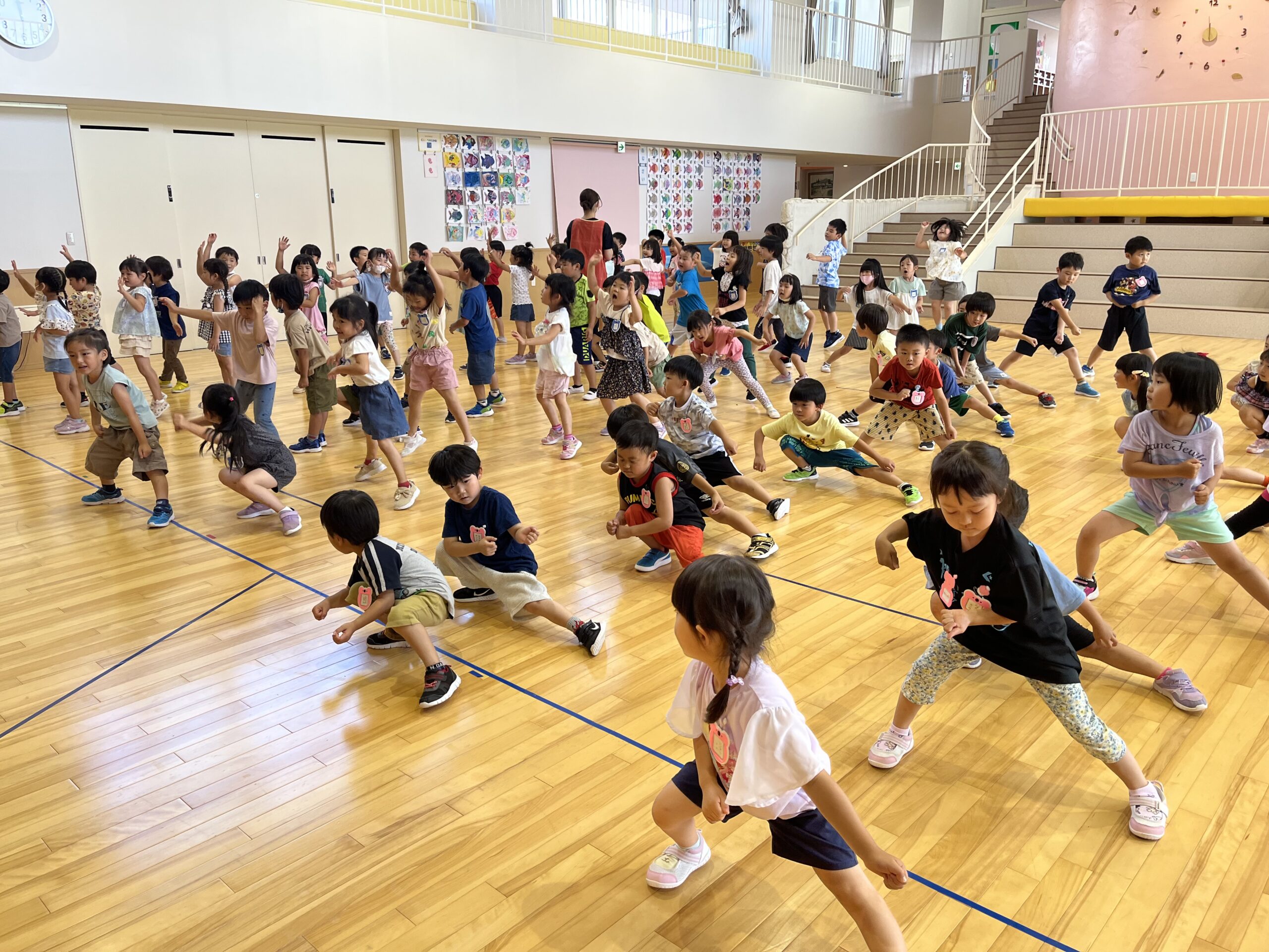 天候の良い日はお外遊びや水遊びを行ったり、お泊り会に向けてのフォークダンスやよさこいの練習では汗を流しながらも元気一杯に踊り「あと何回寝たらお泊り会だね!」「早くお泊りしたい」と声が上がり楽しみにしている様子が伝わってきています♪楽しみな気持ちやお家の方と離れることで不安な気持ちもあるかと思いますが、楽しい思い出となるよう過ごしていきたいと思っております☺