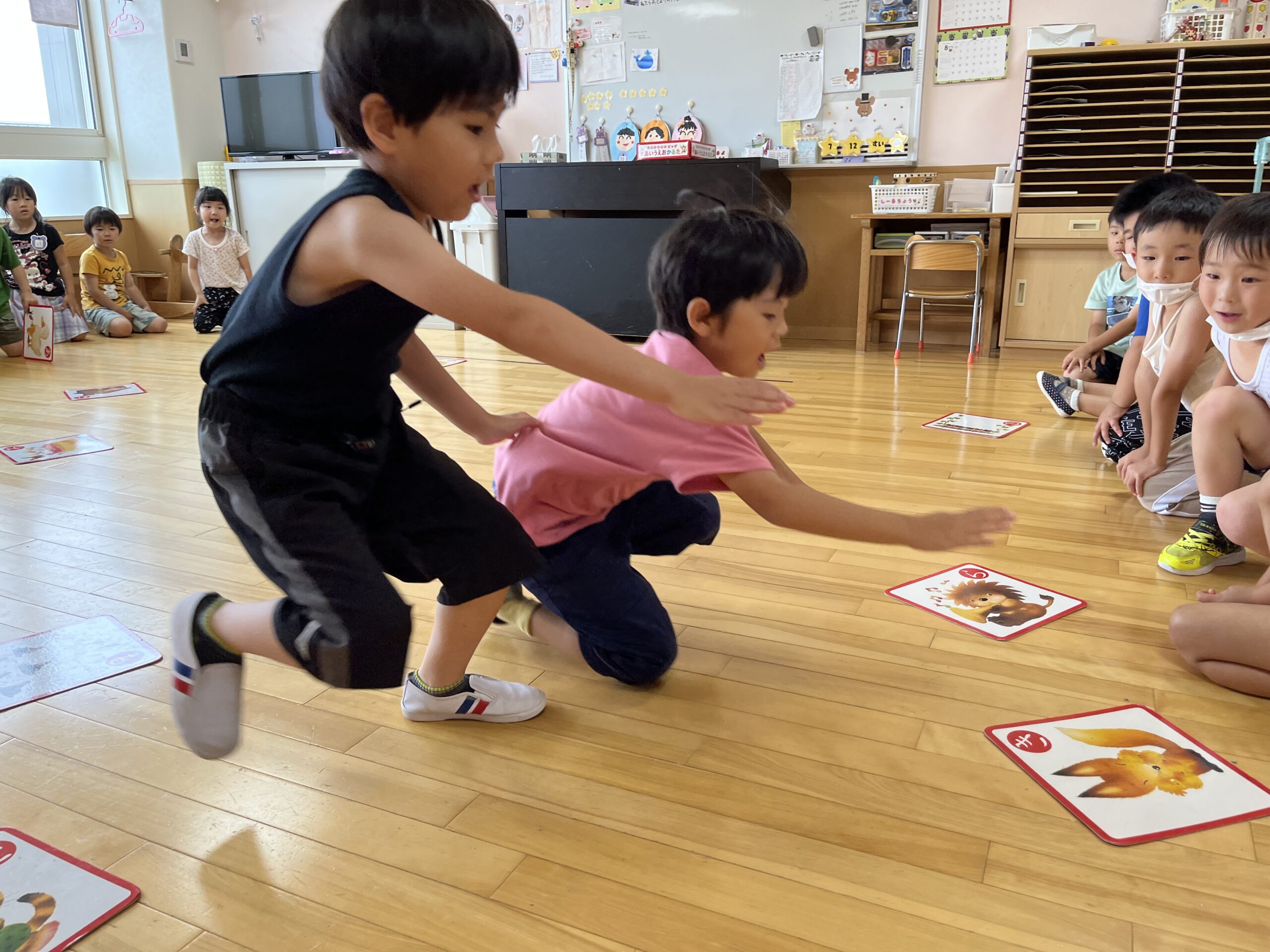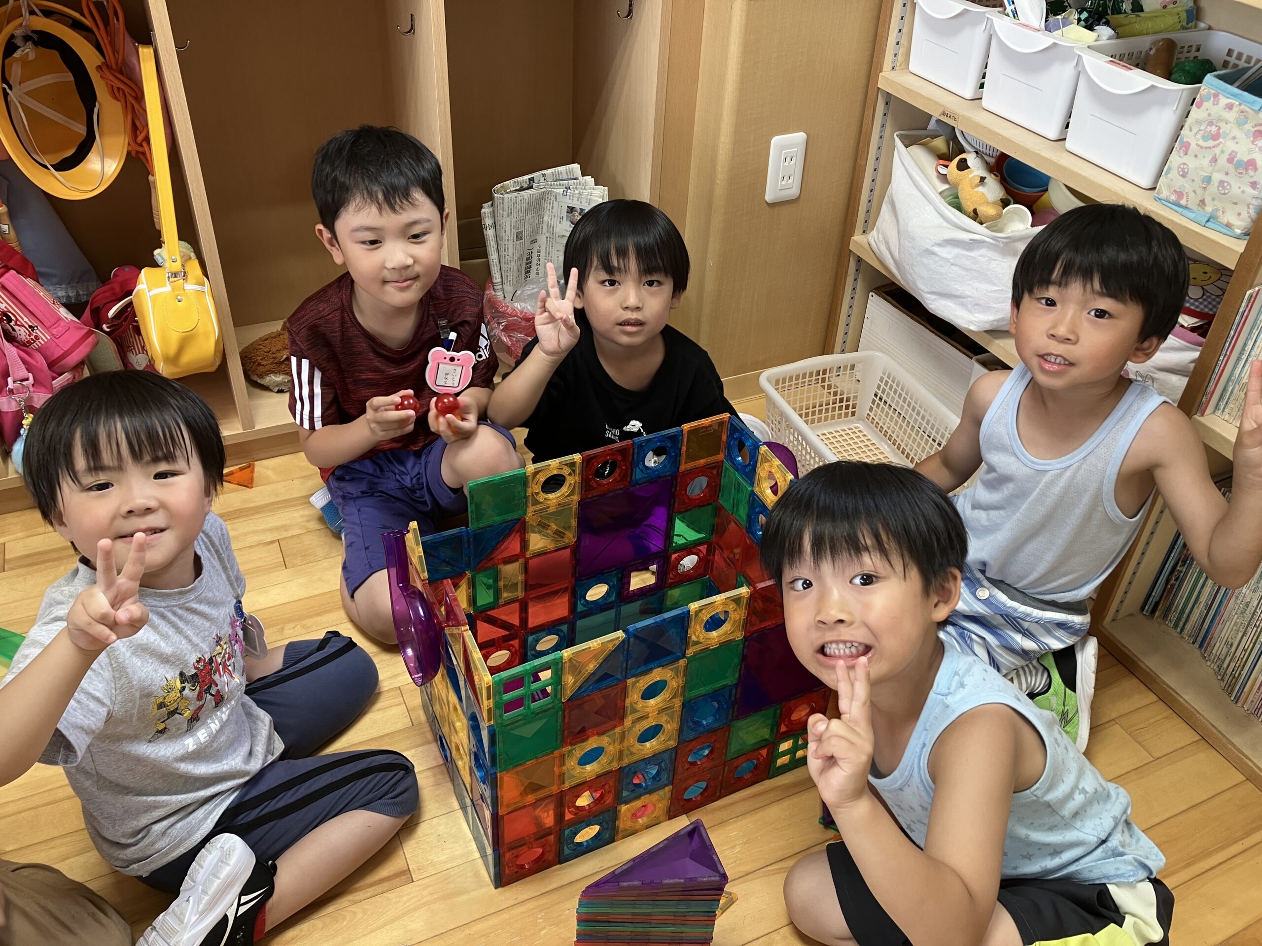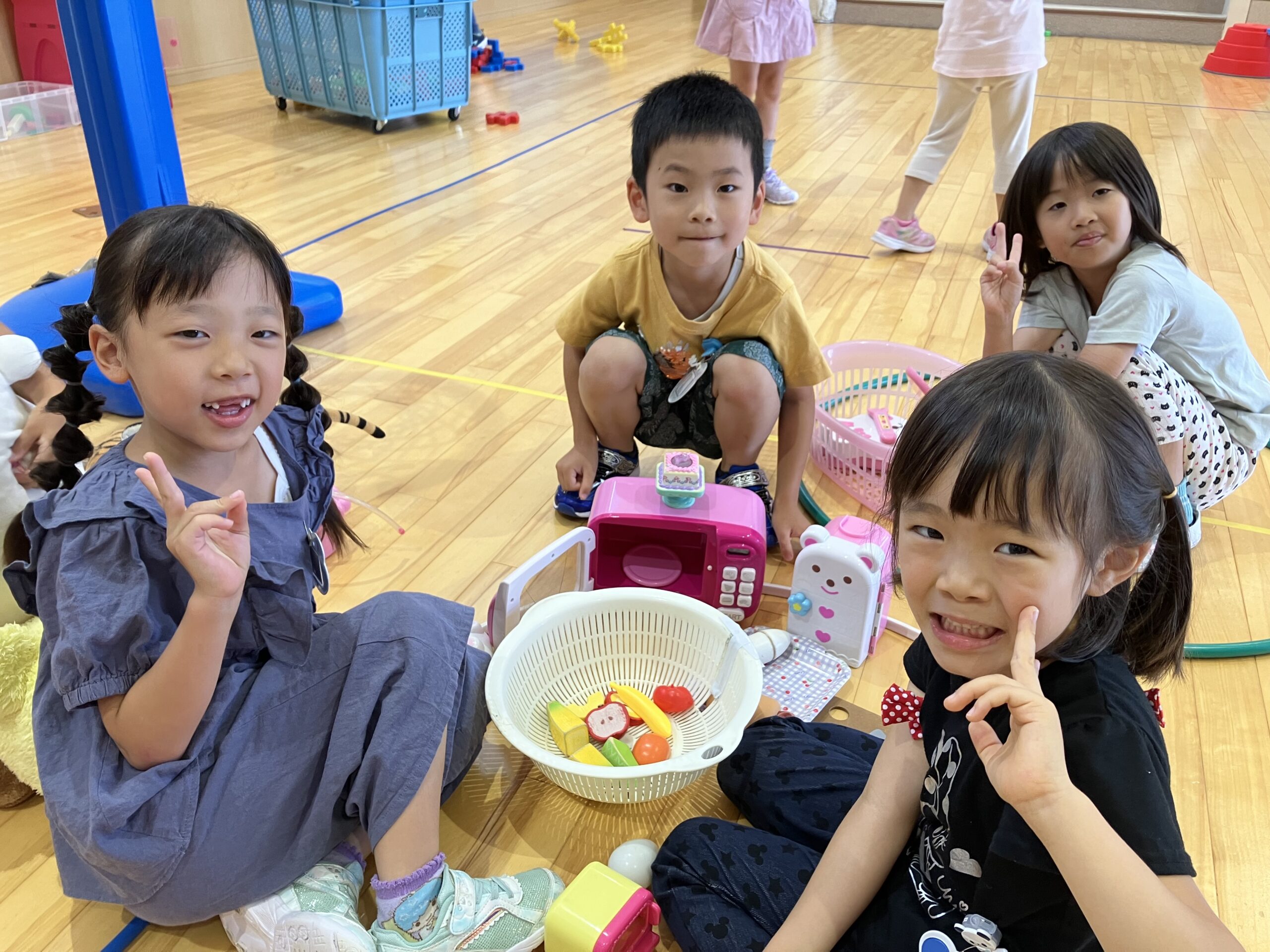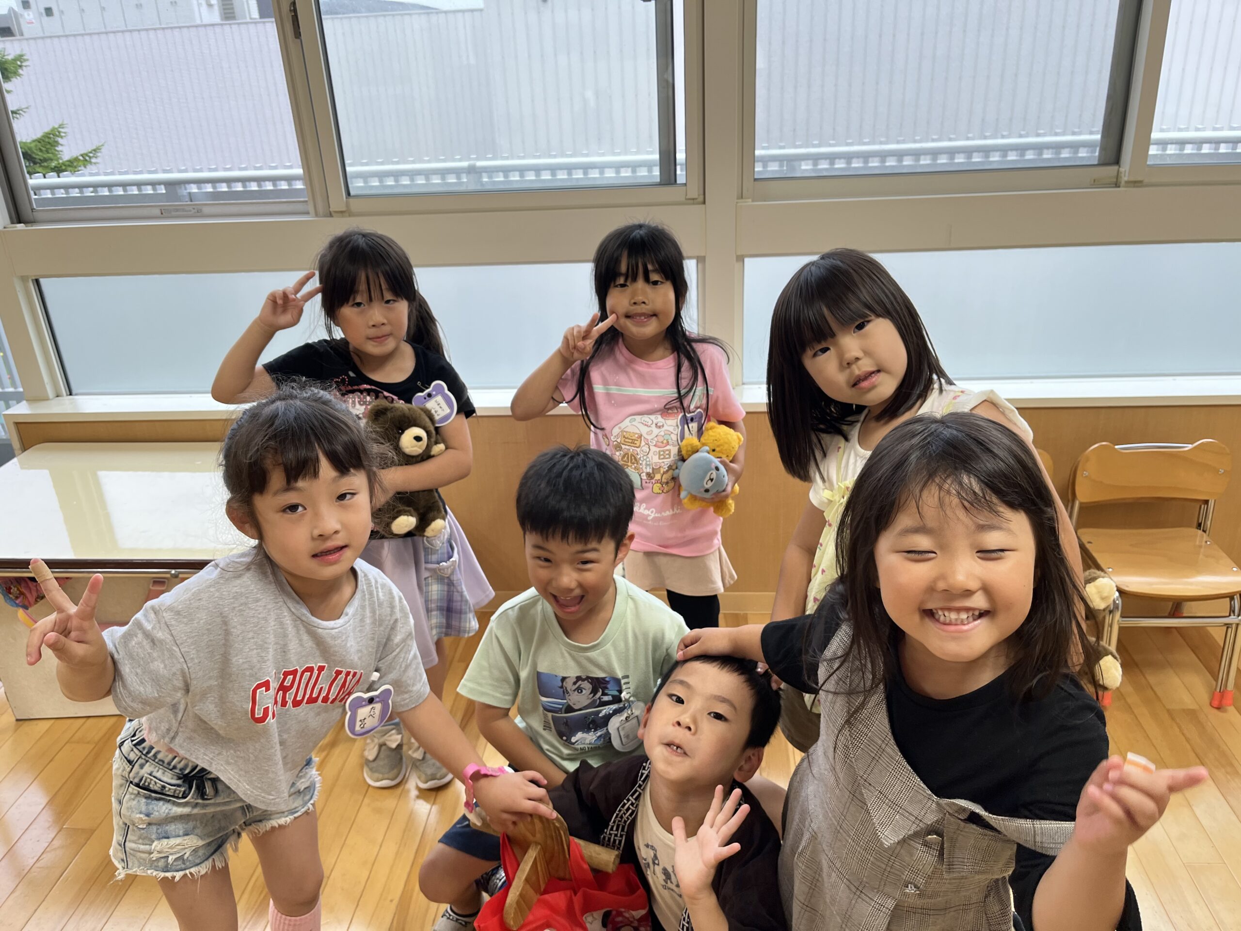 天候の良い日はお外遊びや水遊びを行ったり、お泊り会に向けてのフォークダンスやよさこいの練習では汗を流しながらも元気一杯に踊り「あと何回寝たらお泊り会だね!」「早くお泊りしたい」と声が上がり楽しみにしている様子が伝わってきています♪楽しみな気持ちやお家の方と離れることで不安な気持ちもあるかと思いますが、楽しい思い出となるよう過ごしていきたいと思っております☺