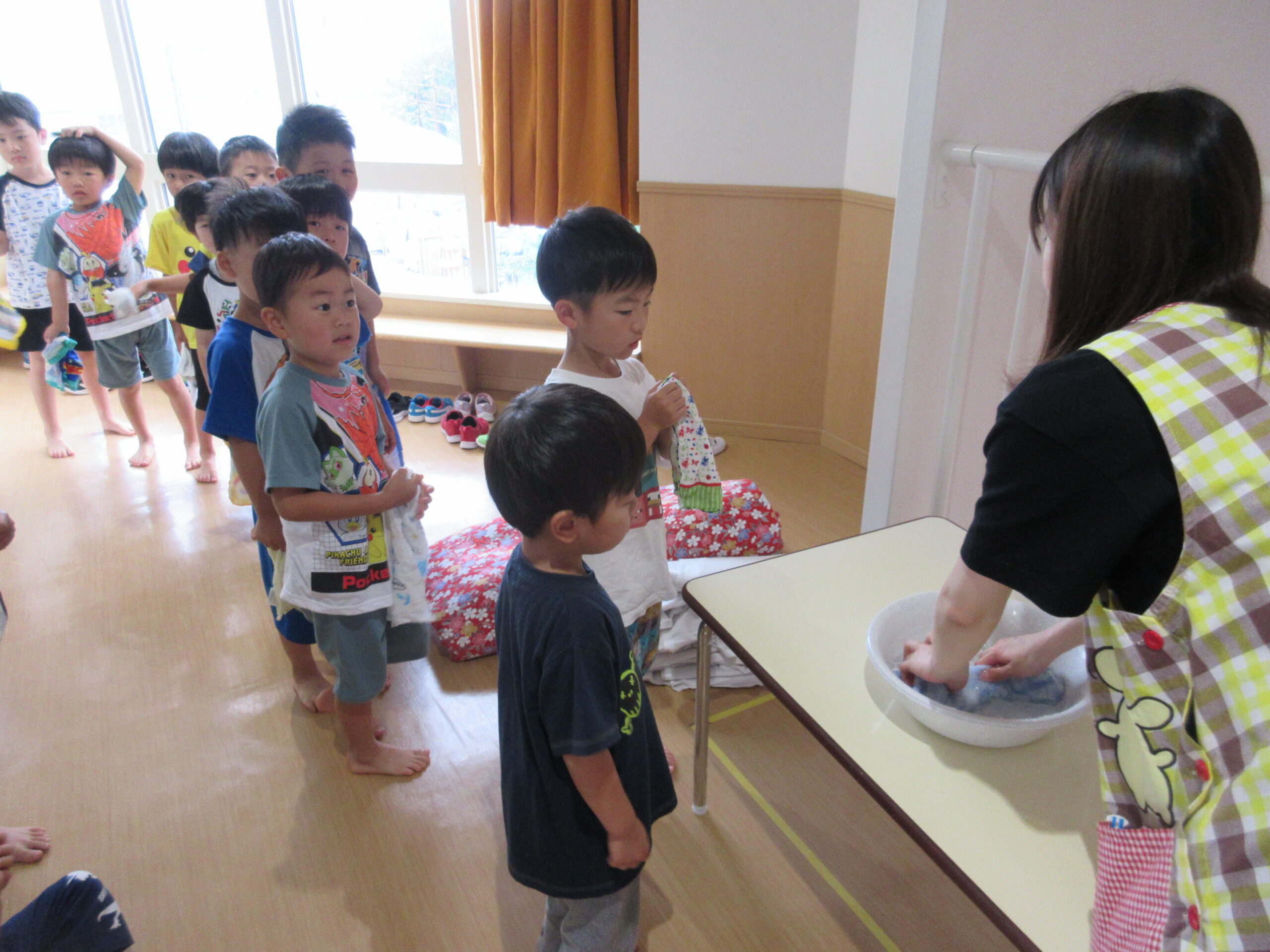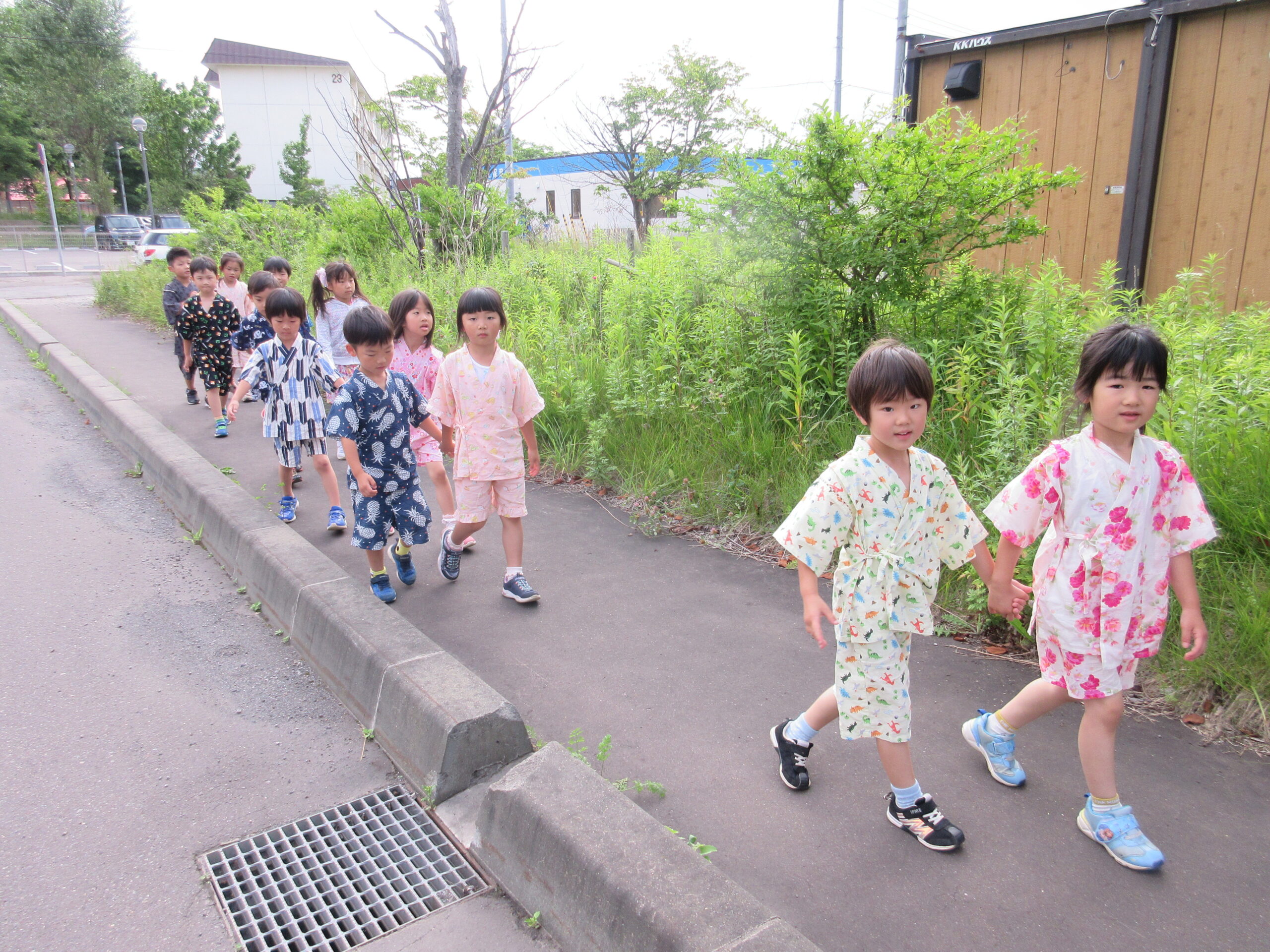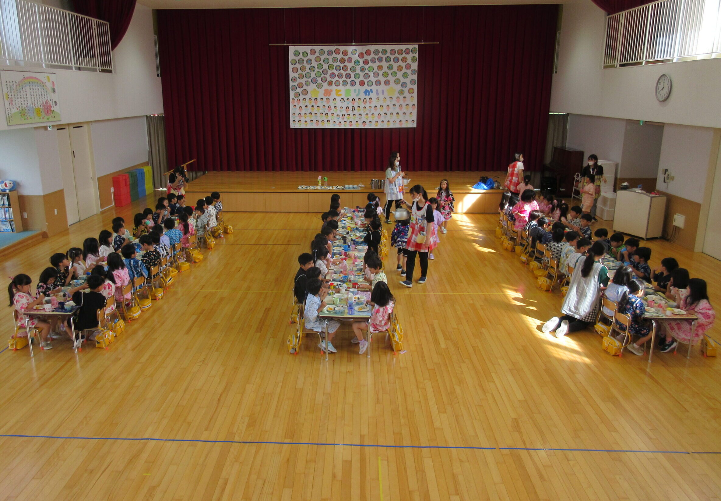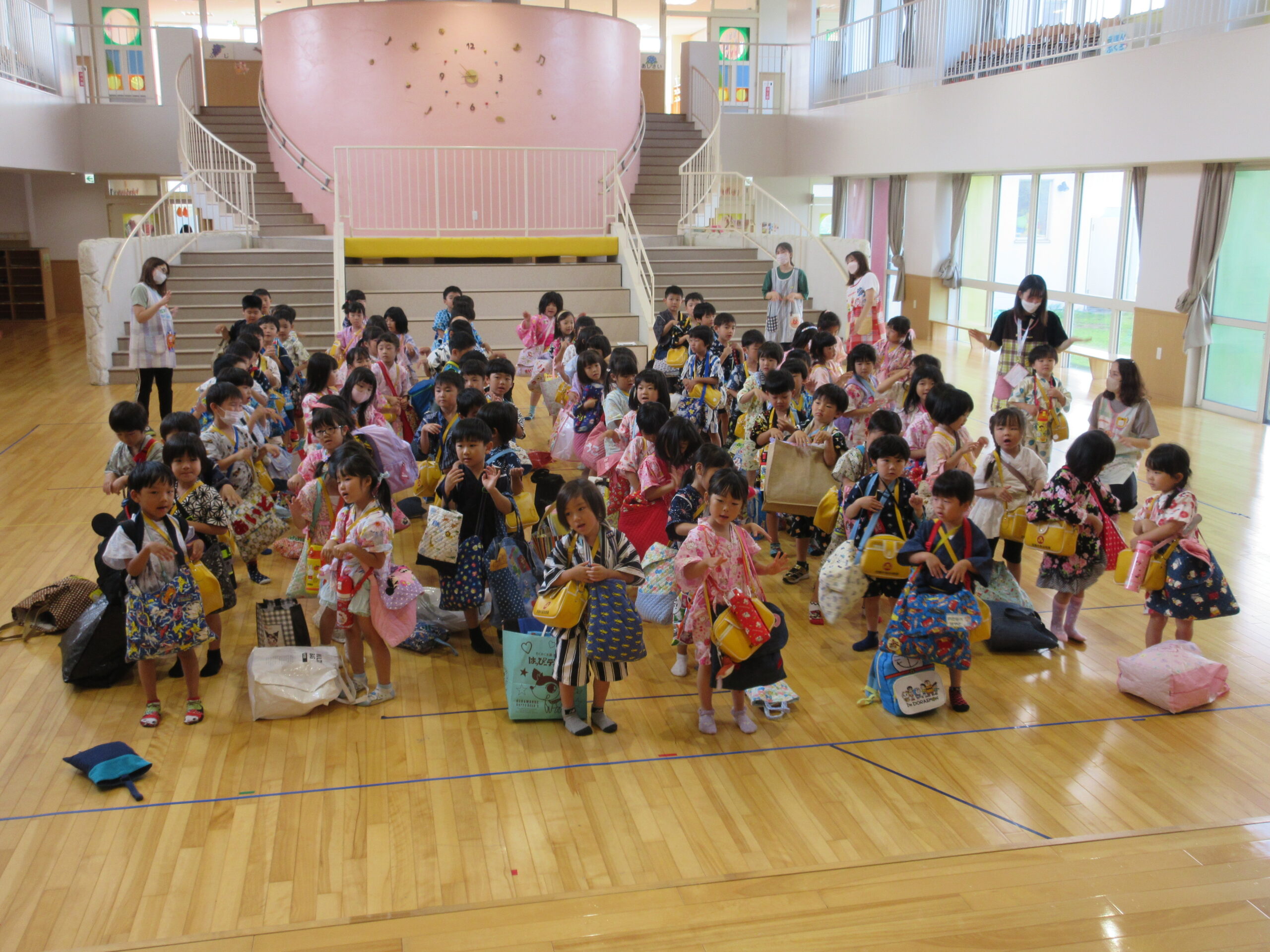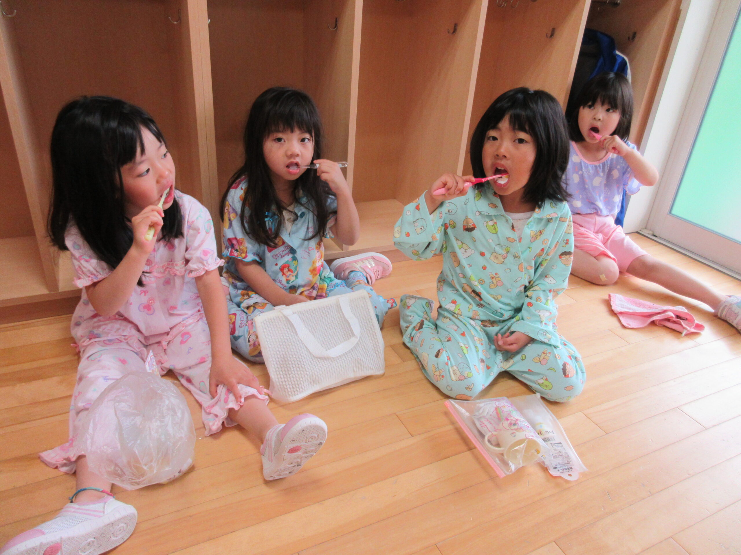 (49)令和5年度「年長学年 お泊まり会2日目」 2023年7月21日 園内ブログ お泊まり会本日2日目、子ども達は昨夜9時半頃には眠りにつき夜中はグッスリ熟睡!数名のお友だちは途中目を覚まして不安を訴えた場面もあったでしょうか・・・😊朝は6時30分起床でしたが早目に起きてしまったお友だちもいましたが、殆どのお友だちは時間まで寝ていました。その後、お散歩へ行きコープさんでの朝食🍙を頂きました。ホールでみんなで食べる「おにぎり」は美味しかったね!園生活の楽しい思い出が沢山できた2日間でした♬
