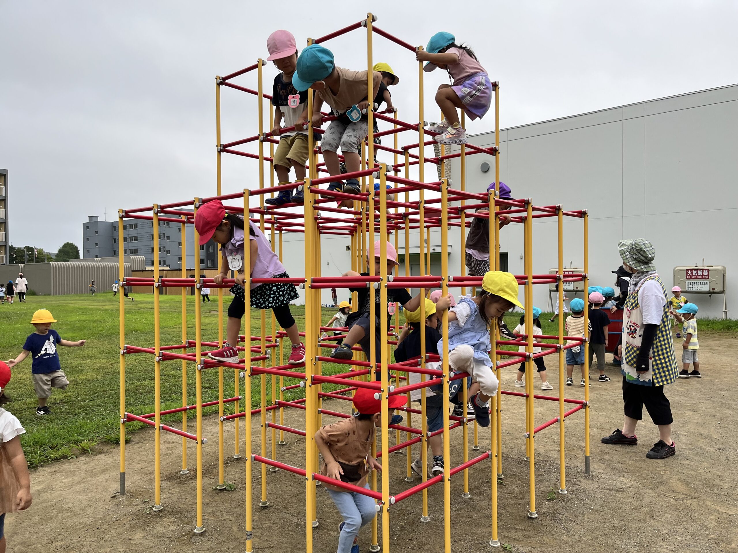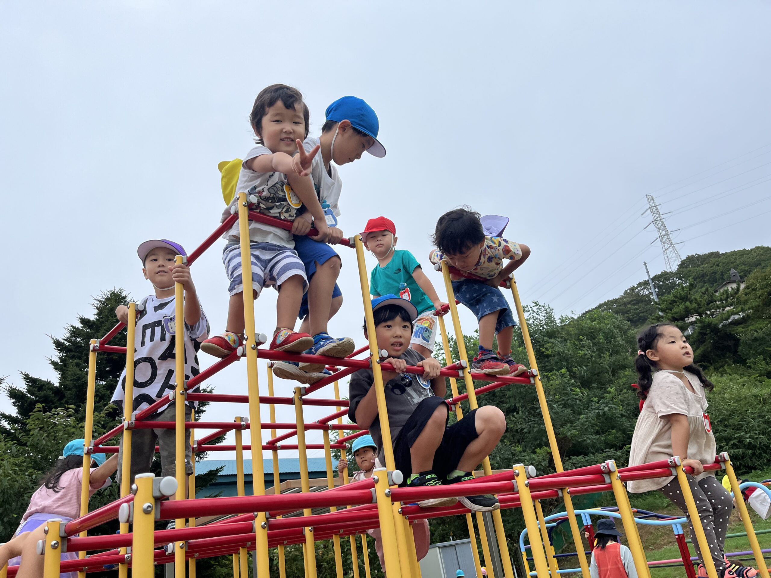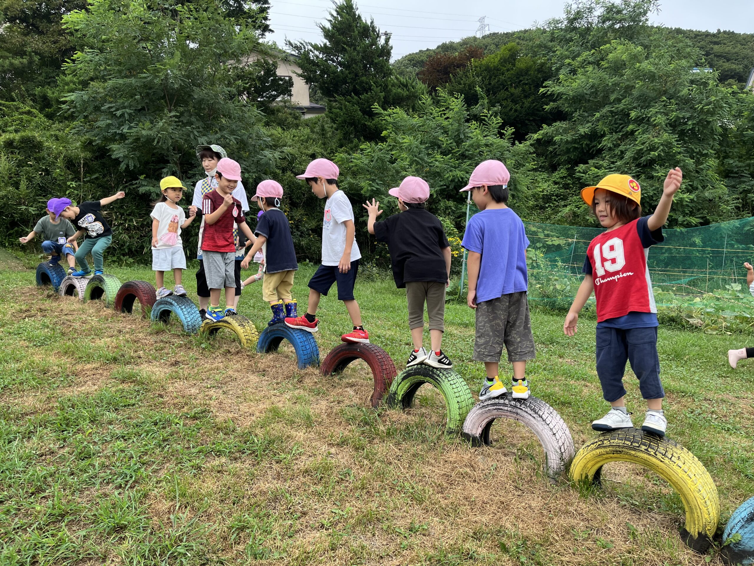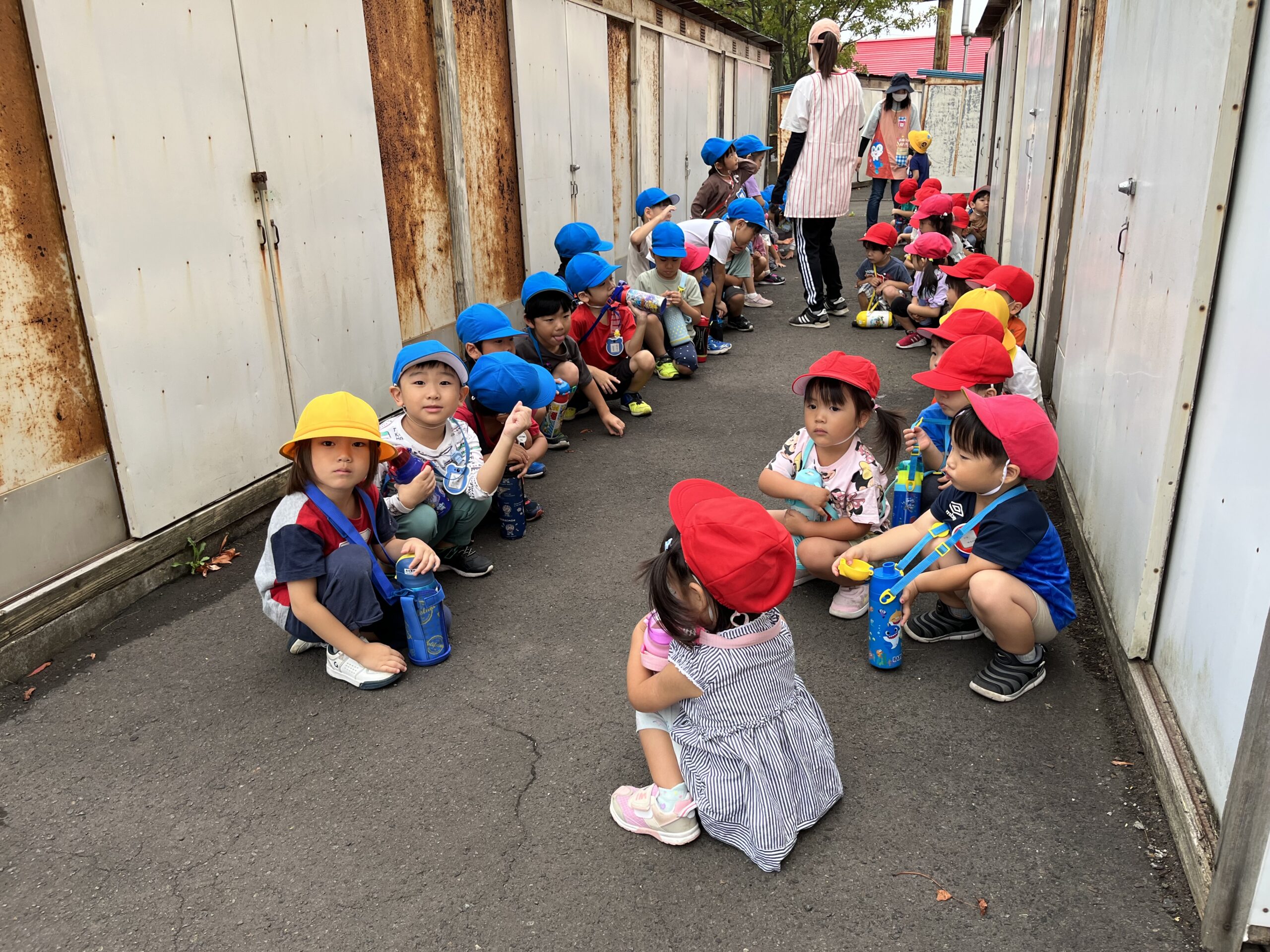 (55)令和5年度「年少・年長学年 お散歩」 2023年8月30日 園内ブログ 今日は年少・年長組合同でお散歩に出掛けました。年少さんは初めての園外活動でしたが、年長さんが手を繋ぎ、優しくリードしてくれたので、順調に歩き進めることができました。短い距離ではありましたが、年少さんは遠足の前に歩く練習をすることができて良かったと思います♪ 年長組さんありがとうございました☺️ 幼稚園に戻ってきたあとは外遊びをしました。曇り空ではありましたが、久しぶりに涼しかったので、たくさん遊ぶことができました! 今日の病気欠席者は、風邪1名、発熱7名、咳5名、鼻水1名、体調不良1名です。