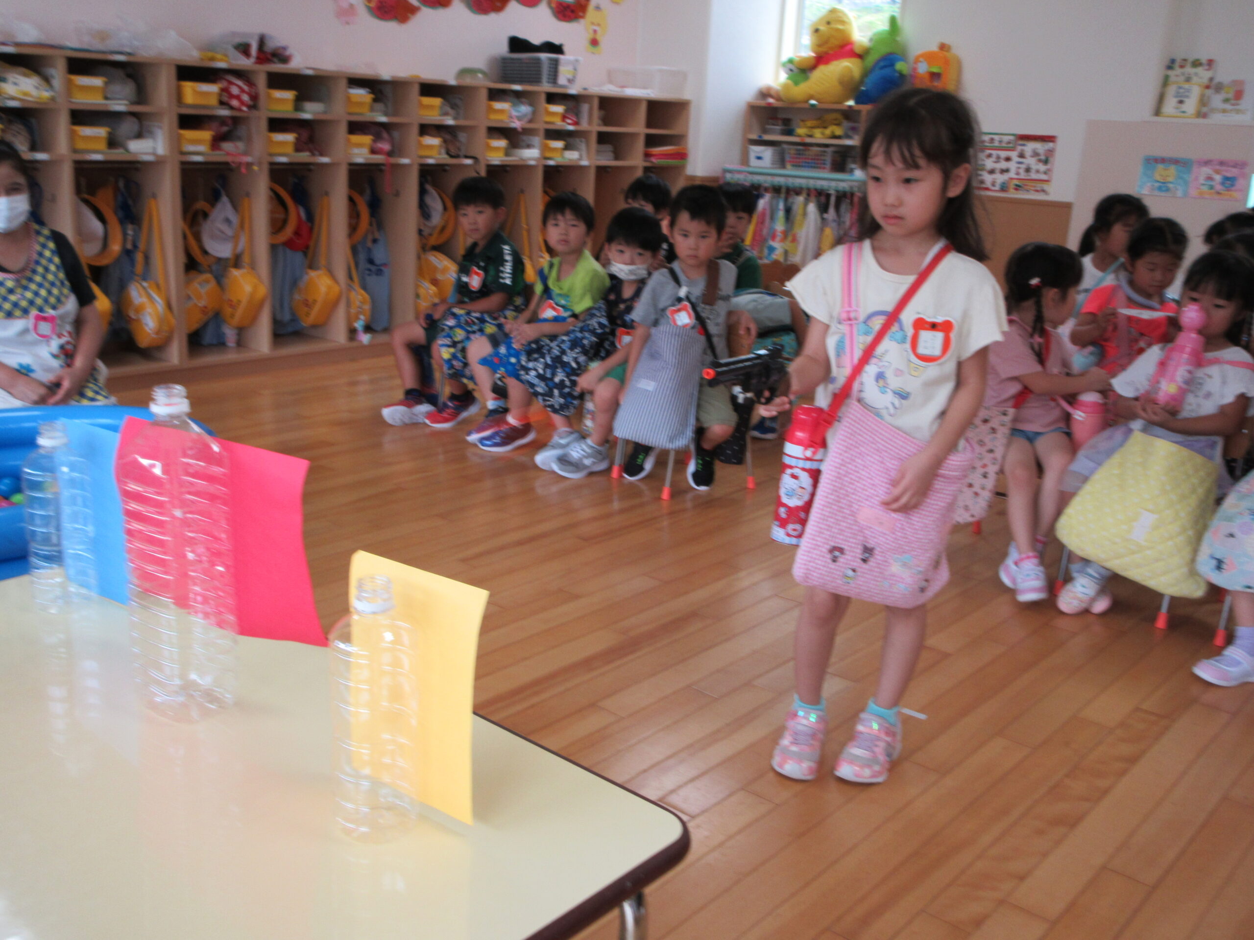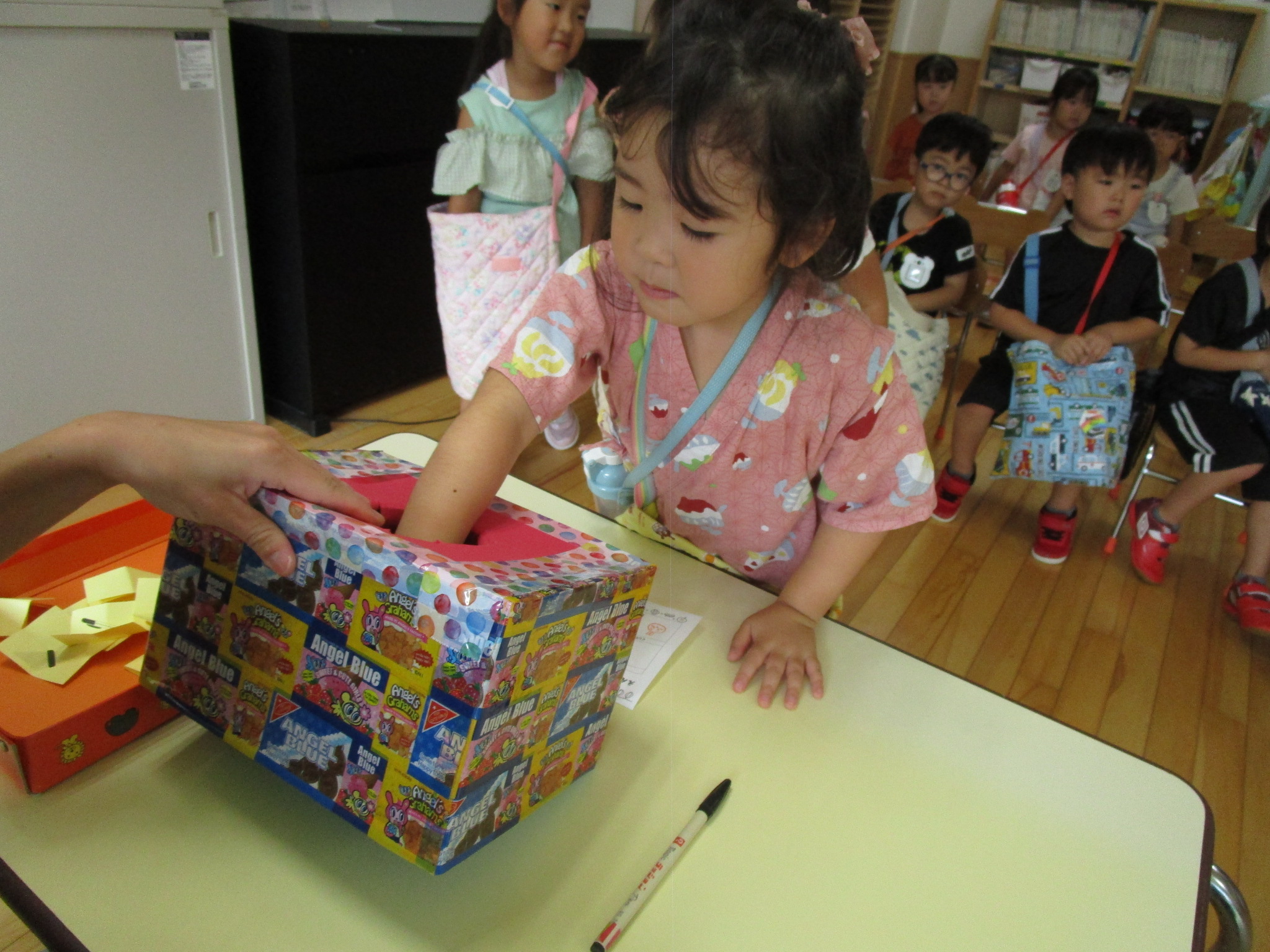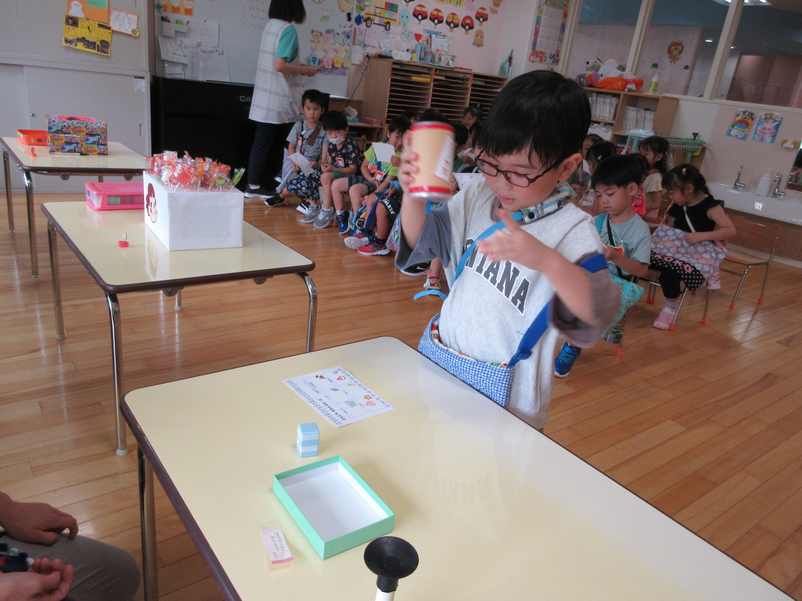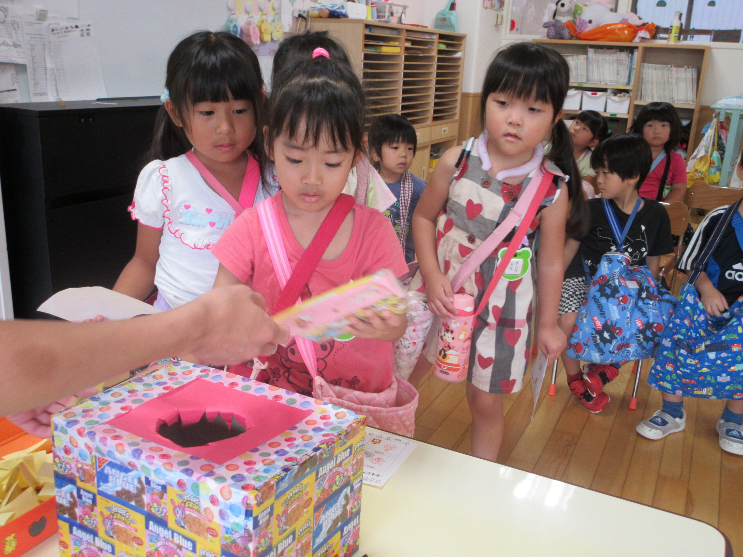 (59)令和5年度「年中学年 縁日ごっこ」 2023年9月6日 園内ブログ 昨日に引き続き本日9月6日(水)は年中学年の縁日ごっこを実施しました。スタンプラリーで各クラスの催し物へ行き、子ども達はウキウキしながら様々な思いで参加していました。心浮かれる様子が見受けられ景品を手にする子ども達は大満足でした。ルールを守り順番を守りながら楽しんで参加していましたね! 今日の病気欠席者は、発熱4名、鼻水1名、腹痛・下痢1名、体調不良1名、大事をとって6名です。 【ばら組】 【ゆり組】 【すみれ組】 🍙今日の給食🍙