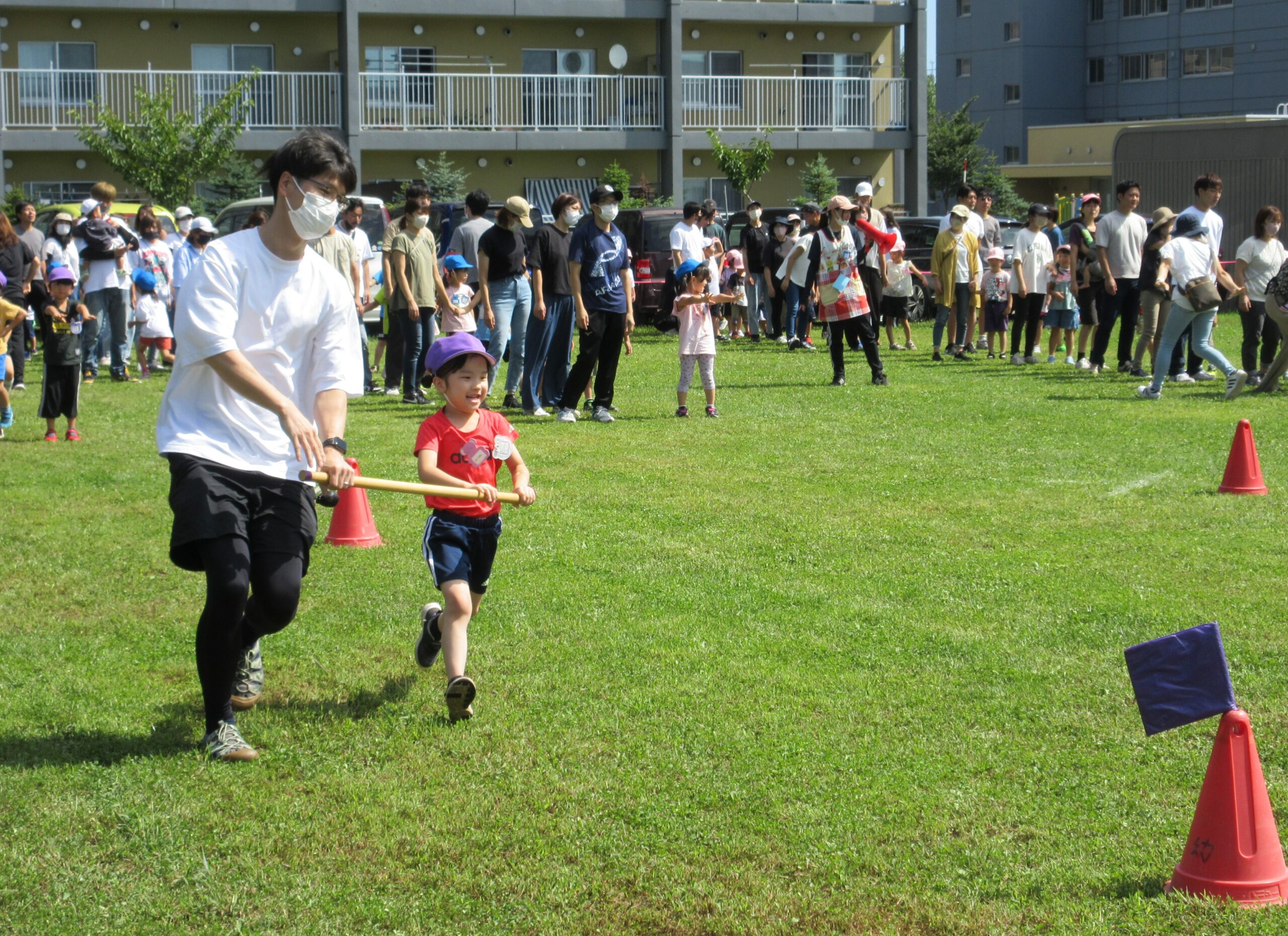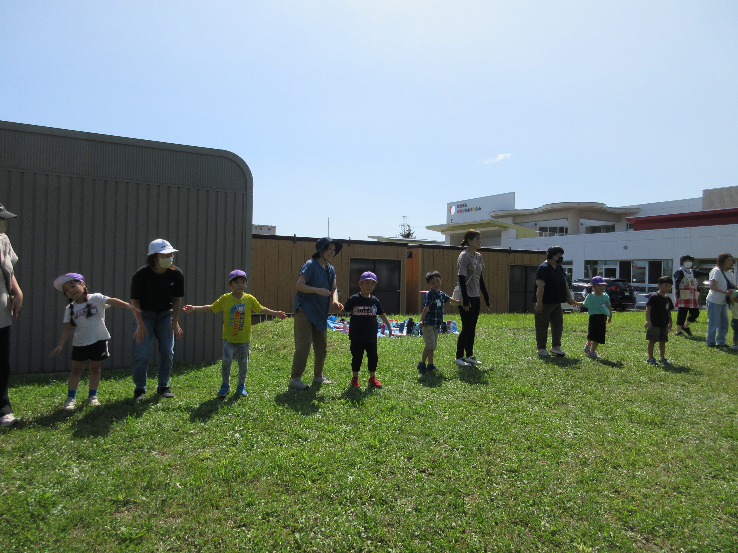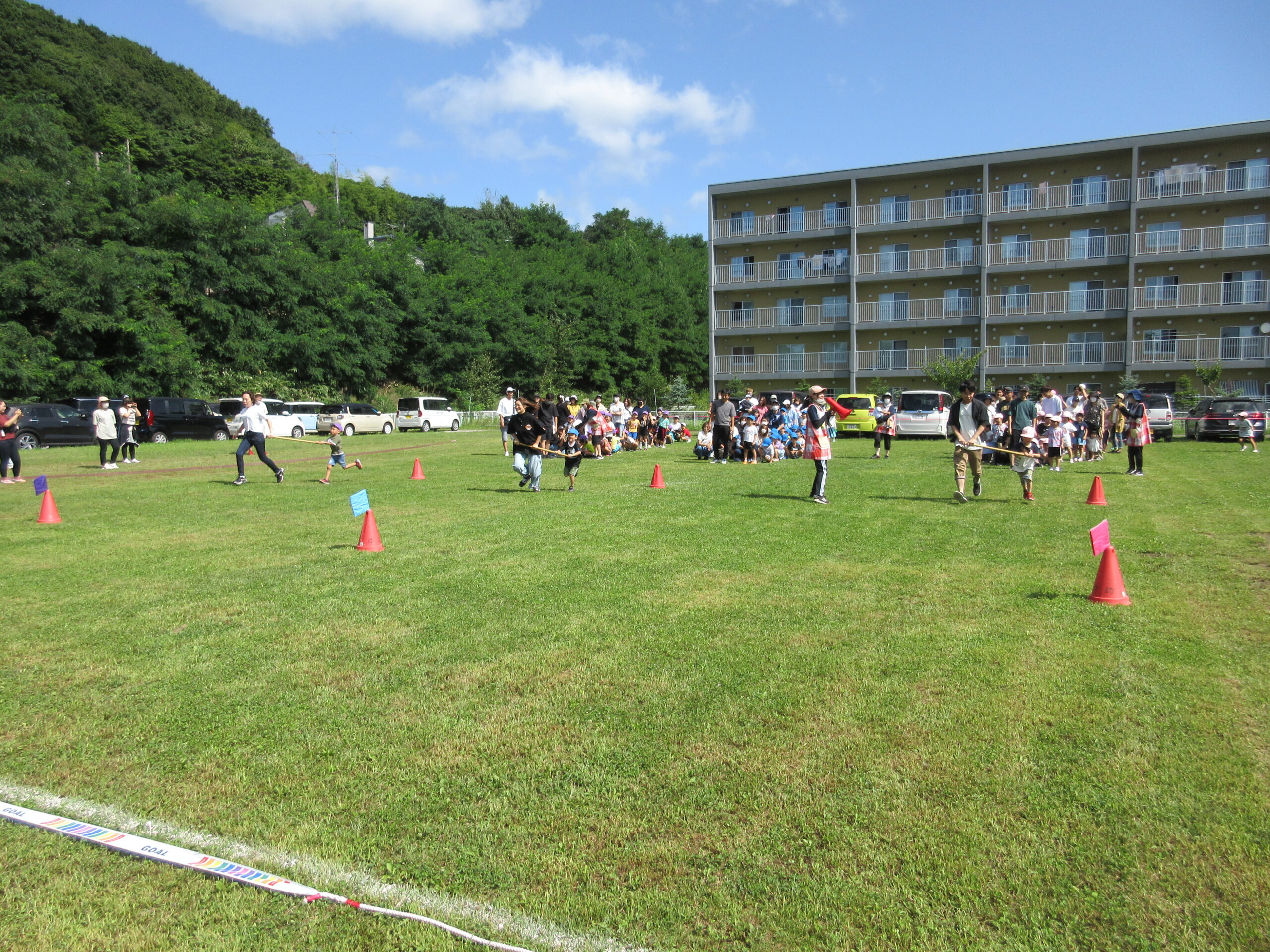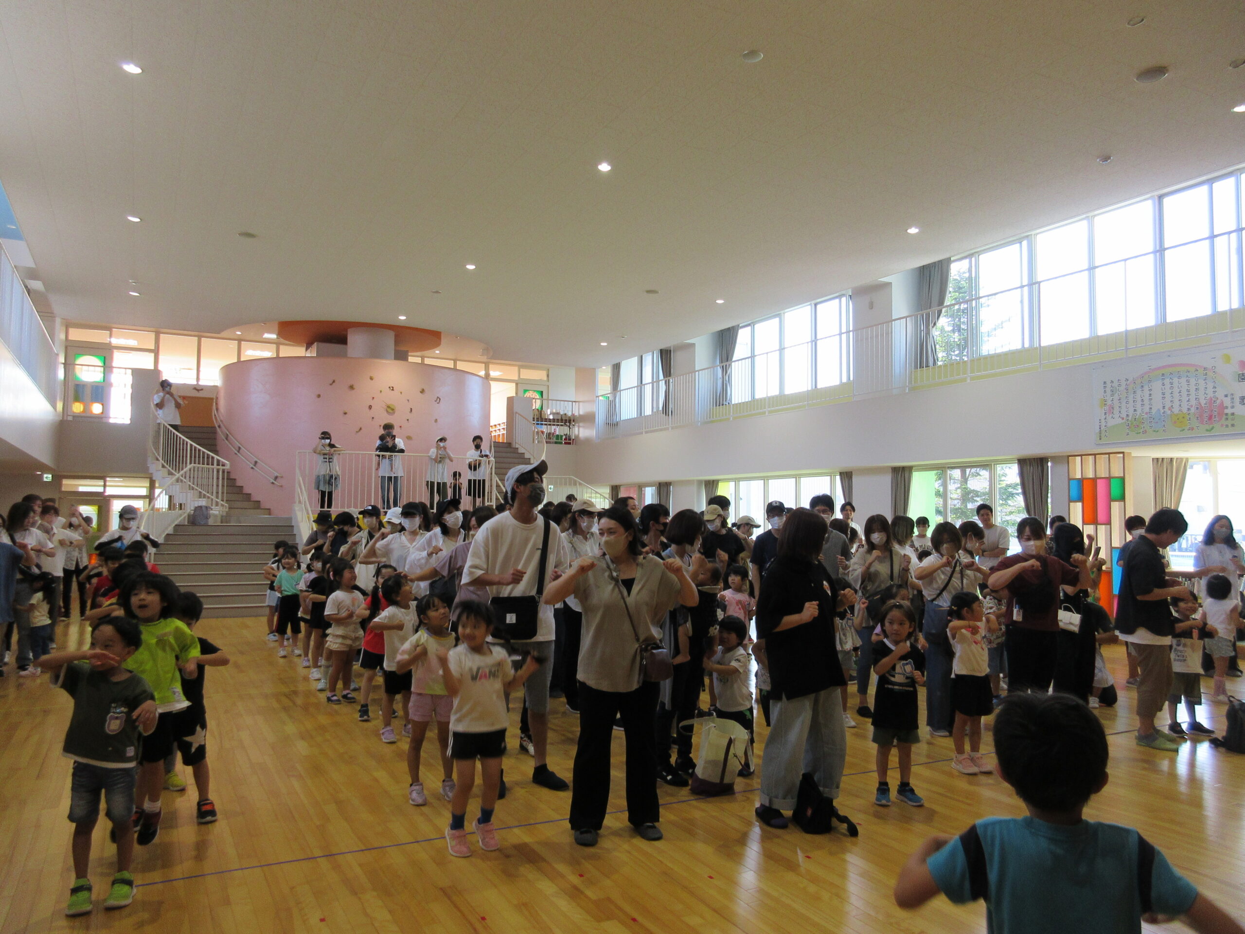 2学期に入り園生活のリズムを取り戻してきた子ども達。本日9月7日(木)は年長学年の参観日を実施しました。一学期の学びとなった運動会を振り返り園庭にてミニ運動会を楽しみました。暑さが心配でありましたが、子ども達は勿論のこと、保護者の方にも対策して頂きながら、無事終えることができました。競技では、ハリケーン・玉入れ・つなひきと親子で闘志を燃やして・・・励むことができました。最後はみんなでフォークダンスをして楽しみました。皆さん頑張りました!
