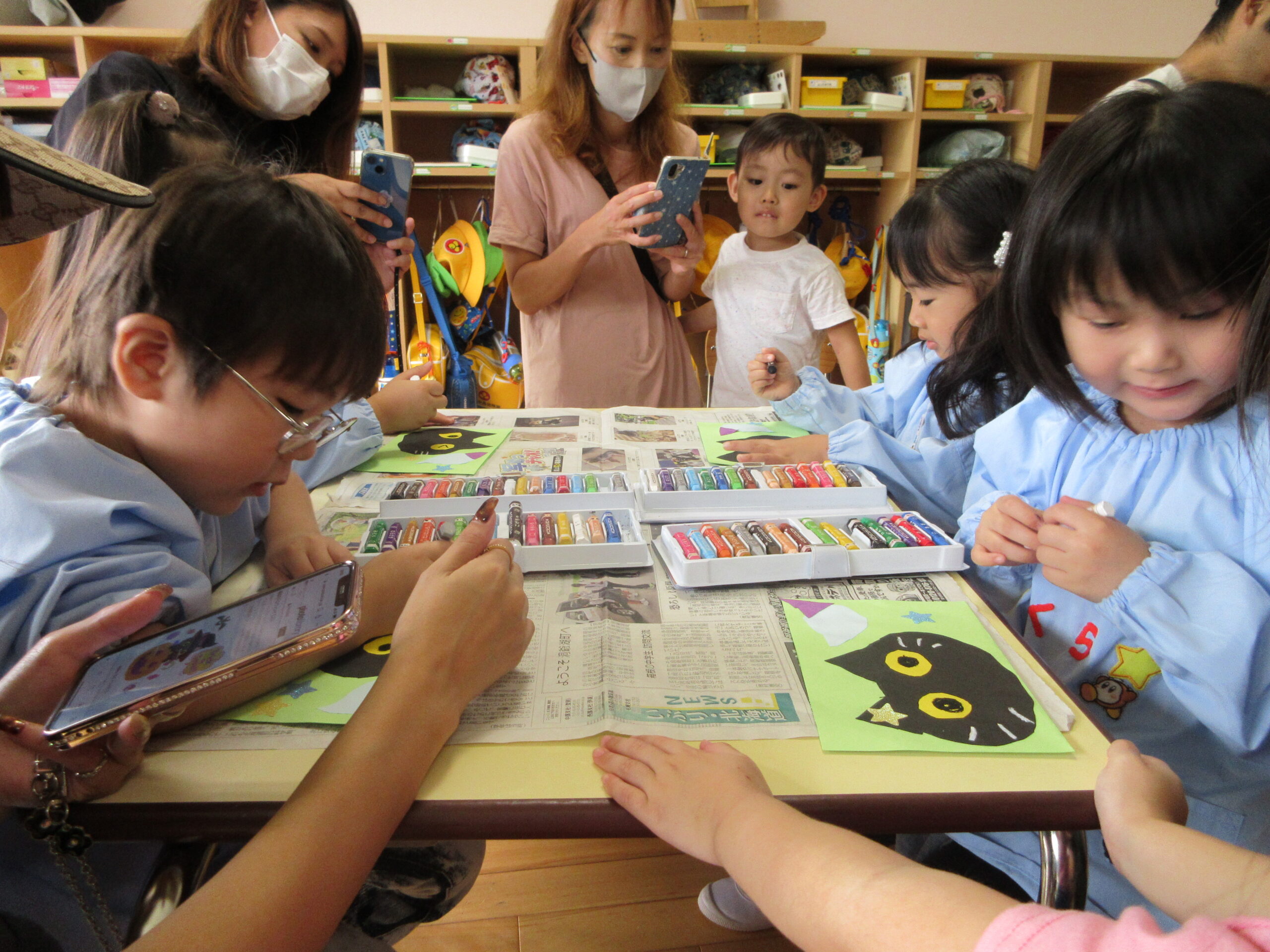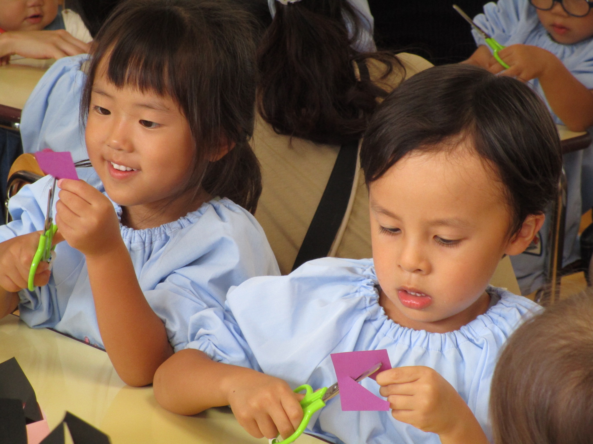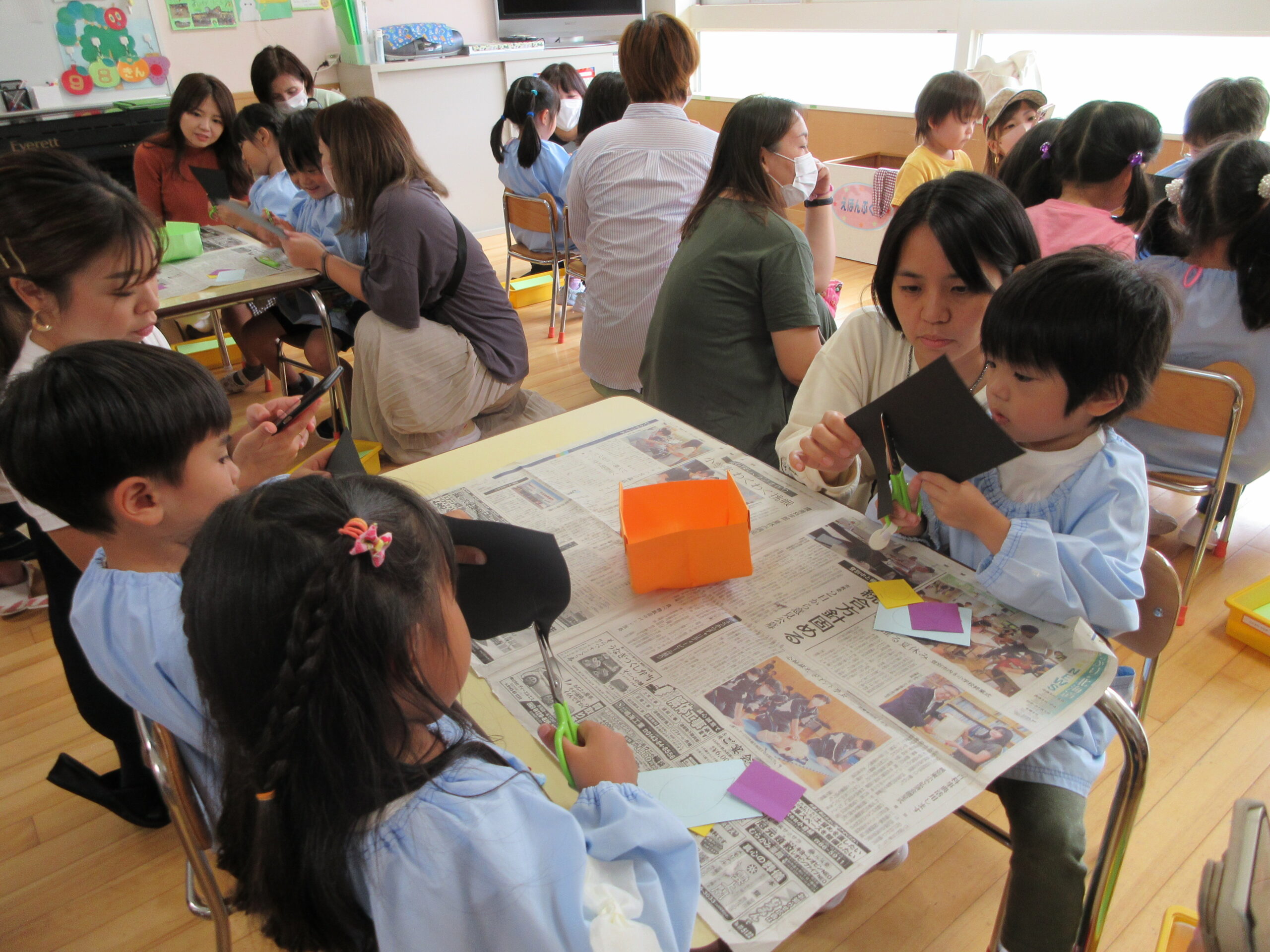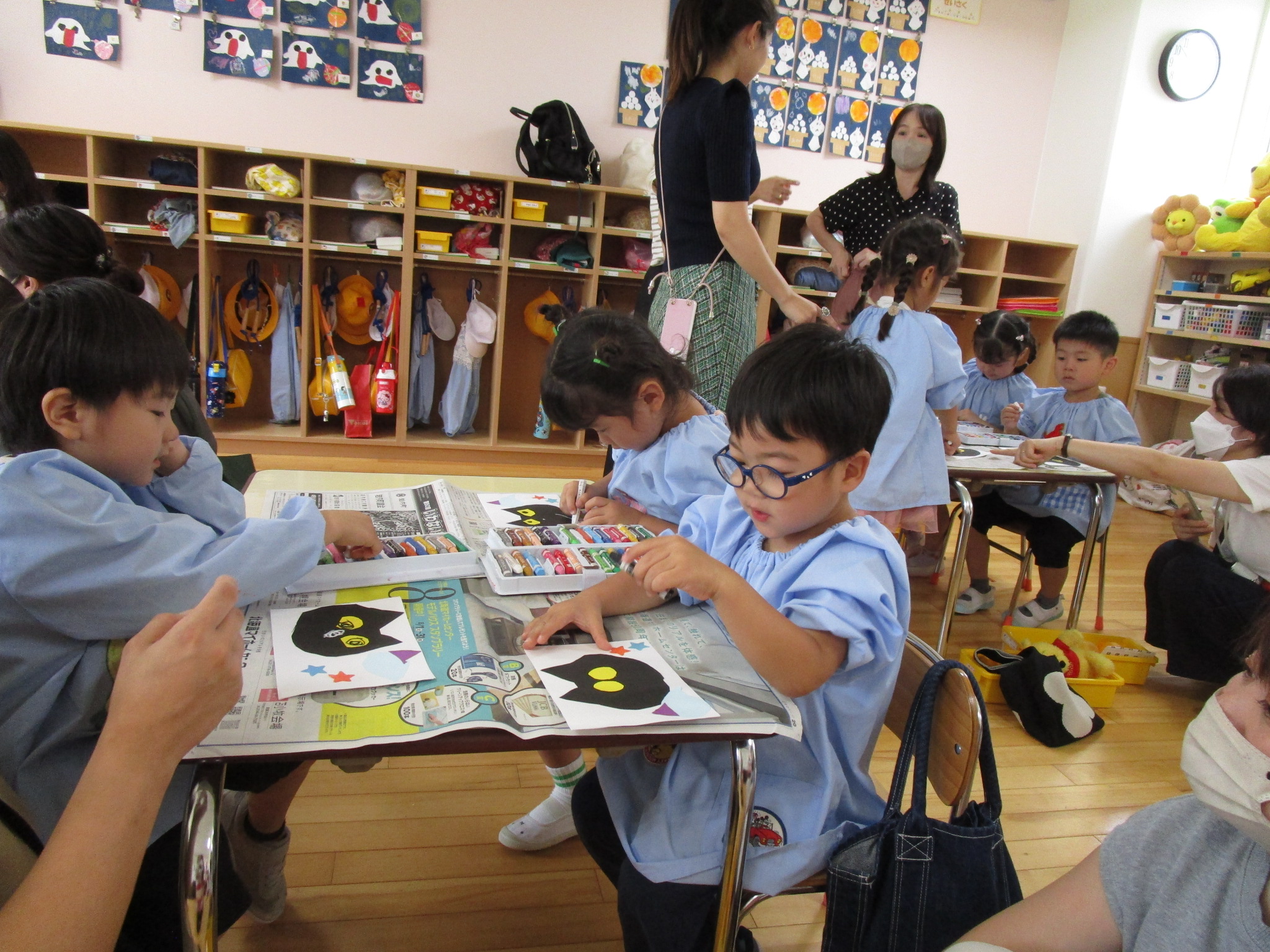 (61)令和5年度「年中学年 参観日」 2023年9月8日 園内ブログ 本日9月8日(金)は年中学年の参観日でした。親子でハロウィーン製作に挑みました。近くに保護者が居ることで甘えてしまう様子も伺われましたが、自主的に取り組む、逞しい姿も見られました。ハロウィーンの意味も理解しながら幼稚園でのお楽しみ会を心待ちにし愉快な時間となりました。 今日の病気欠席者は、風邪3名、発熱4名、咳2名、体調不良5名、大事をとって2名です。 【ばら組】 【ゆり組】 【すみれ組】