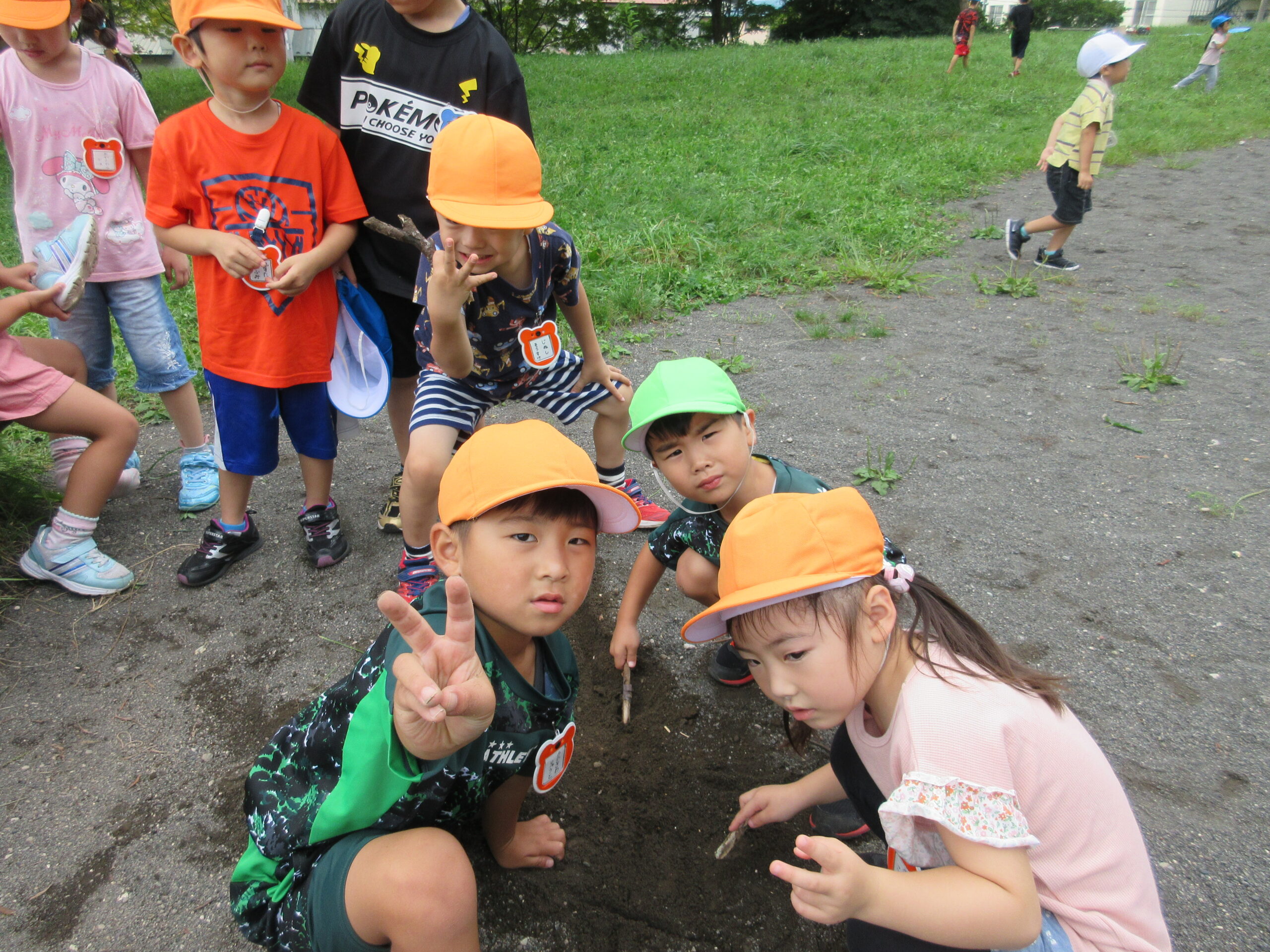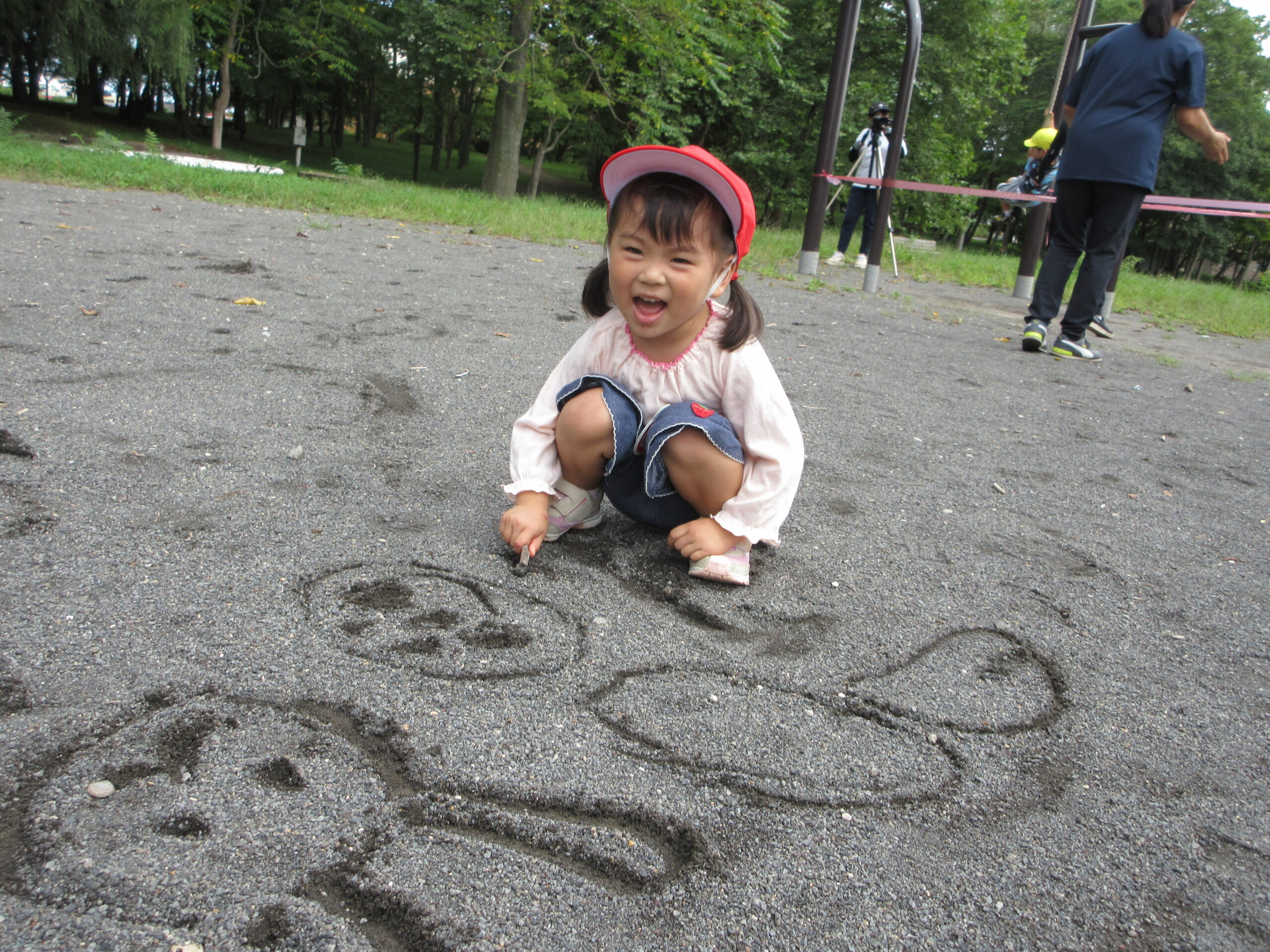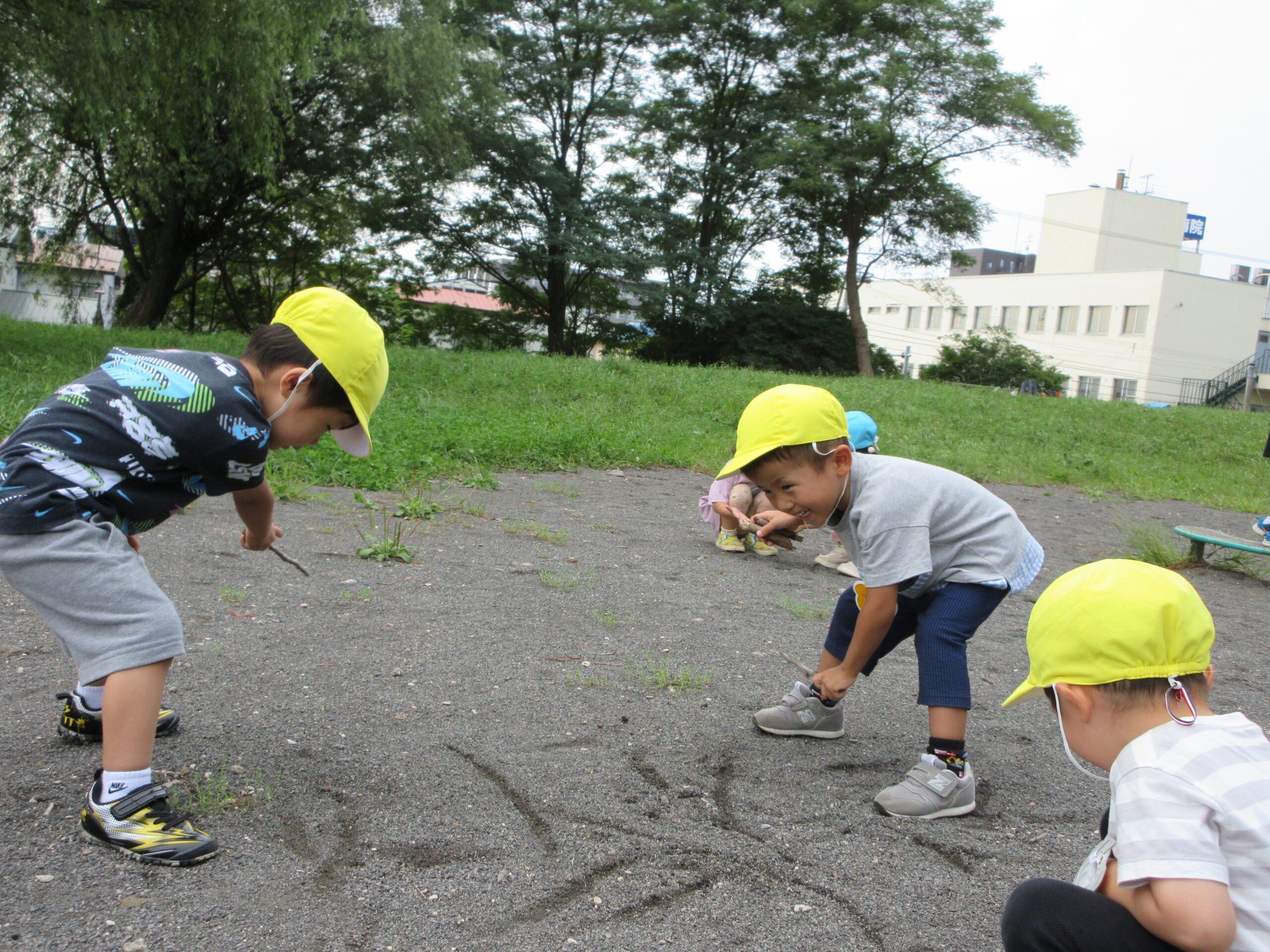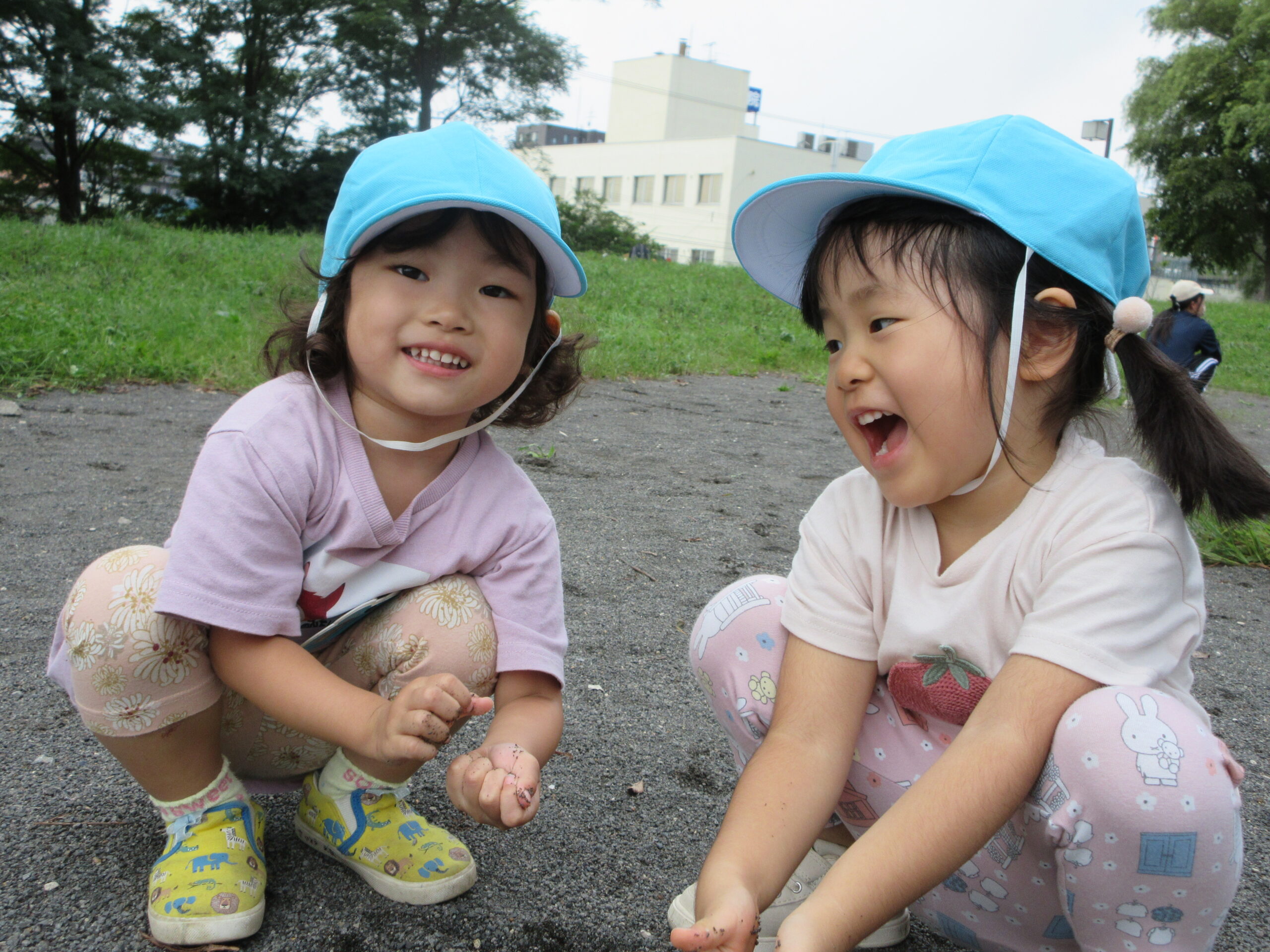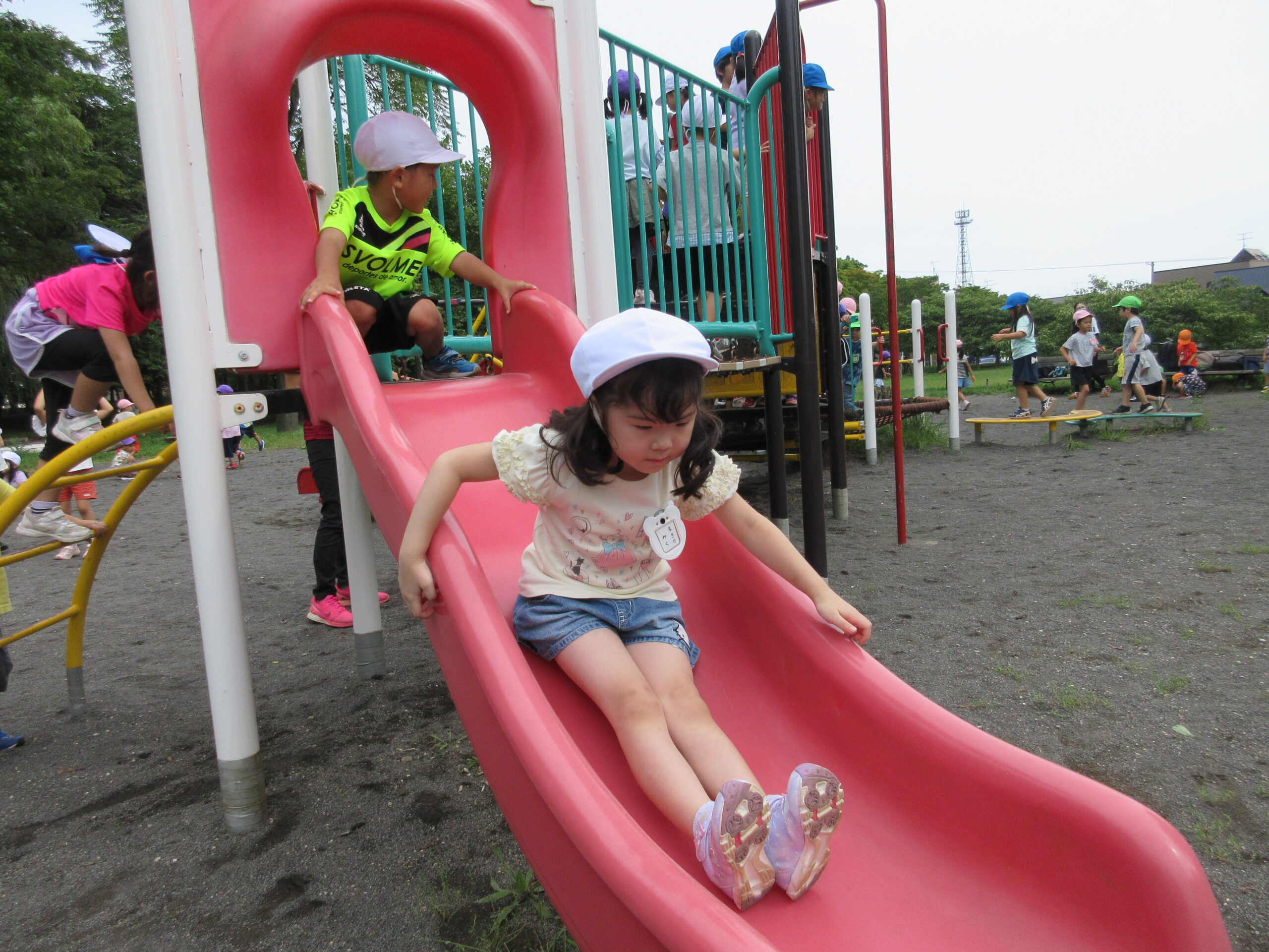 本日9月15日(金)秋の遠足を実施しました。昨日までの降水量で現地の中島公園が心配でしたが、今日はお天気に恵まれ歩きやすい気温でした。例年通り中島公園までは学年毎で2人手を繋ぎ歩きました。休憩(水分補給)をしながら順調に歩くことができていましたね。年長学年を先頭に、続いて歩く年中学年。そして少し距離をおいての年少学年。交通ルールを守りながら歩くことができました。現地ではそれぞれの敷物を敷いておにぎり🍙おやつ🍭を食べ、遊具で沢山遊び充実した時間を過ごすことができました。