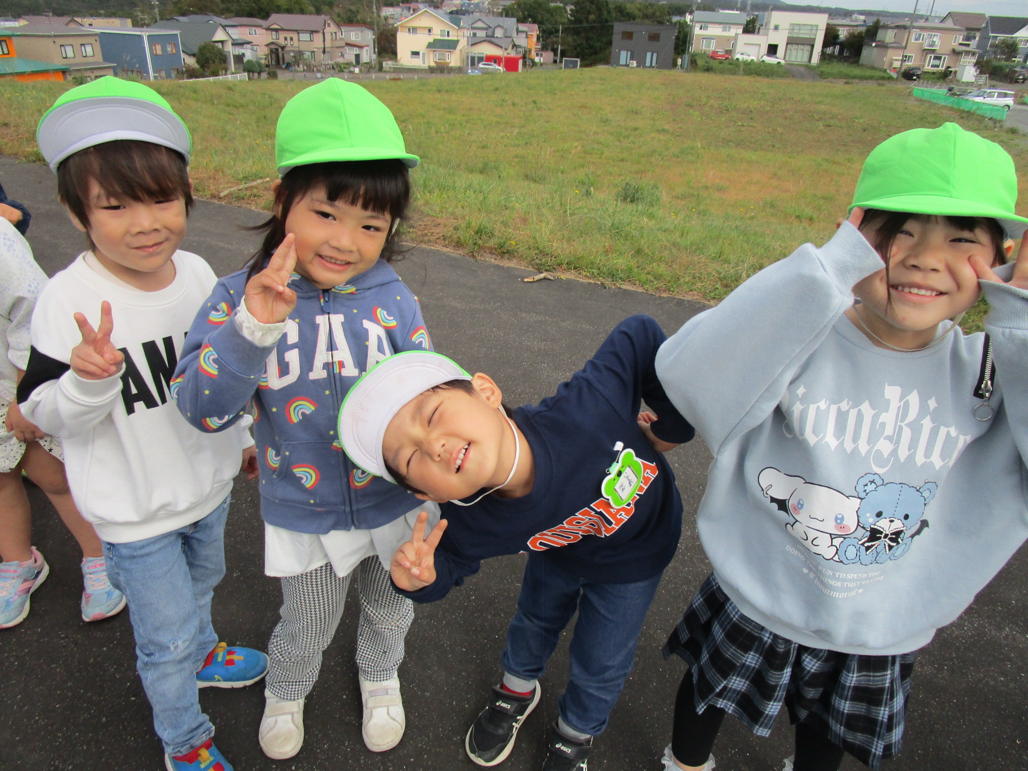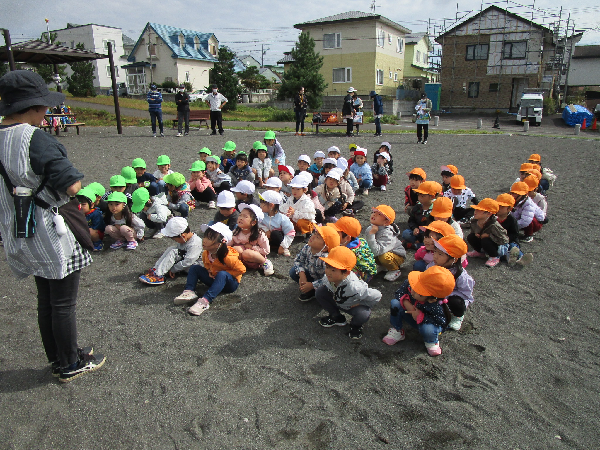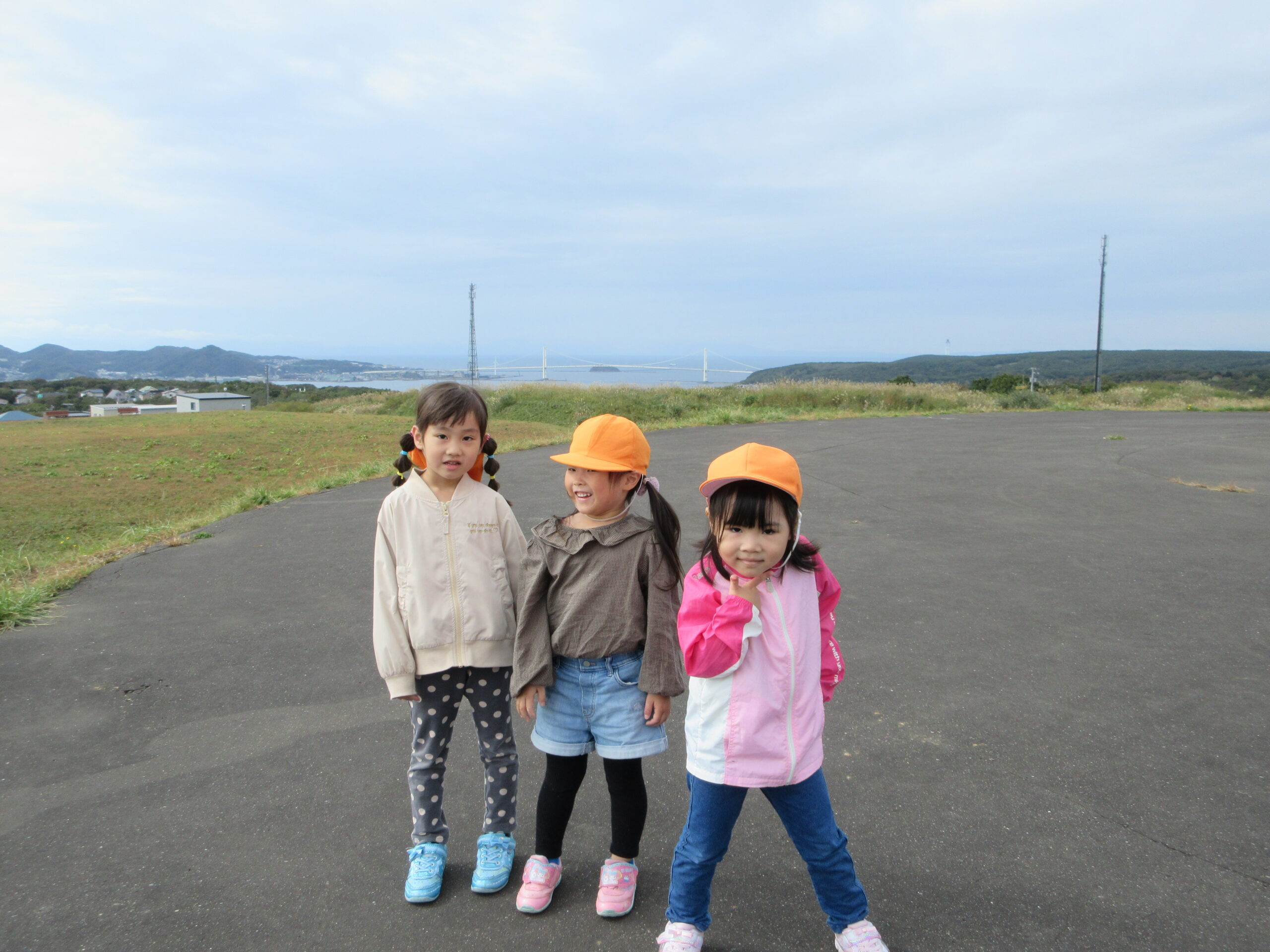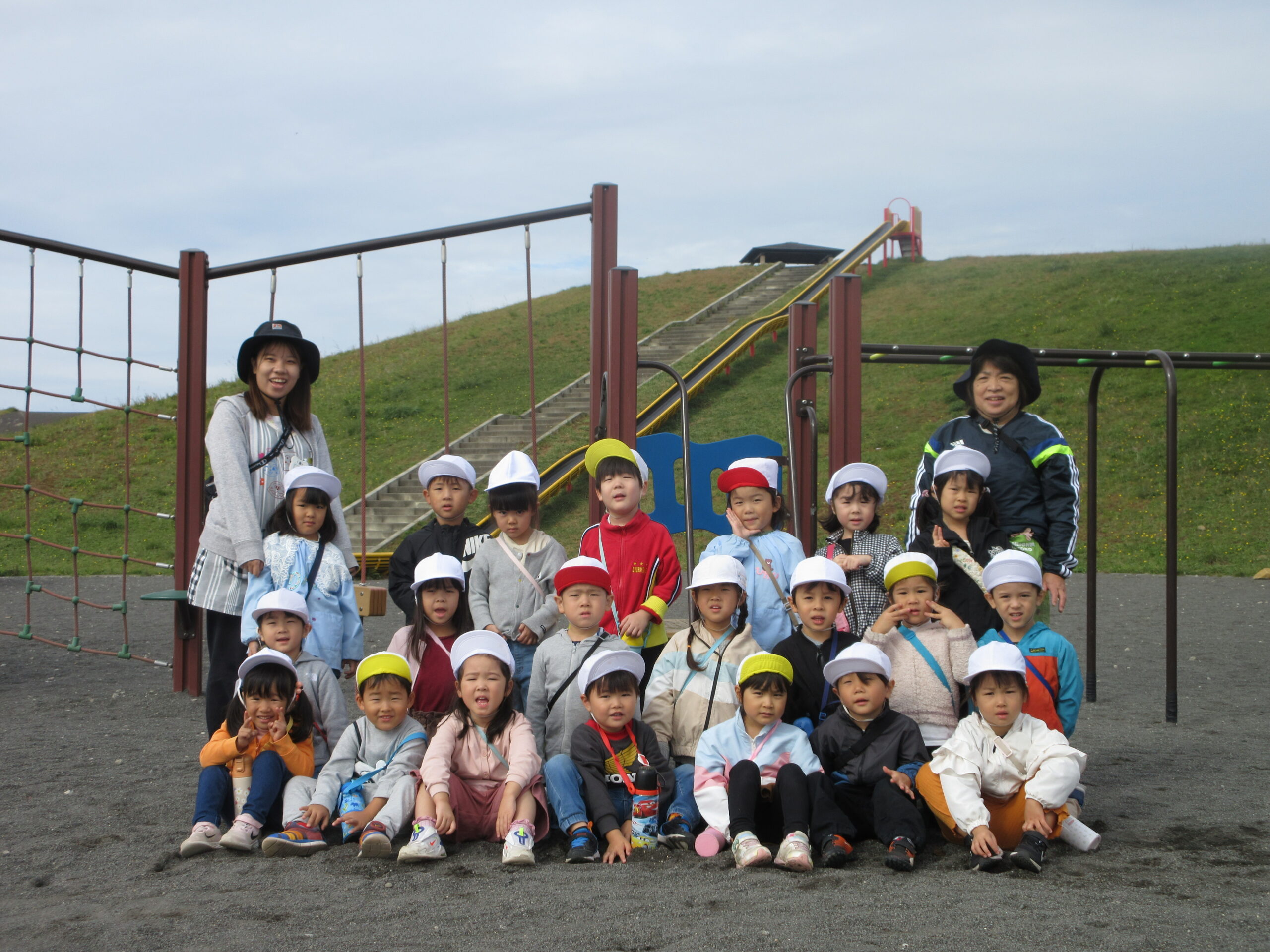 (75)令和5年度「年中学年 南公園」 2023年10月10日 園内ブログ 昨夜の雨で天候が心配でした今日10月10日(火)年中学年は南公園にお出掛けの日でした。幼稚園バスで水筒を持って10時15分に出発をしています。道中のバスの中では気持ちルンルン、現地では元気一杯楽しむ姿が見られました。広範囲で遊具に行ったり来たりする子や、同じ遊具で繰り返し遊ぶ子、砂で山を造ったり、石を積み上げたり等、学年で充実した時間を過ごすことができました。