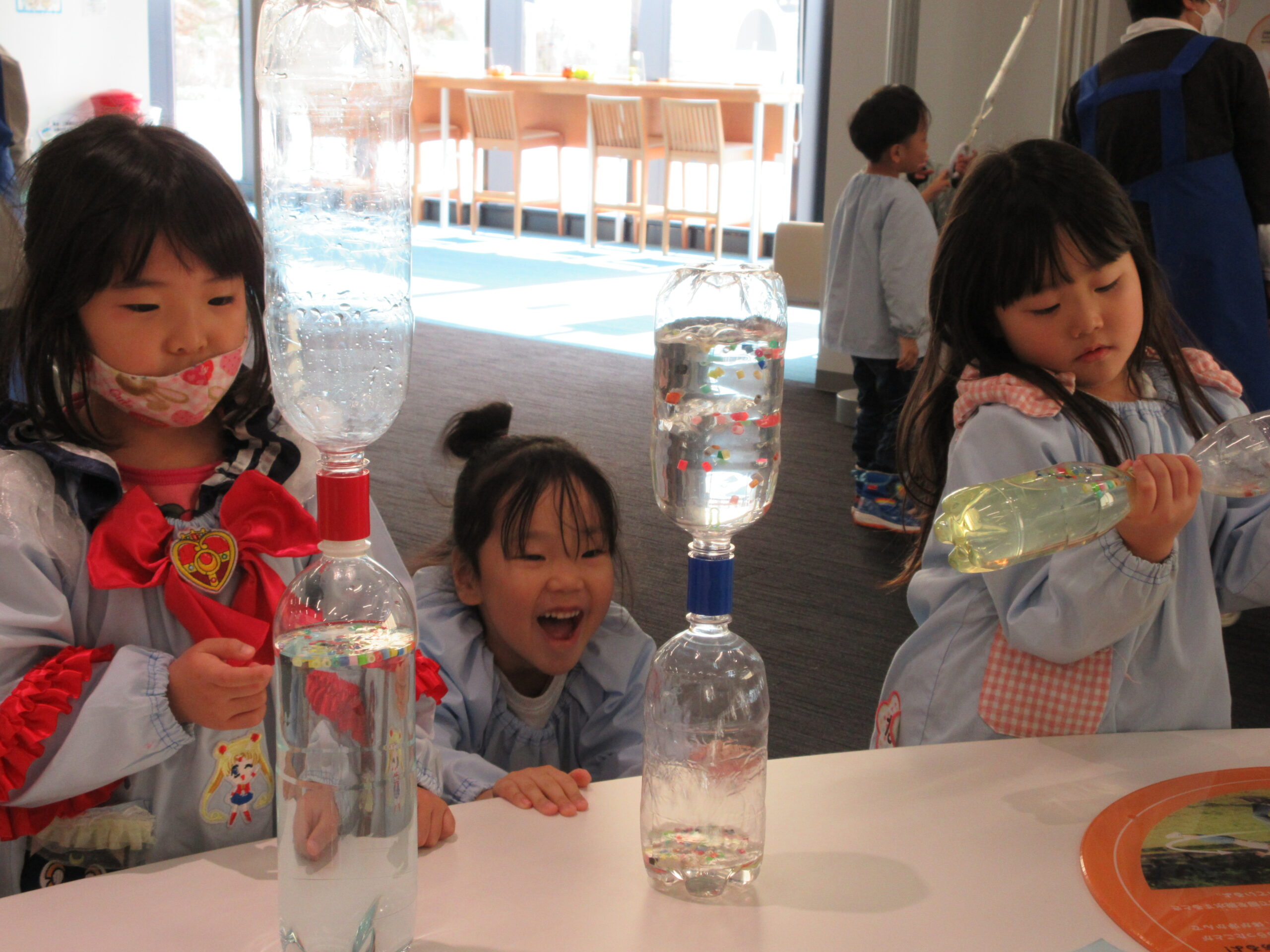 本日11月28日(火)「えみらんDENZAI科学館」に見学に行きました。園バスで9時50分頃に出発し10時10分頃到着しました。バス内でも気持ち高ぶる様子が伺われウキウキ・ルンルン♪プラネタリウムは2部制で行われ、アナウンスに集中していた子ども達。色々な星座を見ながら、歌も歌い楽しいひと時でした。実体験の出来るアトラクション等でも意欲的に参加し繰り返し遊ぶ姿も見られました。今日は数多くのことを学んだ一日でしたね!科学館の皆様ご協力ありがとうございました。