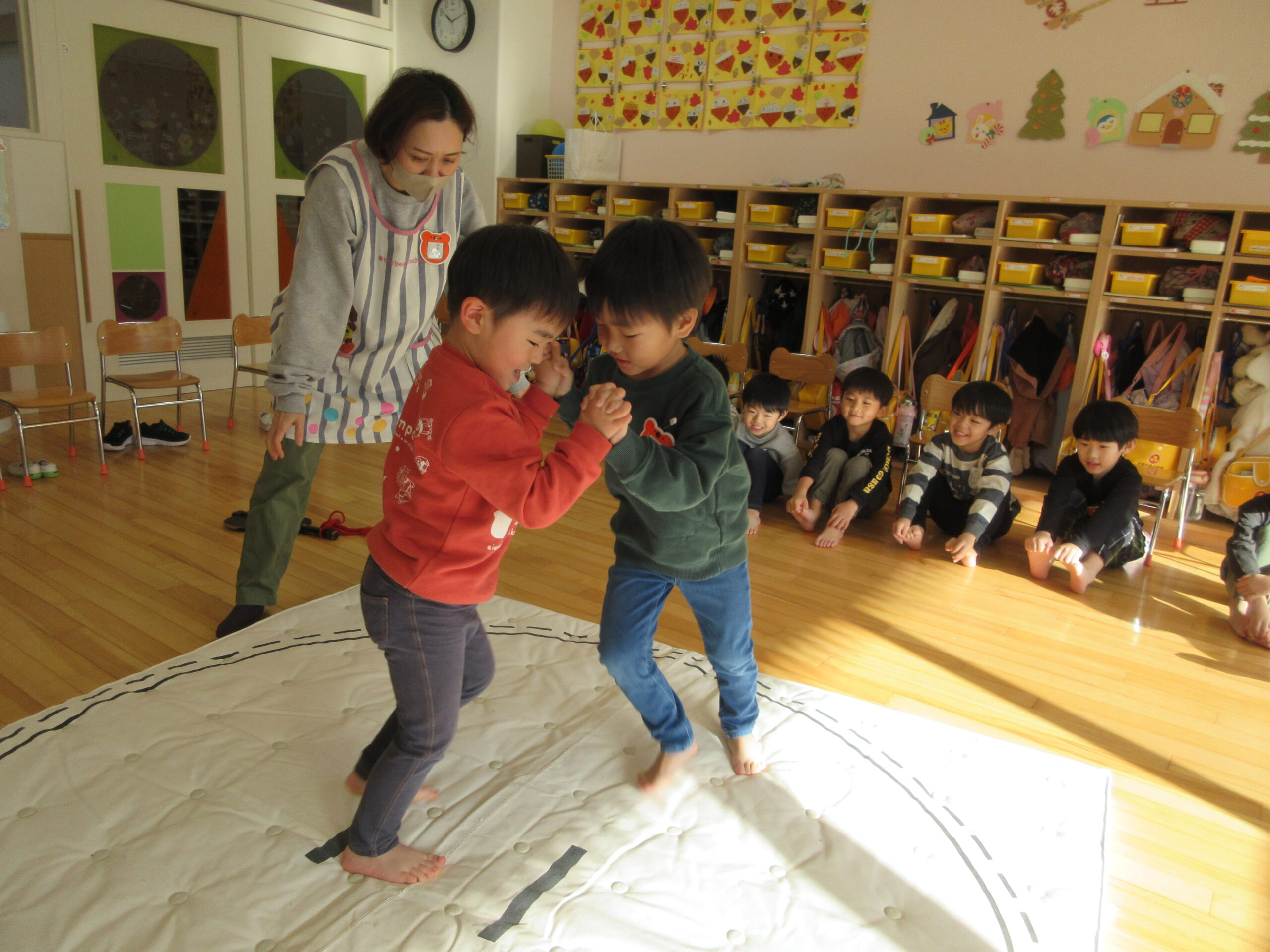 (94)令和5年度「年中学年 お相撲大会」 2023年12月5日 園内ブログ 本日12月5日(火)は各クラス毎にお部屋でおすもう大会を行いました。2回目のおすもう大会ということもあり、前回よりも気合十分なお友だちが多く見られました。最後まで諦めず一生懸命行っている姿や、お友だちを思いやる姿が見られとても成長を感じた大会でした!次回3学期は年中最後のおすもう大会なので精一杯力を発揮して欲しいと思っています! 今日の病気欠席者は、風邪4名、発熱19名、咳3名、鼻水1名、体調不良2名、大事をとって7名です。 🍙今日の給食🍙