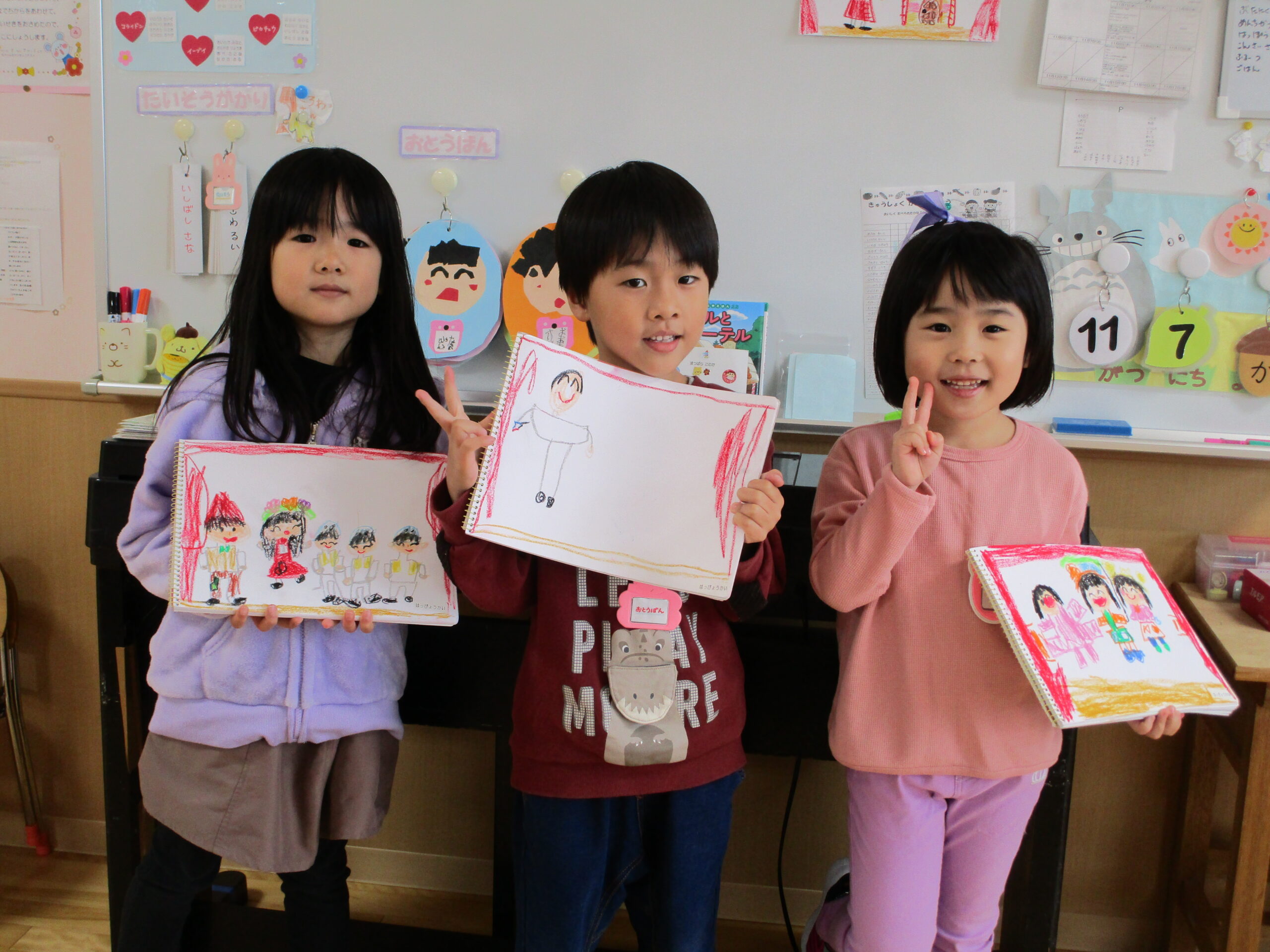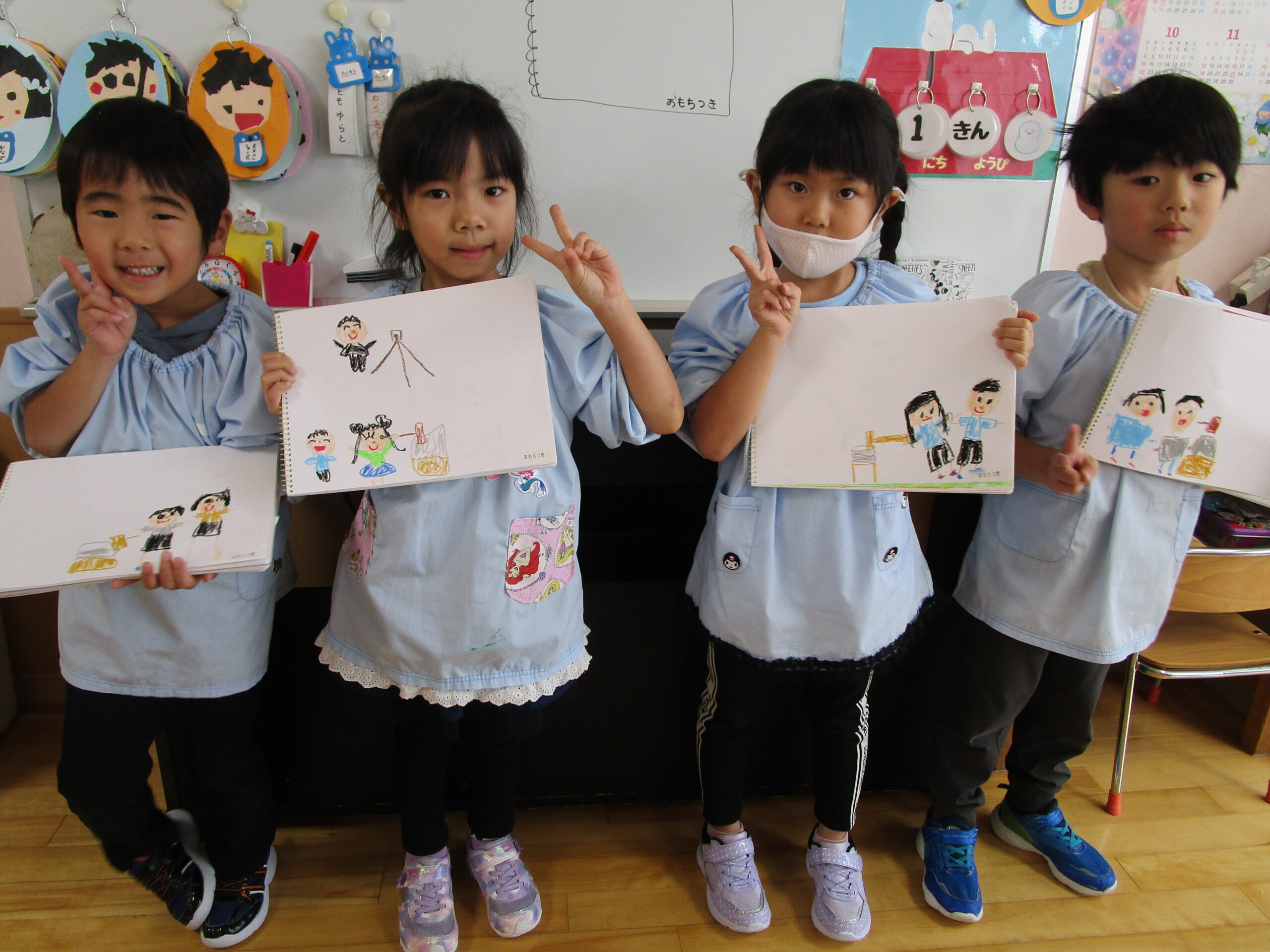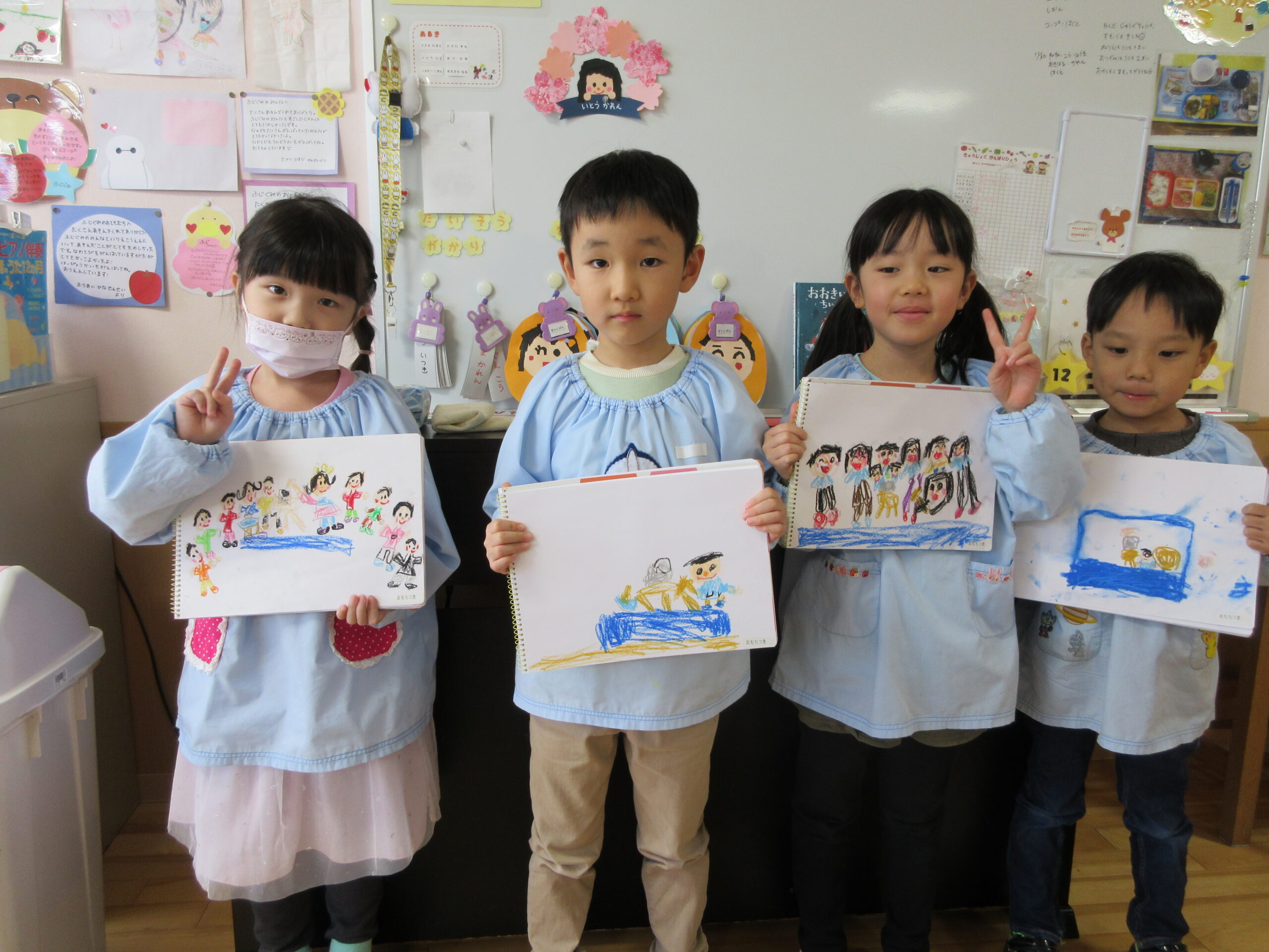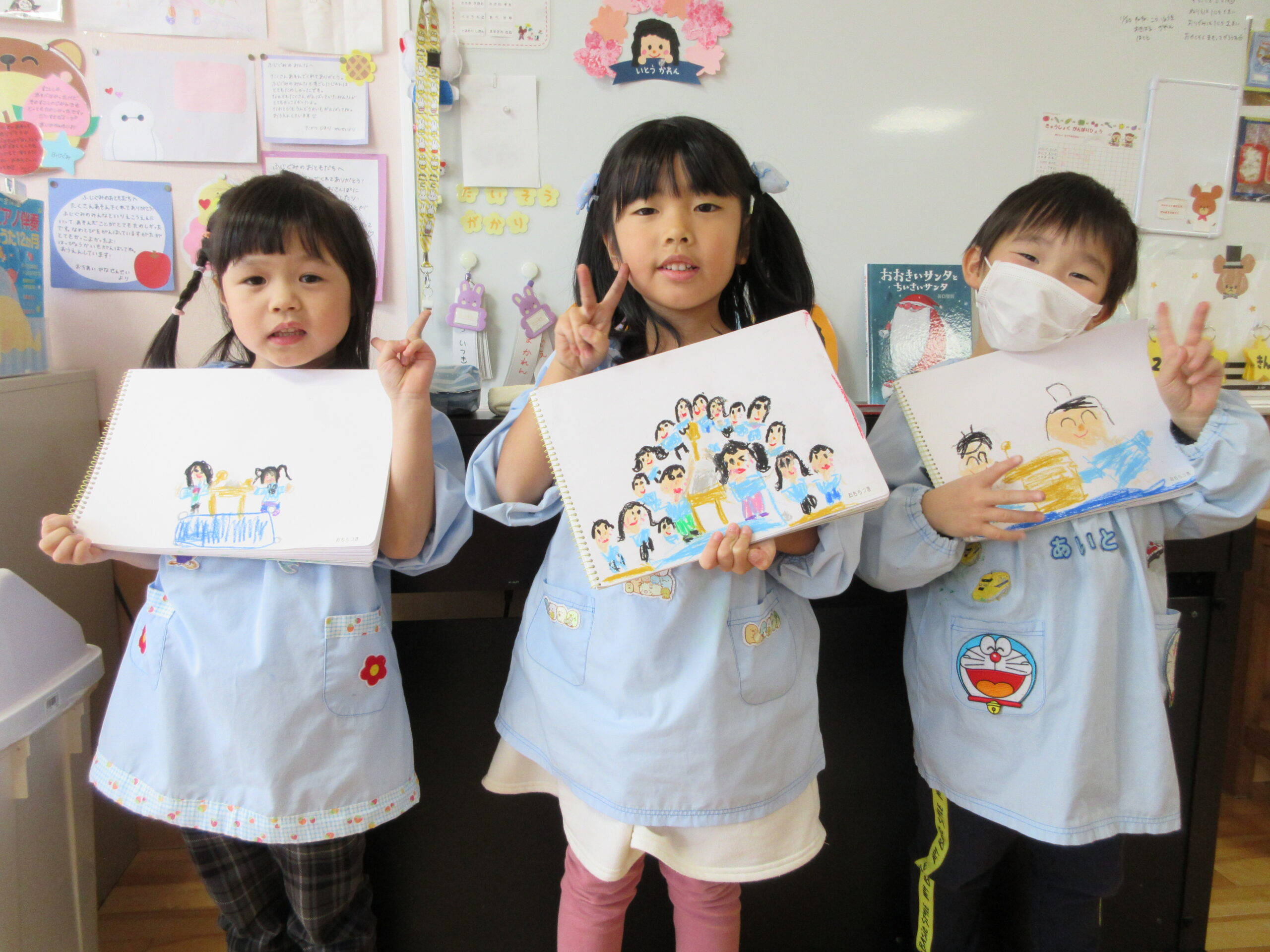 発表会の絵やお餅つきの絵など、経験したことを自分の思うように表現する事も上手になり、伸び伸びと描くことが出来ていました♪