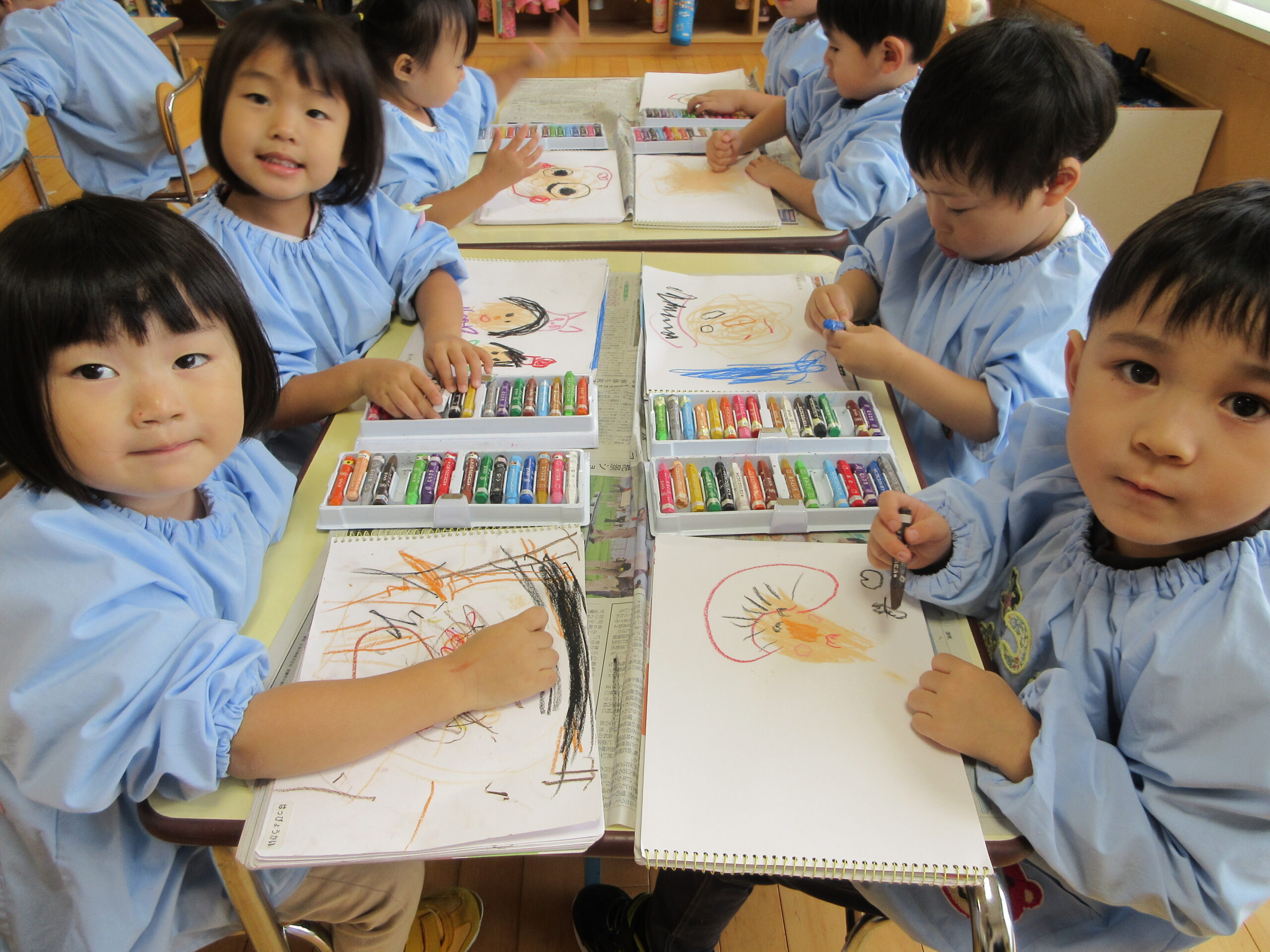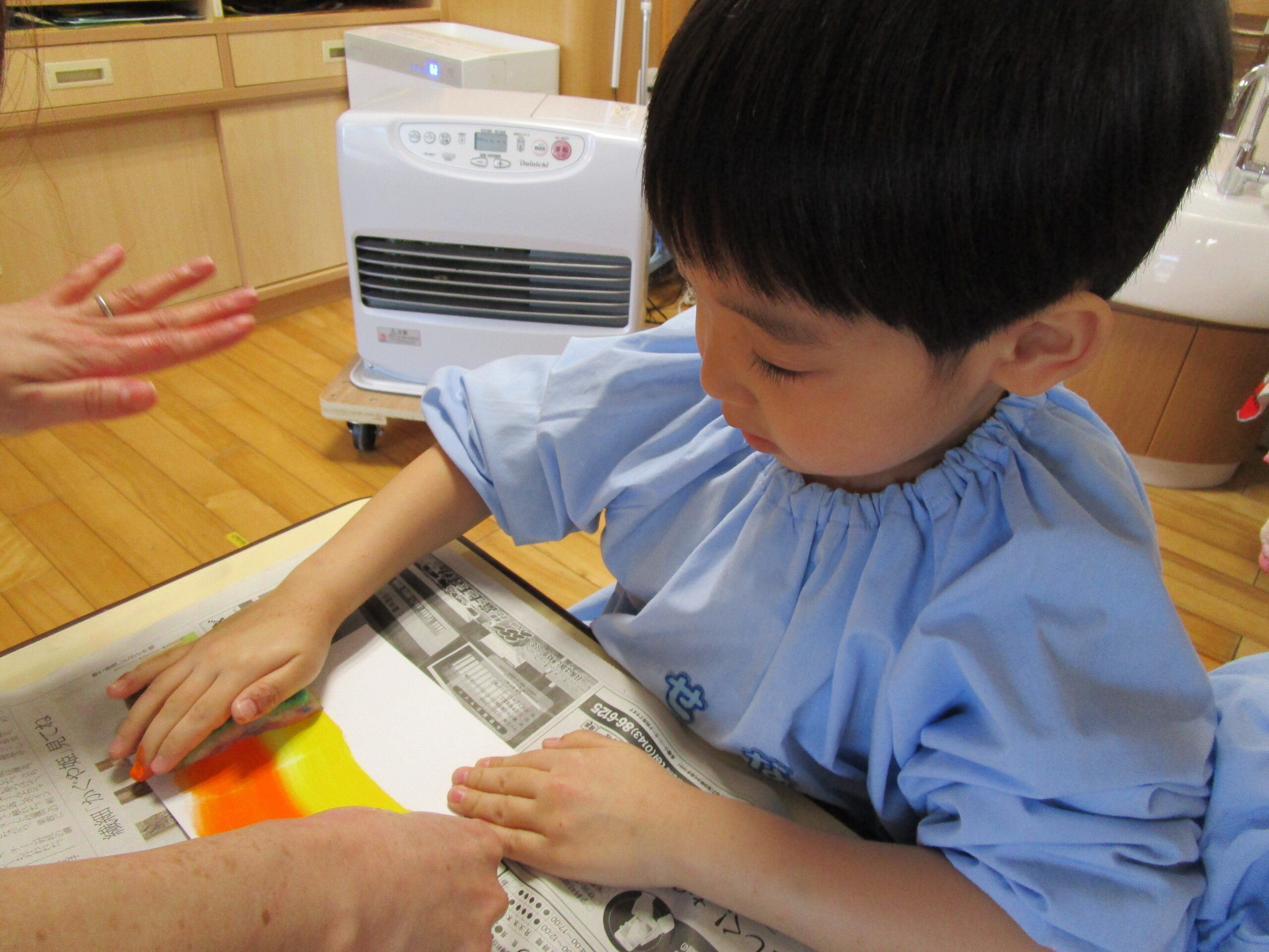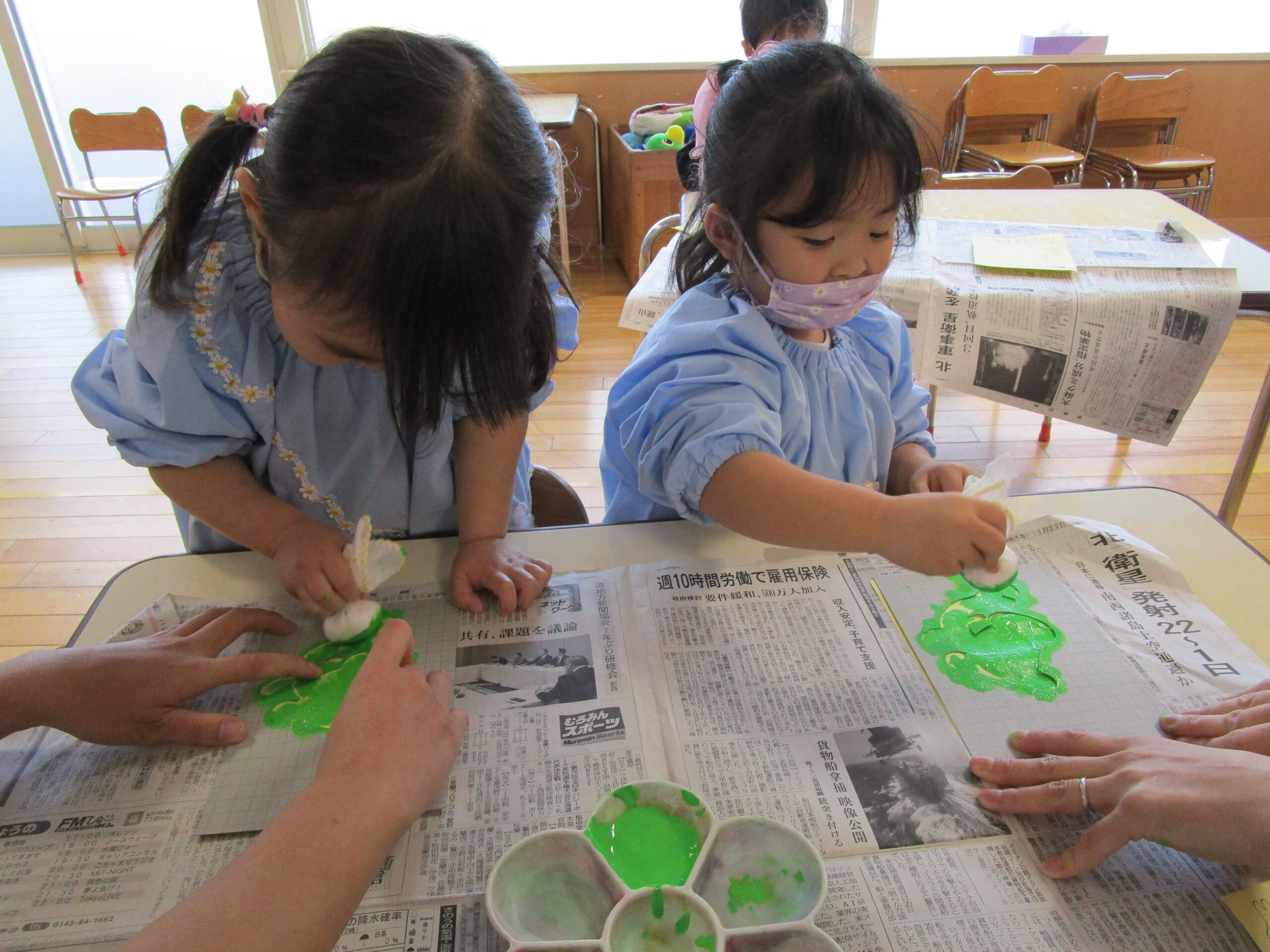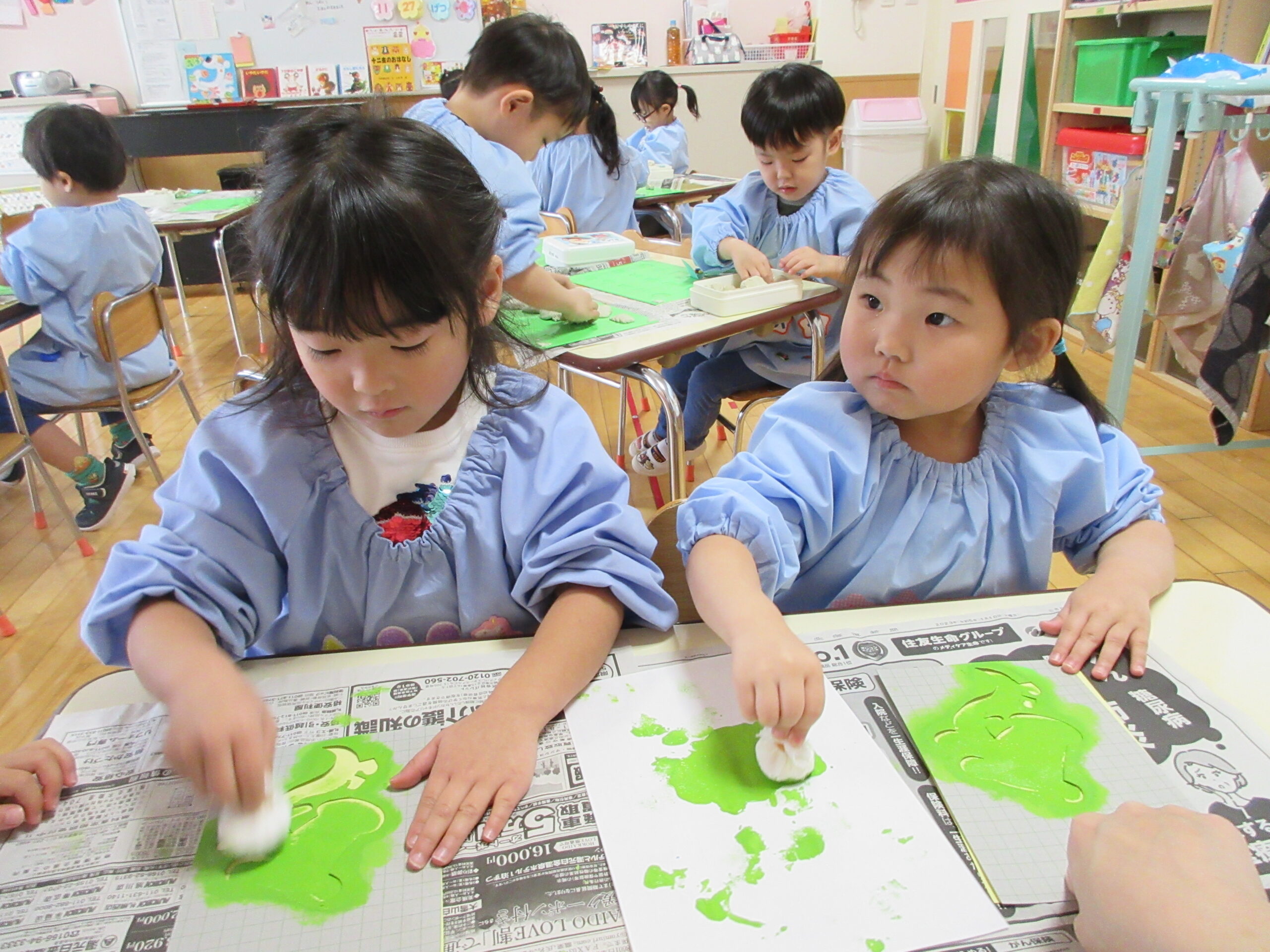 はさみやのりの使い方に成長が見られ、少しずつ製作の難易度も上がってきました。絵の具を使った作品にいくつか挑戦し、様々な表現の方法を楽しむ姿が見られました。
