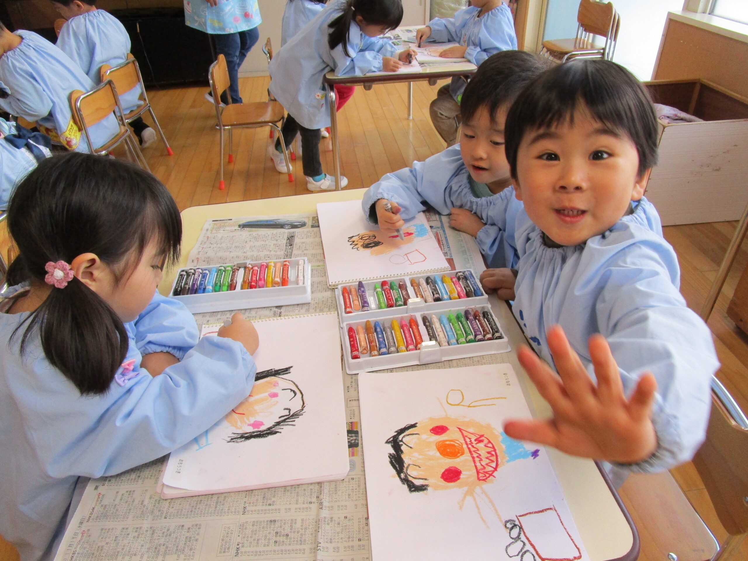今日の病気欠席者は、風邪3名、発熱16名、鼻水3名、腹痛・下痢1名、大事をとって2名です。