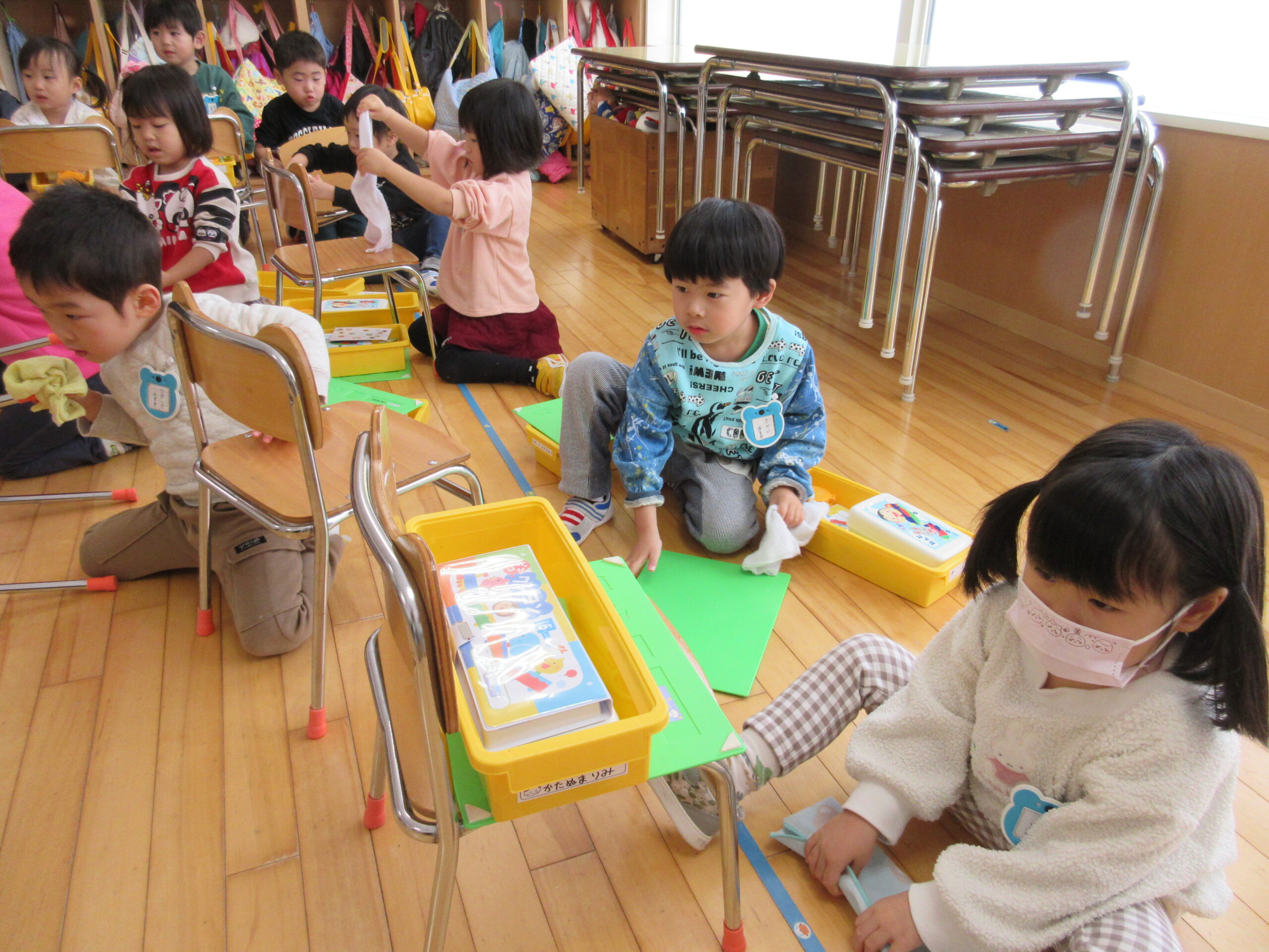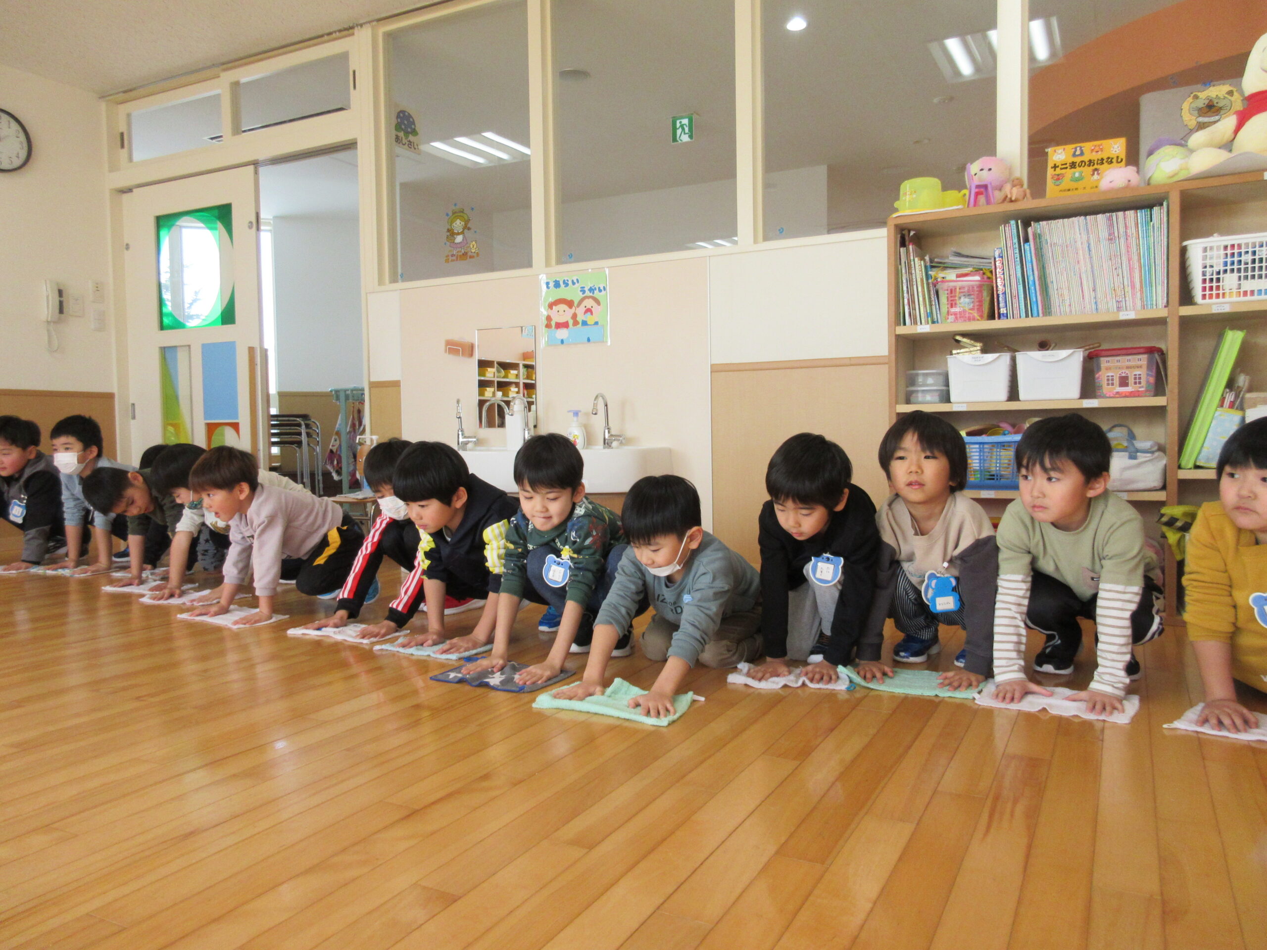 (104)令和5年度「園児大掃除」 2023年12月21日 園内ブログ 明日の終業式を控え本日12月21日(木)子ども達による大掃除を行いました。それぞれのお道具箱や、お部屋内の水拭きをし、活動していたお部屋を綺麗にすることが出来ました。また、廊下や階段もみんなで協力し合い大掃除に取り組みました。ピカピカになって気持ちよいですね。 今日の病気欠席者は、風邪3名、発熱3名、咳2名、鼻水1名、腹痛・下痢1名、体調不良1名、大事をとって7名です。 🧹年少🧹 🧹年中🧹 🧹年長🧹 🍙今日の給食🍙