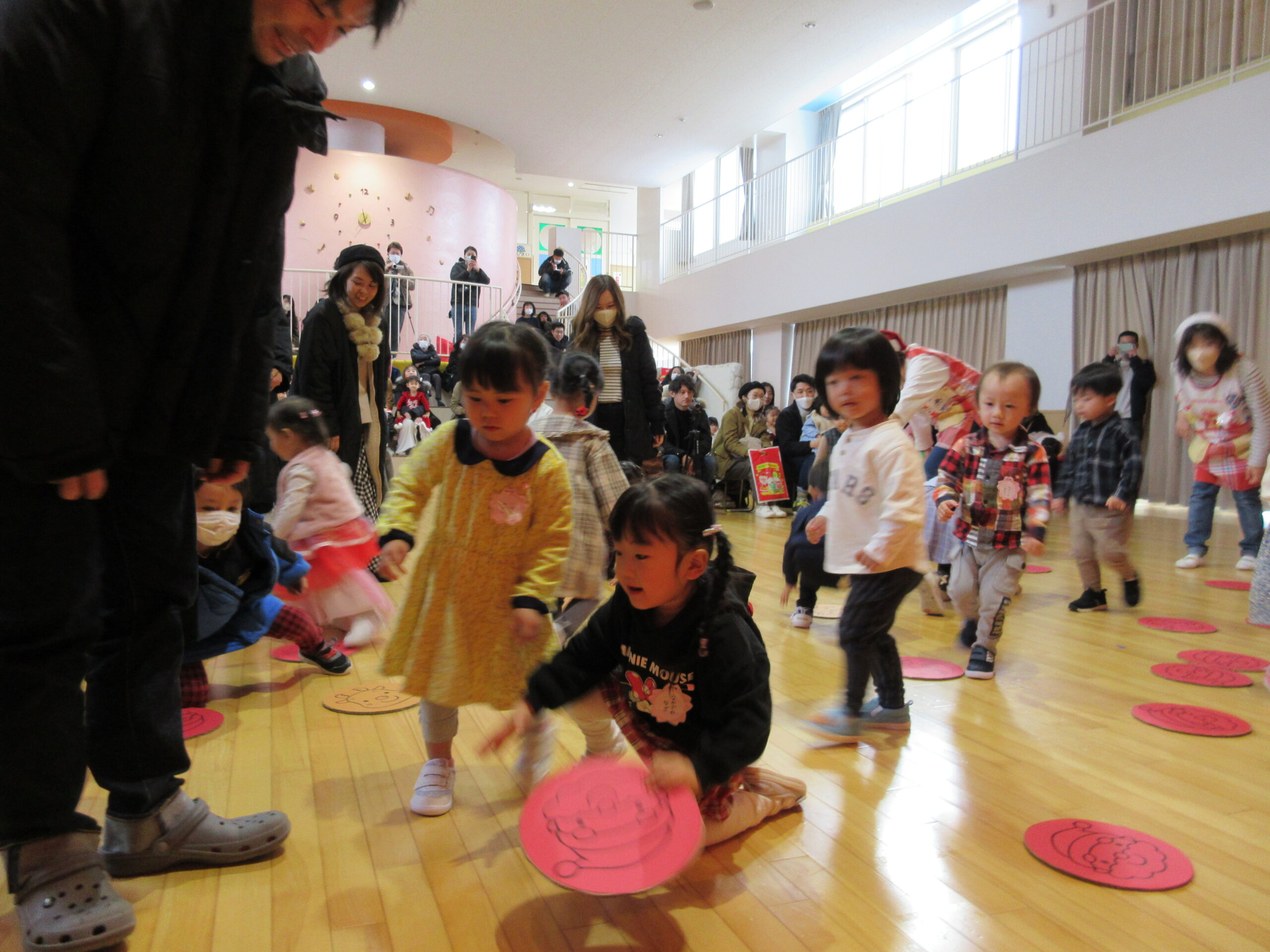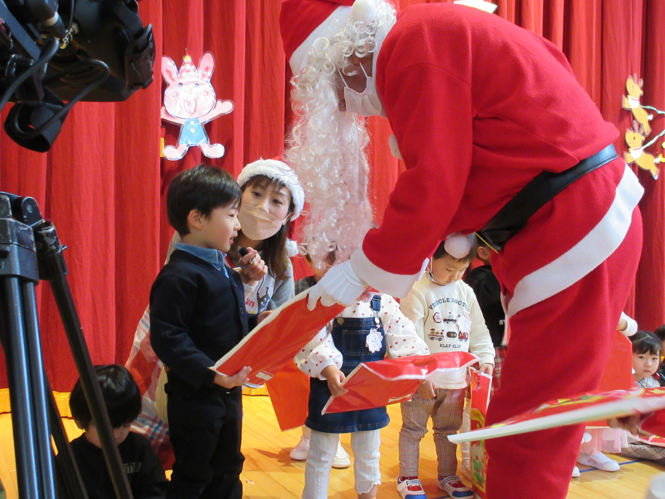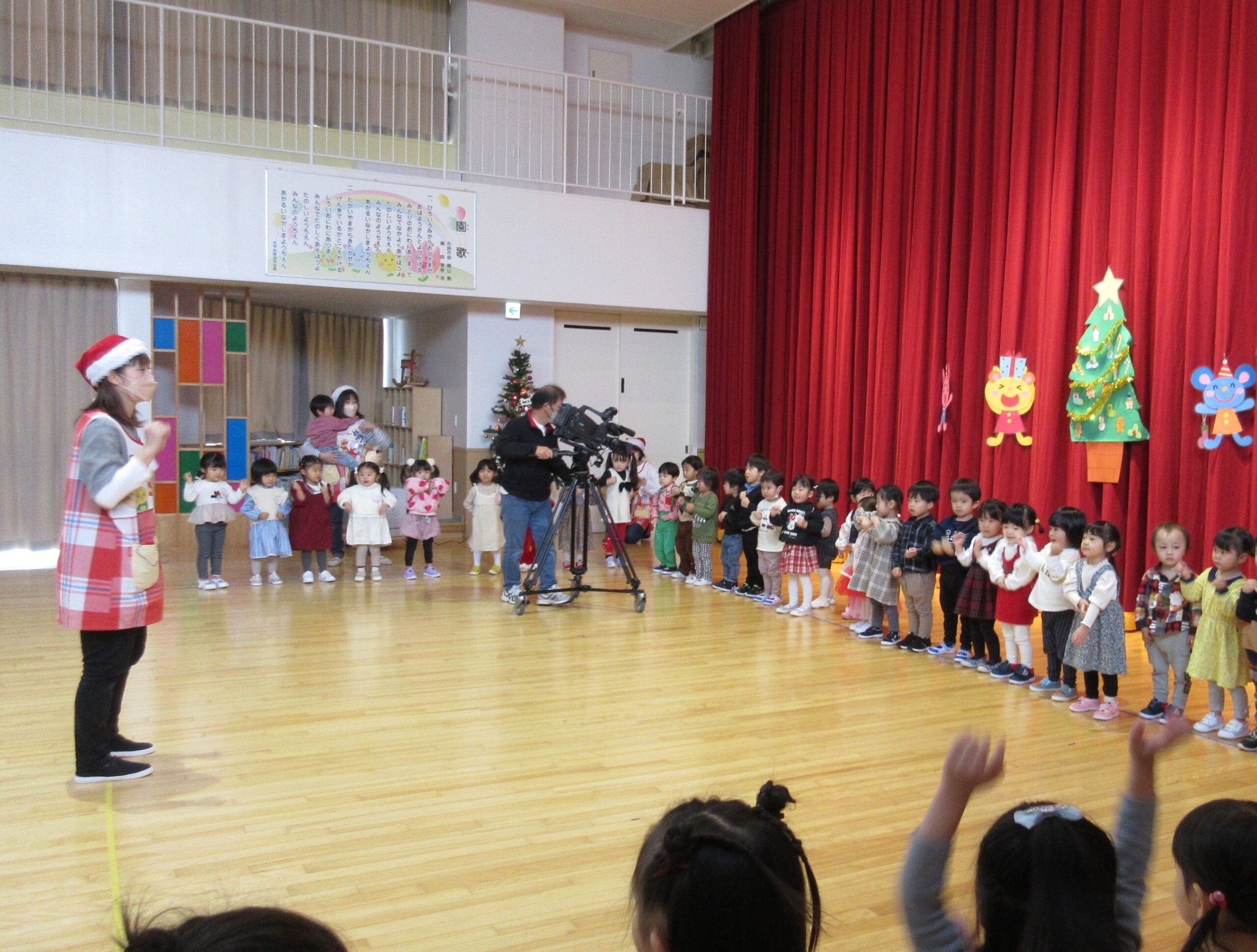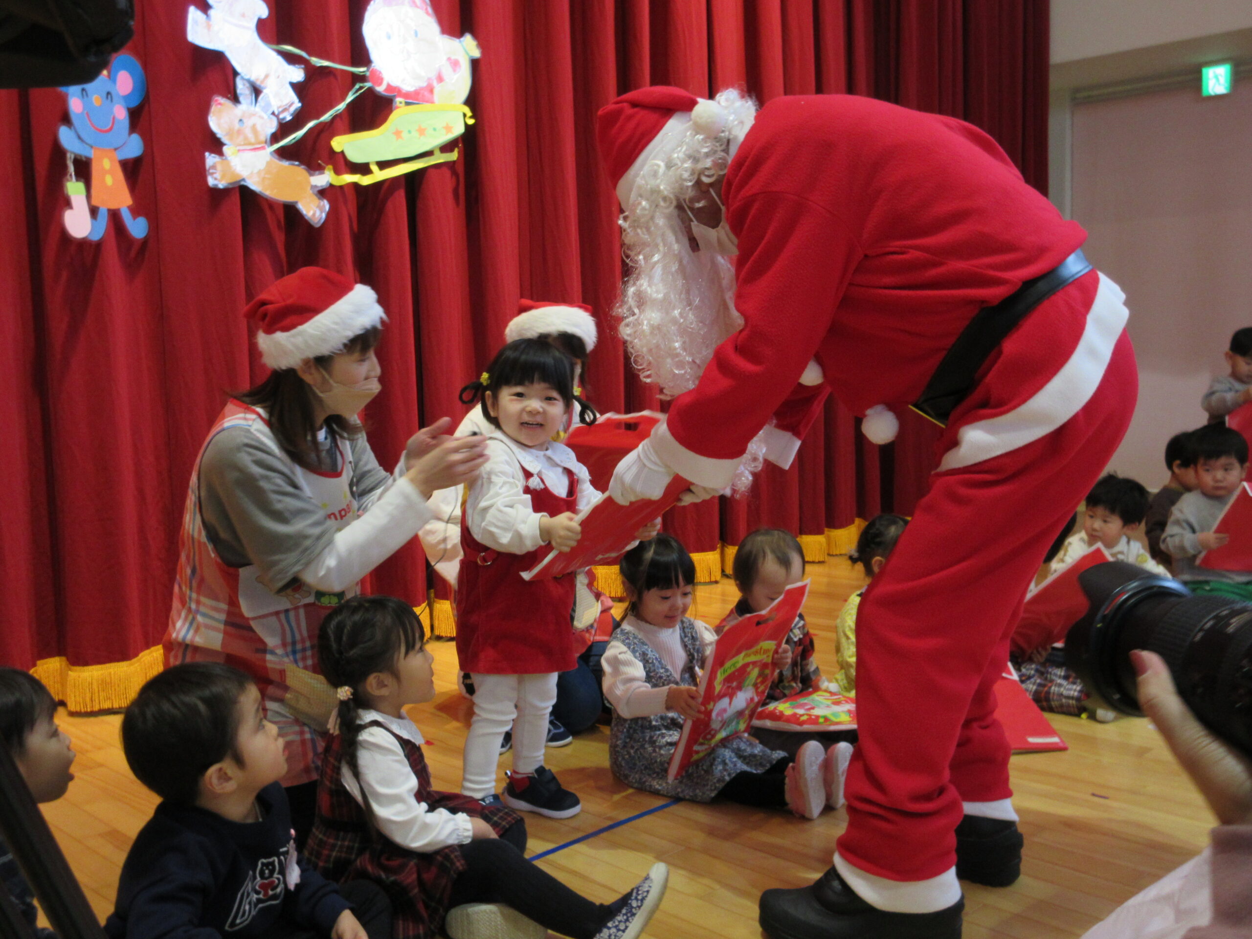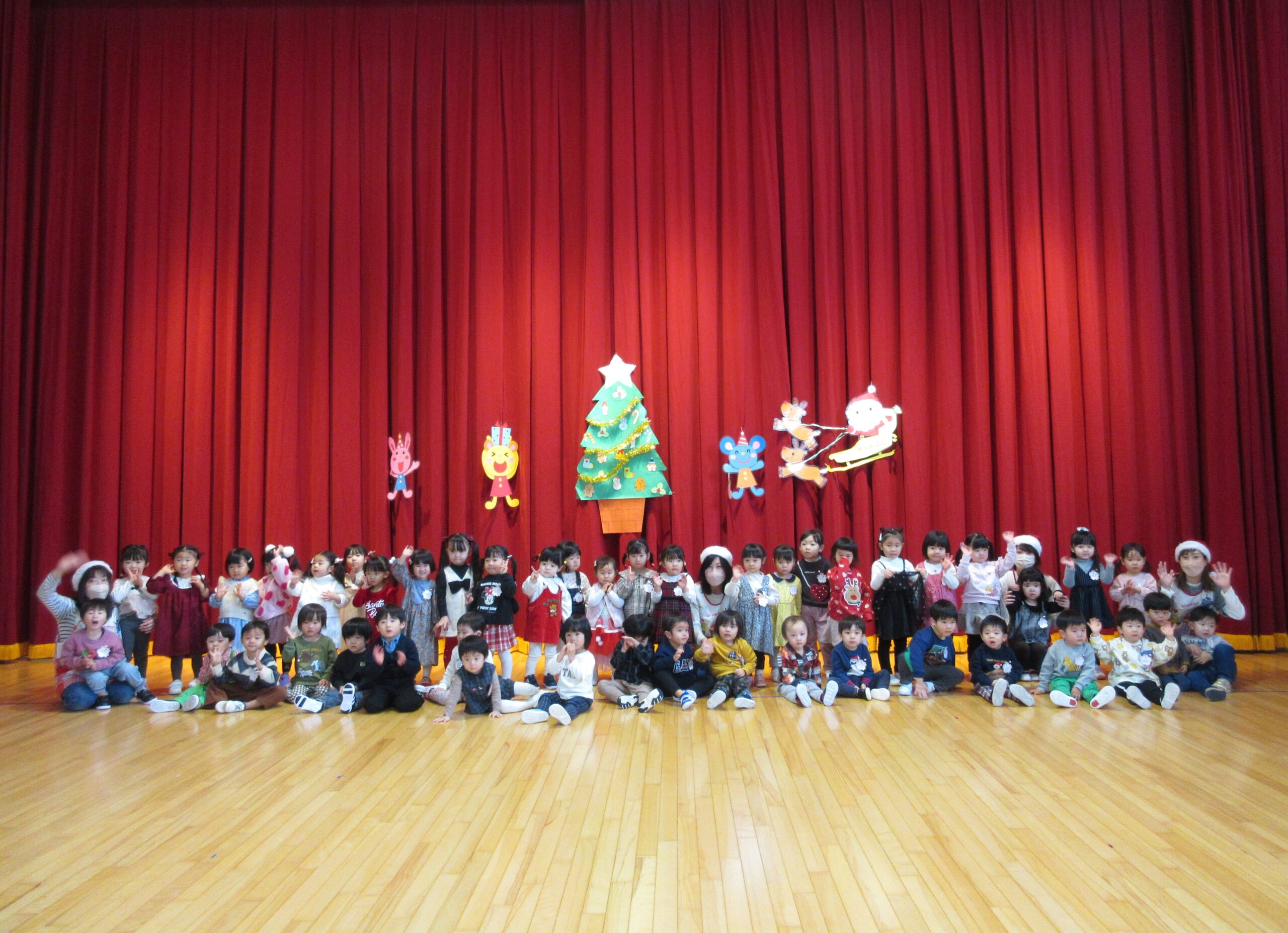 (103)令和5年度「プレスクールクリスマス会」 2023年12月19日 園内ブログ 本日12月19日(火)プレスクールのクリスマス会を実施いたしました。3クラスが集う行事は運動会以来で、人数に圧倒されているお子さんもいましたが、器楽や手話歌は練習の成果を発揮して披露することができていました。短い時間ではありましたが、サンタさんとの交流、親子対抗オセロゲームを楽しむことができました🎅参観頂きました保護者の皆様、有難うございました。