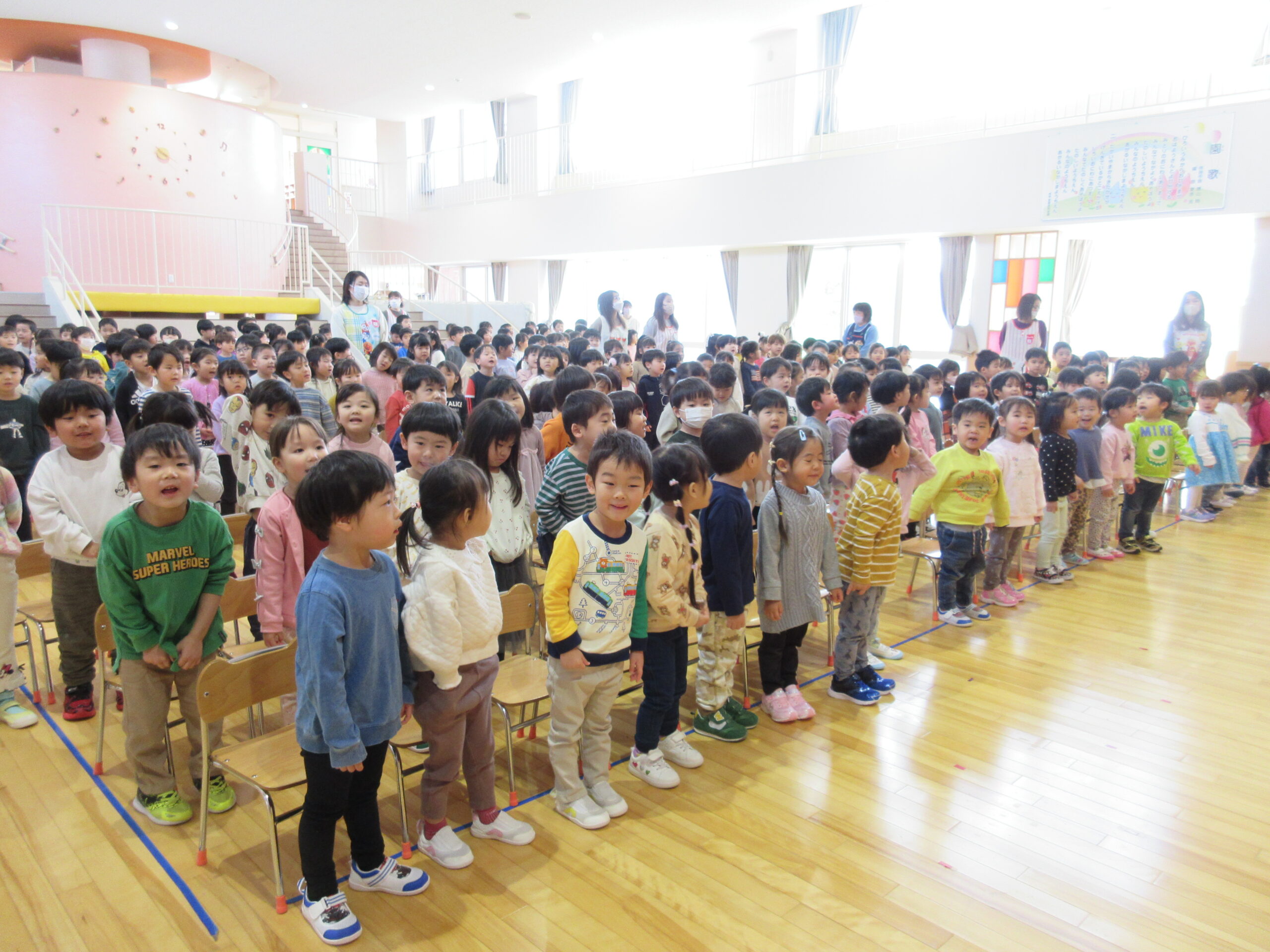 (111)令和5年度「始業式」 2024年1月18日 園内ブログ 本日令和6年1月18日(木)は令和5年度3学期の始業式でした。始業式では園歌を元気に歌うみんなの声がホールに響き渡り、また式には落ち着いて清々しいお顔で参加することができていました。子ども達は久しぶりに会うお友だちとお喋りしたり、少々緊張したり、そしてふざけ合う姿が見られていました。お部屋では冬休みを振り返ったり、3学期のグループ決めをしました!明日からまたお友だちと元気一杯過ごしましょう!! 今日の病気欠席者は、発熱3名、頭痛1名、大事をとって2名です。