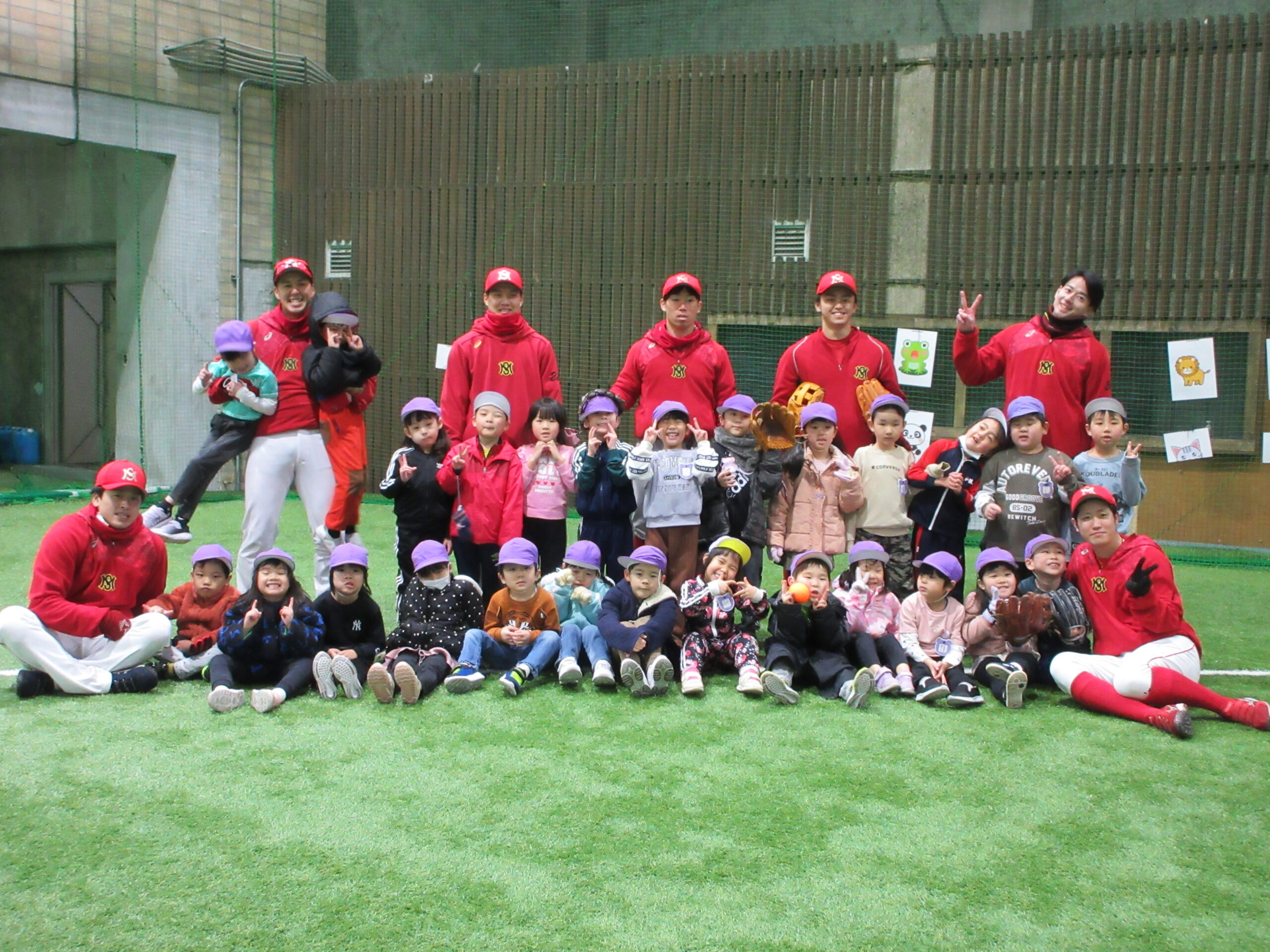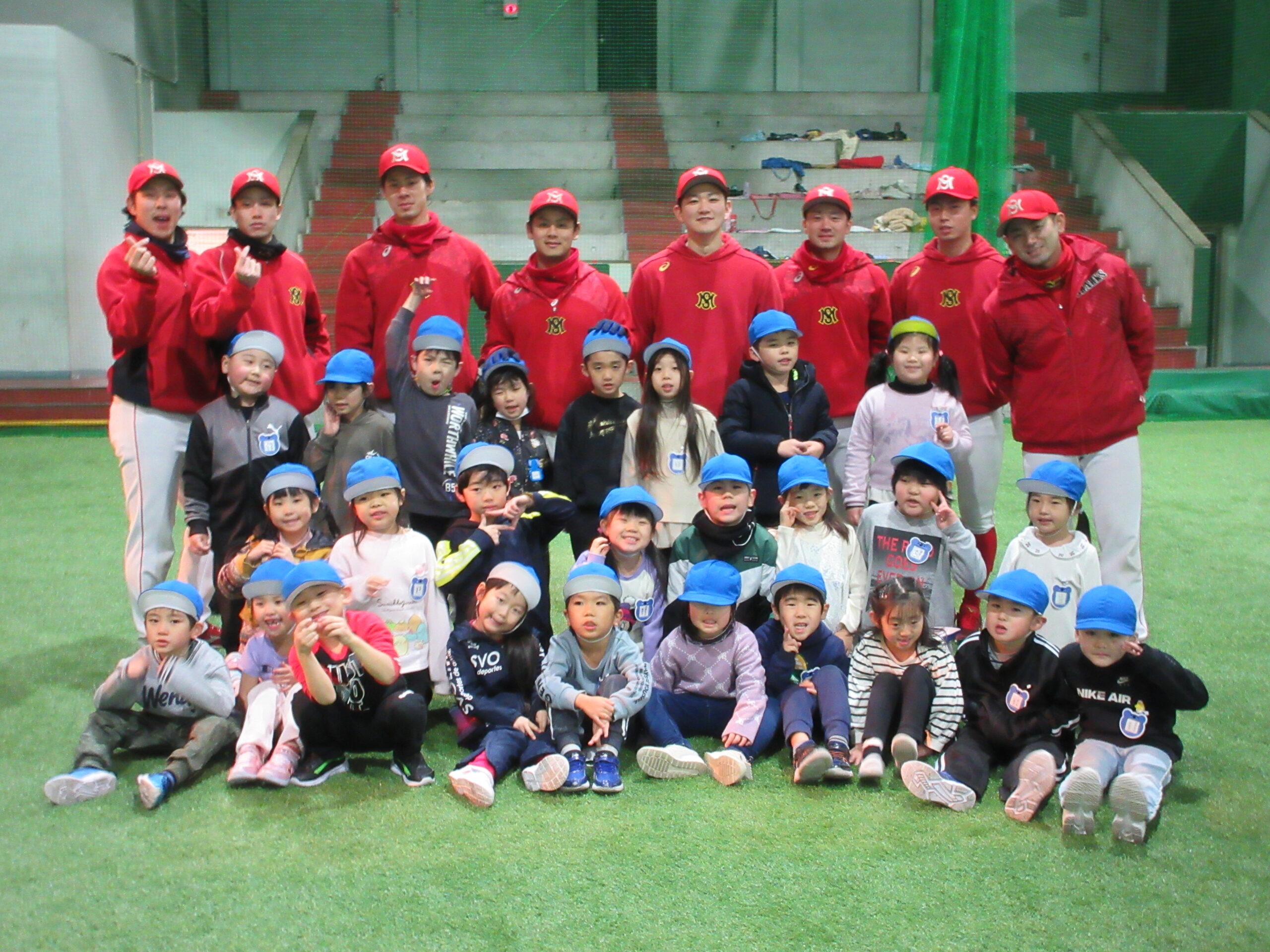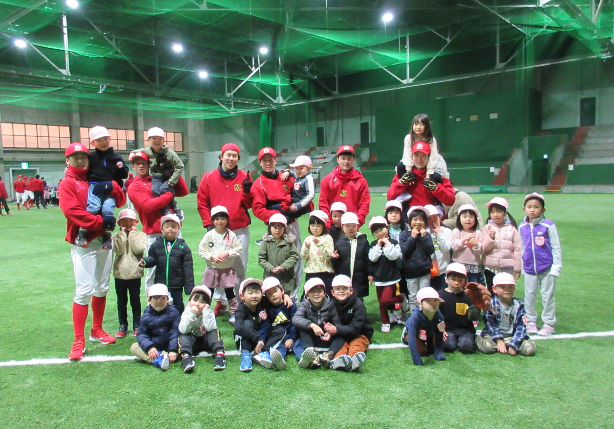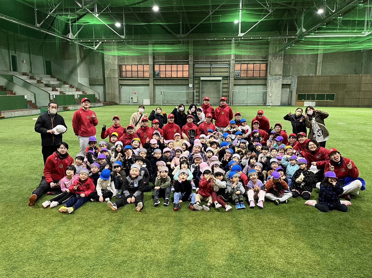 本日1月30日(火)は日本製鉄室蘭シャークス主催におきましての「ティーボール教室」に参加しました。年長学年の子ども達は10時20分頃、体育館に到着し、人工芝の体育館を見た子ども達は「わー!すごい!」という声が上がっていました。全員で準備体操をし、その後クラス毎に分かれて選手(指導者)の指示でバッドを持ちポールの上のオレンジボールを打ったり、様々な絵表示を目指してボールを投げたり、そしてミニ野球ゲームをし数々の体験を沢山楽しむことが出来ました。ボールを追いかける子ども達は活き活きしており、そして成功体験を通じて自信に繋がる姿が見られとても良い経験になりました。ご指導頂きました、シャークスの皆様方、お忙しい中ありがとうございました。