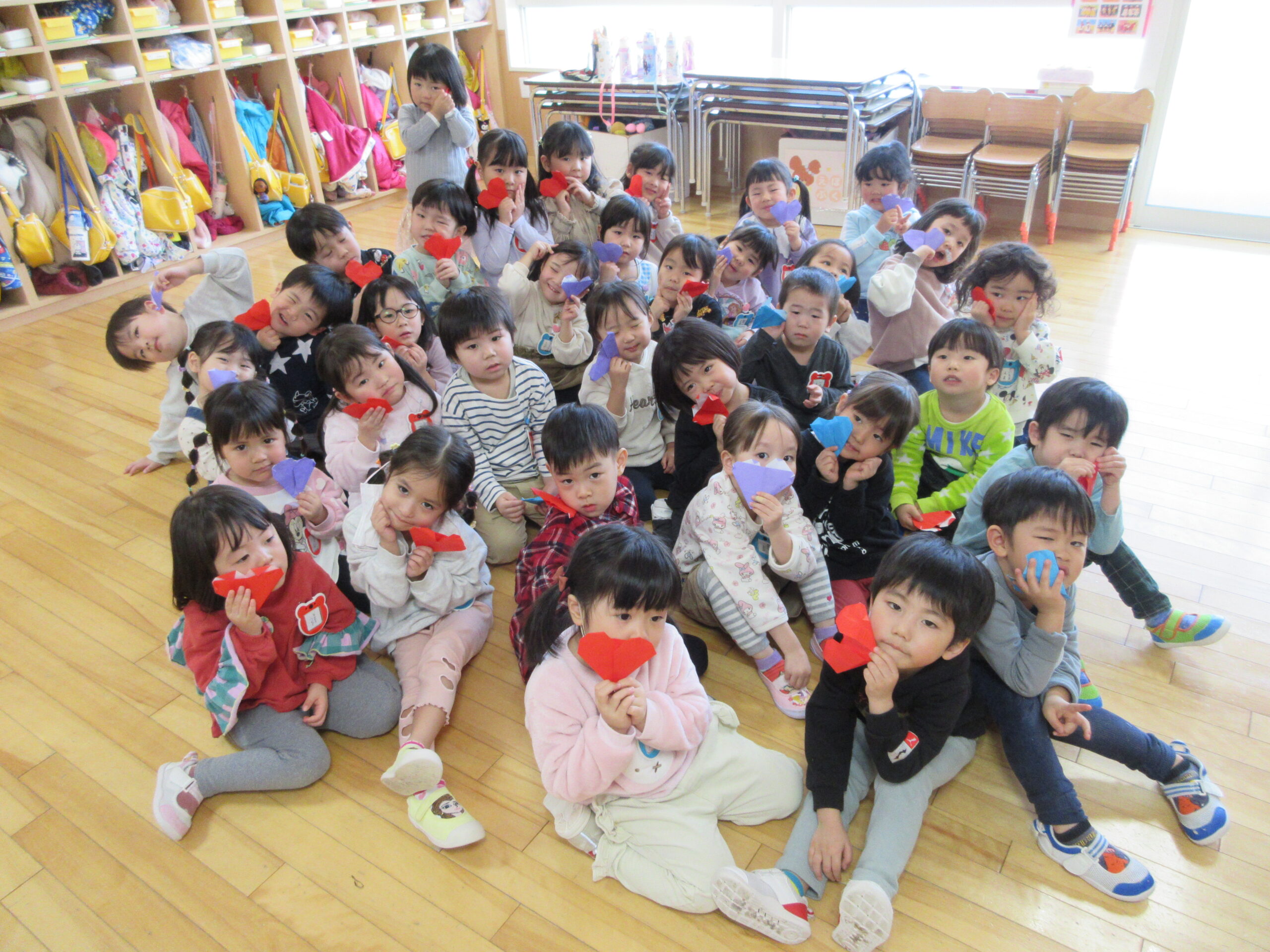 バレンタインデーには折り紙でハートを折り、💖大好きな人へプレゼントをしてね💖と、お話をして持ち帰りました♪