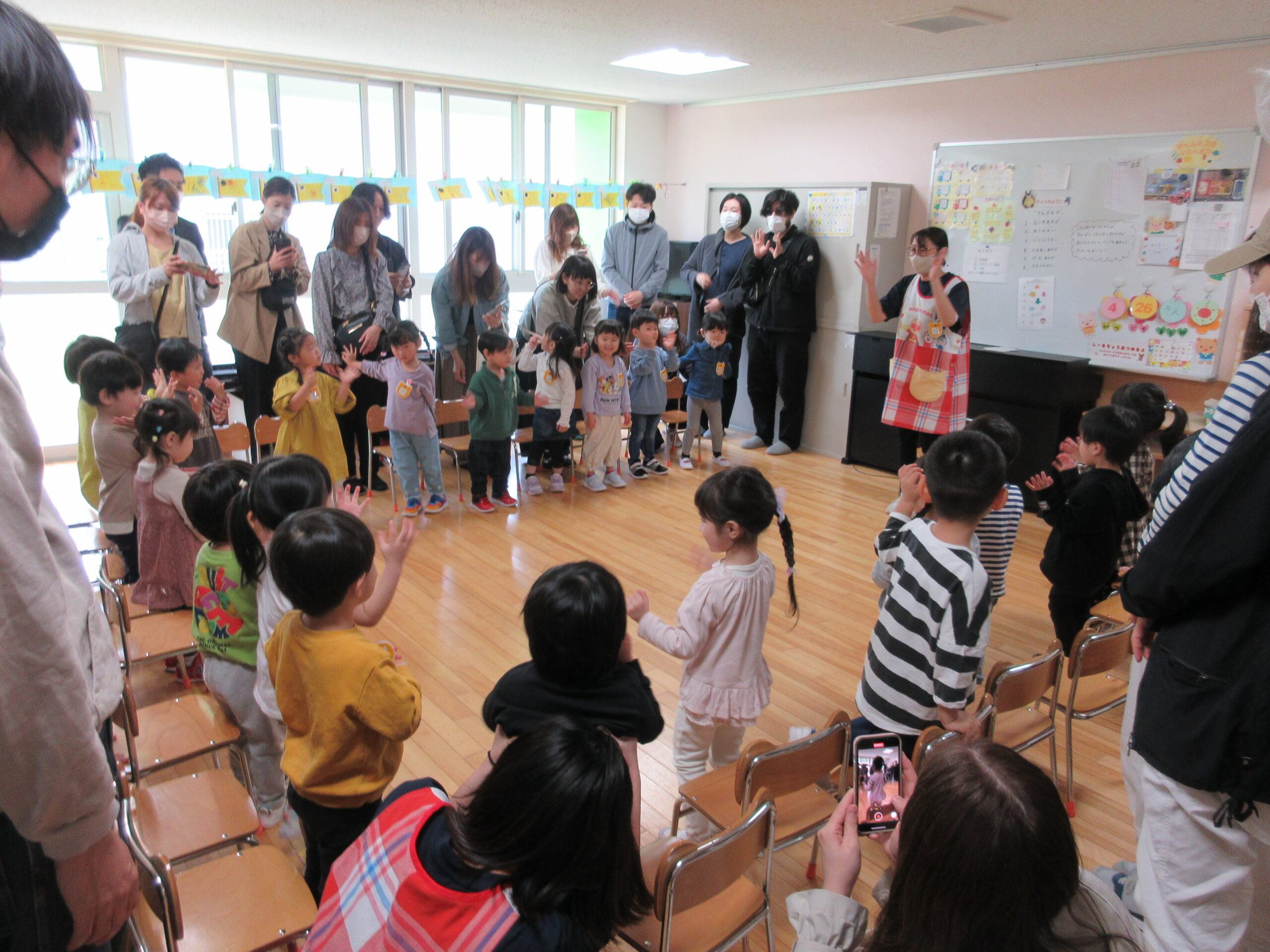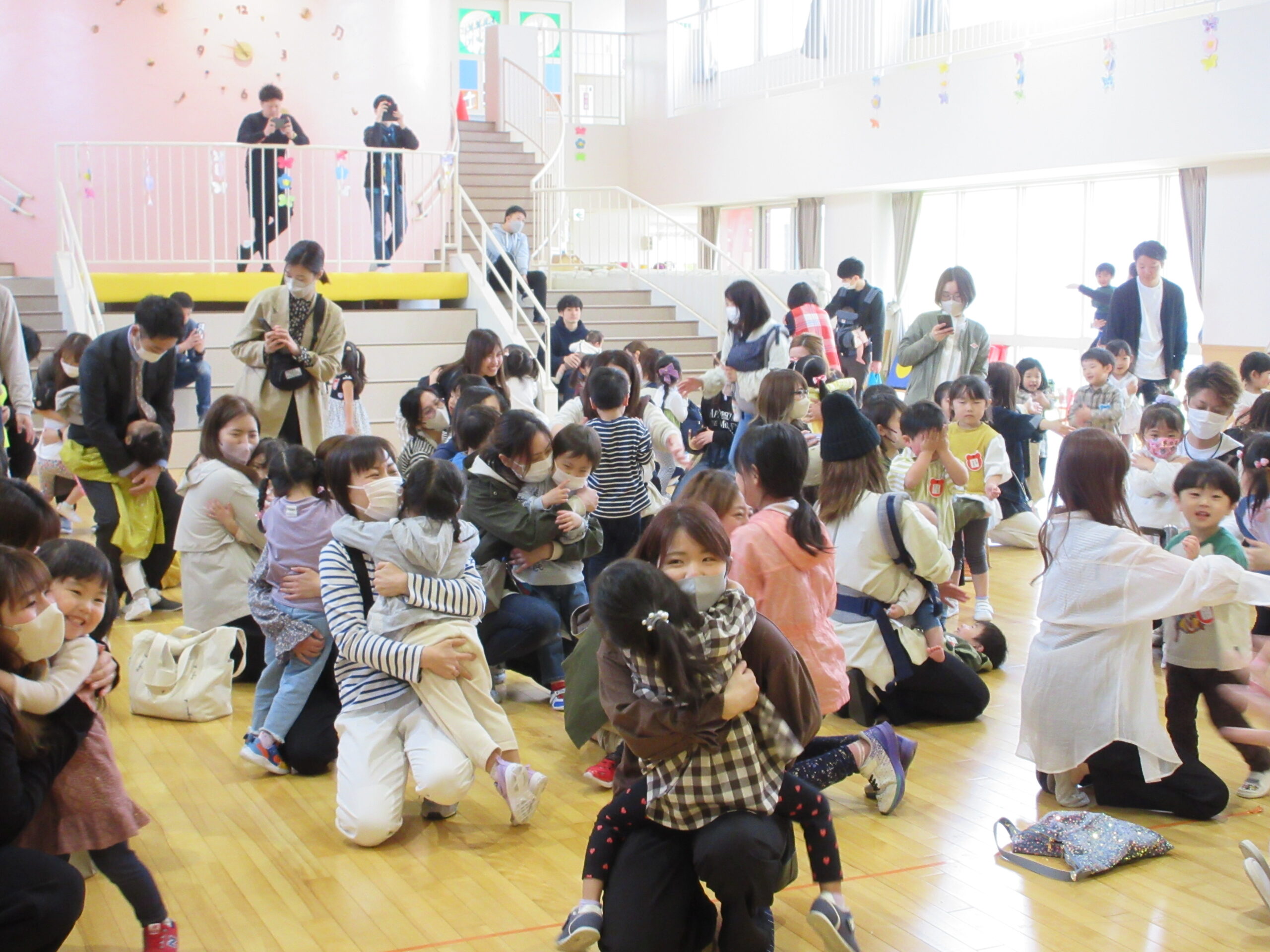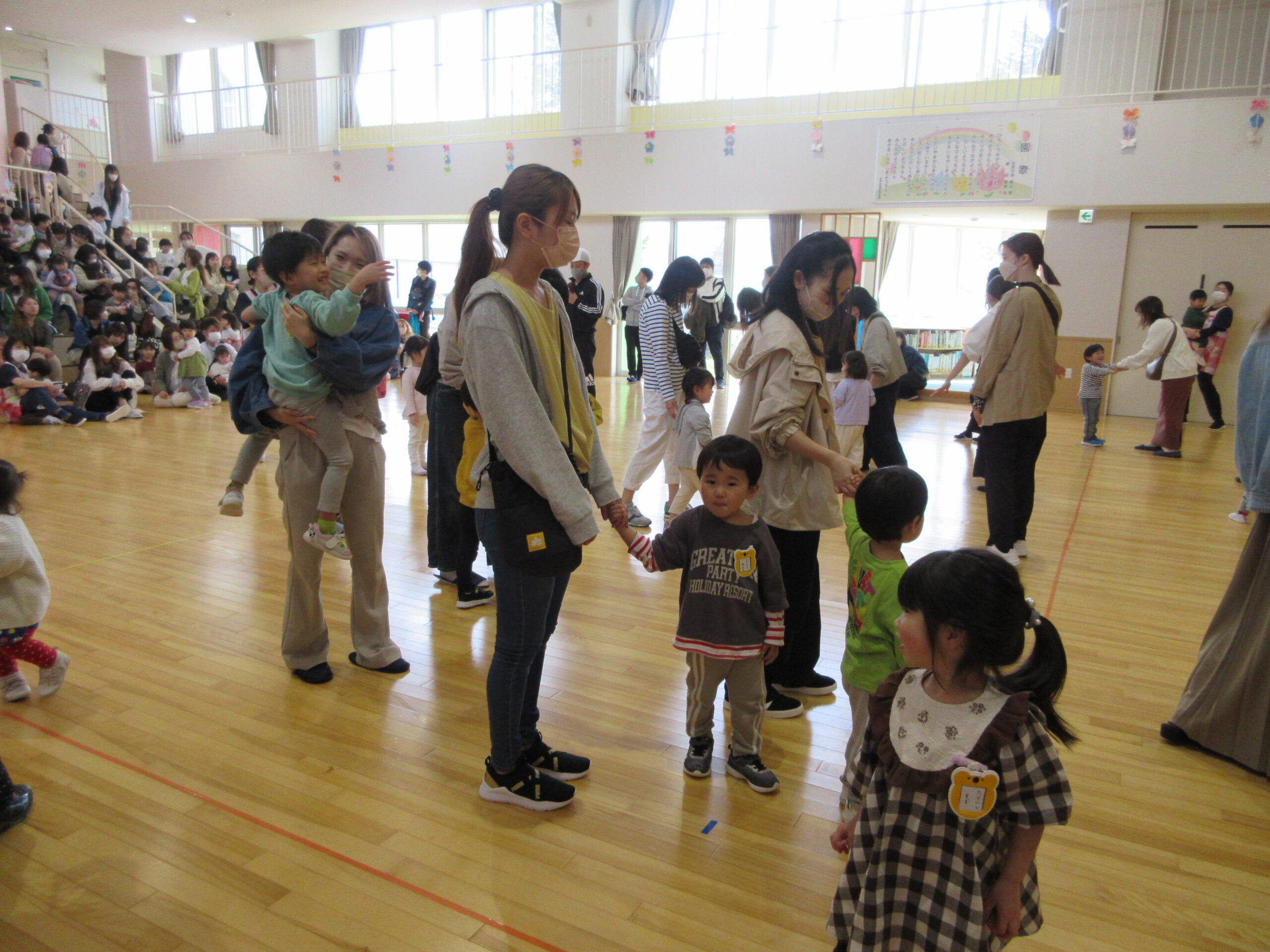 入園して少しずつ幼稚園のリズムに慣れてきた年少さんは本日4月26日(金)初の参観日でした。親子で登園できることに子ども達は嬉しそうな表情でありましたが、お部屋では保護者様から離れられず甘える様子が見受けられるお友だちが多かったですね!お部屋で朝の会をしてから自己紹介、そしてホールにて触れ合い遊びをして楽しみました。又親子での「よろしくね!あくしゅでこんににちは!」では楽しい時間を過ごすことができました。保護者の皆様ご協力有難うございました。