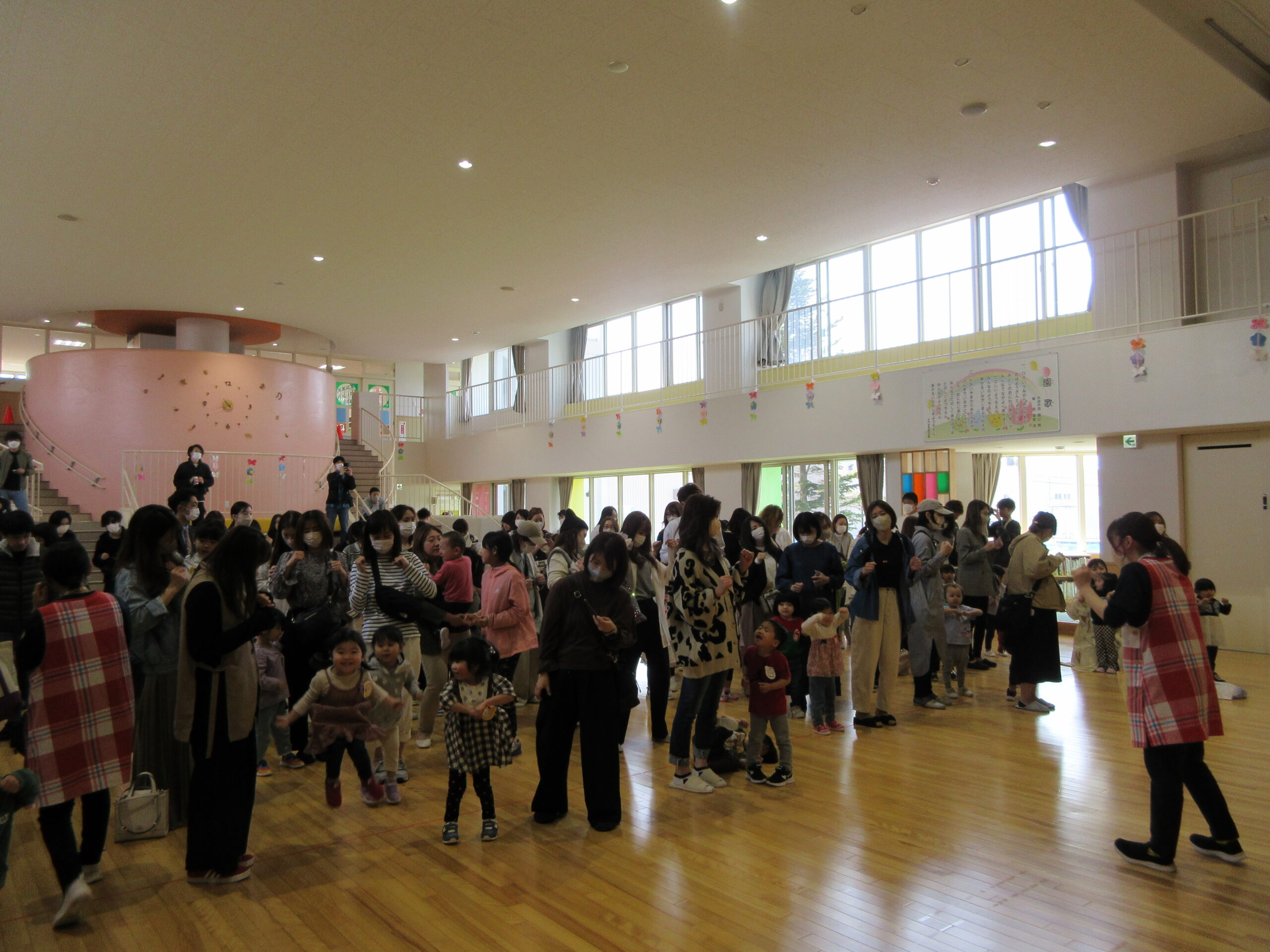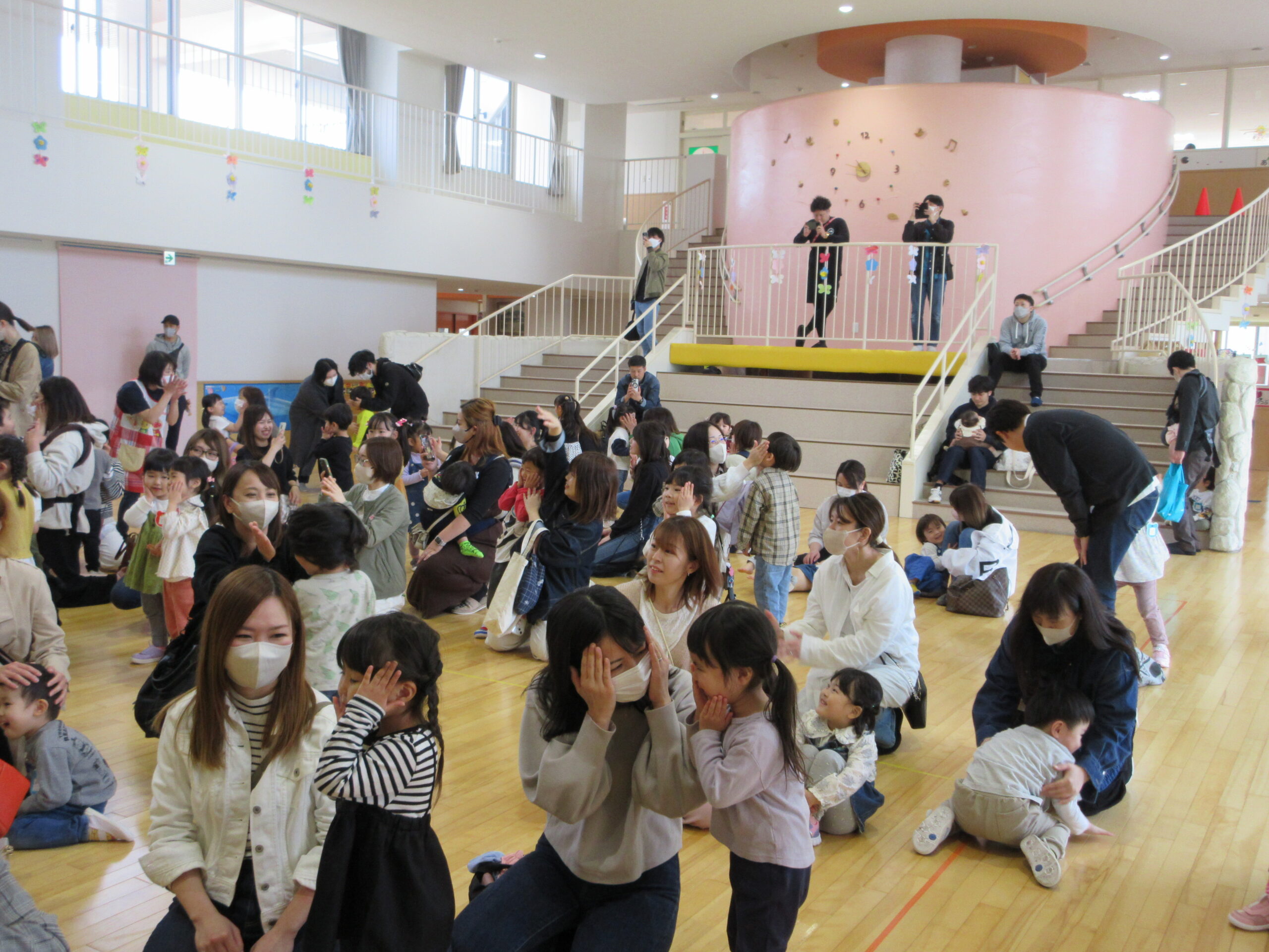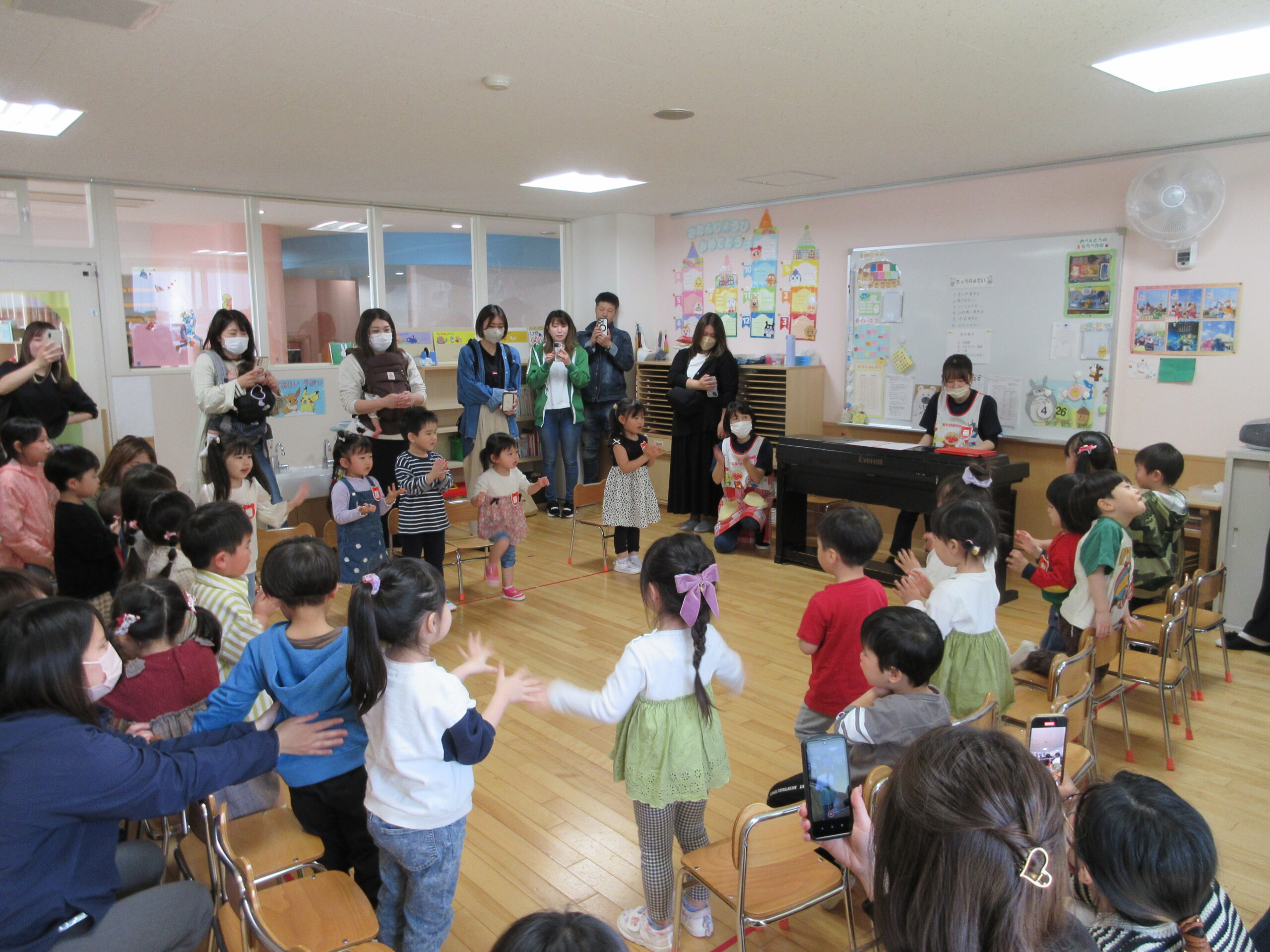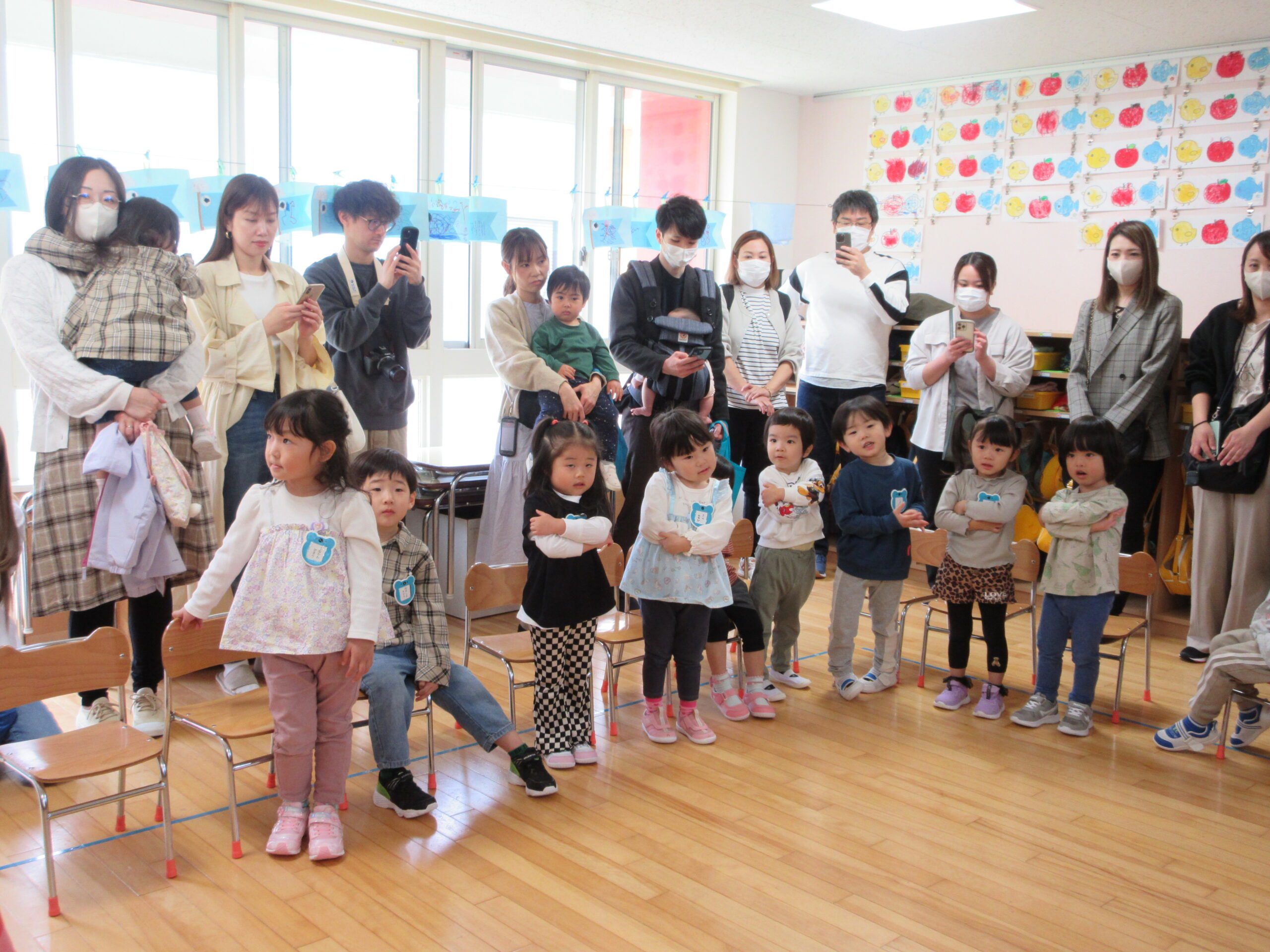 入園して少しずつ幼稚園のリズムに慣れてきた年少さんは本日4月26日(金)初の参観日でした。親子で登園できることに子ども達は嬉しそうな表情でありましたが、お部屋では保護者様から離れられず甘える様子が見受けられるお友だちが多かったですね!お部屋で朝の会をしてから自己紹介、そしてホールにて触れ合い遊びをして楽しみました。又親子での「よろしくね!あくしゅでこんににちは!」では楽しい時間を過ごすことができました。保護者の皆様ご協力有難うございました。