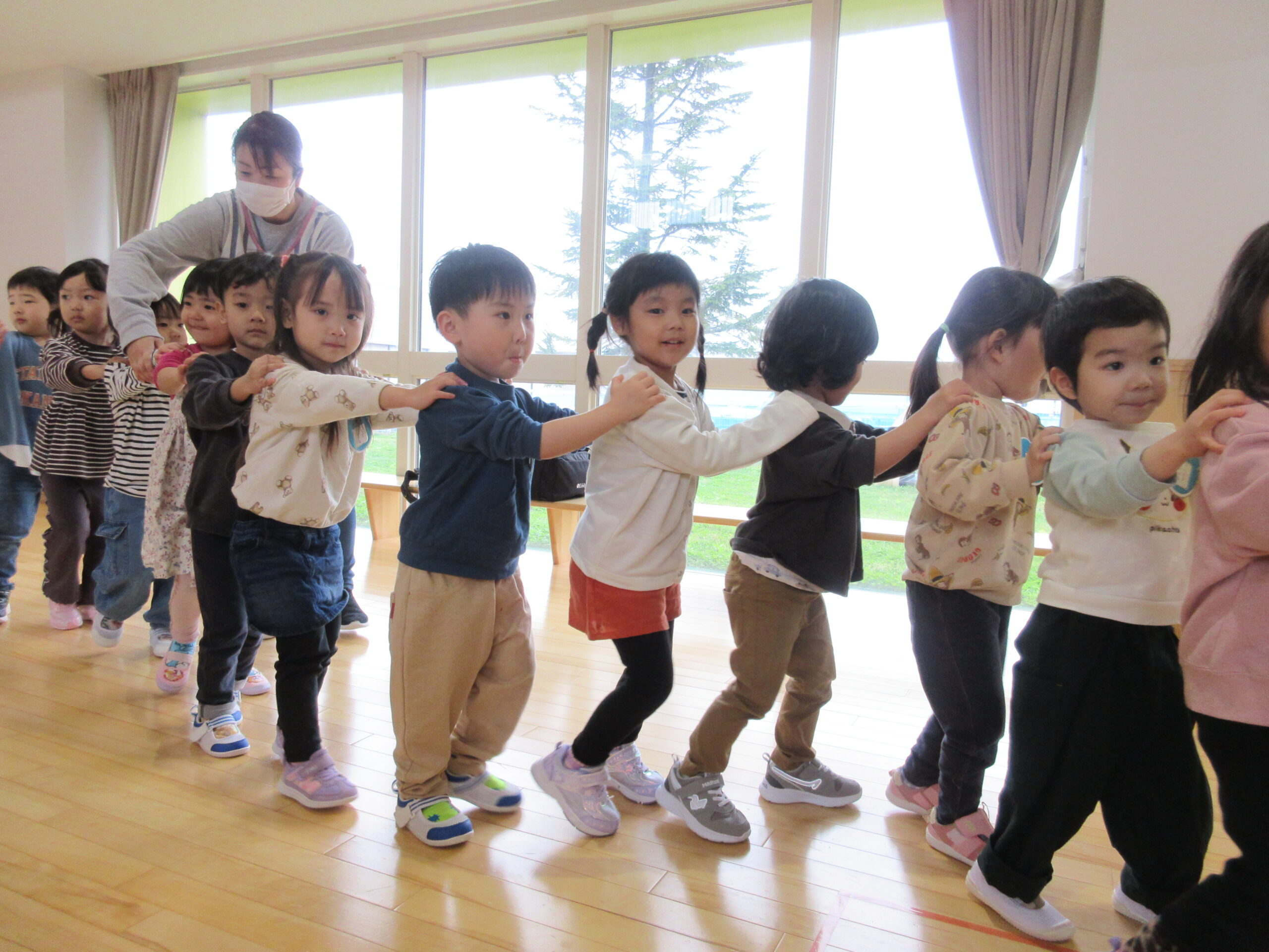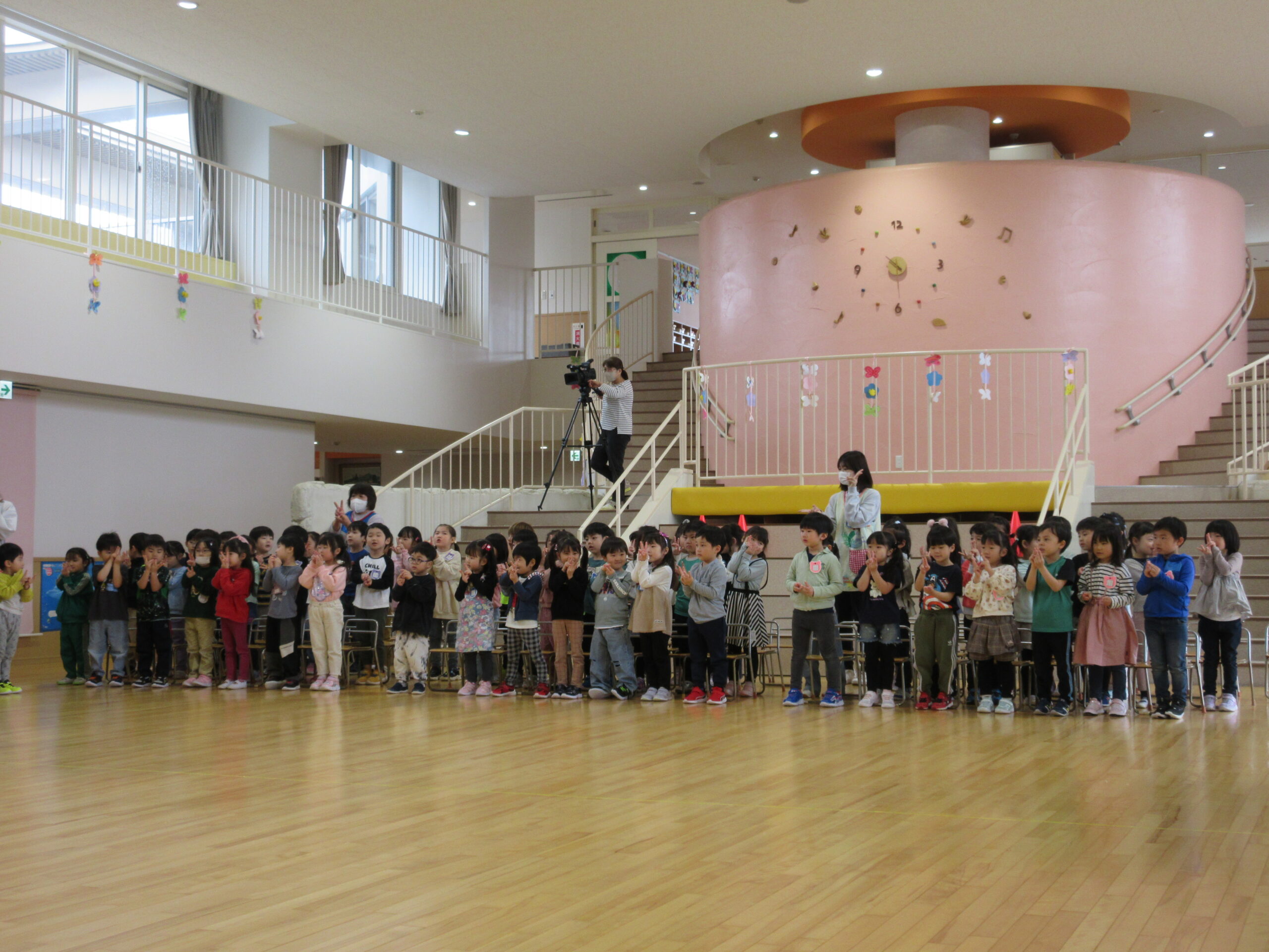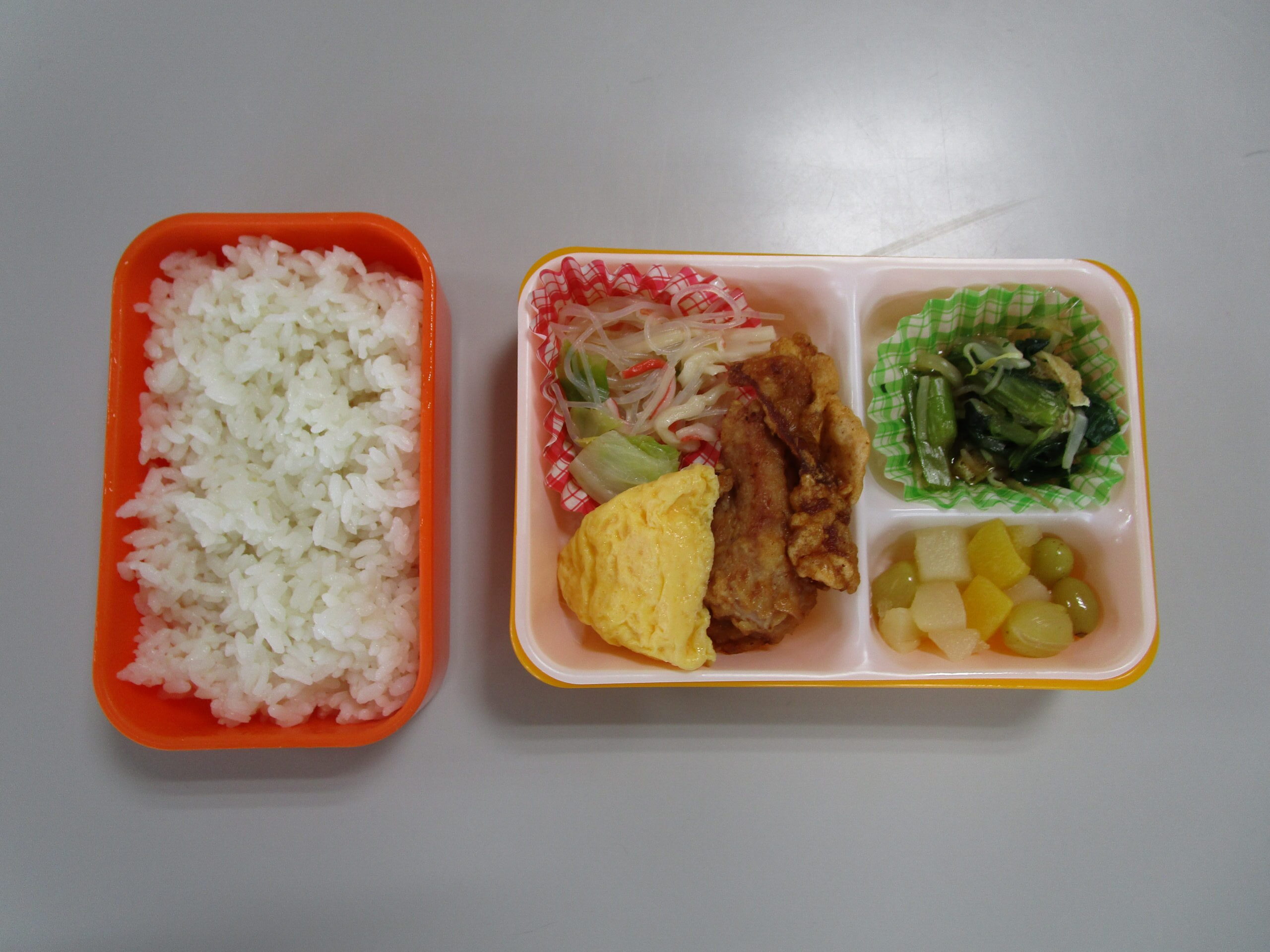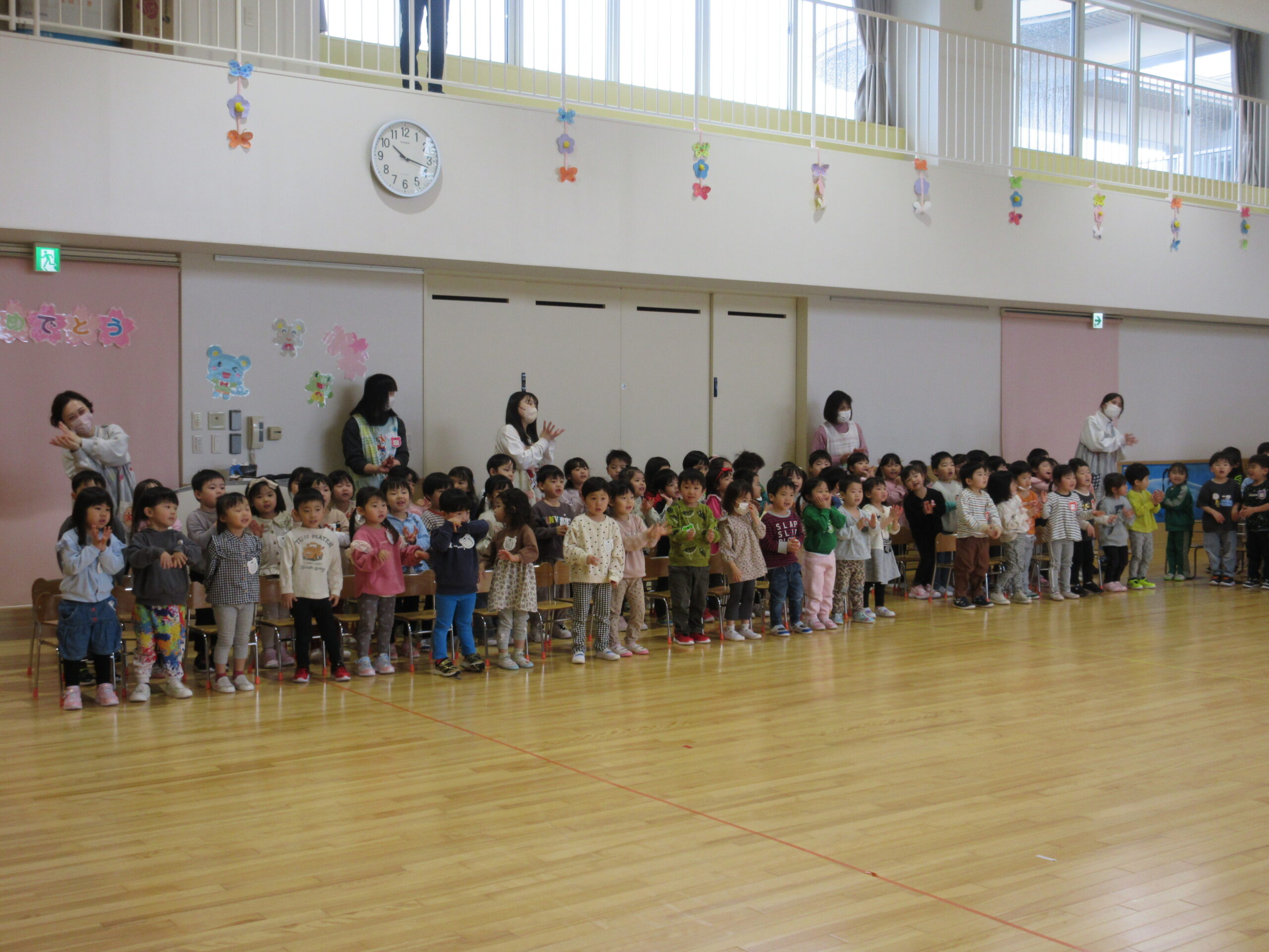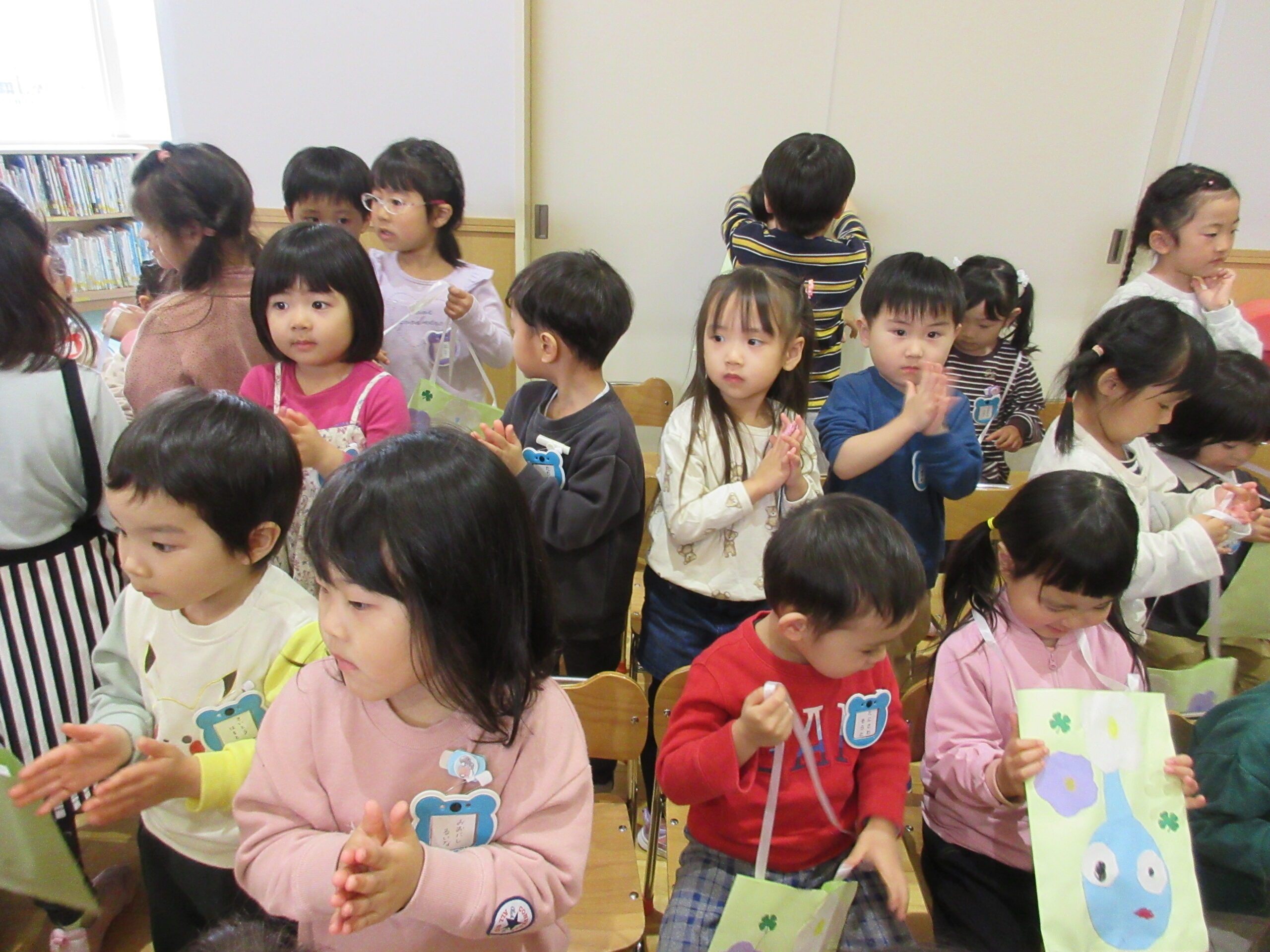 (11)令和6年度「対面式」 2024年4月25日 園内ブログ 今日4月25日(木)は在園児と新入園児との対面式を園ホールにて行いました。手話で挨拶をする在園児は頼もしく活き活きとした表情で新入園児を向かい入れていました。今年度は年長学年による製作「ピクミン」の袋におやつが入っていることに喜ぶ姿が見られました。プレゼントを首から掛けて満面の笑みの子ども達でした。 今日の病気欠席者は、風邪3名、発熱4名、咳4名、体調不良2名、大事をとって4名です。 🍙今日の給食🍙