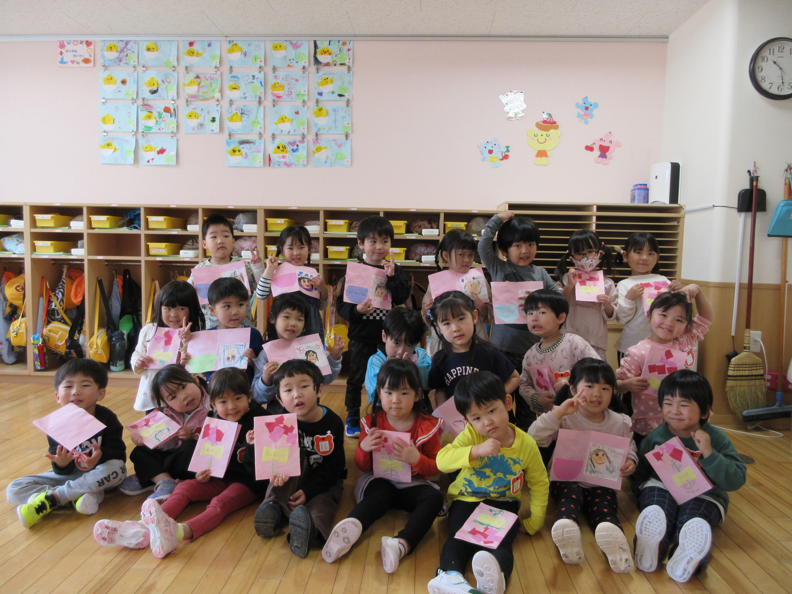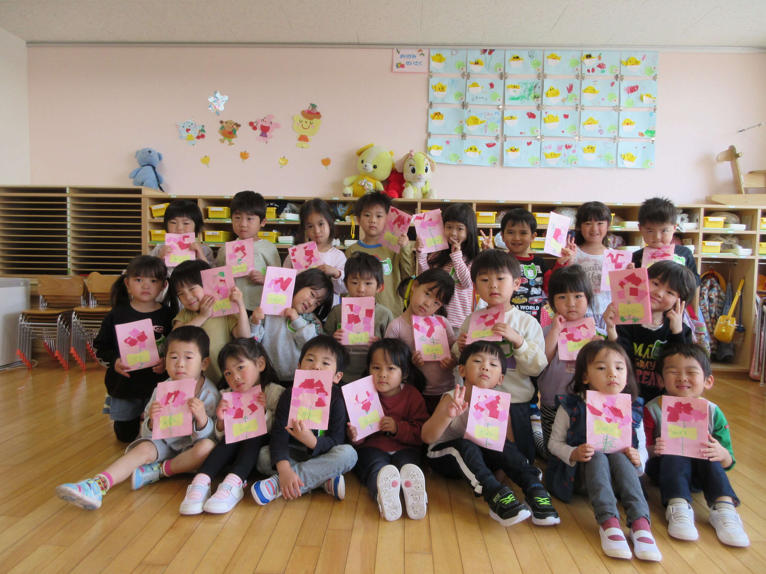 日曜日は母の日ですね。少し早いですが、母の日製作を持ち帰りました。大好きなお母さんへの贈り物として心を込めて作りました。お家でもお話しを聞いてみてください♡