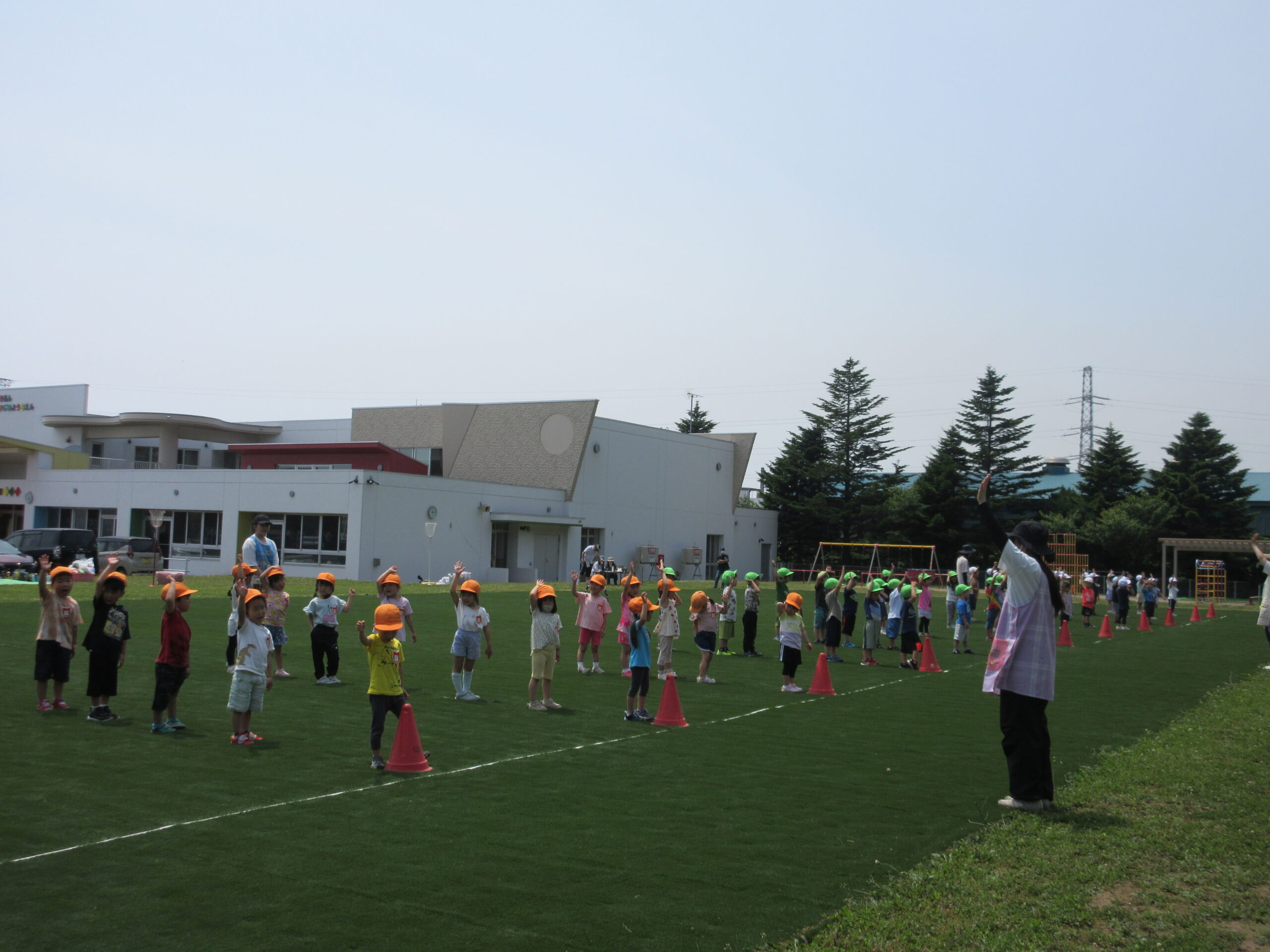 (42)令和6年度「運動会総練習」 2024年6月21日 園内ブログ 運動会総練習を年長学年は6月20日・年少、年中学年は21日に実施しました。年少、年中学年の総練習には近隣であります「室蘭くじらのうた保育園」の園児さんも見学に来てくれました。見られる事を喜んでいたお友達もいたようです。本番の29日には各学年や個人での目標をもって励み、運動会当日にはそれぞれの力が発揮できるよう、一人一人自信を持って披露できることを願っています。あとはお天気がよくなりますように! 【年長】~1日目~ 【年少】~2日目~ 【年中】