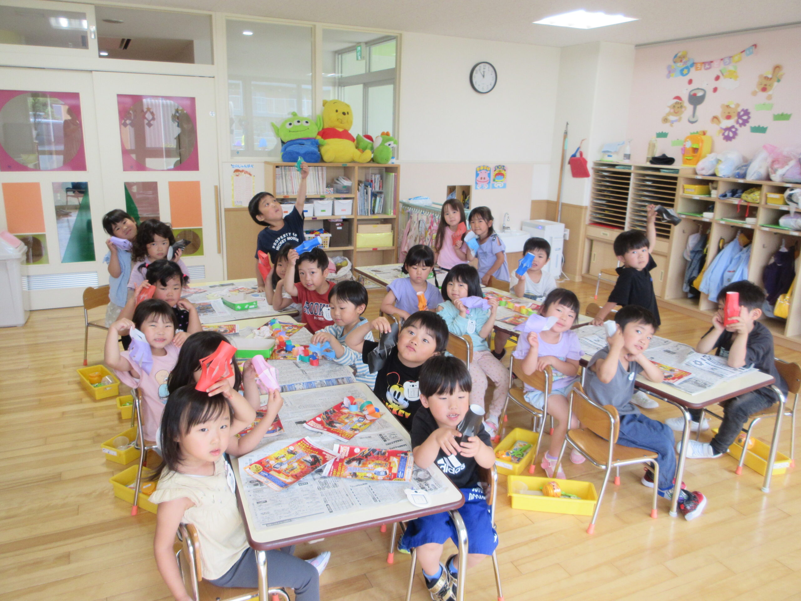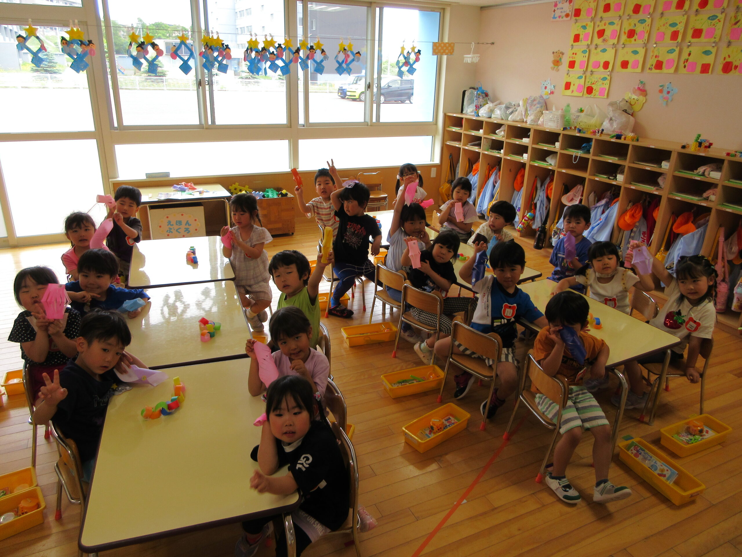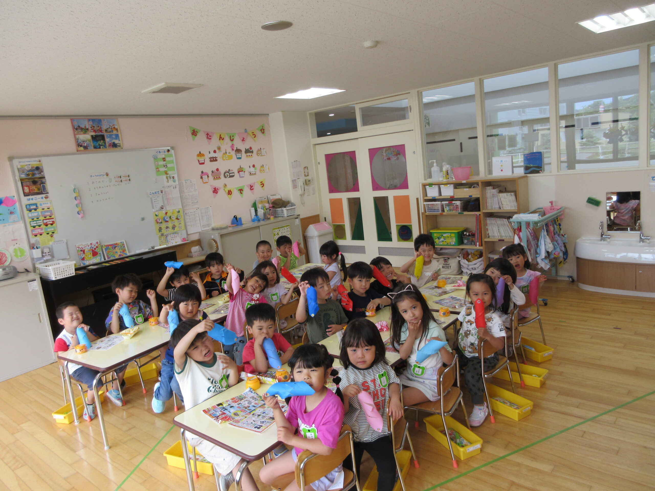 (40)令和6年度「年中学年 様子」 2024年6月20日 園内ブログ 6月17日(月)に親子バス遠足に向けて、水族館製作に取り組みました。いろいろな海の生き物を選んで好きな色に塗り、切り取って、自分だけの水族館を作ってみました。マリンパークへの期待感が高まっているようです。 20日(木)笹の葉に七夕飾りと輪つなぎを作って飾りました。七夕の願い事が叶いますように。 今日の病気欠席者は、風邪1名、発熱2名、咳3名、体調不良2名、大事をとって2名です。 🍙今週の給食🍙