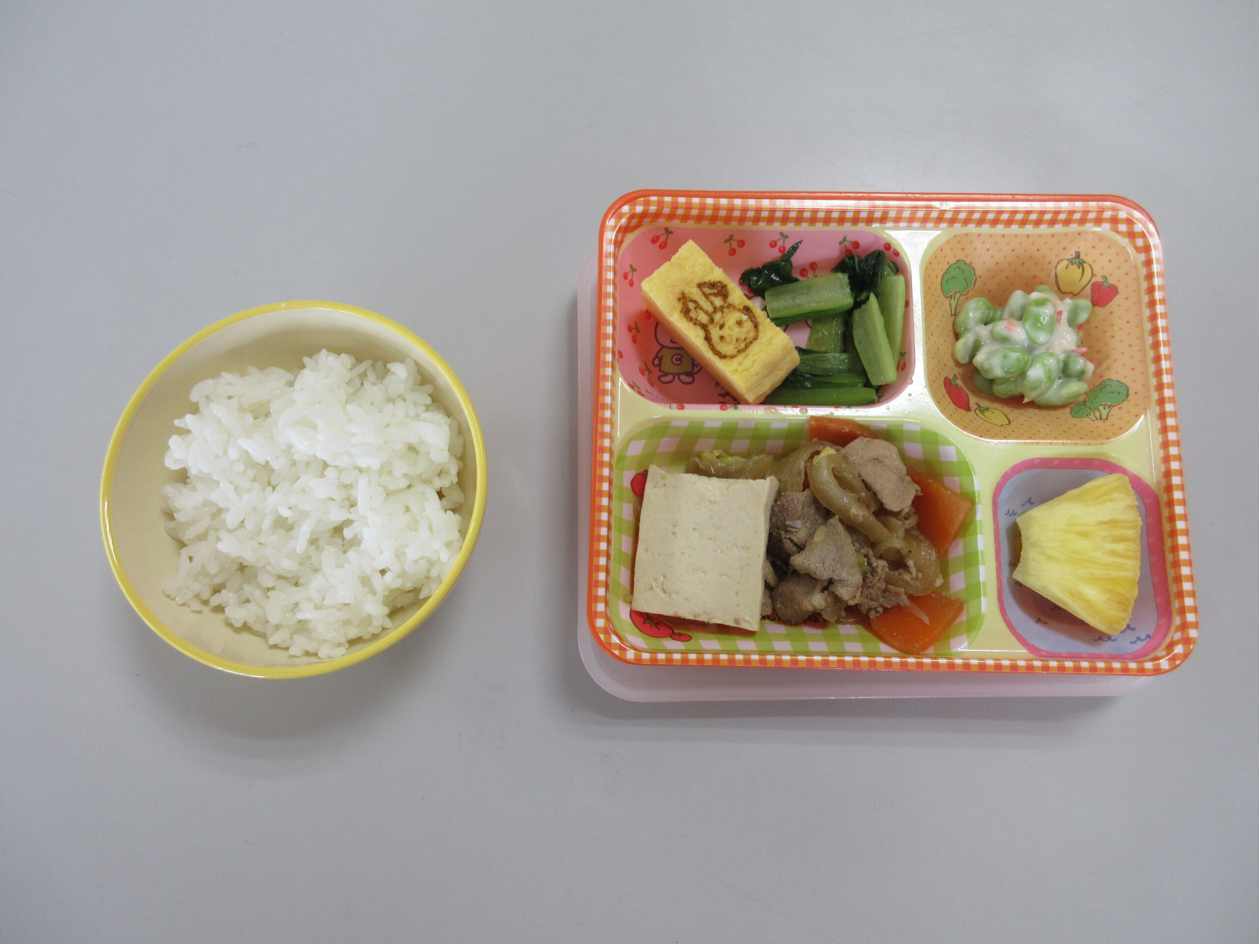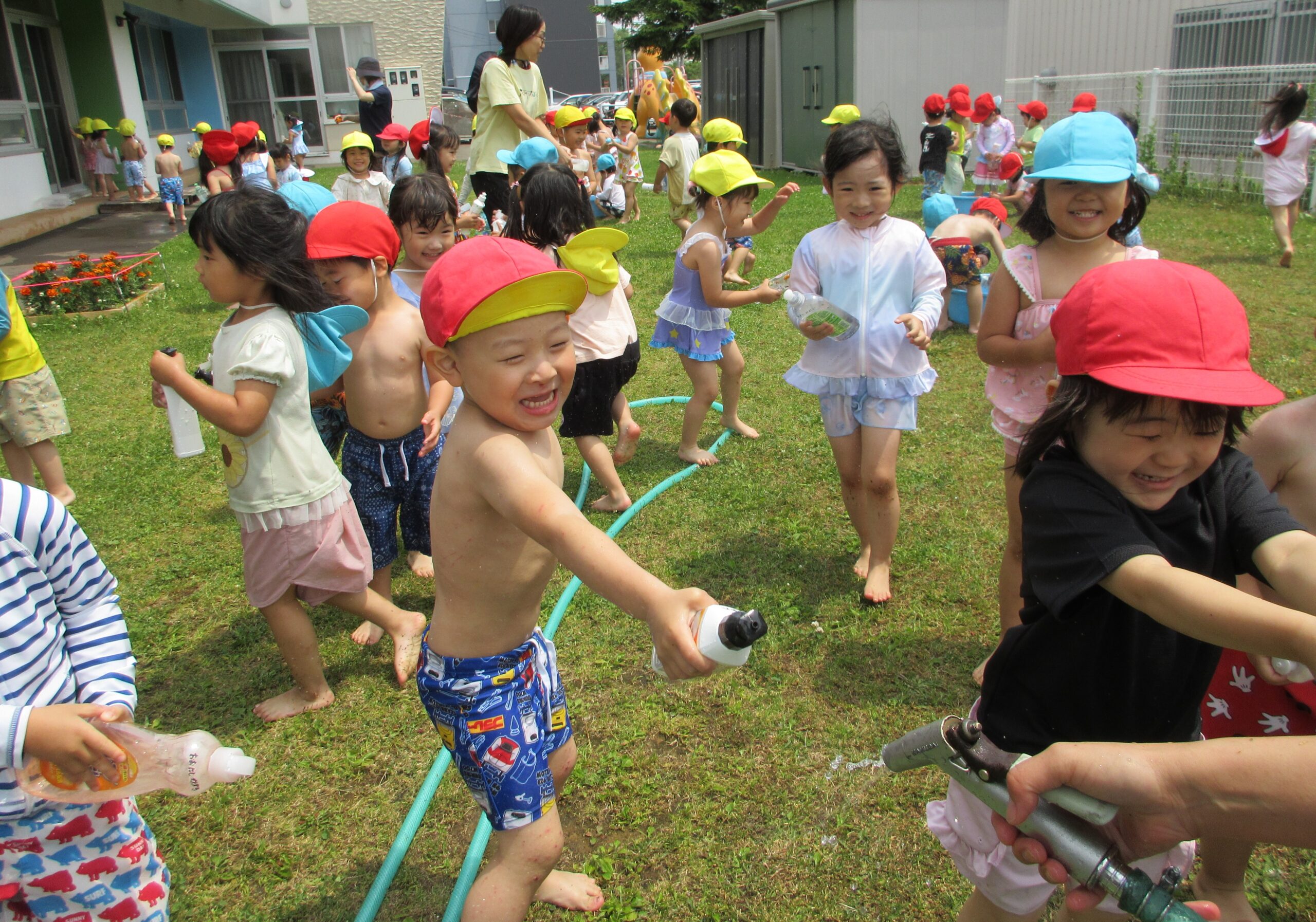 (45)令和6年度「年少学年 水遊び」 2024年7月3日 園内ブログ 本日7月3日(水)は年少学年で水遊びを行いました。裸足で芝を走り回り芝の感触を感じながら、水鉄砲で水を掛け合い遊ぶ姿が見られていました♬初めての水遊びを存分に楽しんでいた子どもたち。終わった後は、次回の水遊びを心待ちにしている様子でした! 今日の病気欠席者は、発熱1名、咳1名、体調不良1名です。 🍙今日の給食🍙