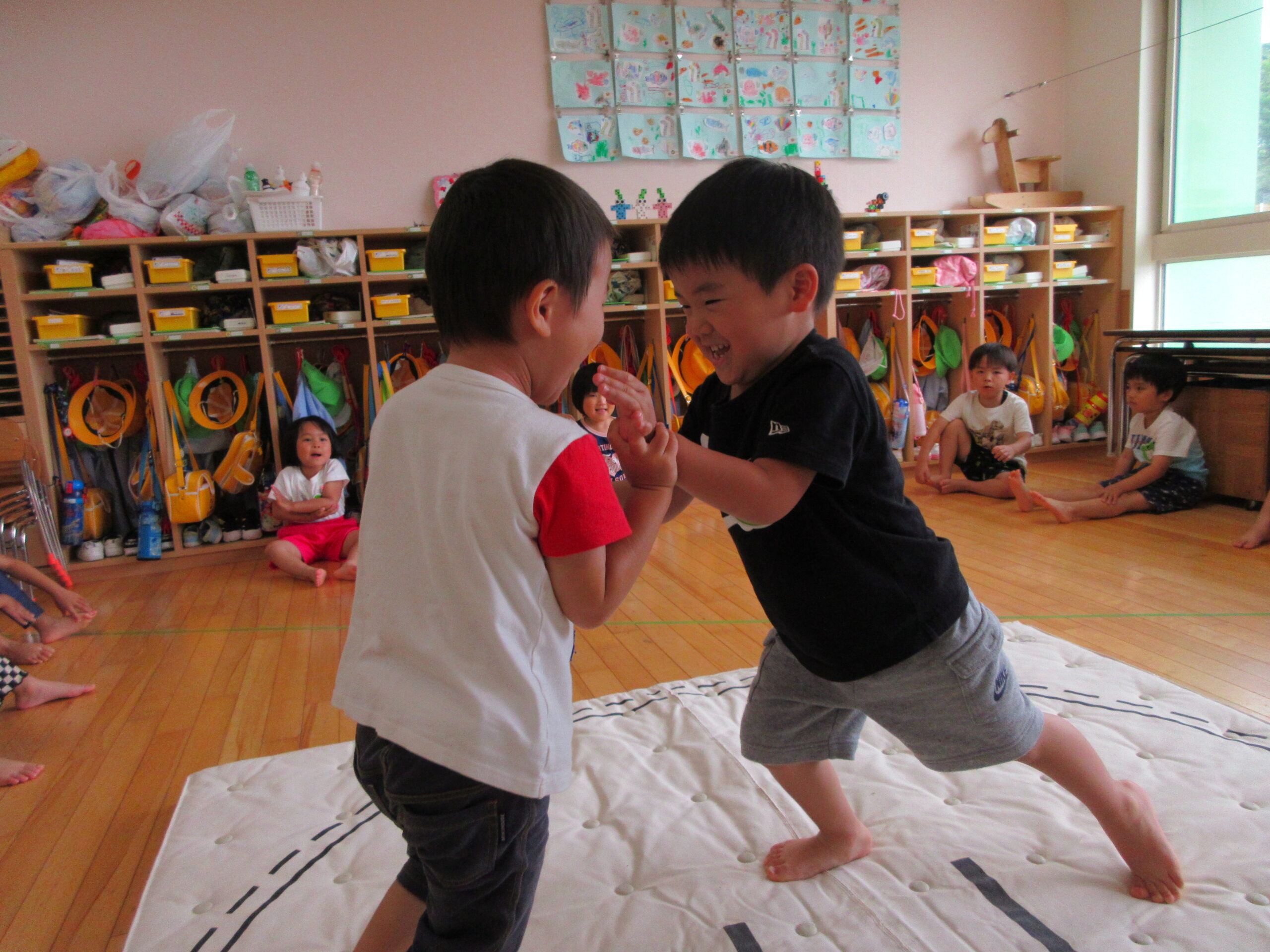 本日7月4日(木)はお部屋でお相撲大会を行いました。年中になって初めてのお相撲大会では朝から張り切る様子が見られていました。見ている子ども達も応援をしたり、とても楽しんで参加していました。接戦から負けて涙を流してしまう子もおりましたので、2学期のお相撲大会では存分に力を発揮して欲しいと思います。