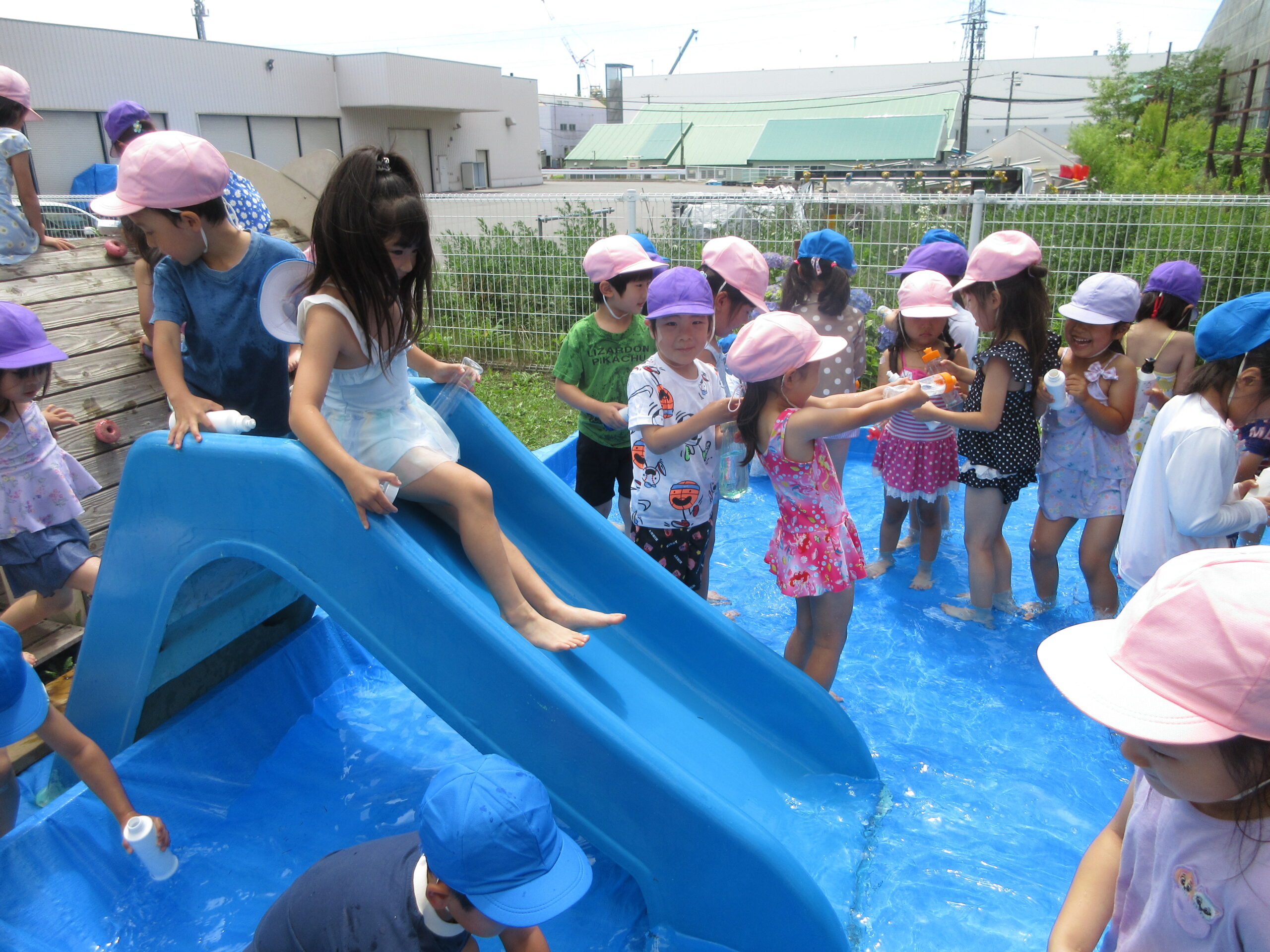 午後からは水遊びをしました。朝のお天気は怪しい様子もありましたがお日様が味方してくれました☀待ちに待った水遊びだったので水をたくさん掛け合い思いっきり楽しみました!💦お天気が良ければまたしたいと思います♪