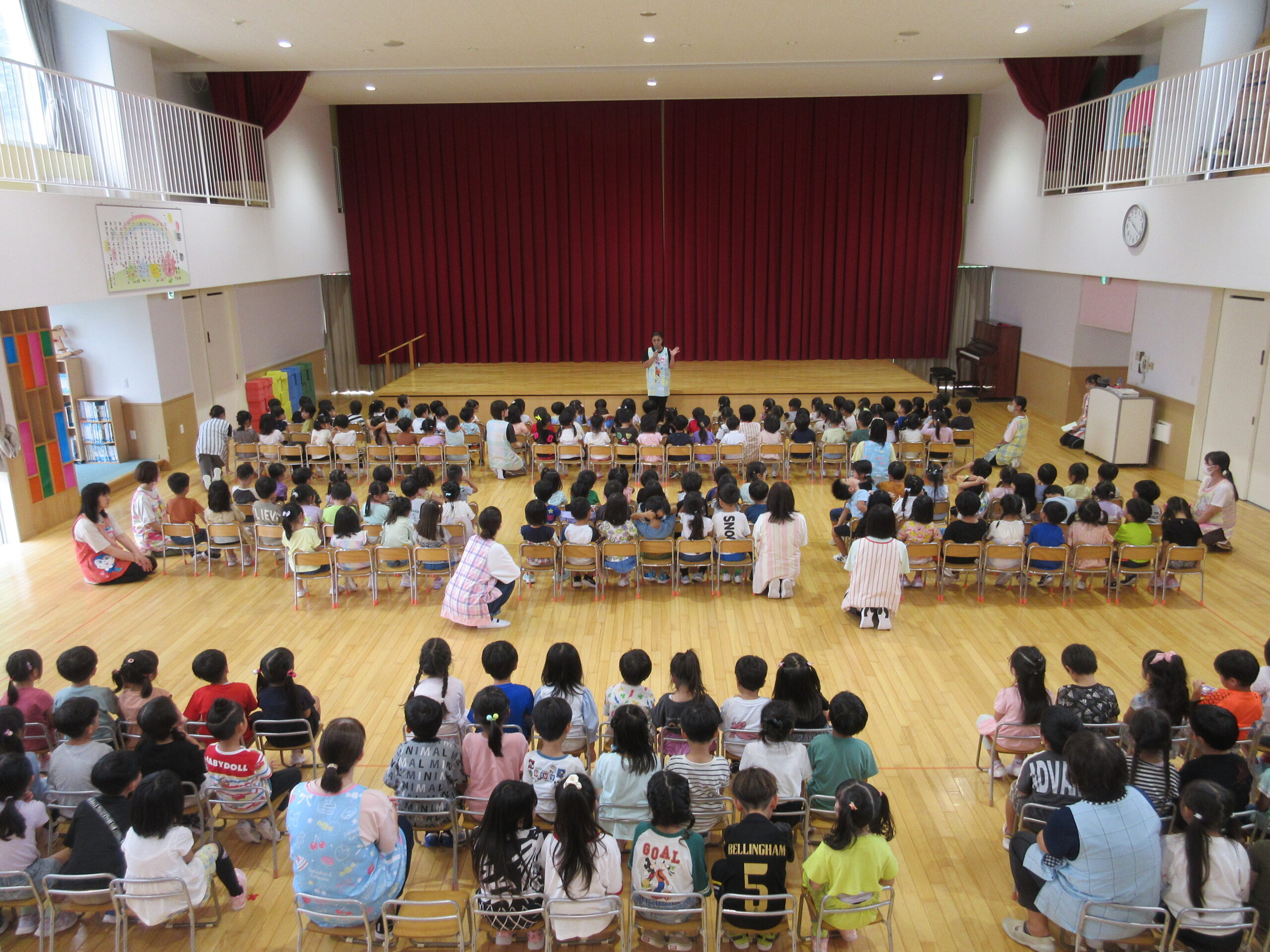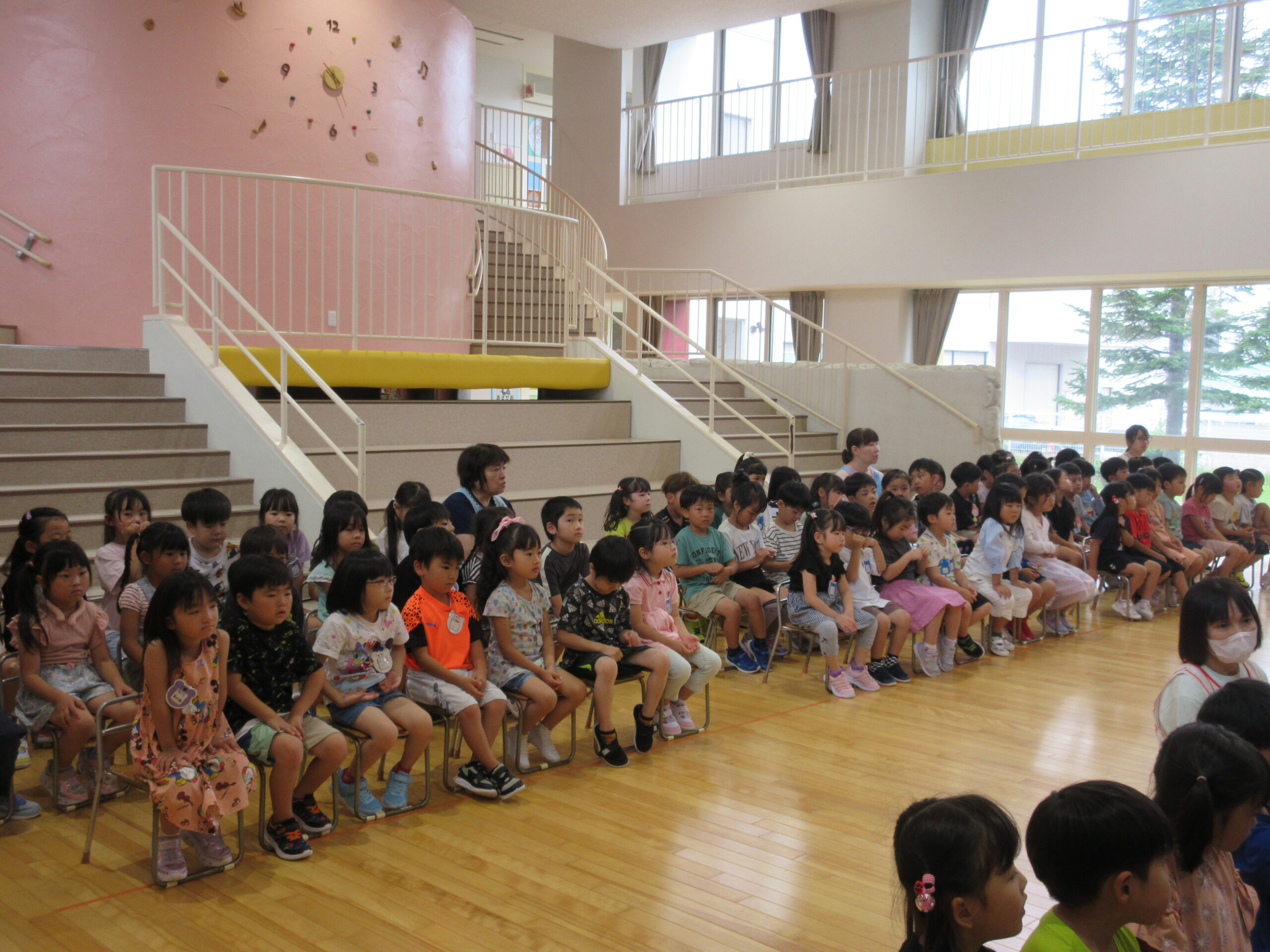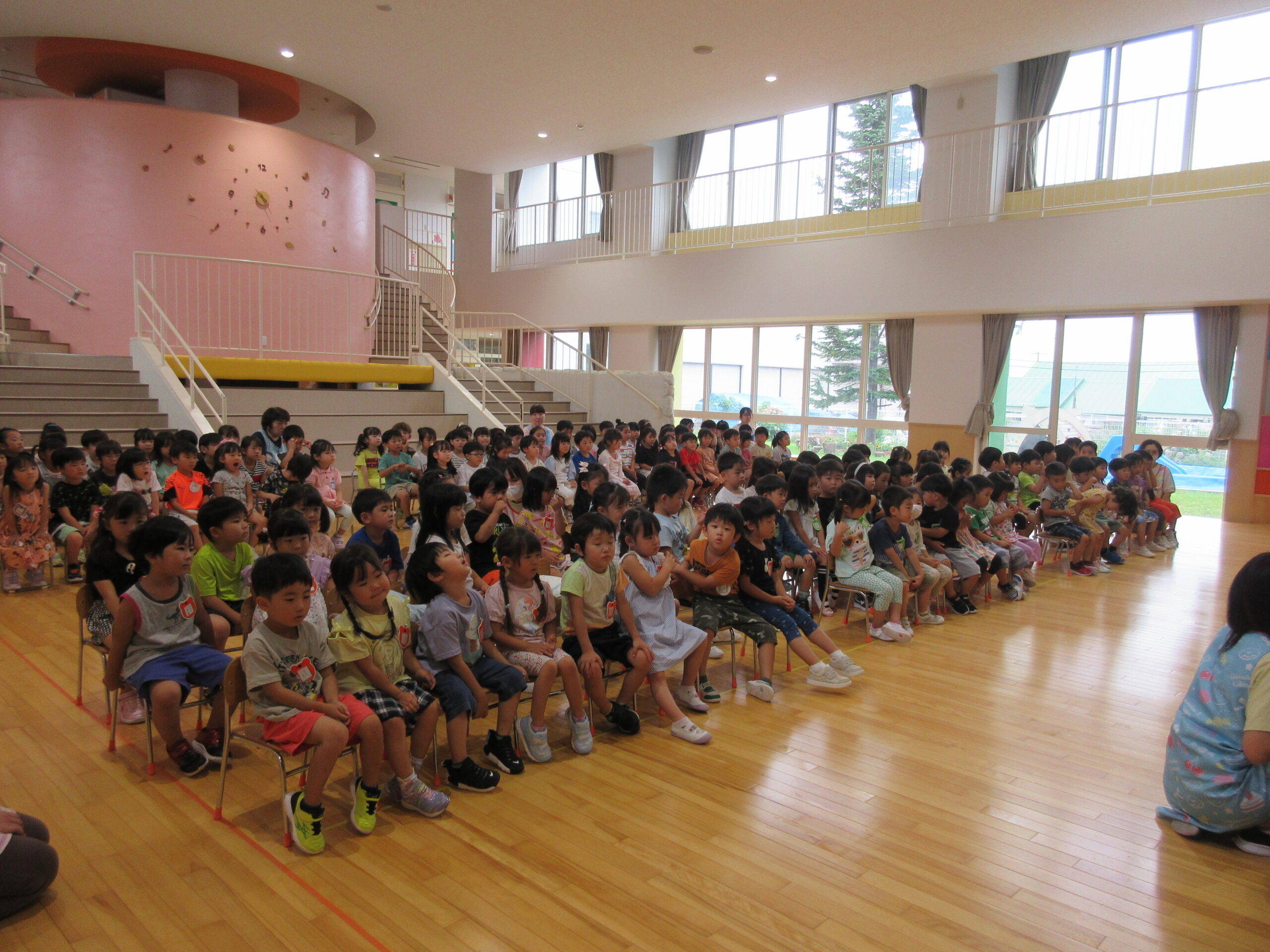 (59)令和6年度「2学期始業式」 2024年8月26日 園内ブログ 今日8月26日(月)は2学期の始業式でした。今年は例年より1週間長い夏休みでしたが子ども達は元気に登園しています。始業式では日焼けした子ども達が一回り大きく成長した姿に嬉しく思います。2学期が始まり各クラスで夏休みの思い出発表を緊張感を持ちながら行っていました。行事の多い2学期みんなで協力して挑戦して楽しみましょう! 今日の病気欠席者は、発熱4名、咳1名、体調不良2名です。
