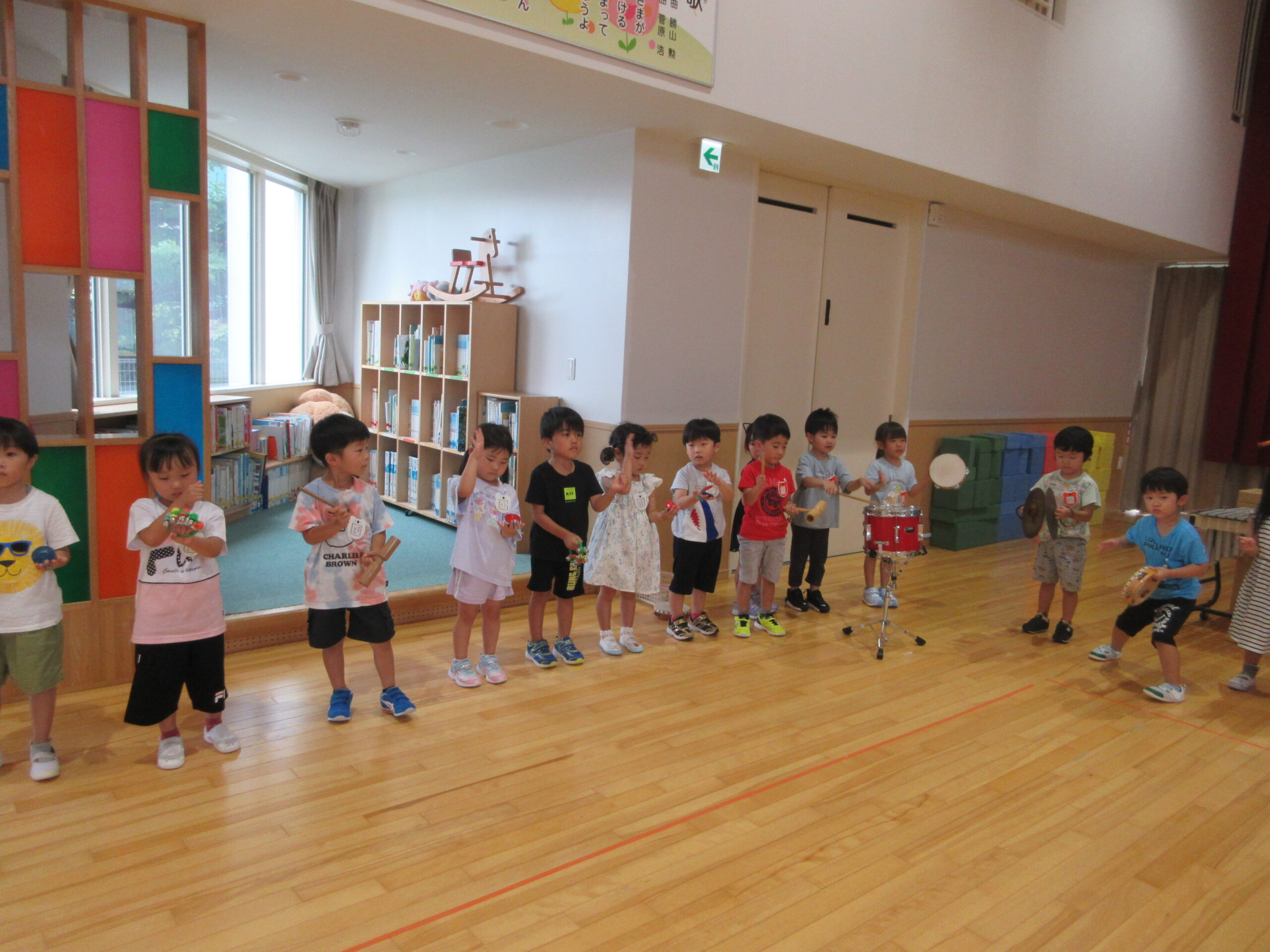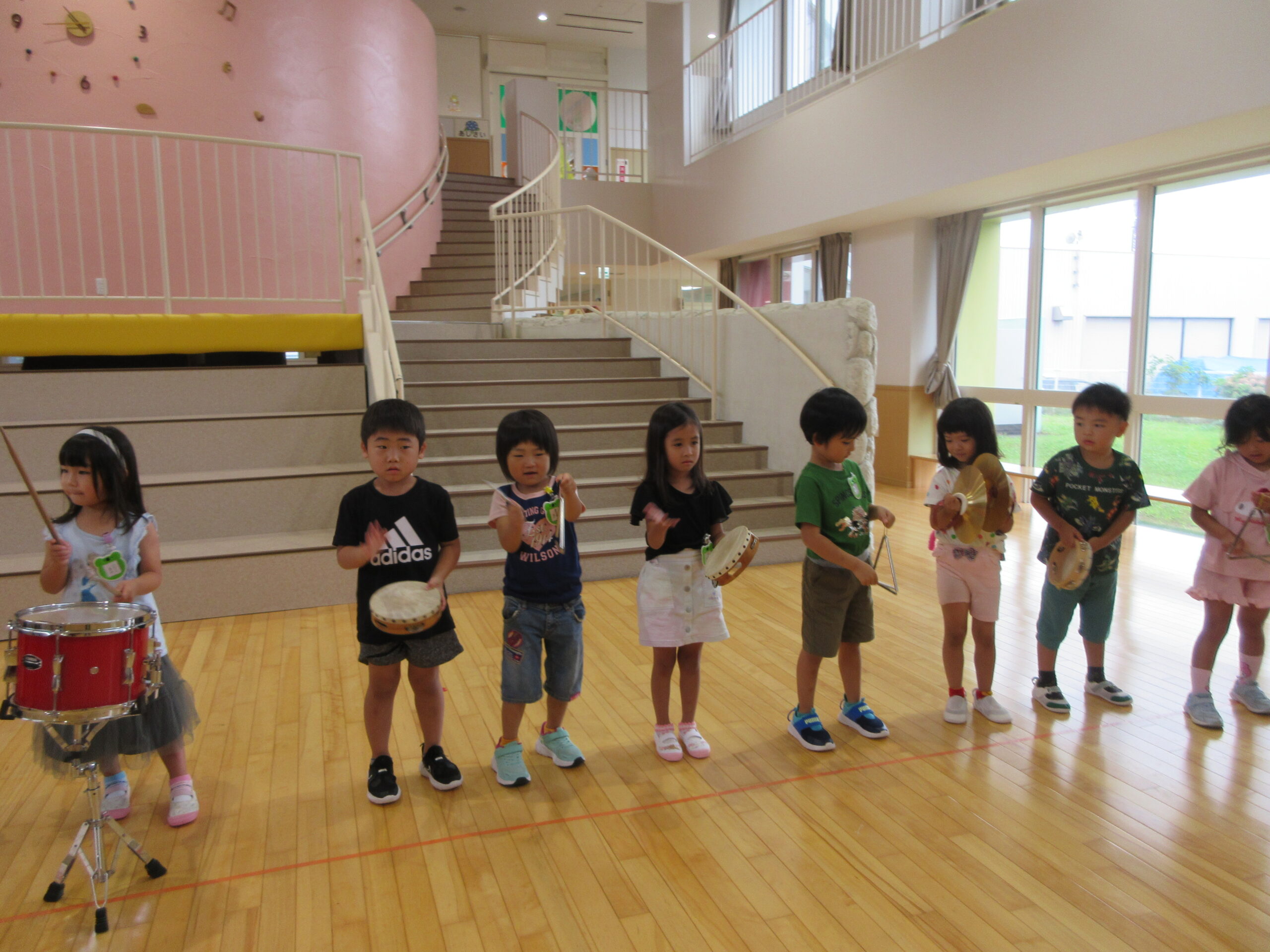 (60)令和6年度「年中学年 楽器遊び・夏休みの絵」 2024年8月27日 園内ブログ 1学期に続き、2学期も楽器遊びを行いました。年少時よりも楽器の種類が増えて、新しい楽器の名前を覚えながら、楽しそうに鳴らしていました🥁 楽器遊びの後に夏休みの絵を自由画帳に描きました。夏休みに経験して楽しかった様々な思い出を描いていました。 今日の病気欠席者は、発熱2名、体調不良1名です。 🍙今日の給食🍙